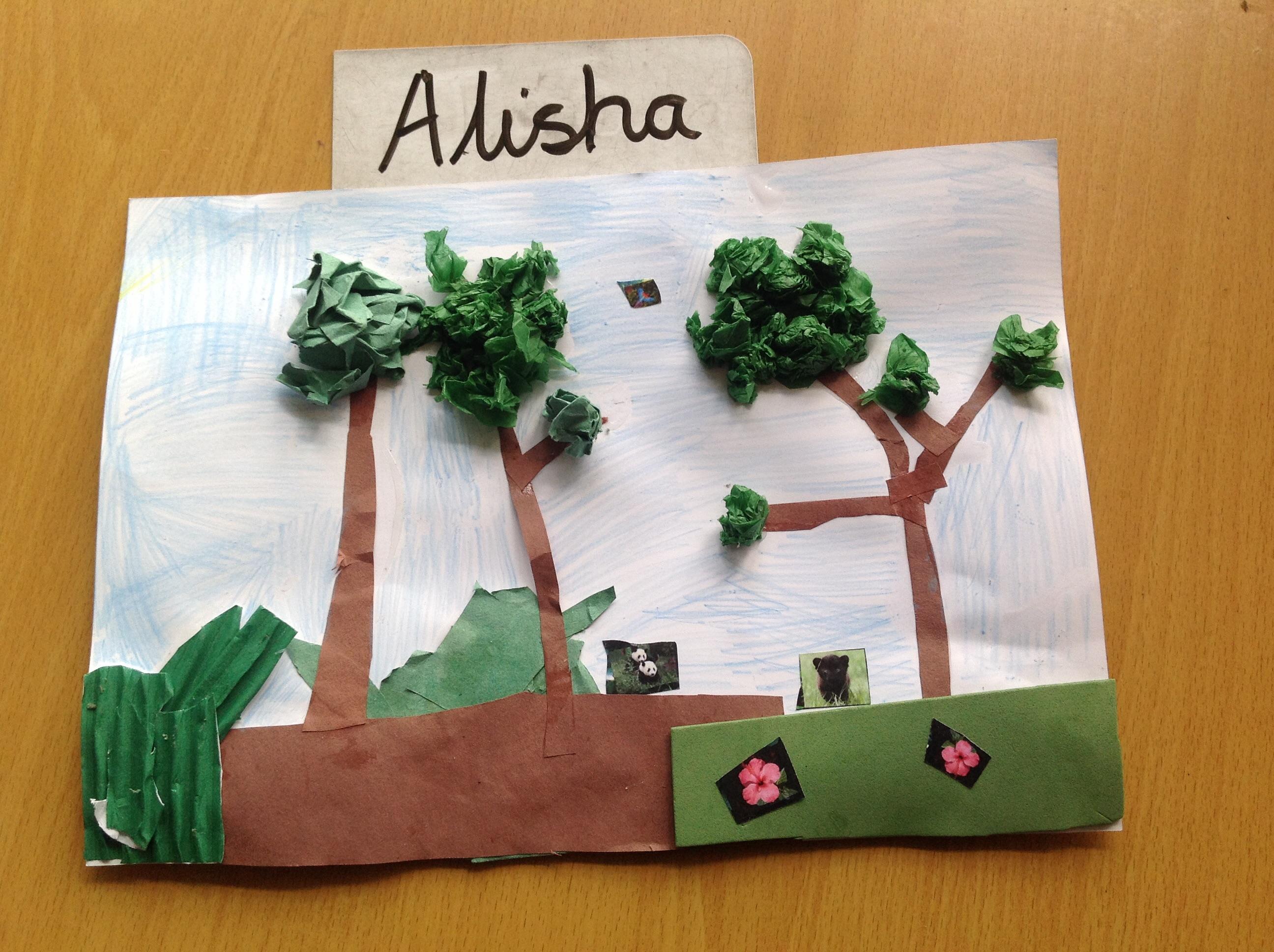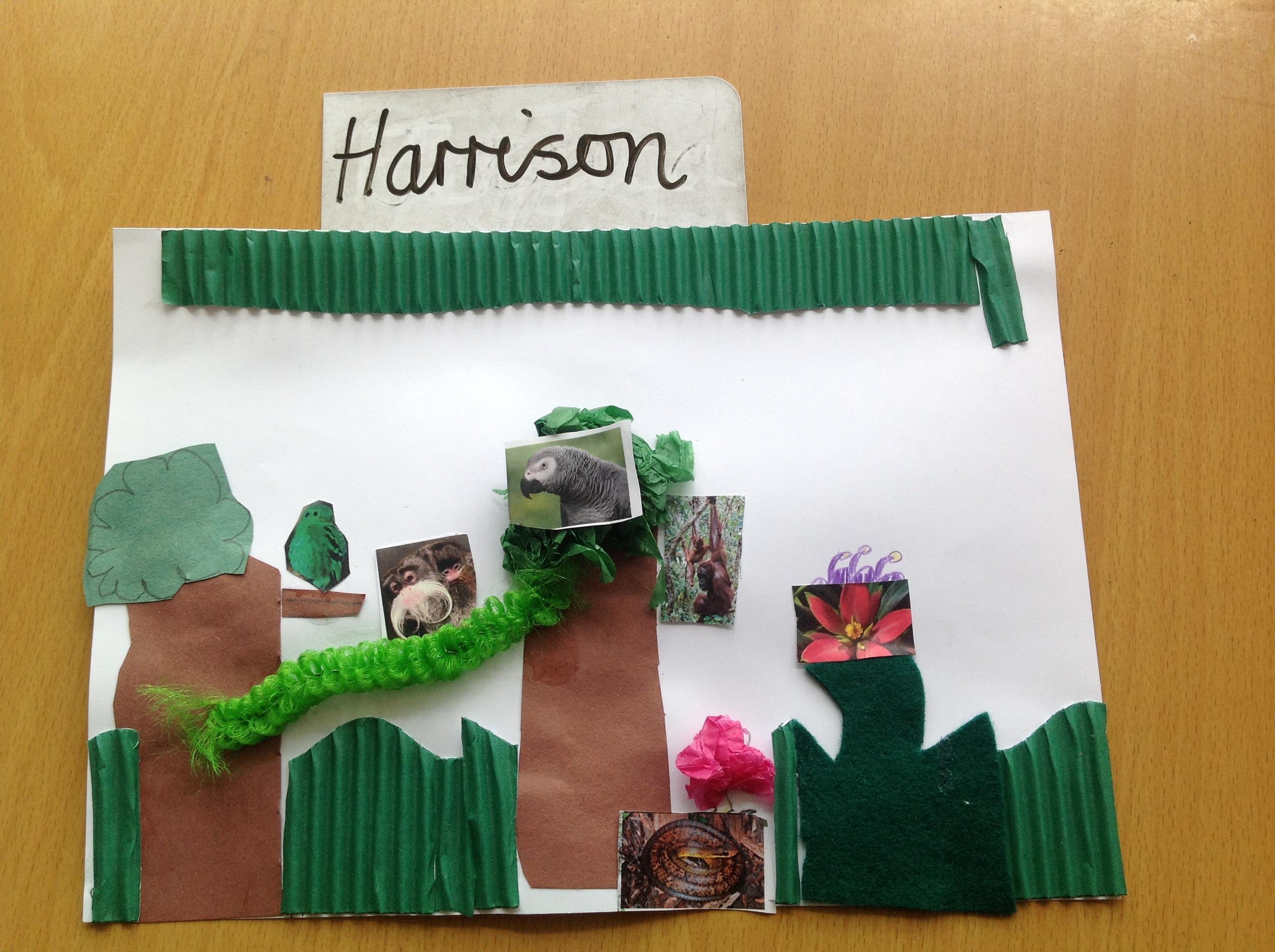 This week, we have learnt more about the different layers of the rainforest; the emergent layer, the canopy, the understory and the forest floor. We made mini scenes of each layer and discovered the types of trees, plants and animals that lived in each section. When we put them all together, we had our very own model rainforest!
