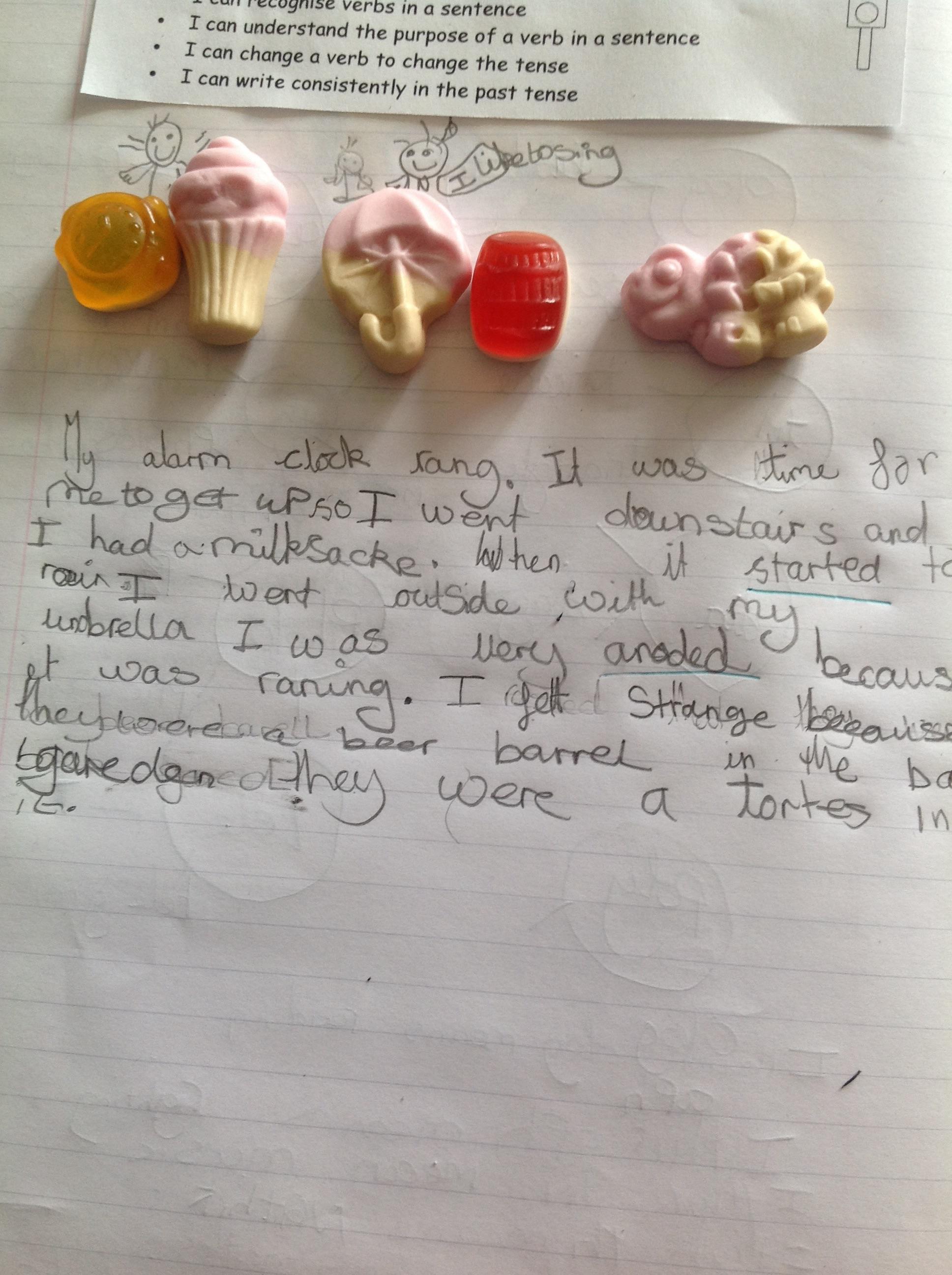 This week, we have been working really hard on writing consistently in the same tense. Firstly, we drew pictures to help us to understand the difference between the past and the present tense and looked at why it was important to stay in the same tense! Some of us created stories using Rowntrees Randoms! We had a giggle at some of the strange stories we had written.