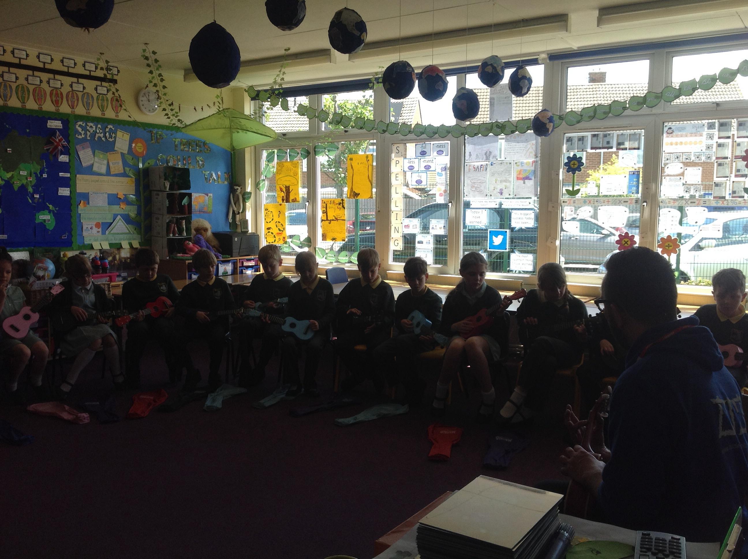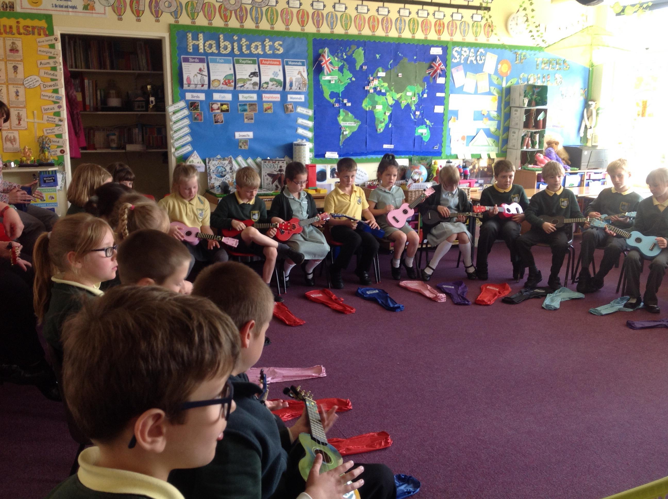 This term, on a Wednesday morning, we will be learning how to play the ukulele! We were so excited when Tim arrived to give us our first lesson and we learnt the red chord and the yellow chord! We cannot wait to learn more tunes to play!