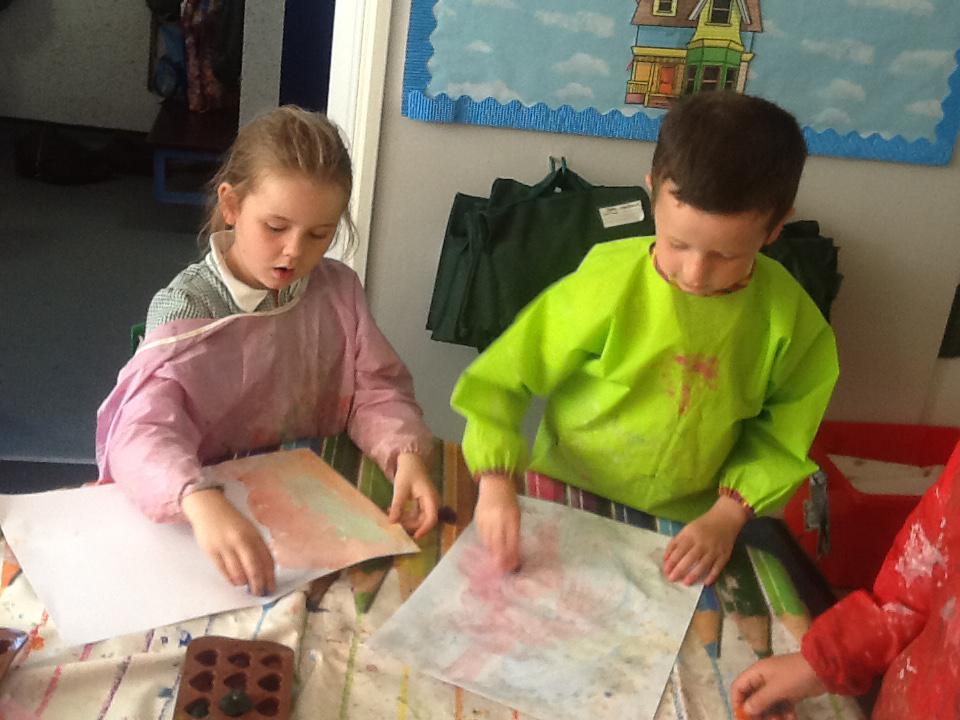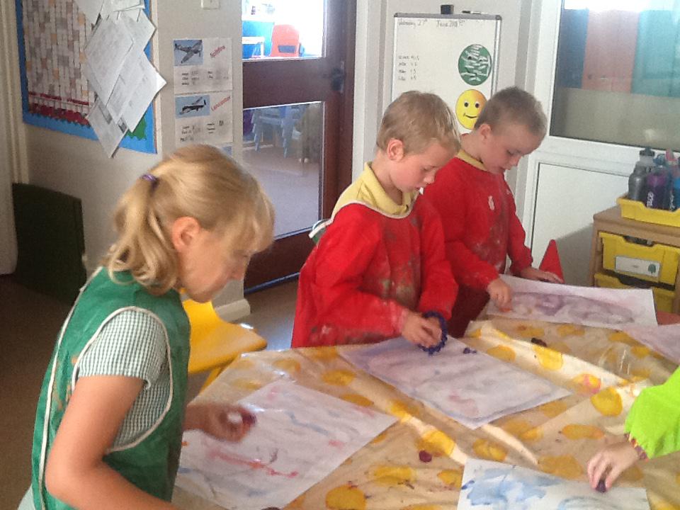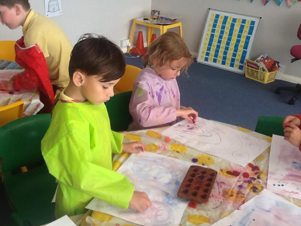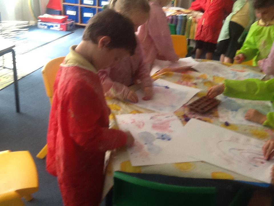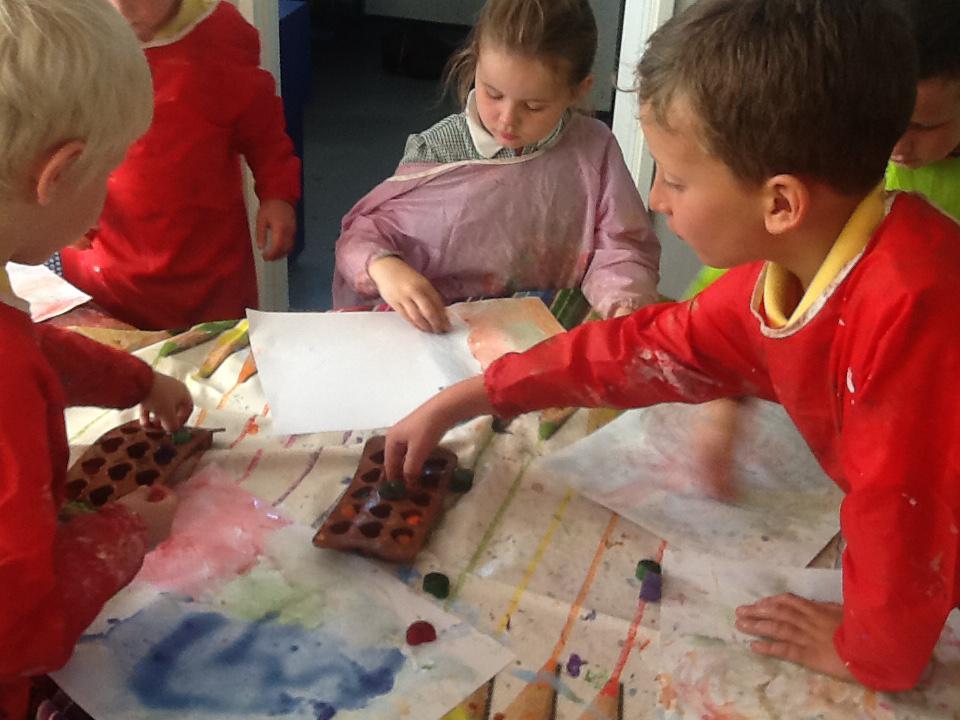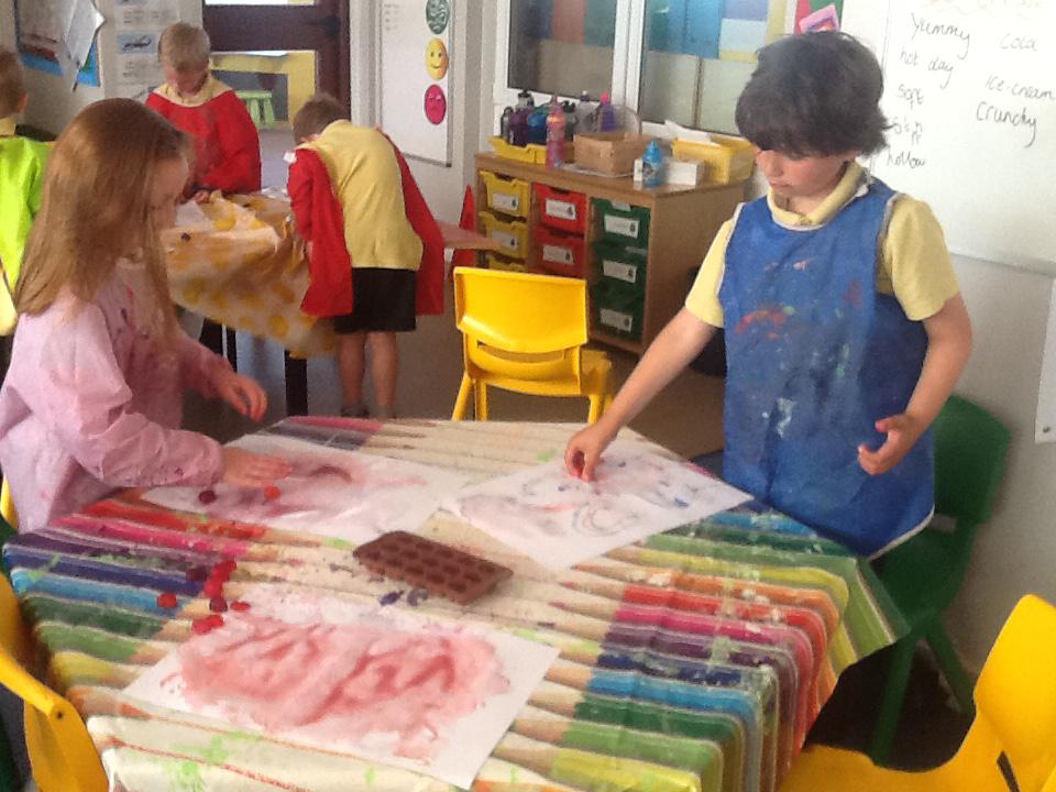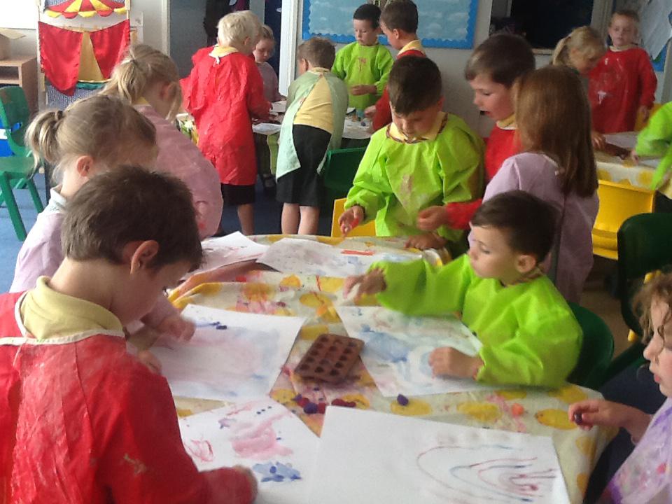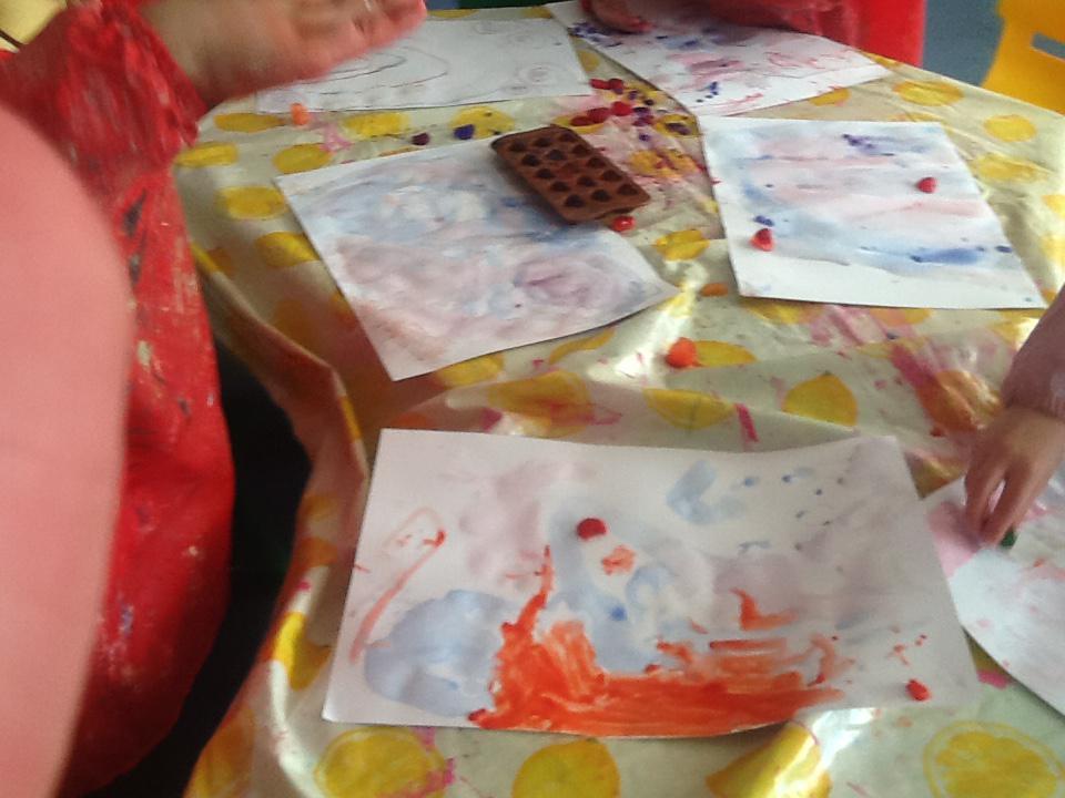 This week we made coloured water then discussed what would happen if we put it in the freezer. Later on in the week we spoke about the results and made ice art with the cubes. The results were fantastic as the children let their creative juices flow.