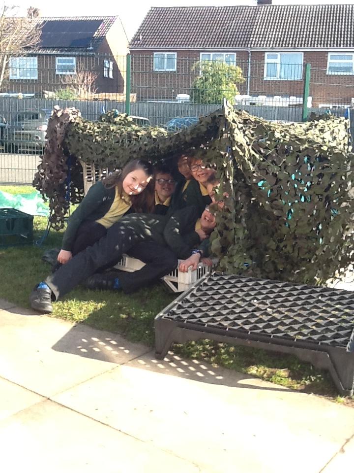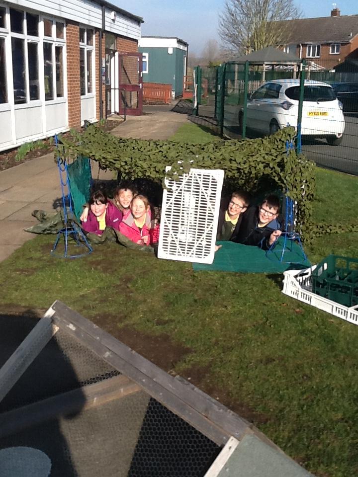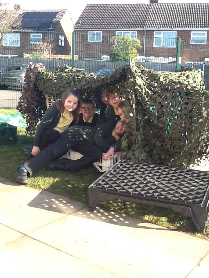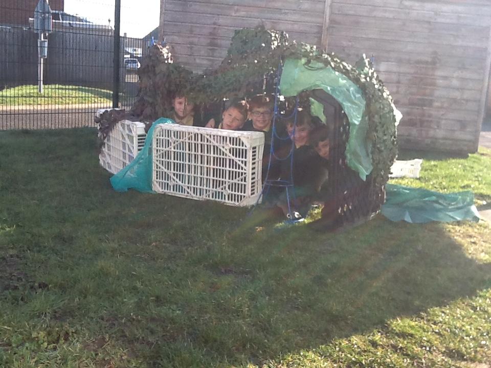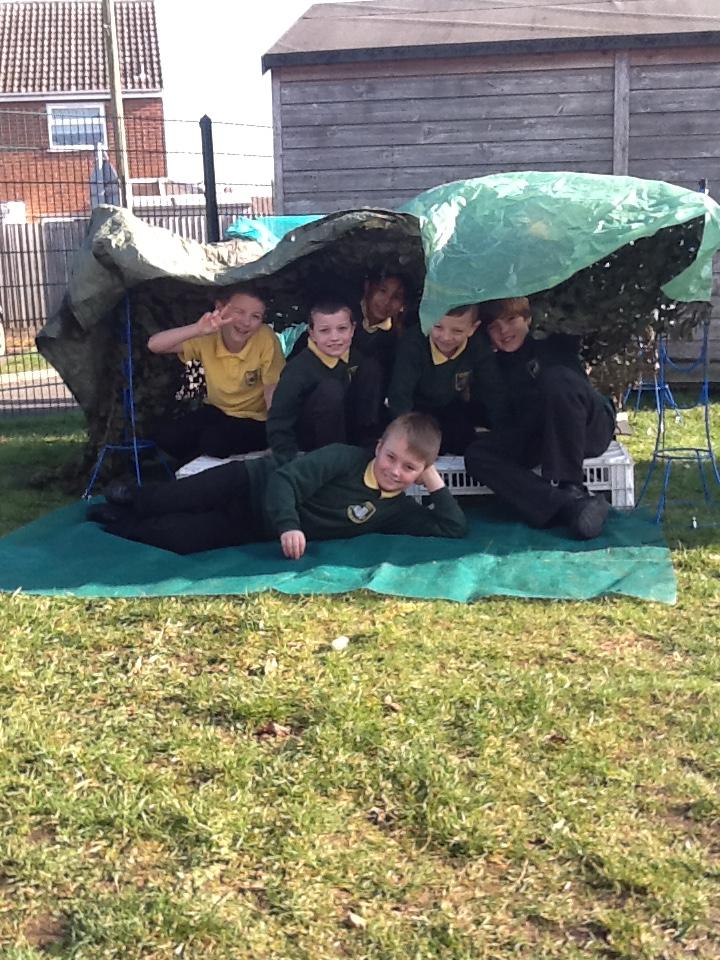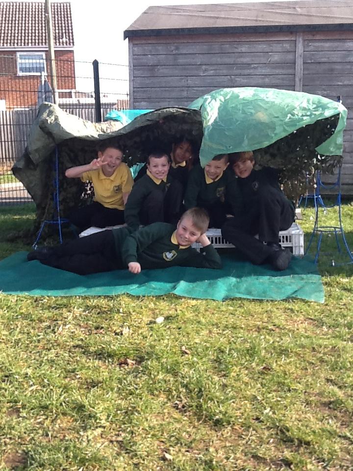 We have built shelters this week in preparation for a natural disaster! We thought about staying dry and warm, and had to make sure that we could fit our whole team inside!