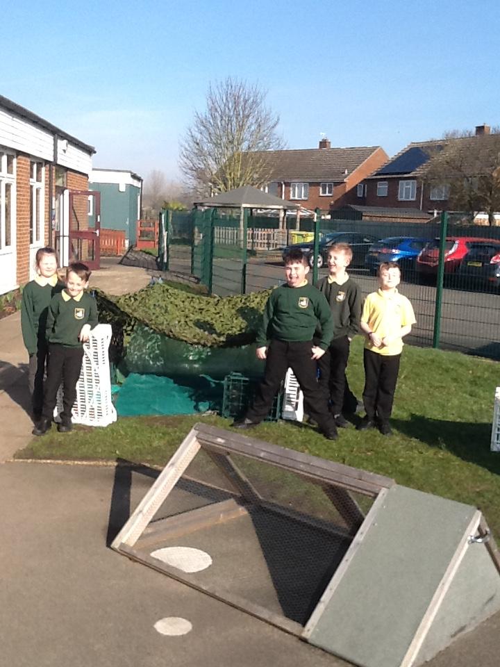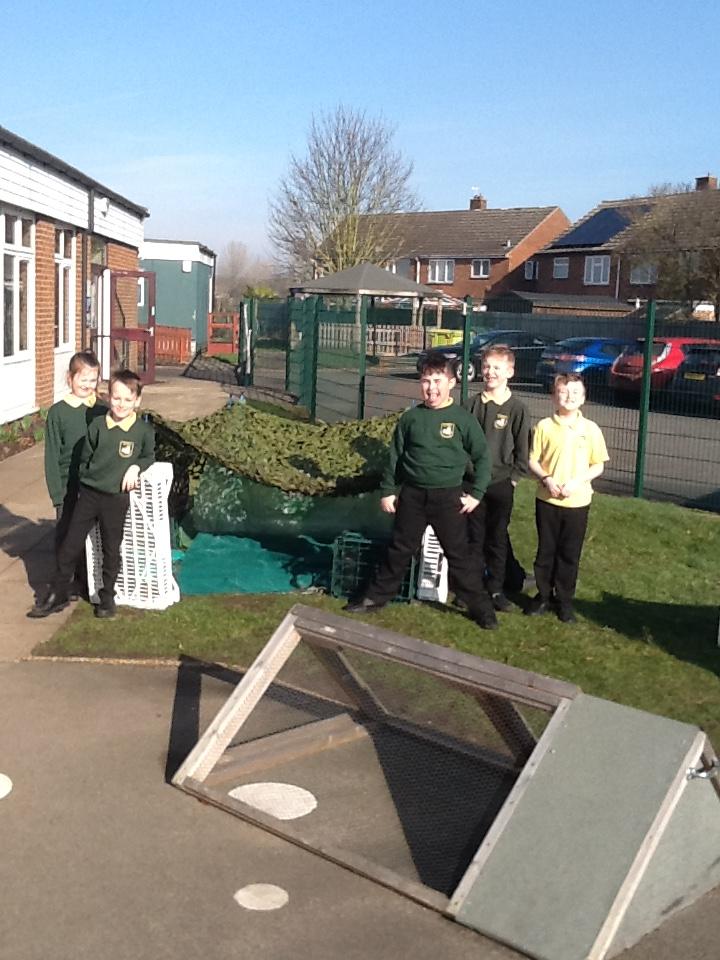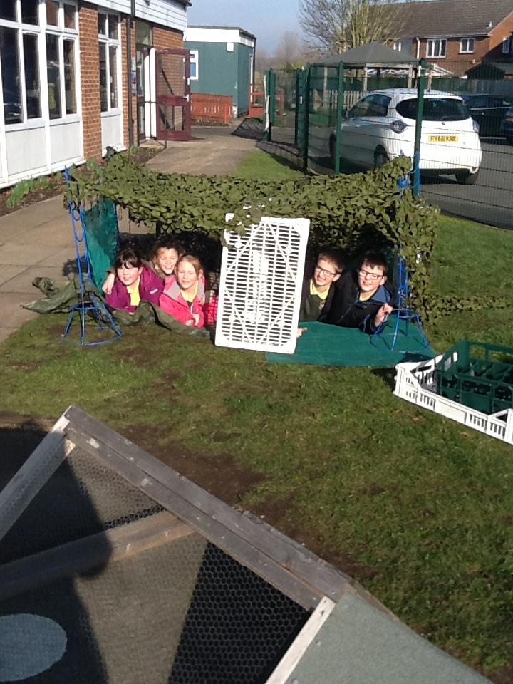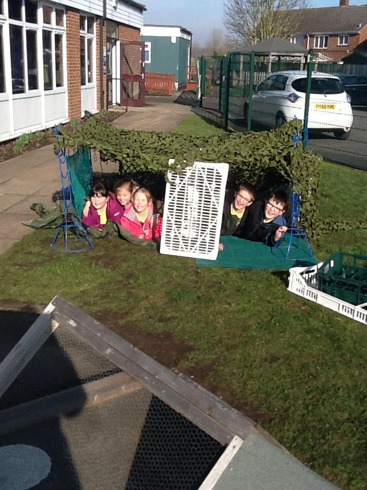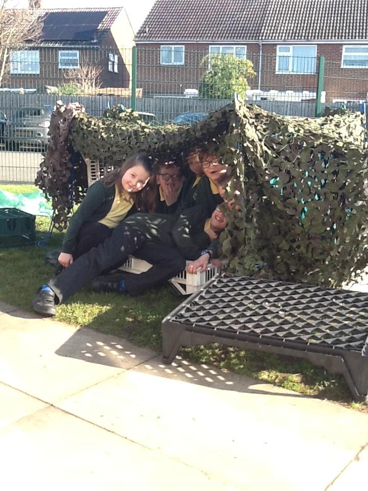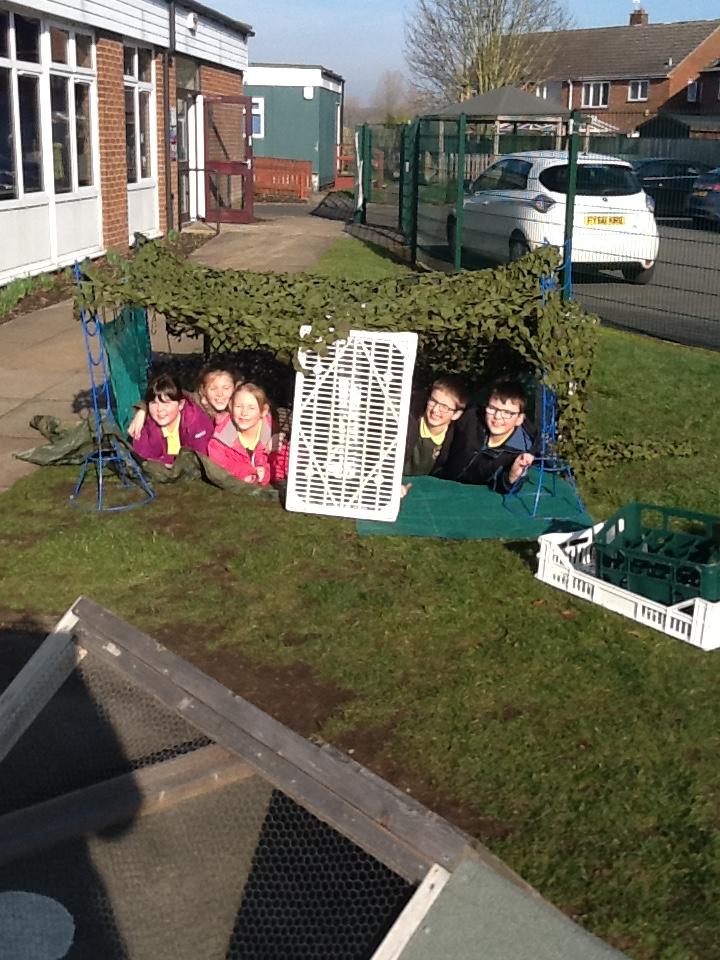 We have built shelters this week in preparation for a natural disaster! We thought about staying dry and warm, and had to make sure that we could fit our whole team inside!