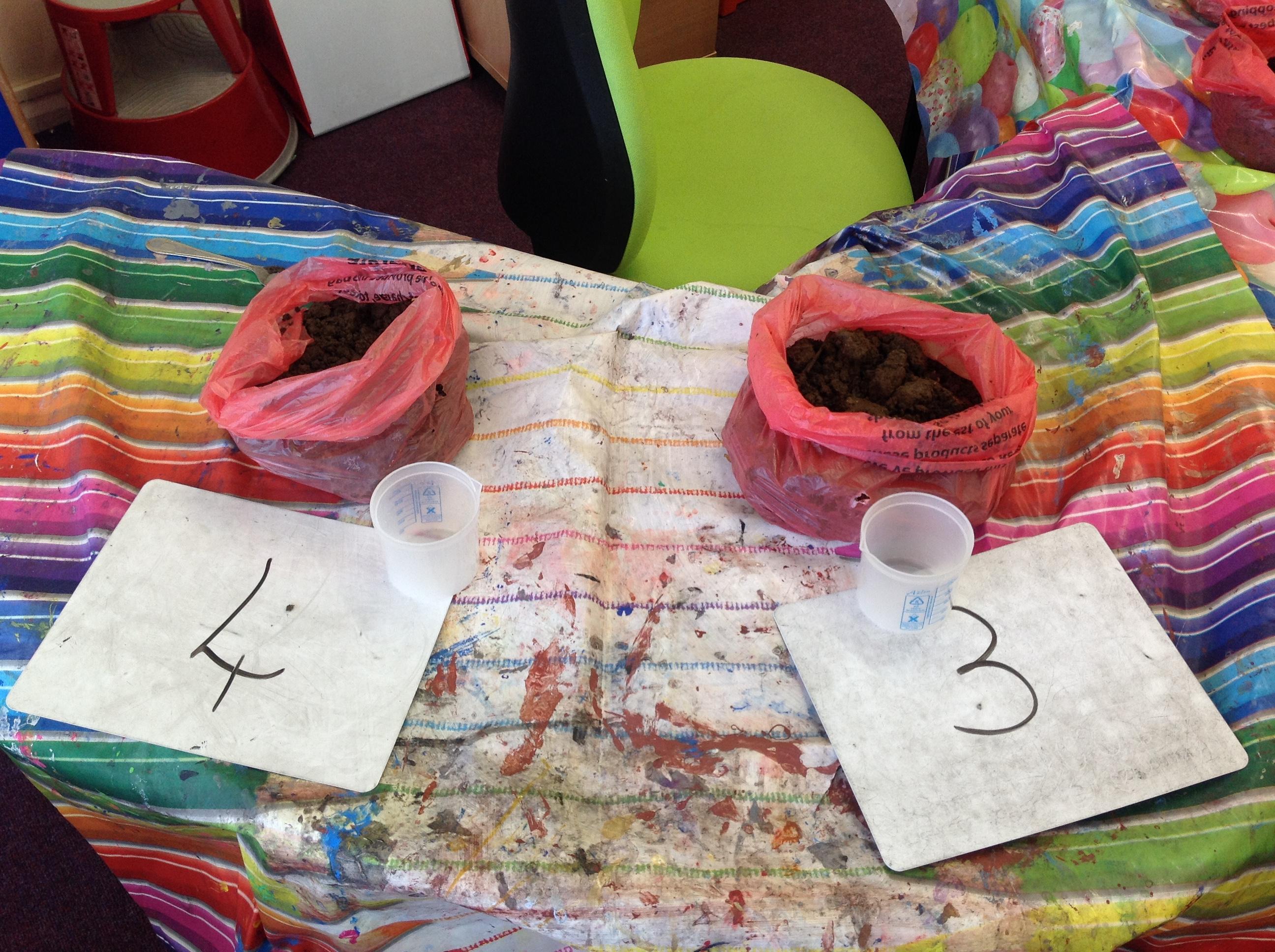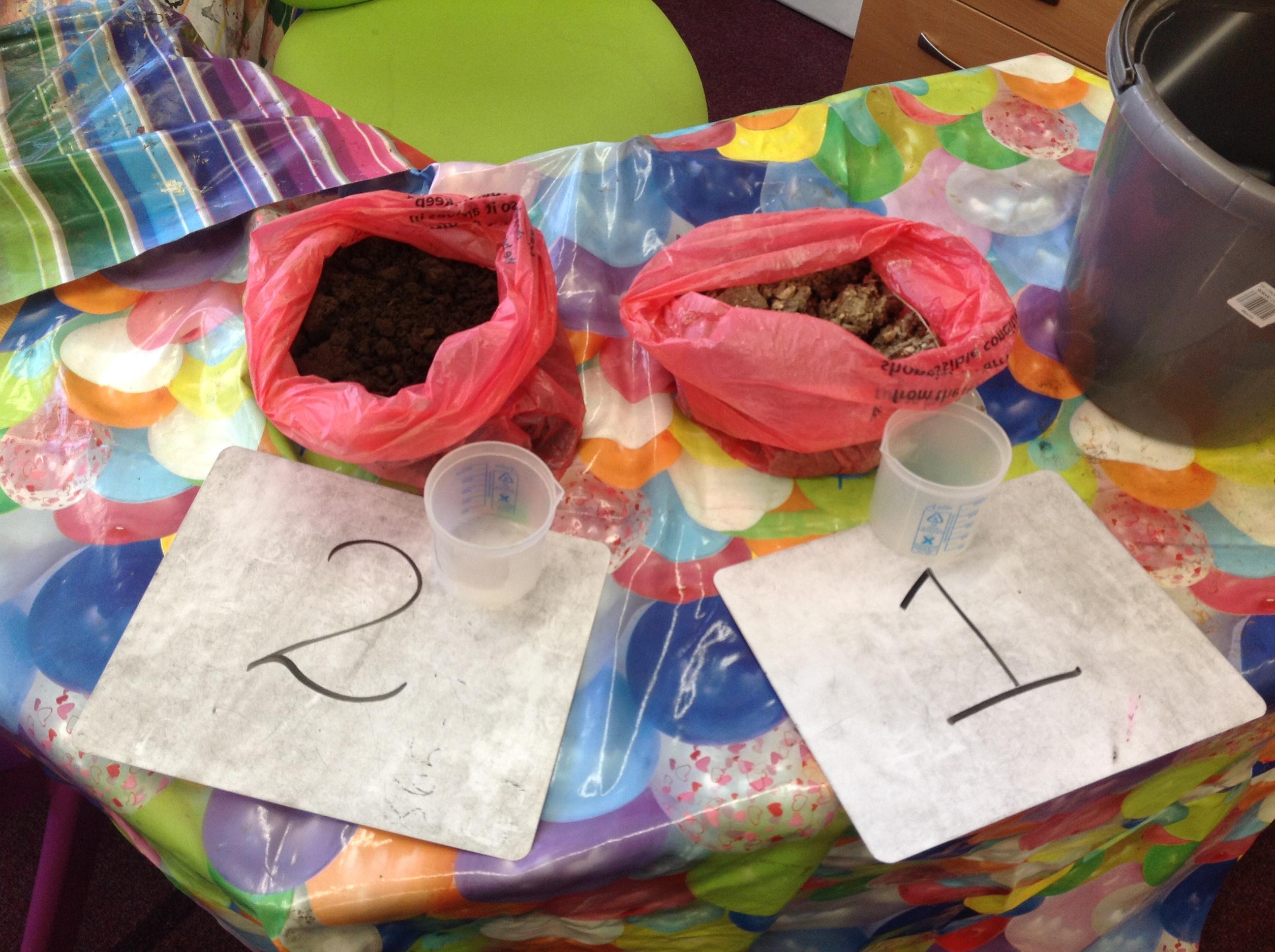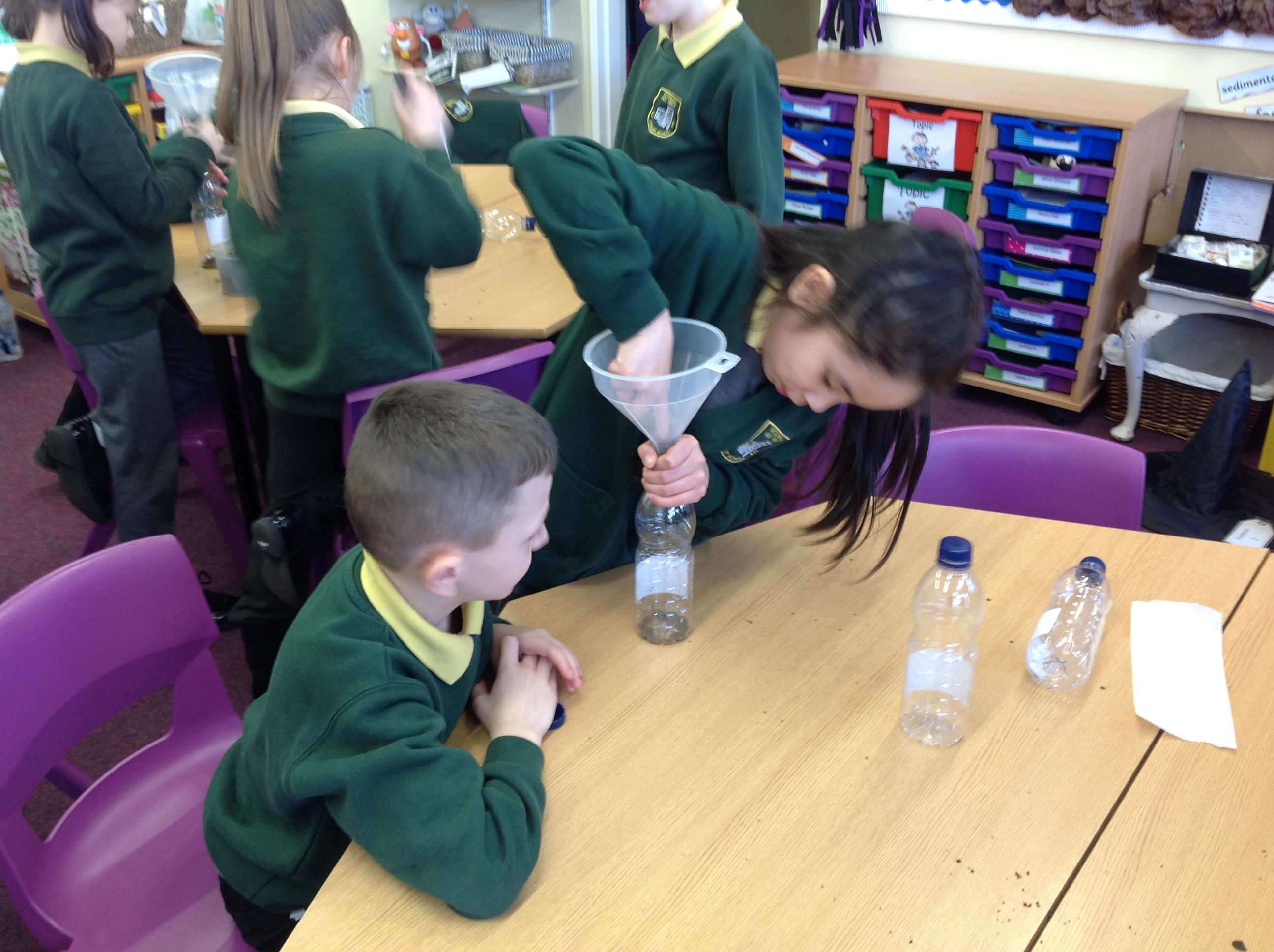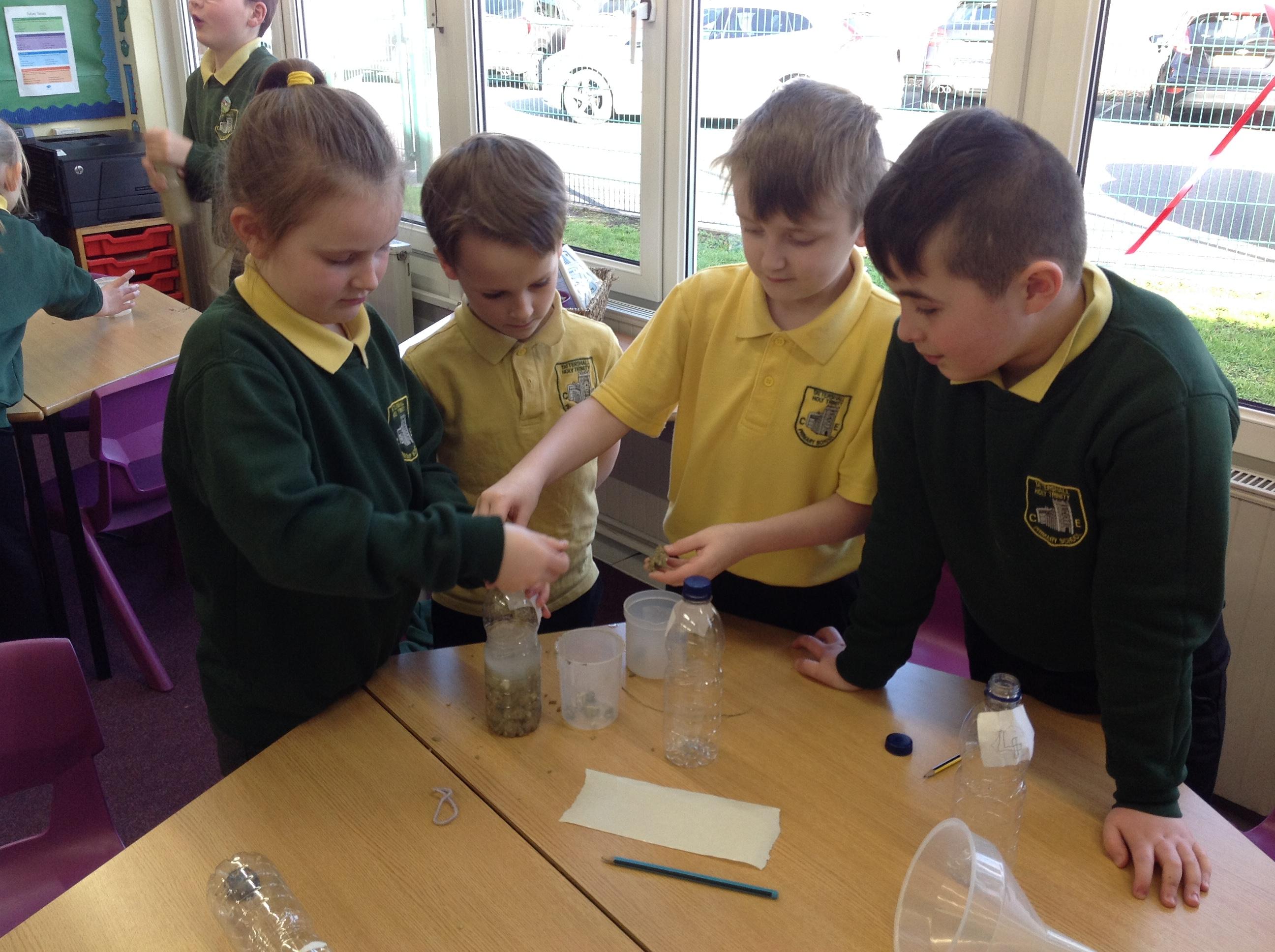 We tested different soils today to see what soil is made up of. We had 4 different soils and we had to make it a fair test. We placed the soils in different bottles and then mixed them with water. We left them overnight and we could clearly see the different layers of sediment and other materials floating in the water!