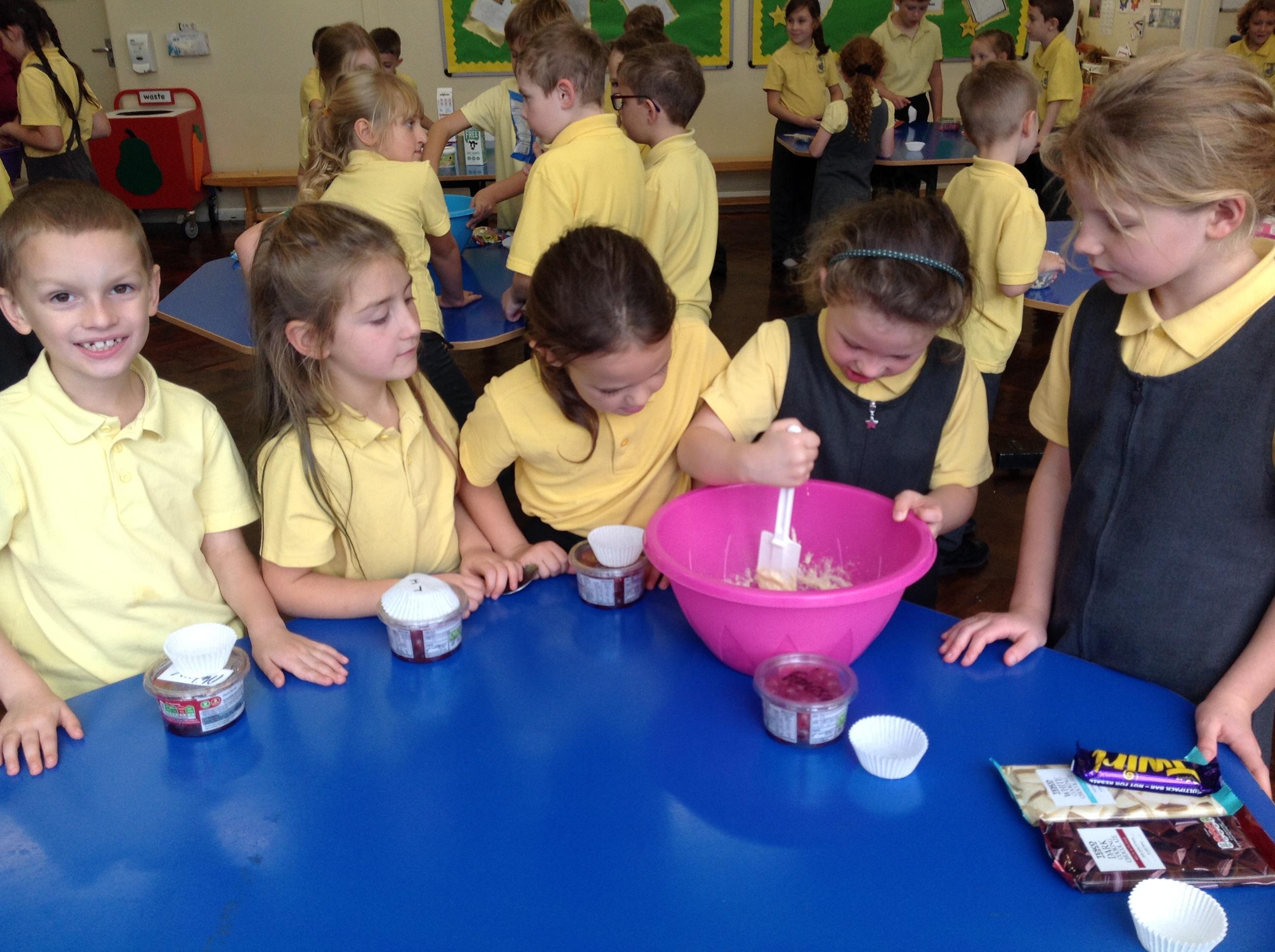 Today we made our Muffins with our own designed flavours! We got to work in groups with Oak Class and then add our individual flavourings! We can't wait to try and evaluate them!