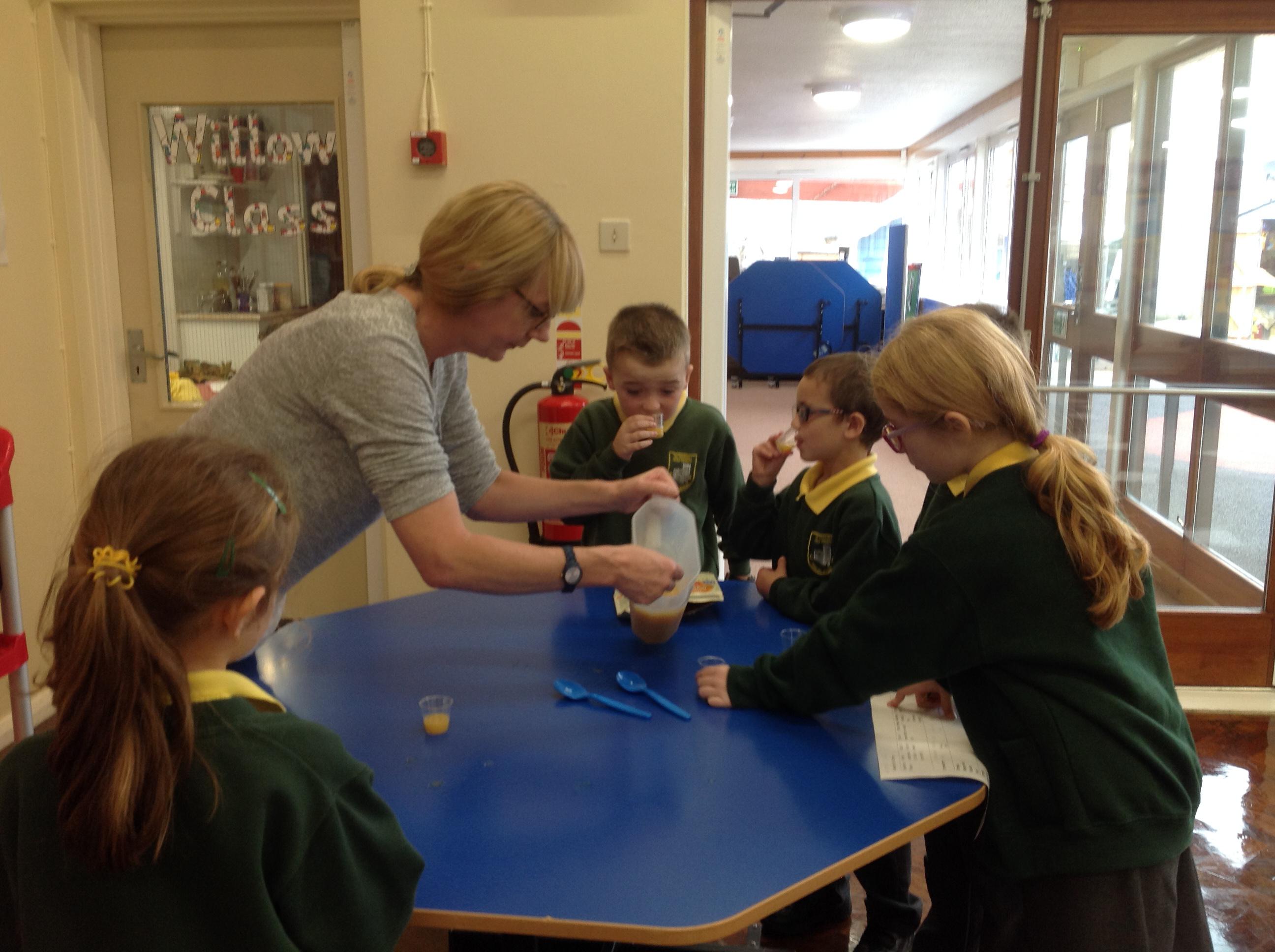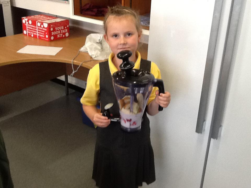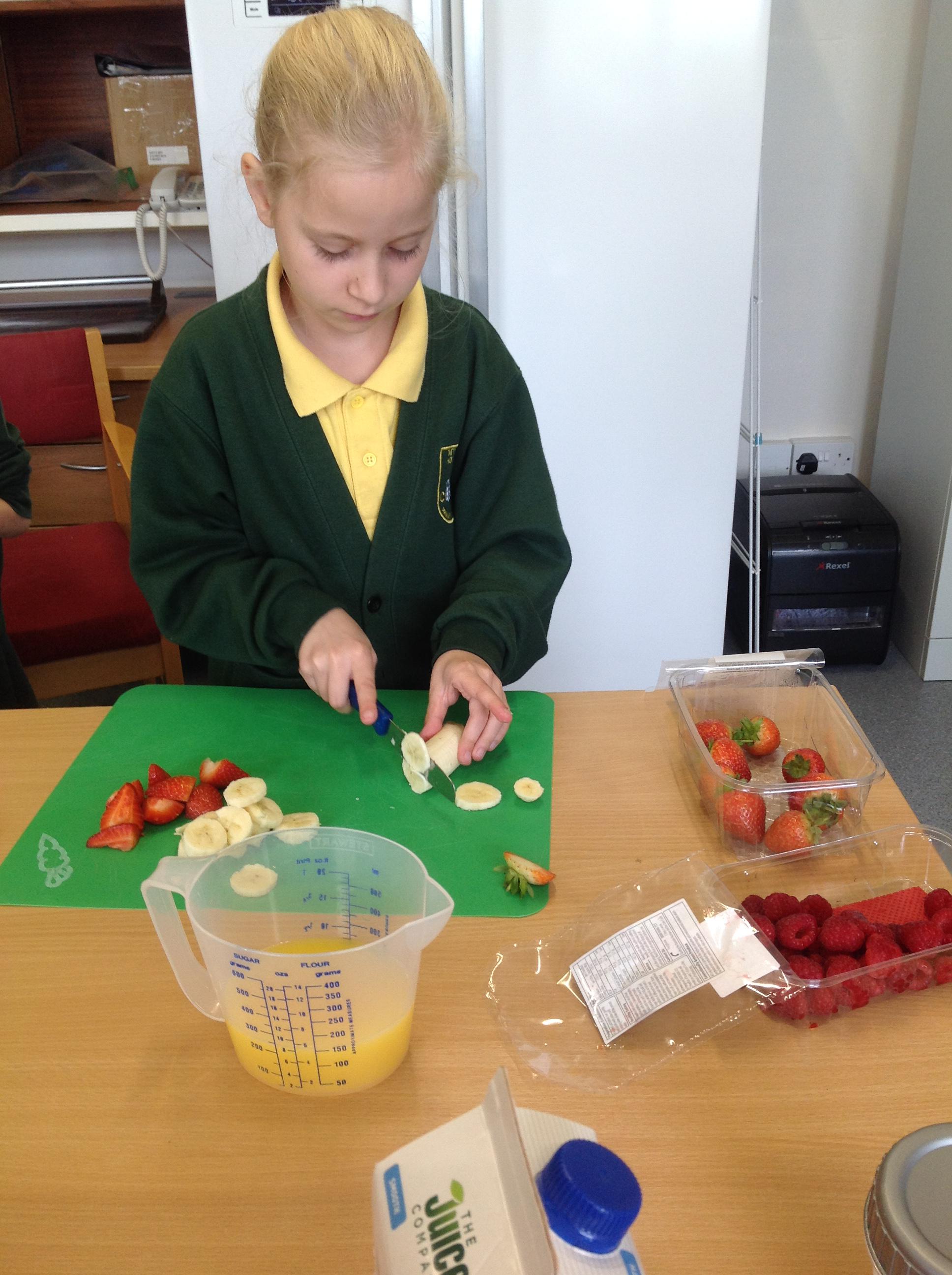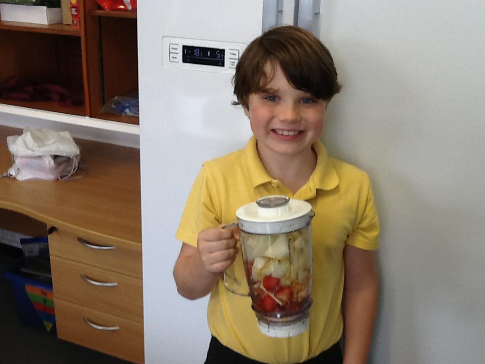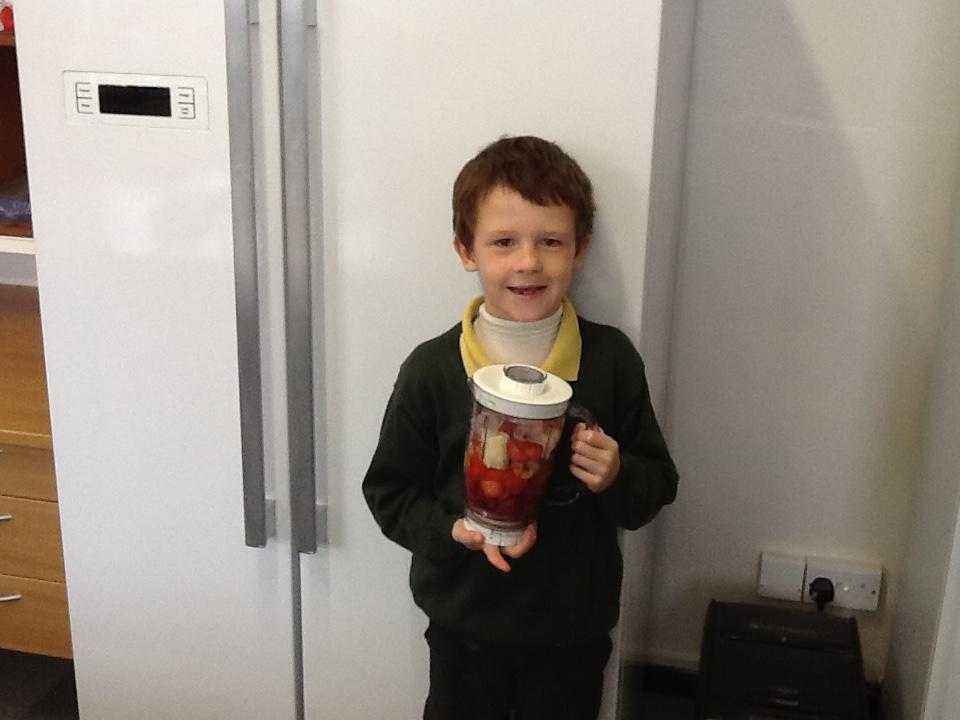 The first group have made their Smoothies today...lots of lovely fruit and vegetables going in the blender to make a delicious smoothie for our chosen family member! We can't wait to hear the feedback!