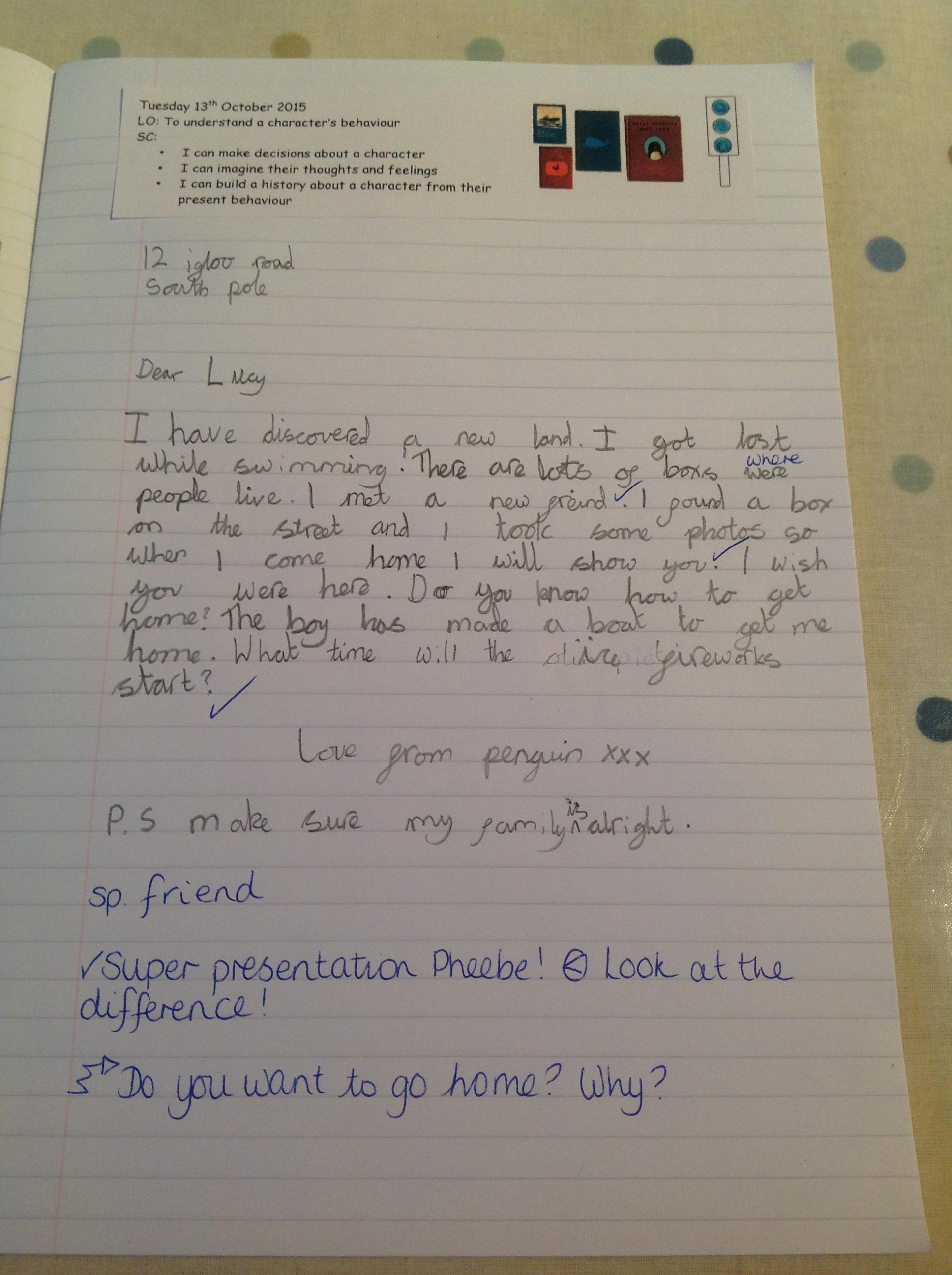 Today we have looked in more detail at the character of the Penguin. We hot-seated the Penguin and tried to discover more about where he came from and why he decided to leave the South Pole. We then wrote letters back to the South Pole from the Penguin and thought more about what he might be thinking.
