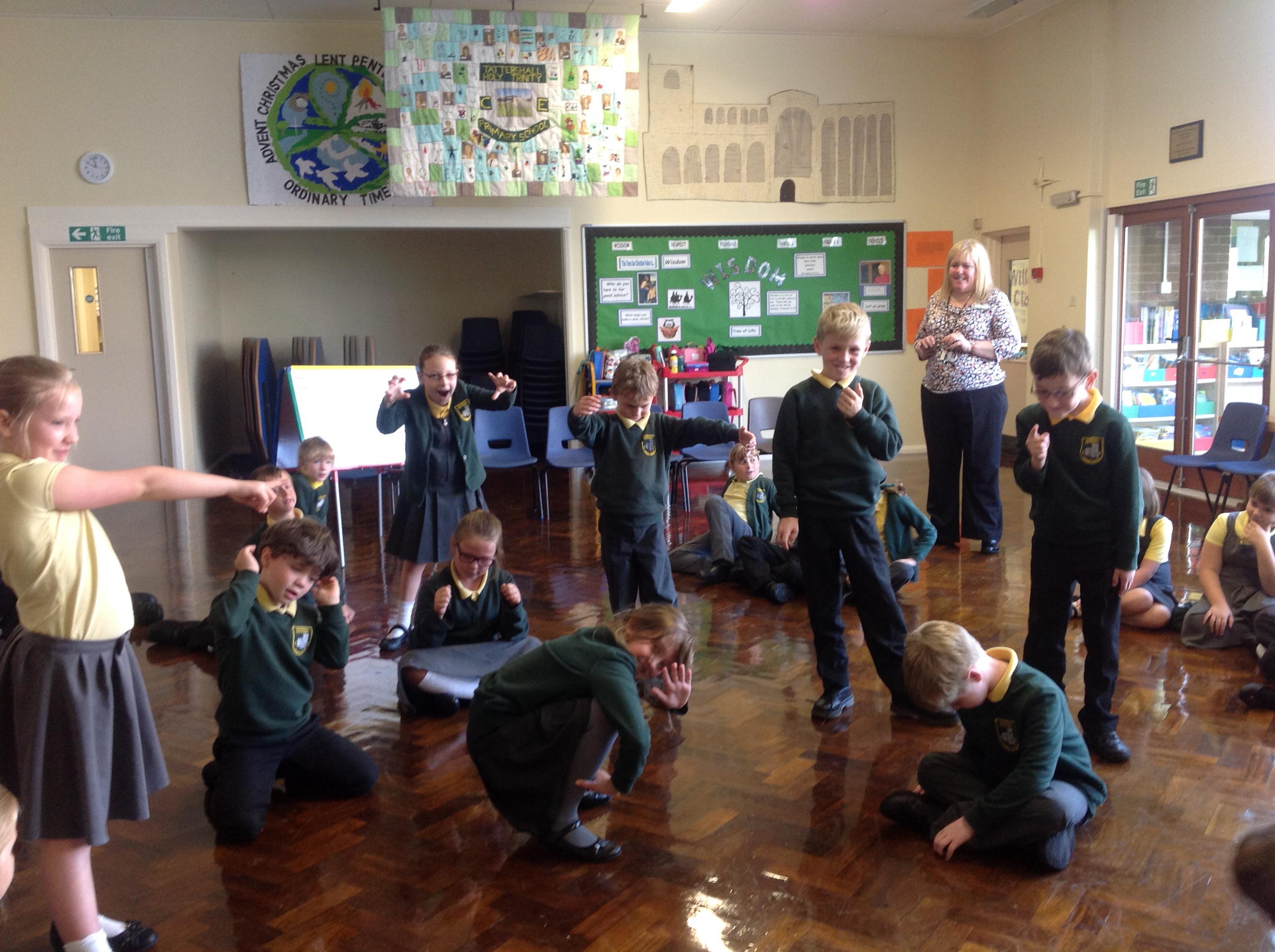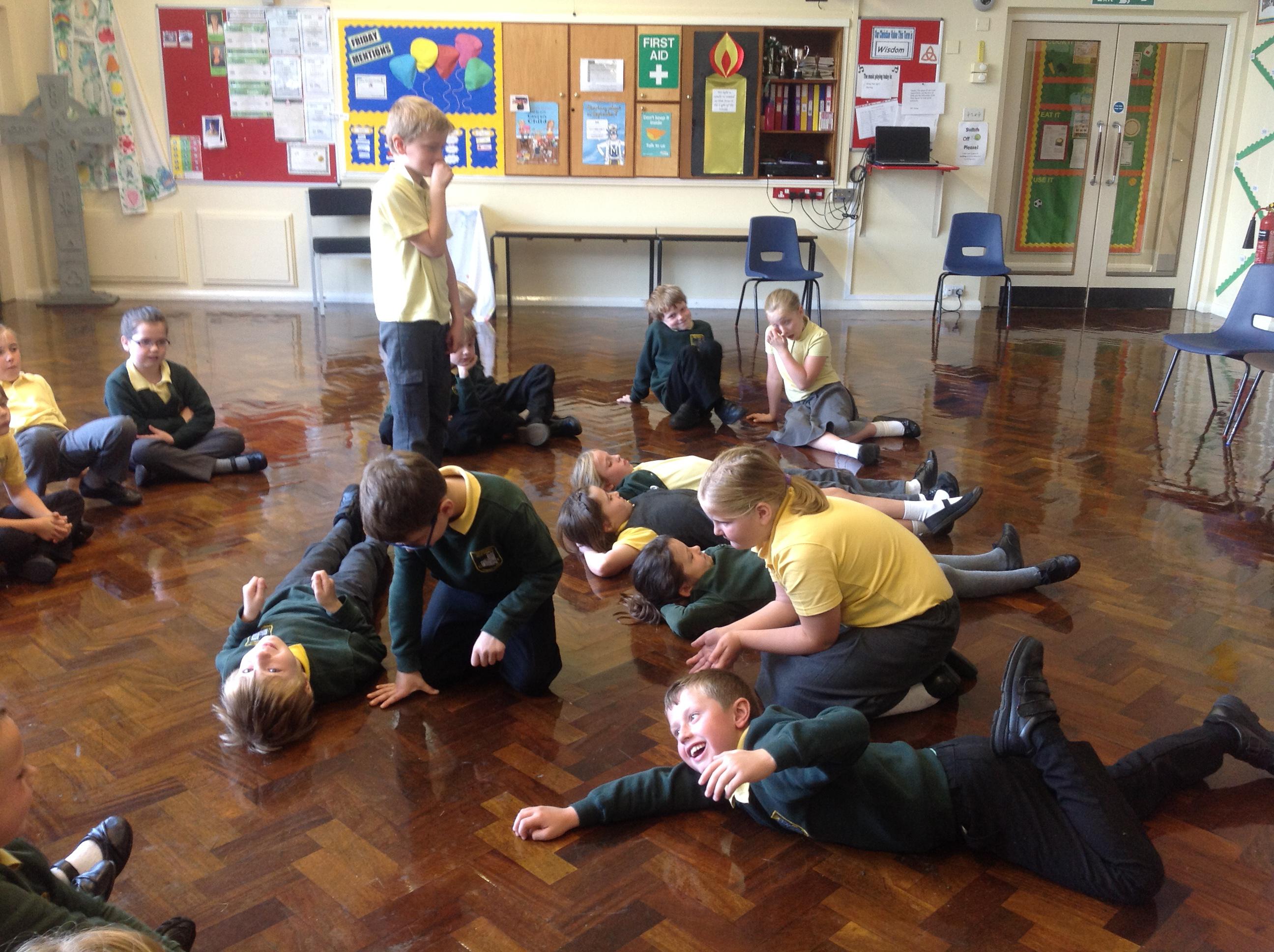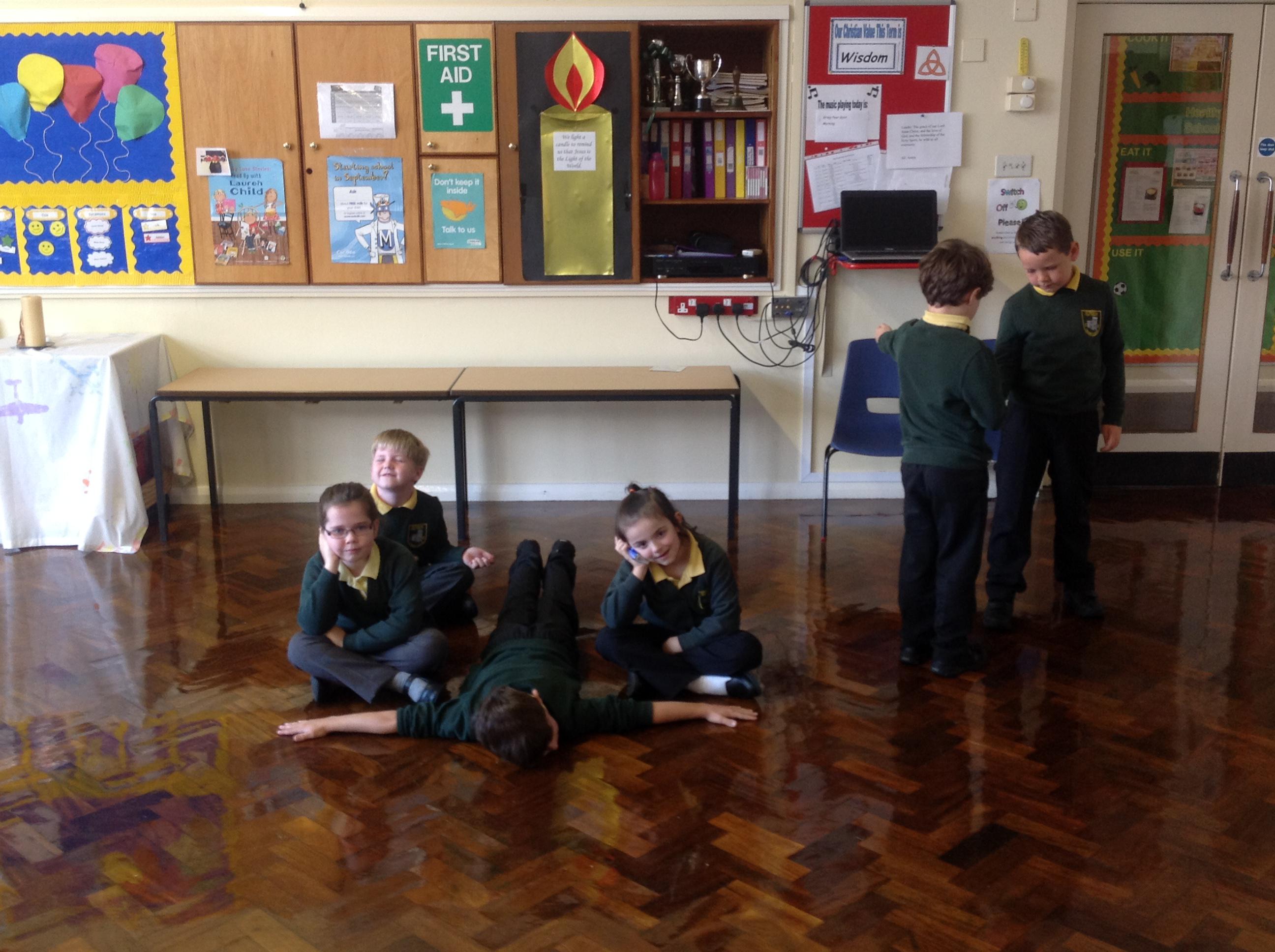 This week in Literacy, we have been focusing on setting descriptions. Today we worked on some drama where we had to create freeze frames to show a particular setting as a group and then as a class. Can you guess where some of our action is taking place?