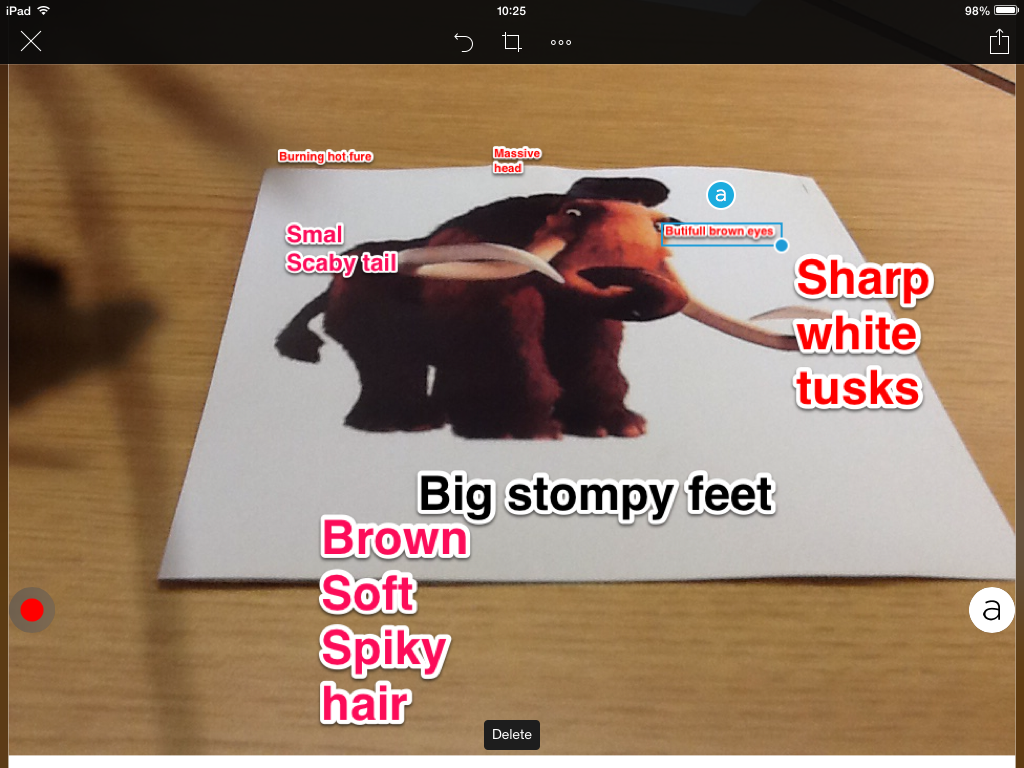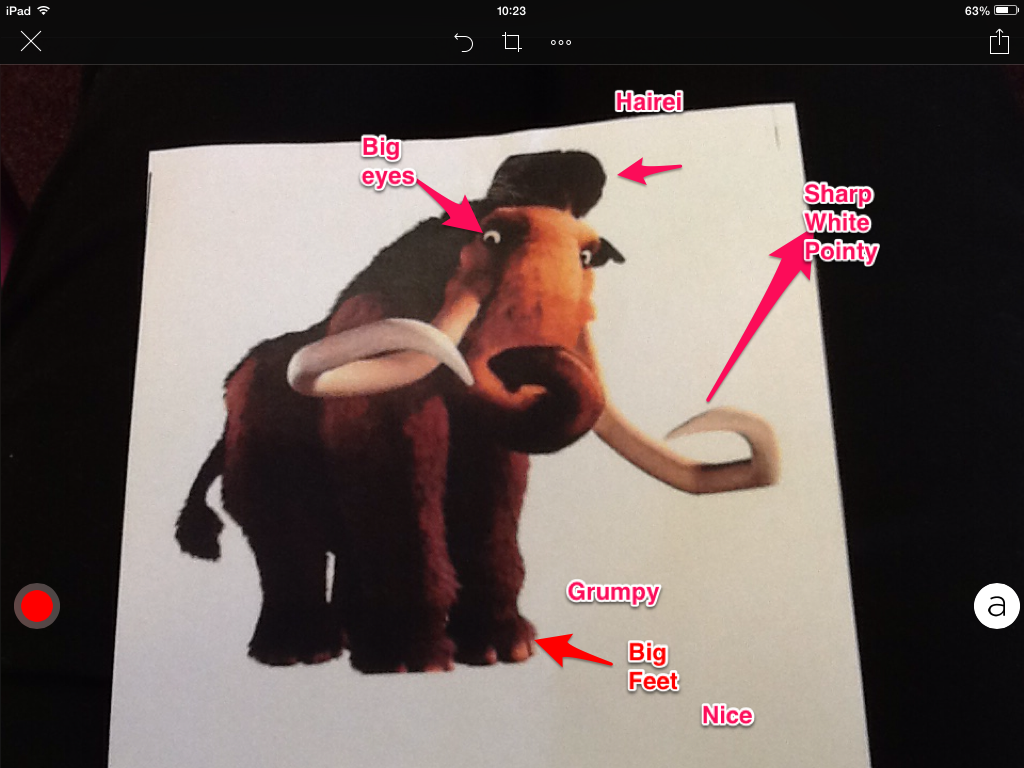 We have been looking this week at using adjectives and similes to describe a character. For our extended writing, we will describe the characters of Manny and Sid from our work this week. Sid group used the Skitch app to create character profiles on Manny.