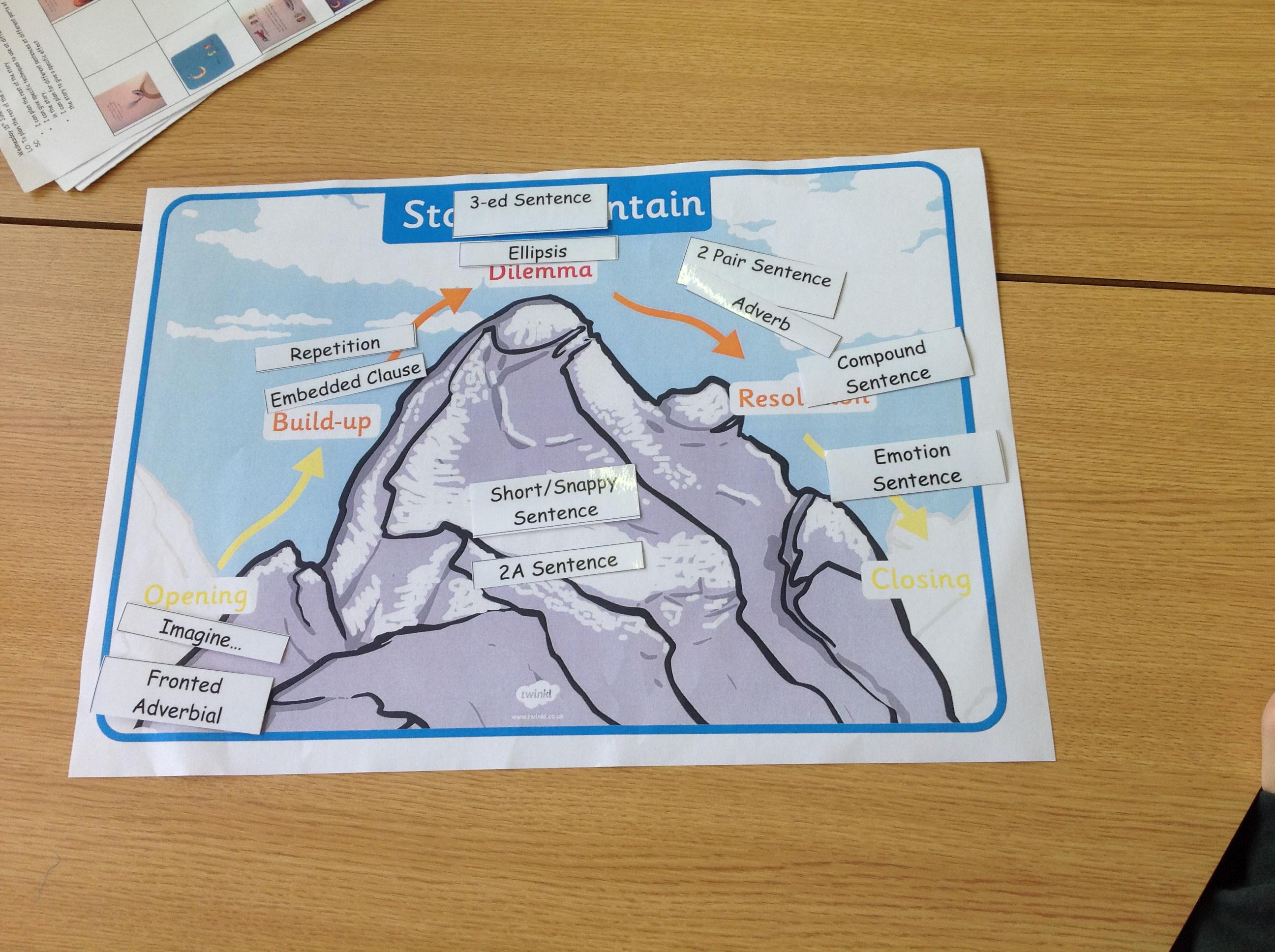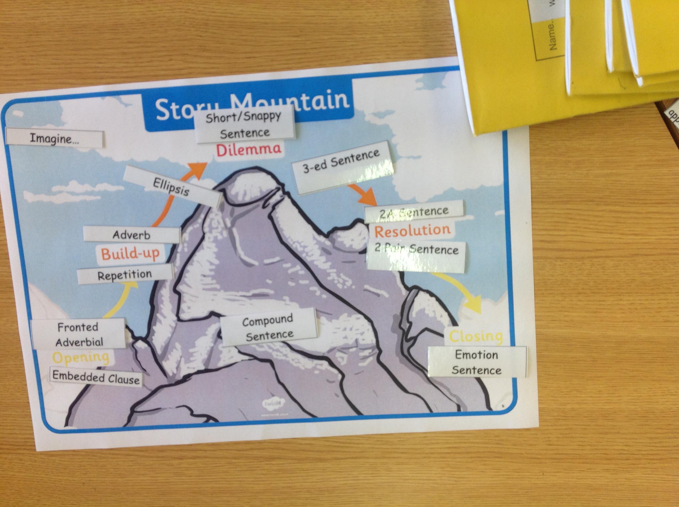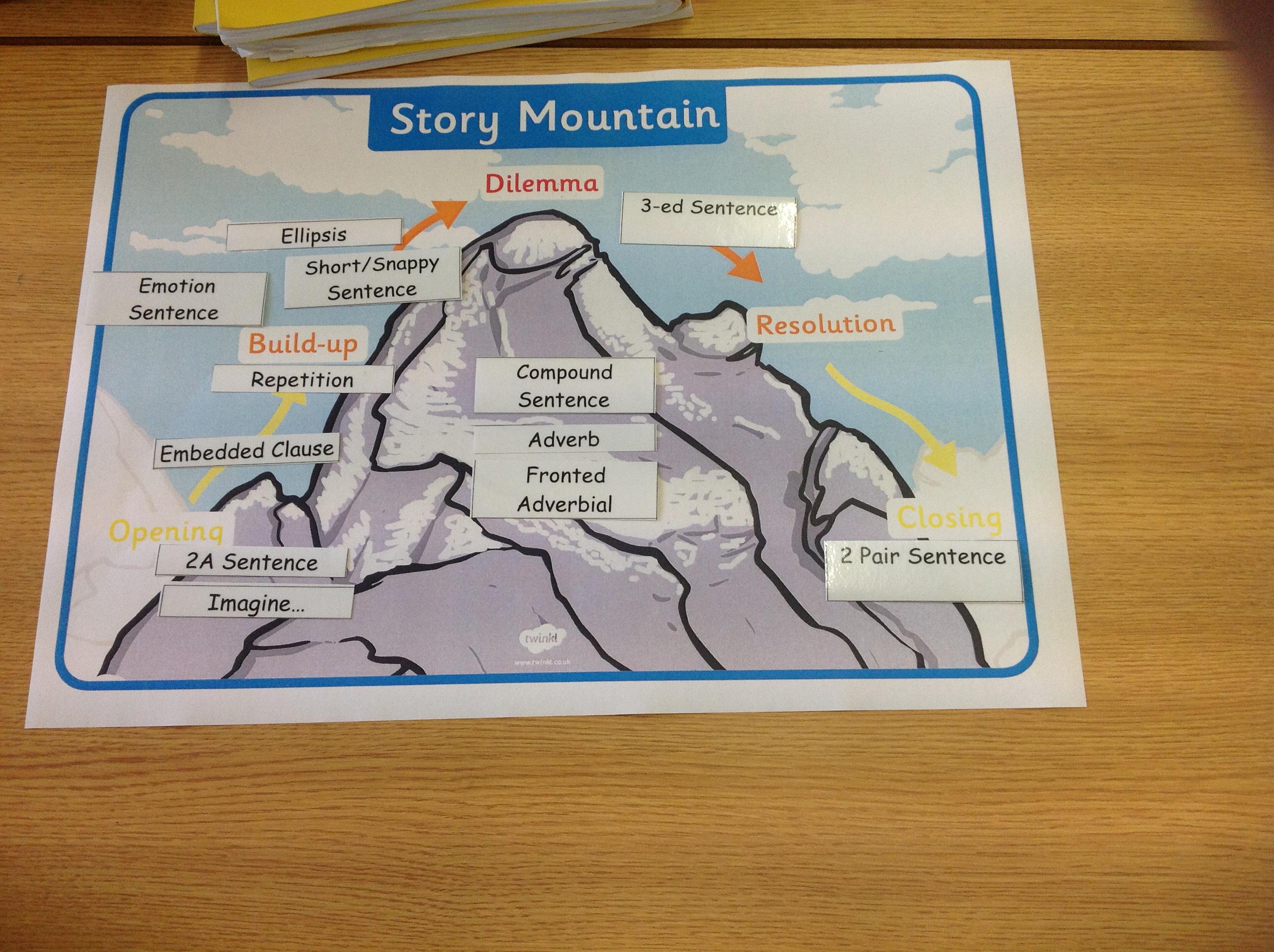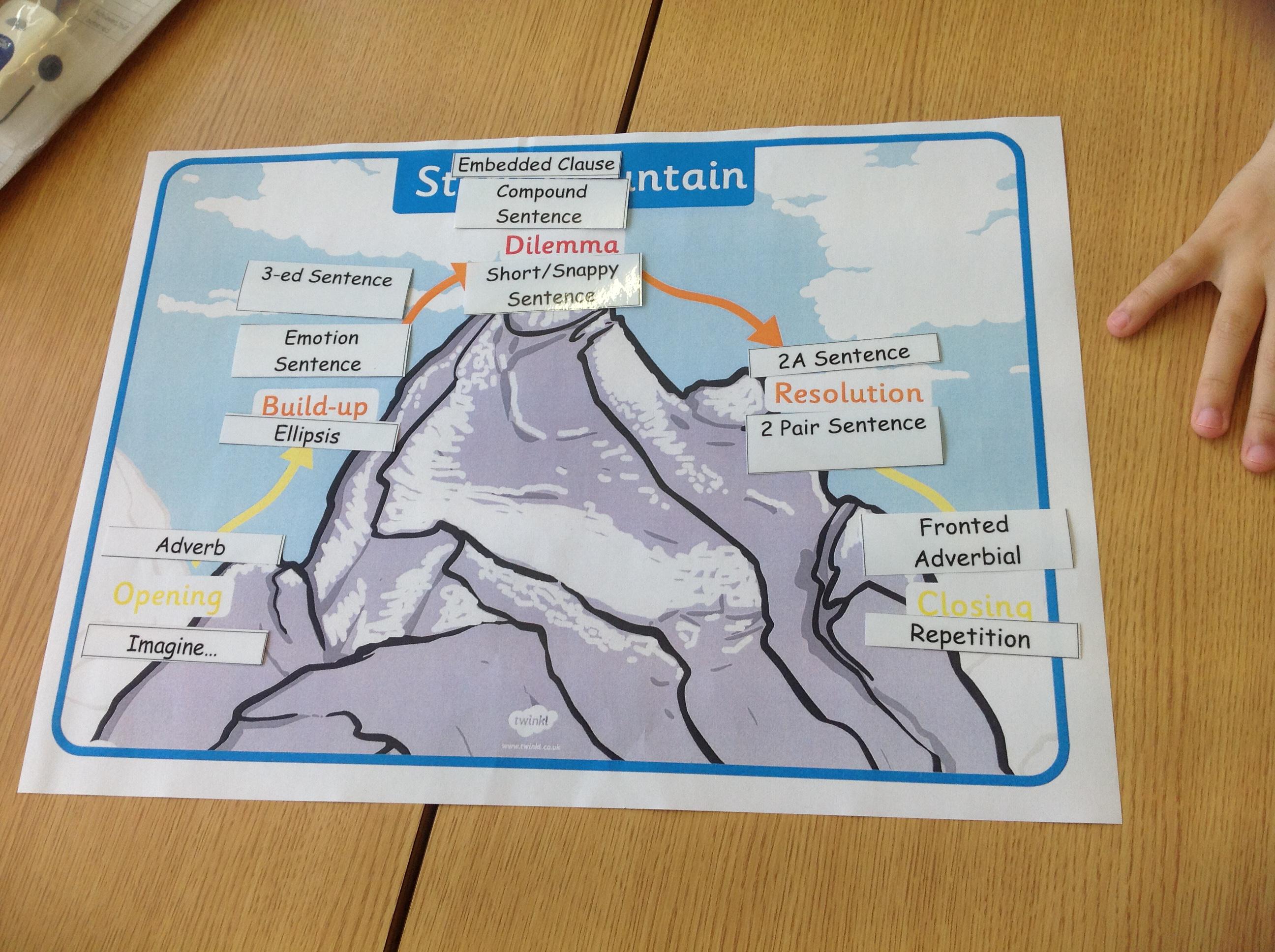 Today we used a story mountain to plan our story of The Way Back Home. We decided on different sentences that we might use at different points throughout the story.