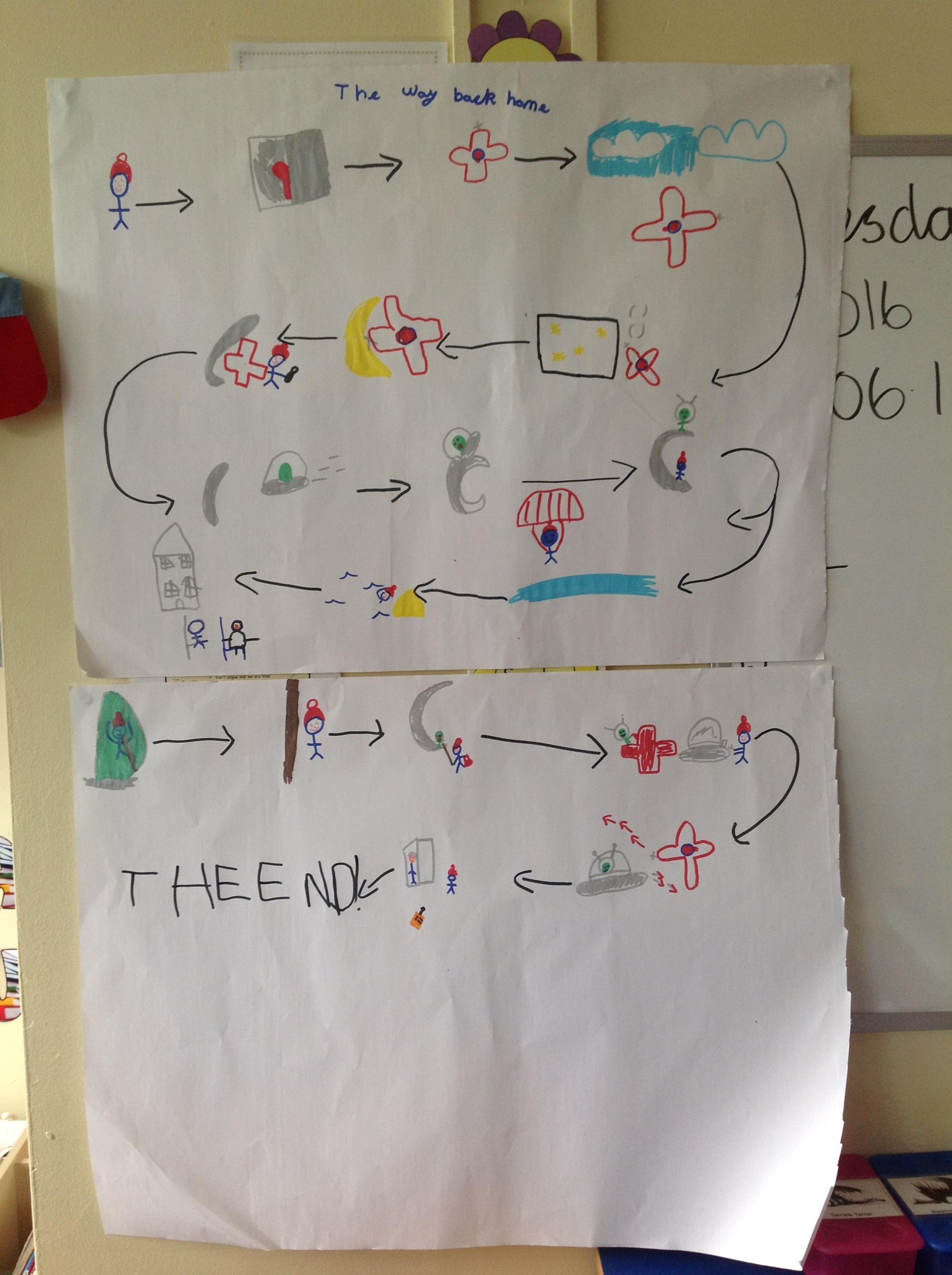 Today, we started to prepare for our story writing of The Way Back Home by sequencing the story. Some of us created a story map by drawing pictures to represent different parts of the story. The discussion on the tables was fantastic and great to see such super teamwork!