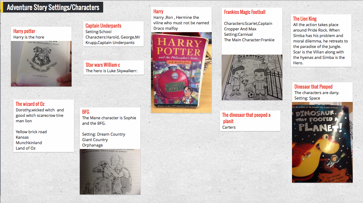 We've used padlet this week to help us to gather ideas from known adventure stories. We looked at how the stories opened, ended, settings, characters and key words/phrases!