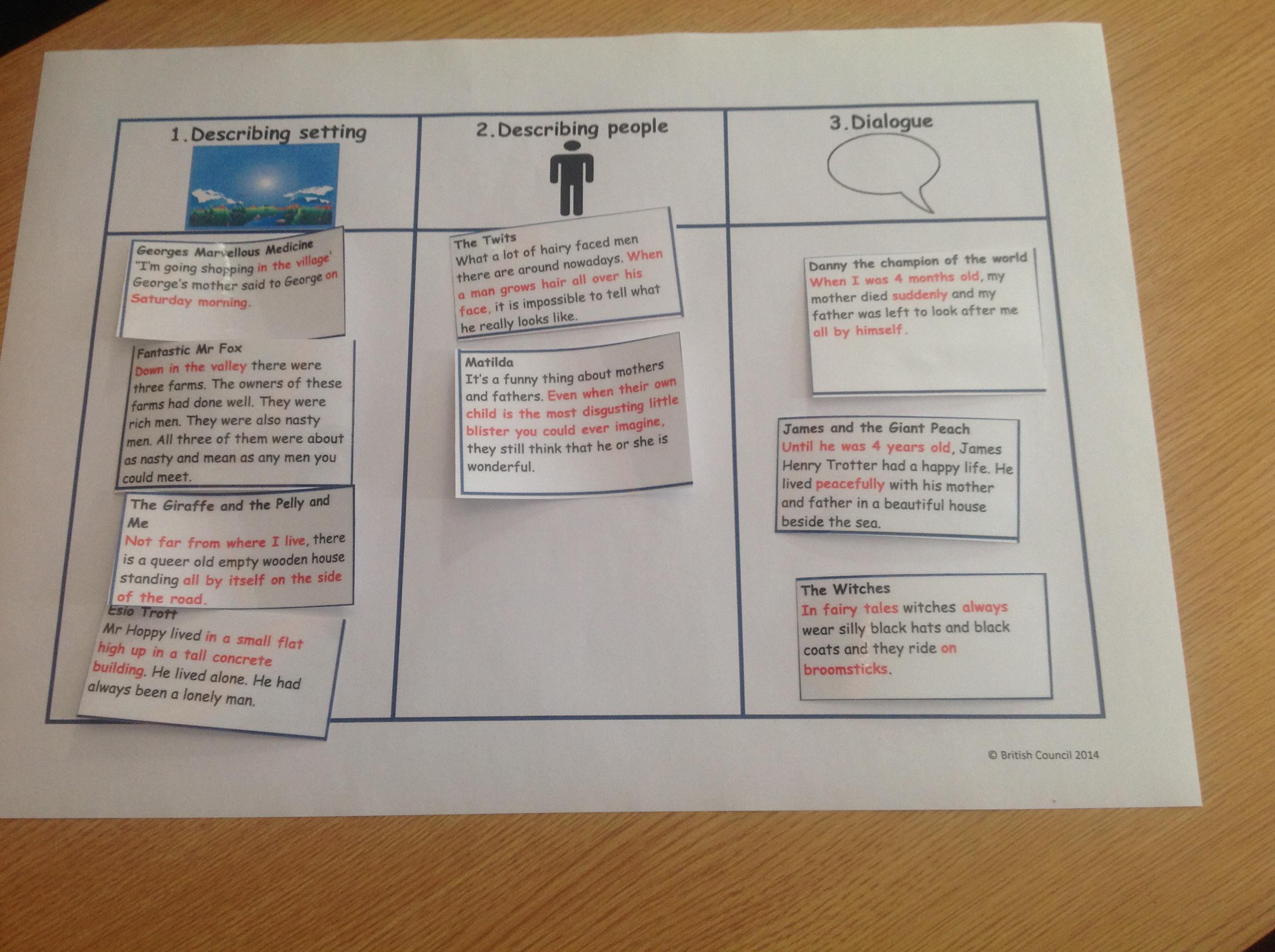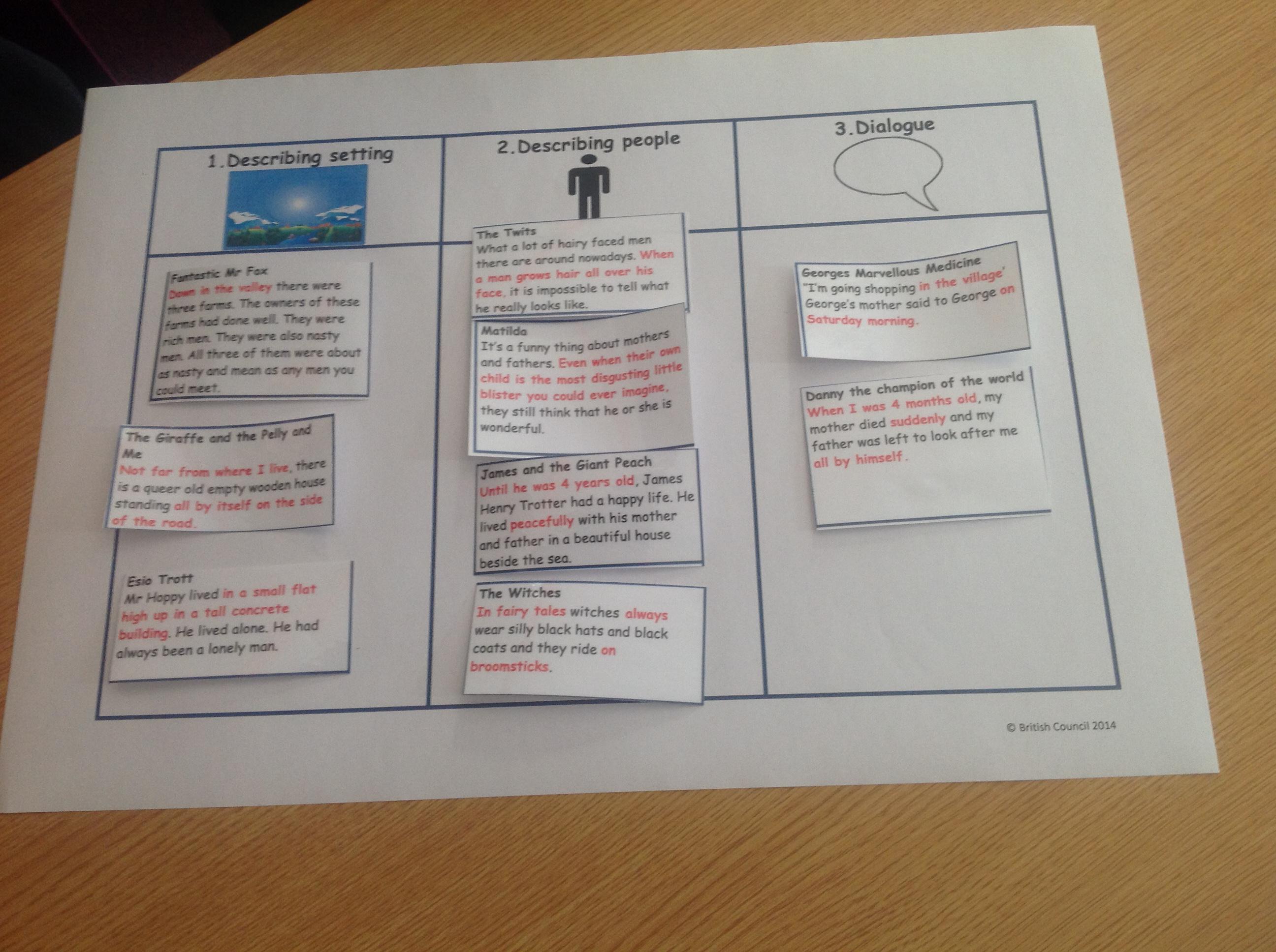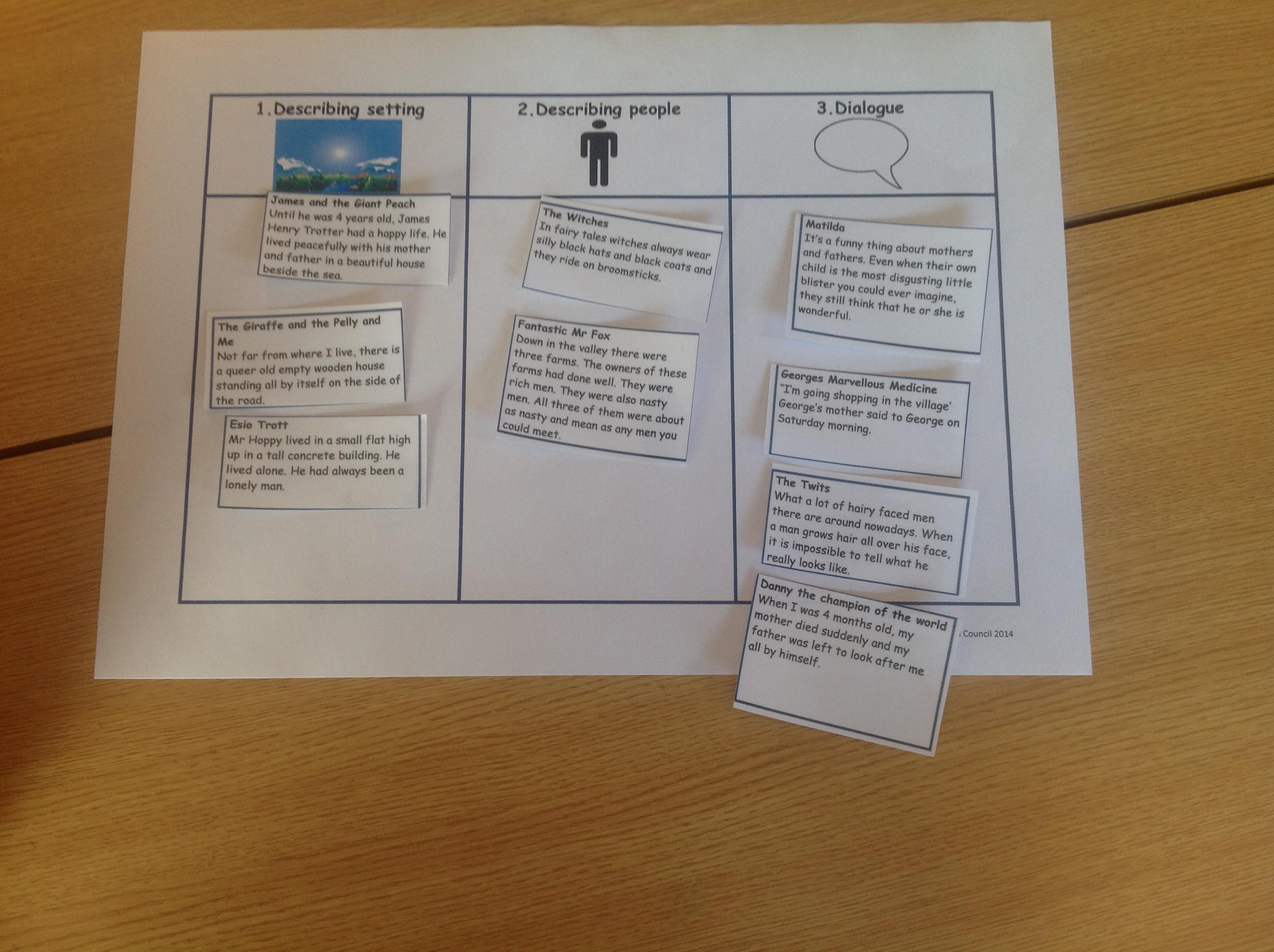 Today we looked at how Roald Dahl opens his stories with different types of adverbials. We had to sort them into whether they described a setting, person or used dialogue. Every group had a different idea which column some of the openers went, but could justify every decision made! Lovely discussions were had by every group!