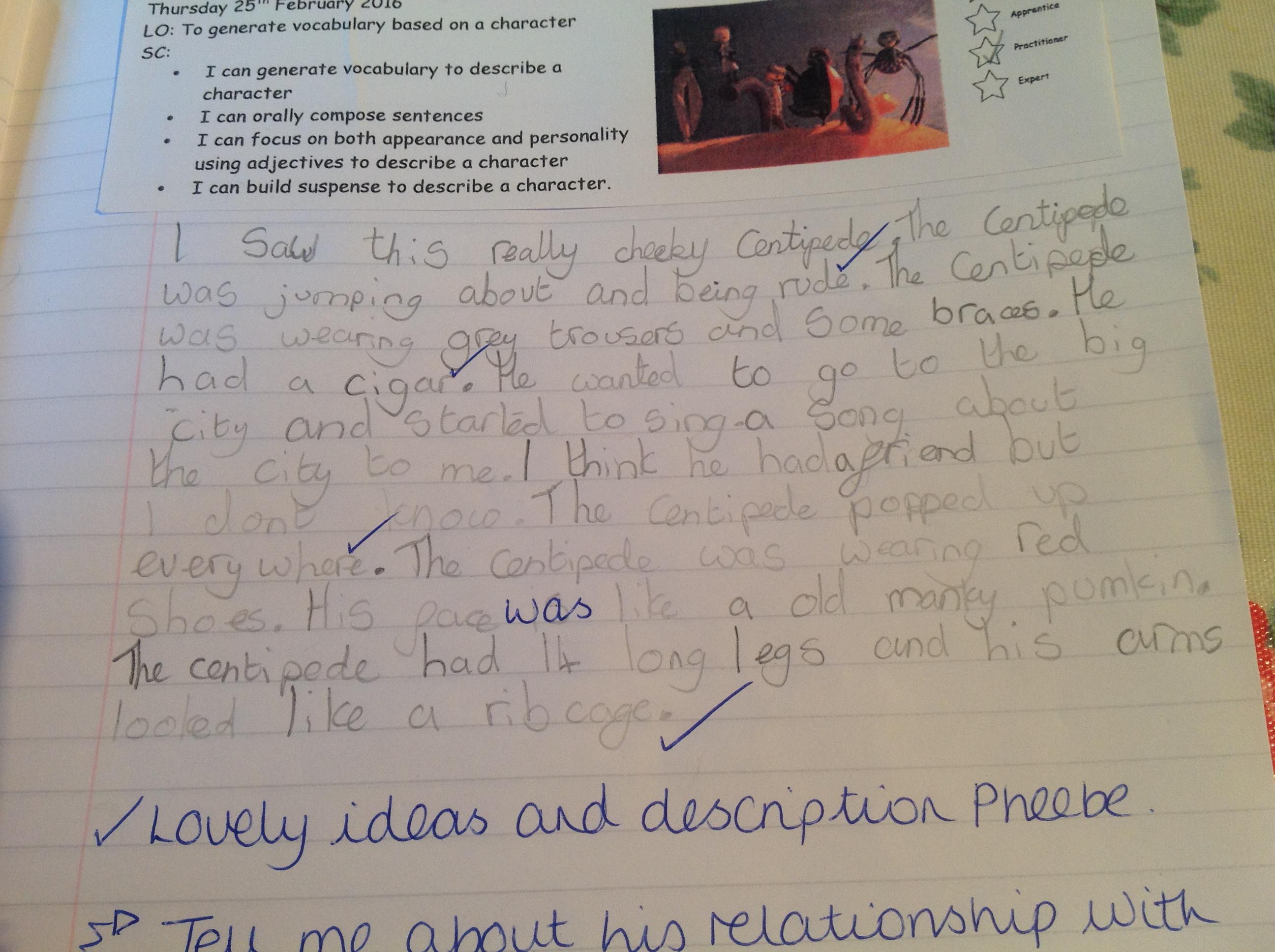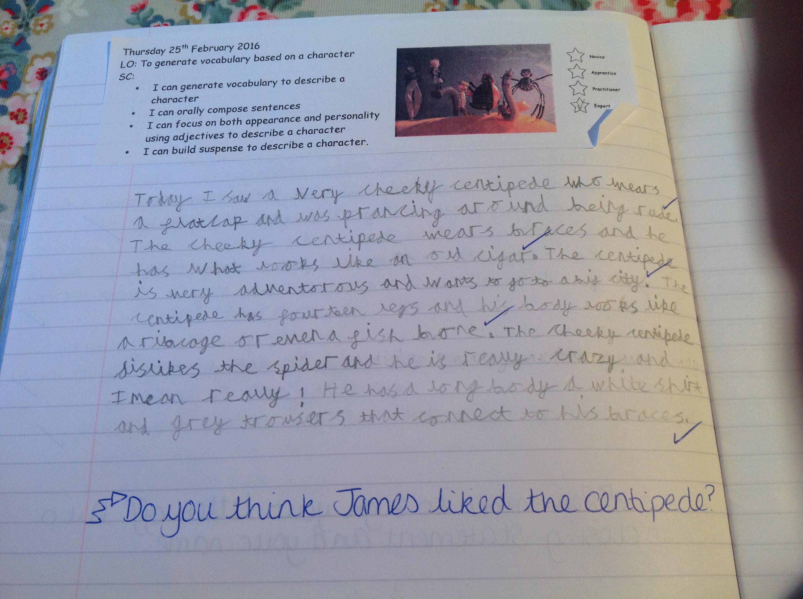 Today we have reached the part in the story where James enters the peach! We met all of the insect characters and made our own videos to describe each character!