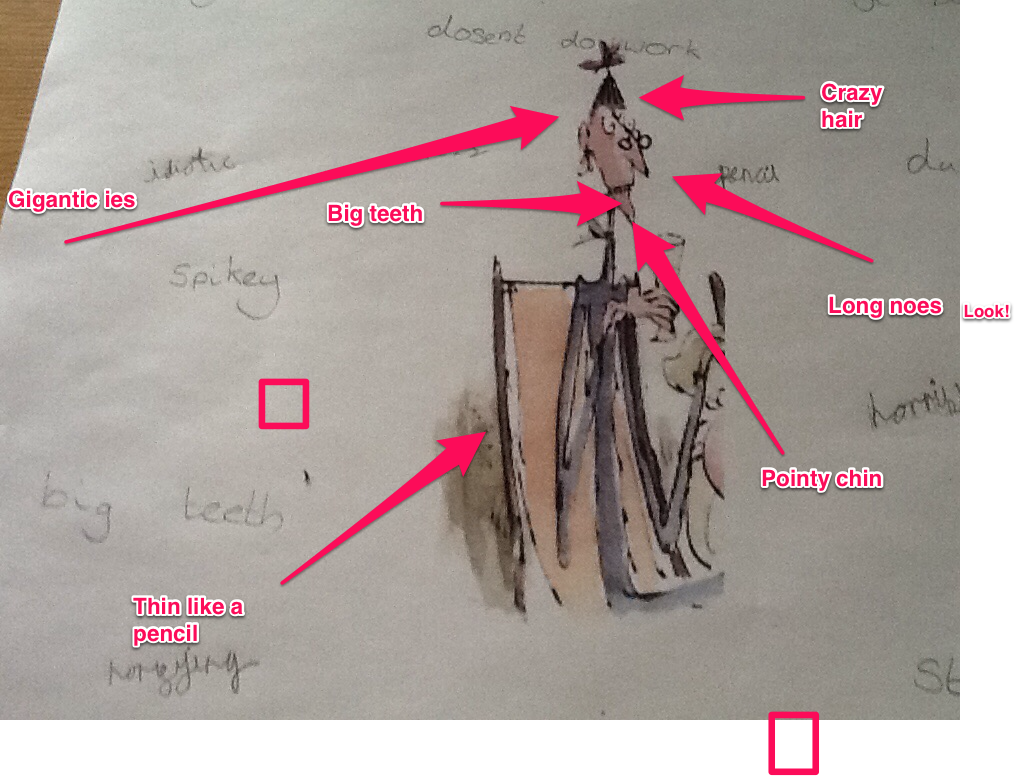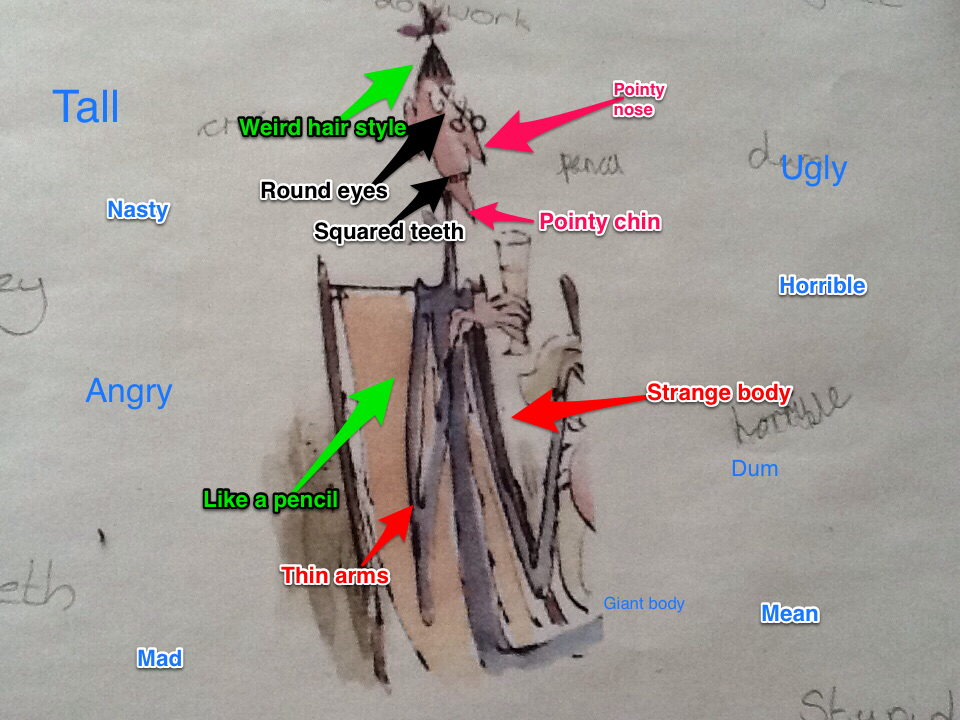 Today, we started to look at a new Roald Dahl story...James and the Giant Peach. We used Wordcloud and Skitch to help us to describe Aunt Sponge and Spiker!