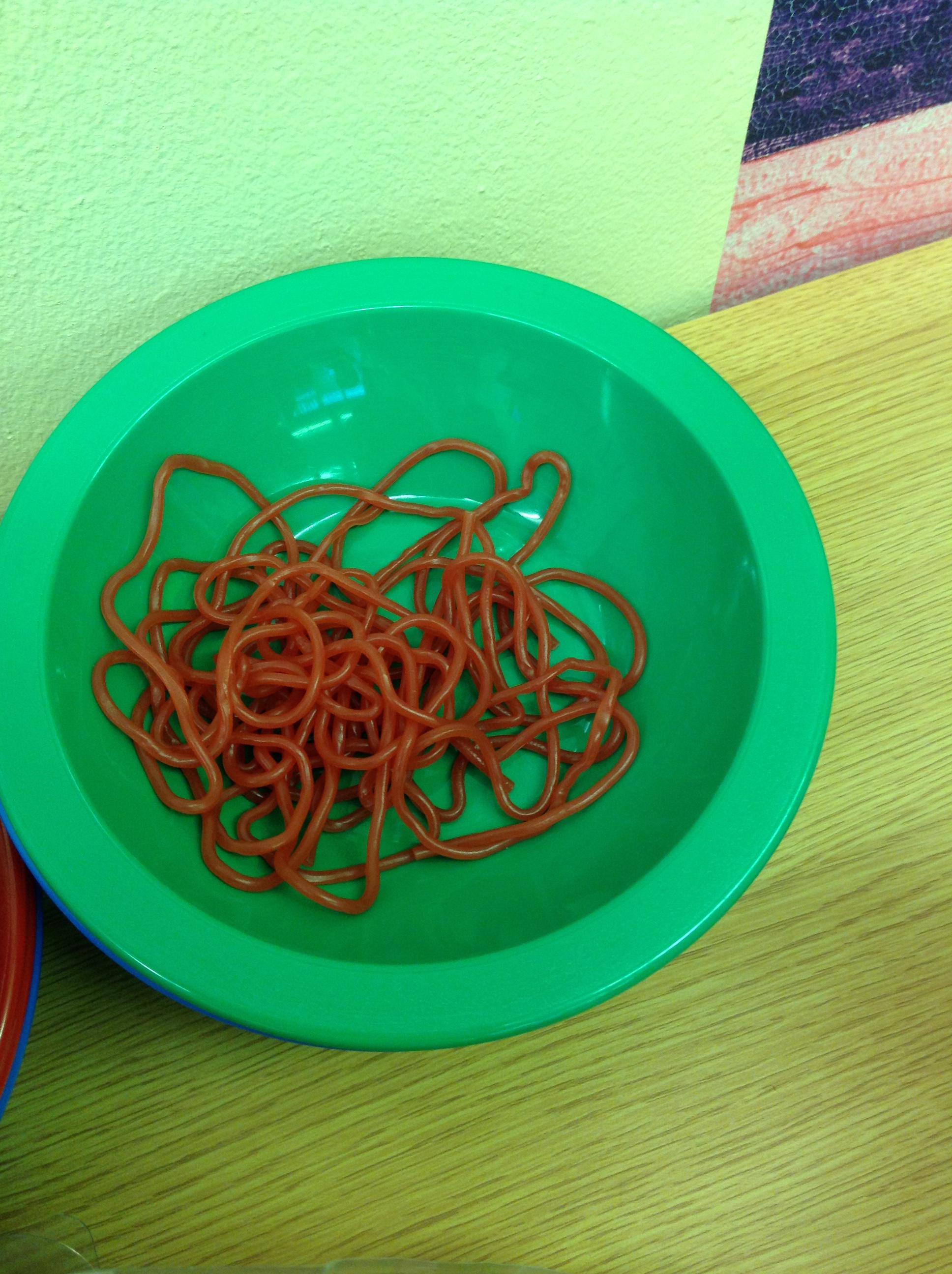 Today, we made the Twits a disgusting menu, just like their wormy spaghetti trick! We had lots of different food and we had to compare our food items to something revolting! What do you think we decided these foods were like? Rice - like - maggots? Kiwis - like - animal droppings?