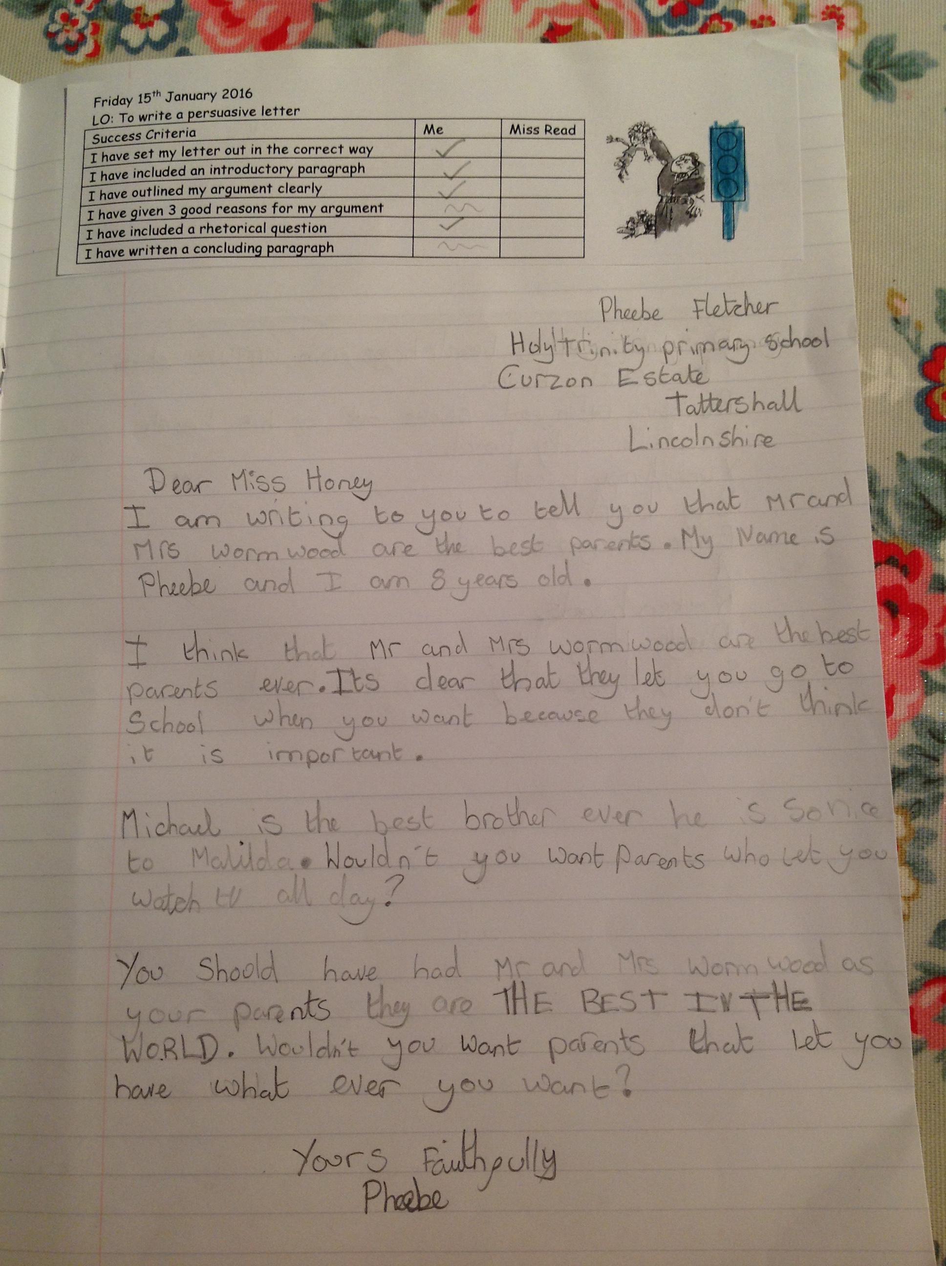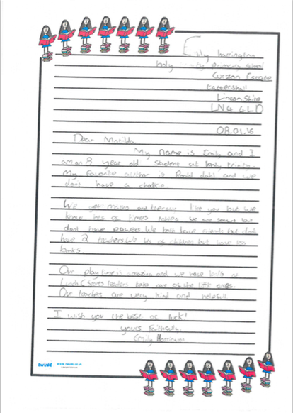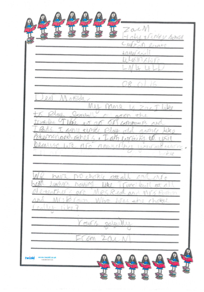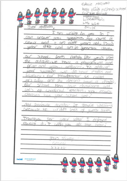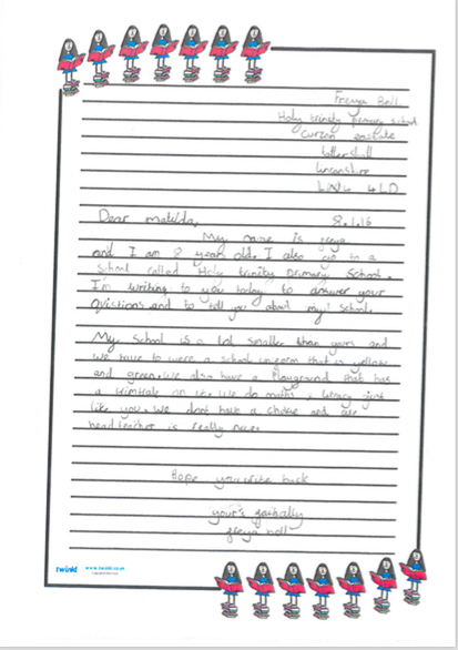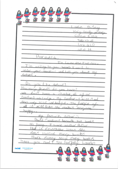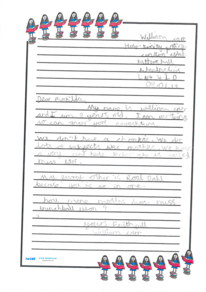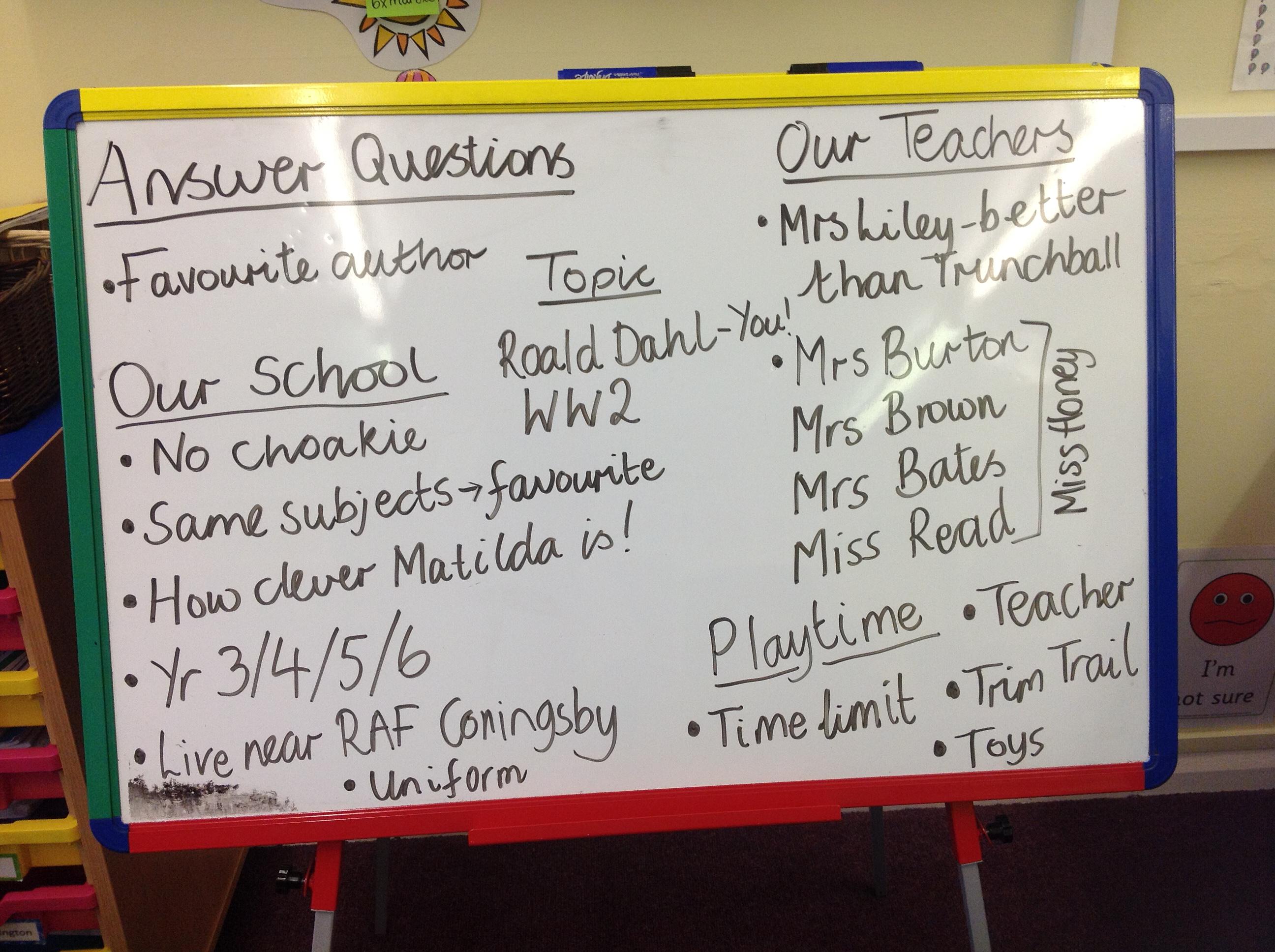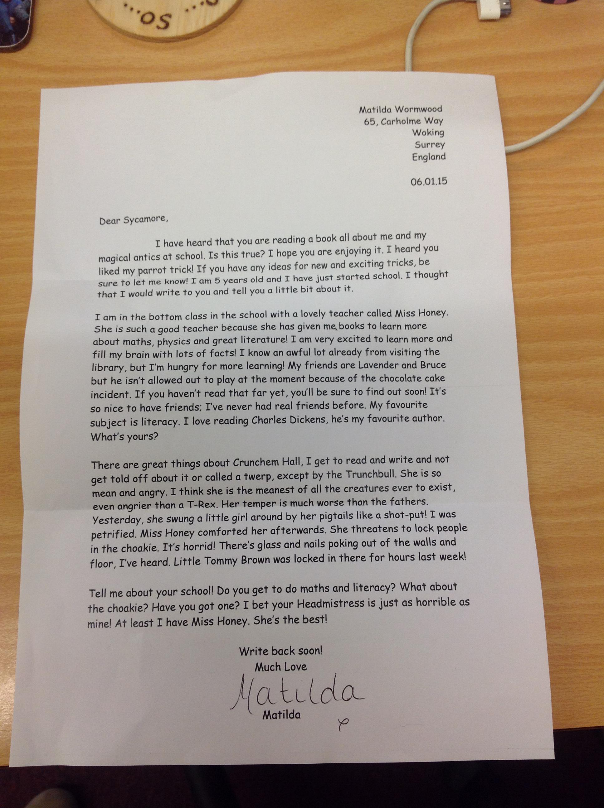 Today, we had a lovely surprise...a letter from Matilda! She told us all about her school and the dreaded Miss Trunchball. She asked us lots of questions so we decided to write her a letter back to explain that not all schools are like hers! Here are some of our ideas! Stay tuned for our full letters at the end of the week!