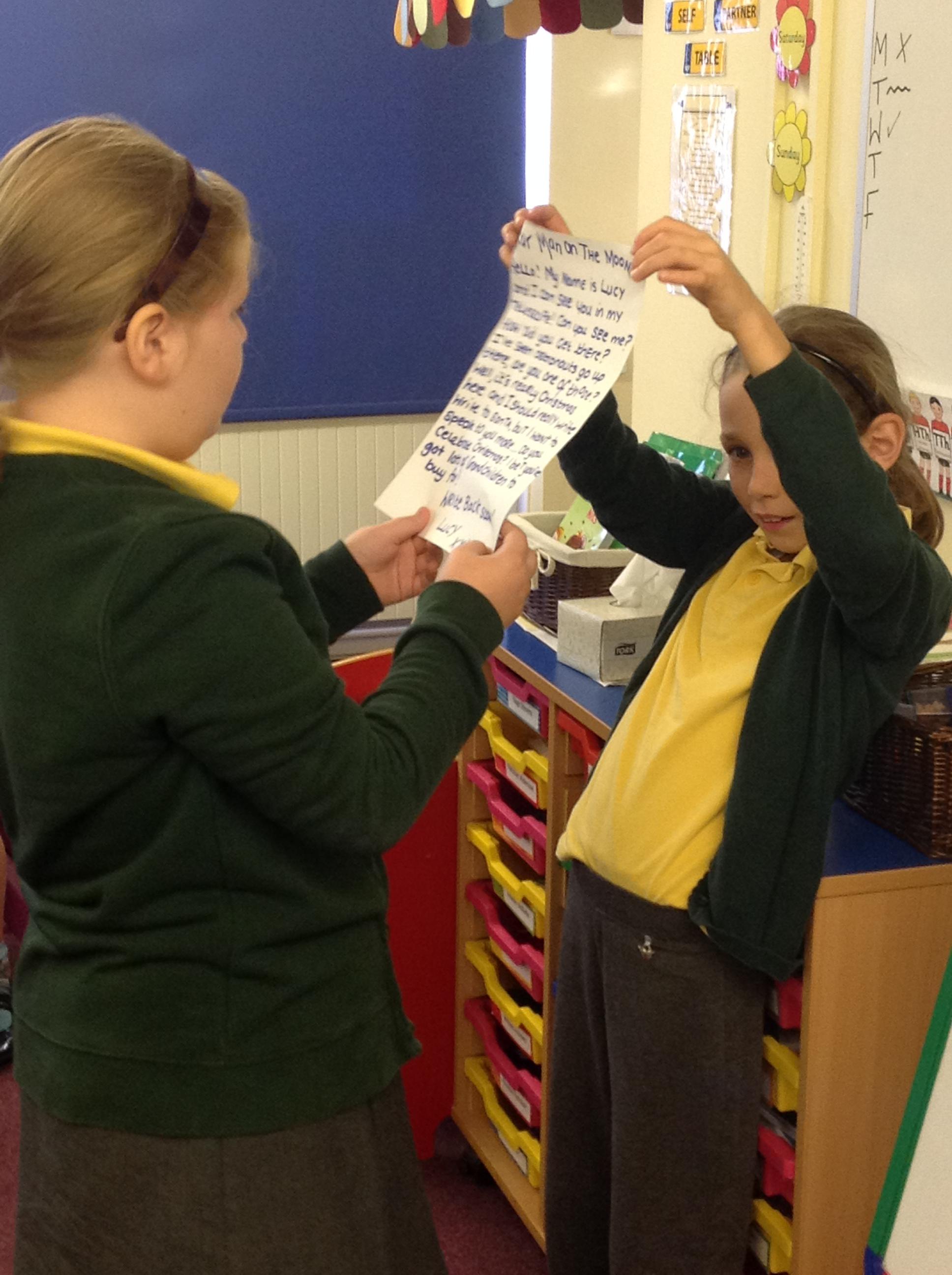 Sycamore had a surprise today when they came into the classroom...an arrow hanging from the ceiling. We were all very confused! When we had a look at it more closely, we discovered a letter from Lucy...the girl from the advert! We wrote a reply to Lucy as the man on the moon! Listen to the videos below for some of our ideas!