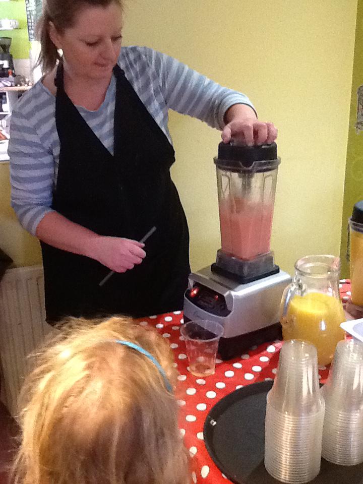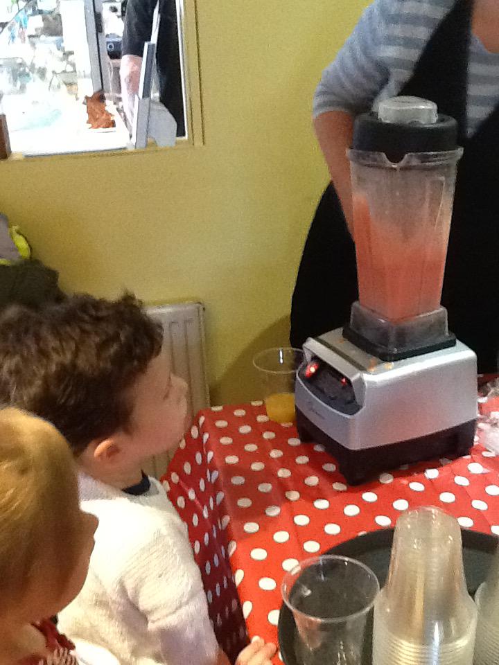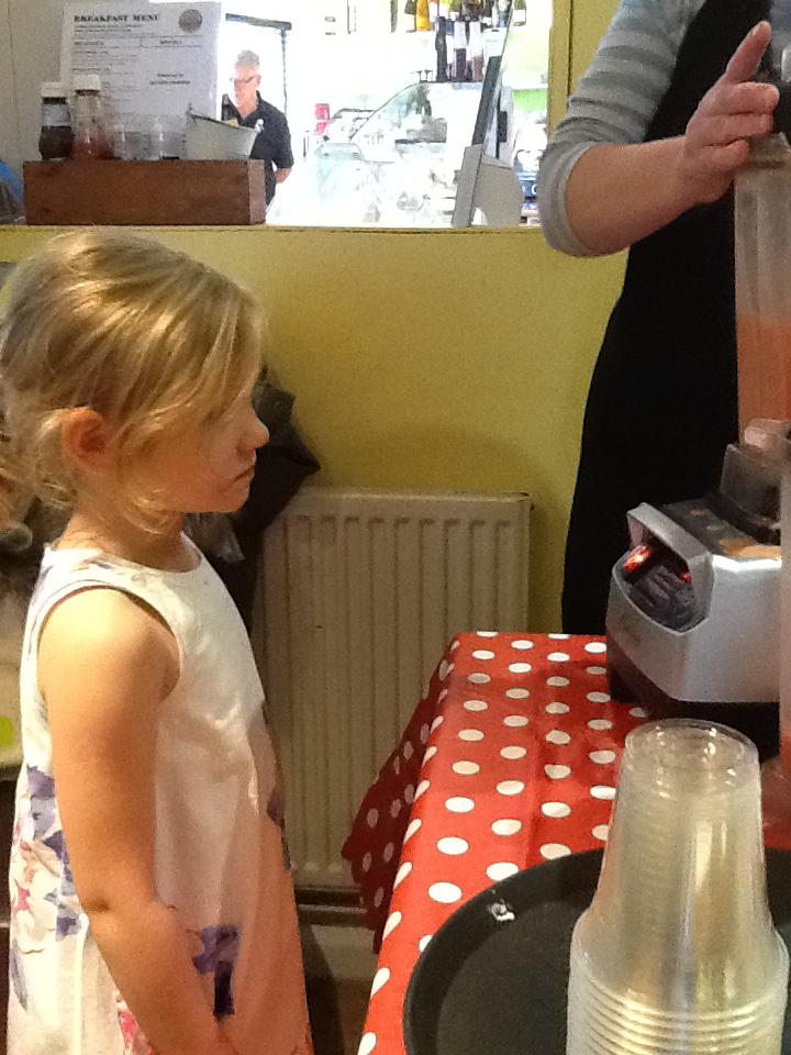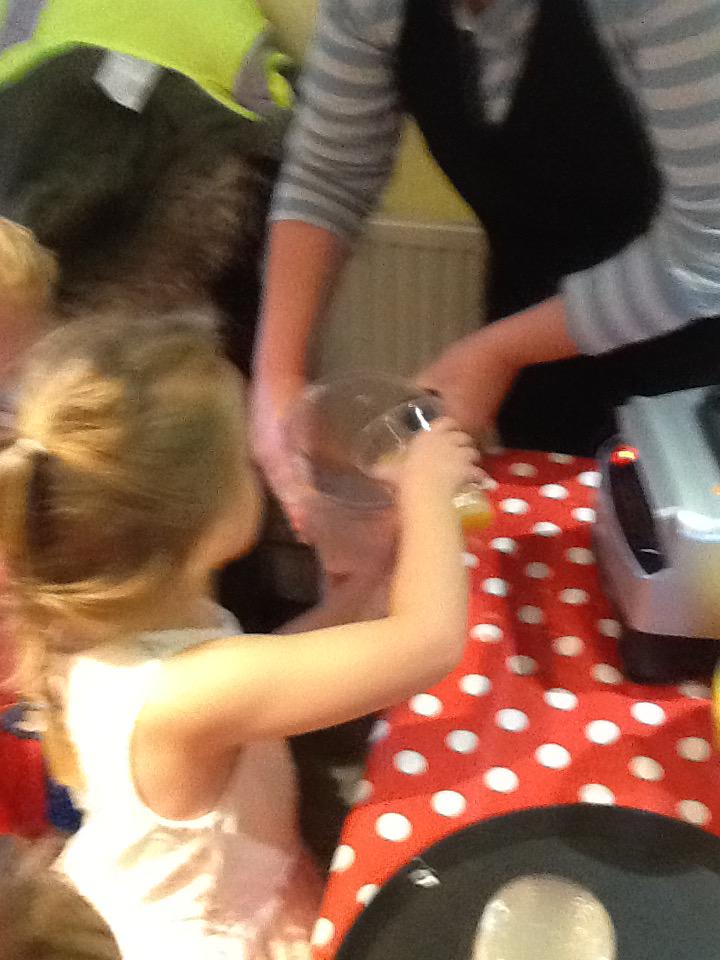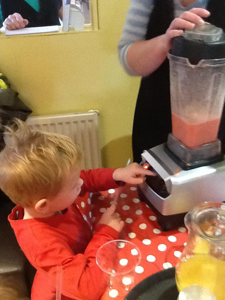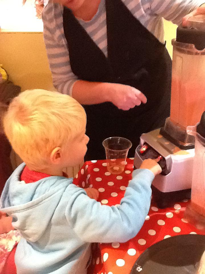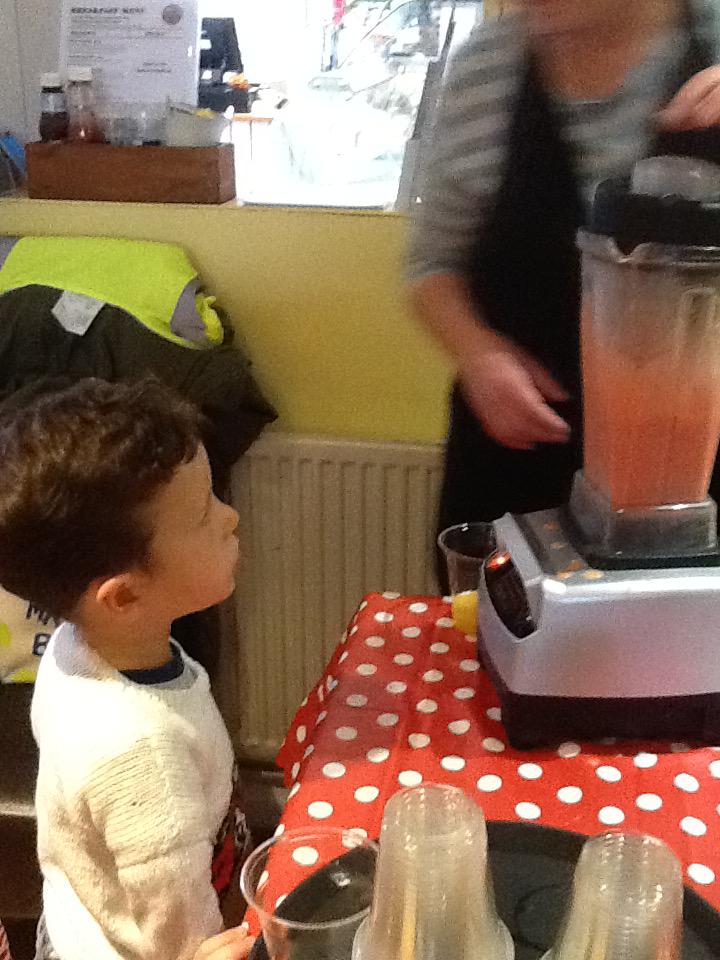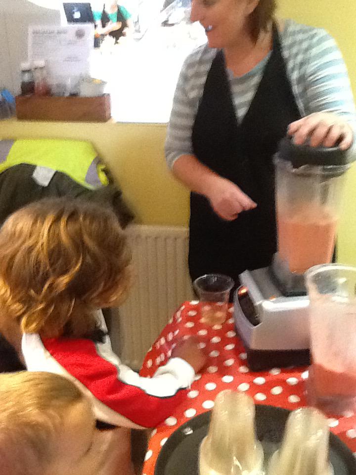 The children went on a lovely school trip today to the Ginger Cow Cafe, as they were taking great interests in making the role play area a cafe. Whilst there, they asked brilliant questions about What they have to do in a cafe? and What food they make? After this the children were allowed to help make smoothies. They had a choice of strawberry or strawberry and banana. They had to put the fruit in the machine, add some pure orange juice, press the button to start and wait! They were very excited! The children got to drink the smoothie they made and had a delicious treat, which was chocolate cake! This went down very well! The children all behaved extremely well and we are very proud of them all. Also we are extremely greatful to our parent helpers for Their support.
