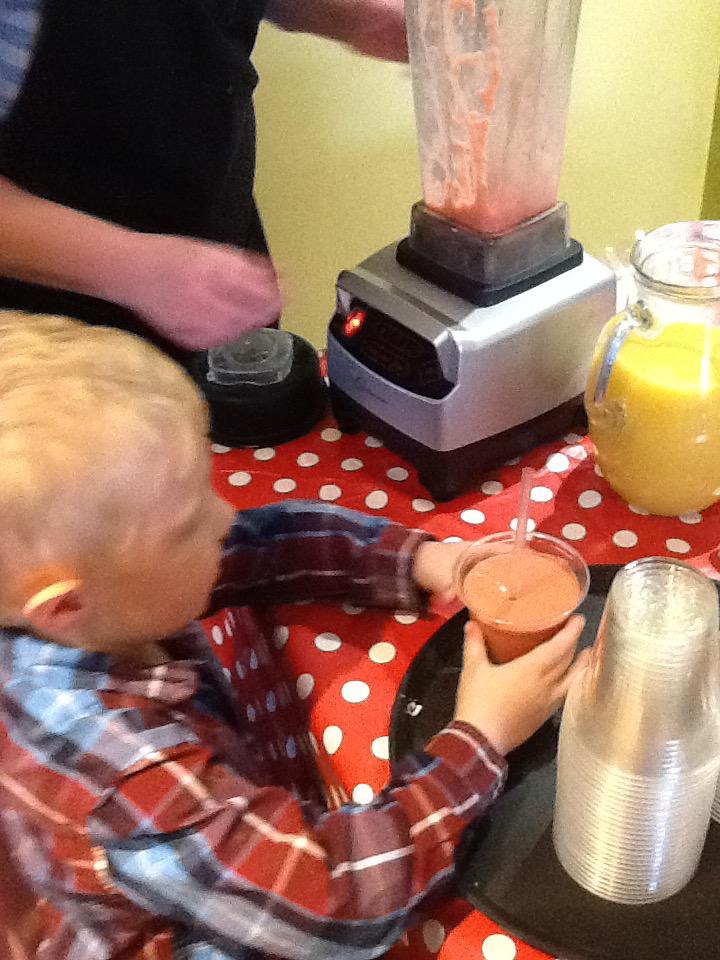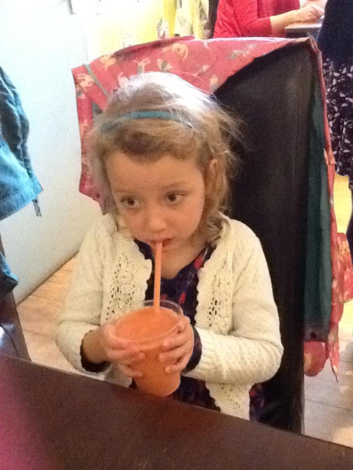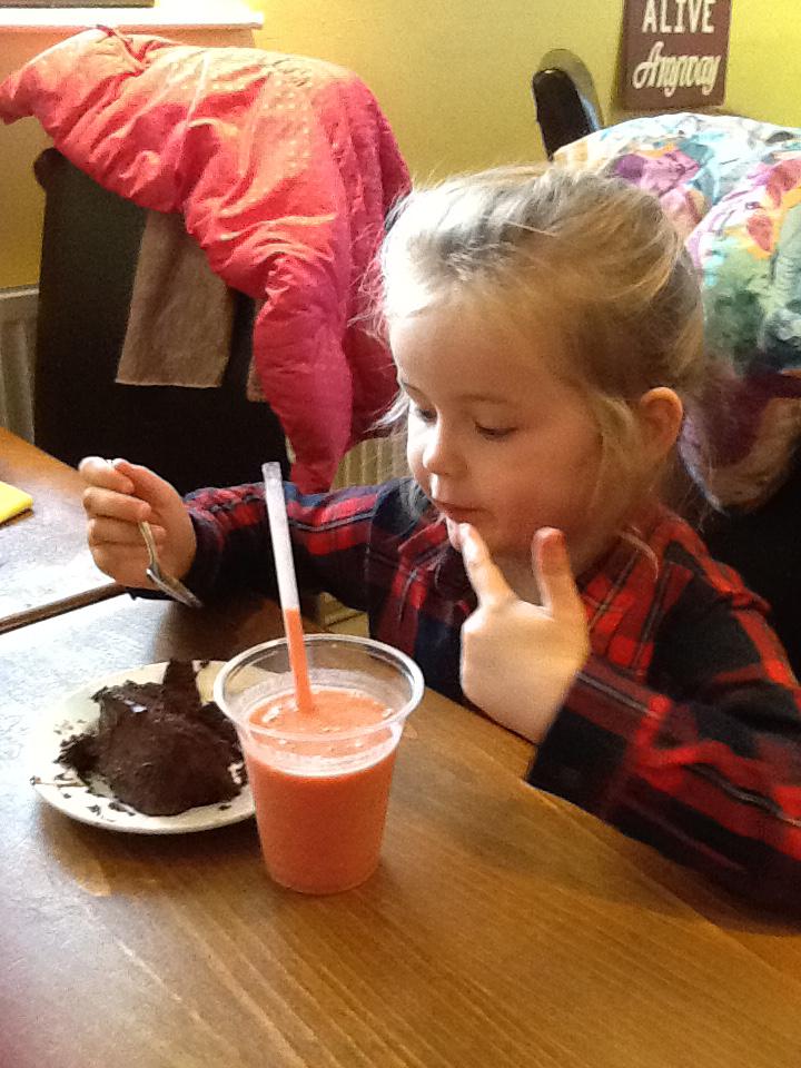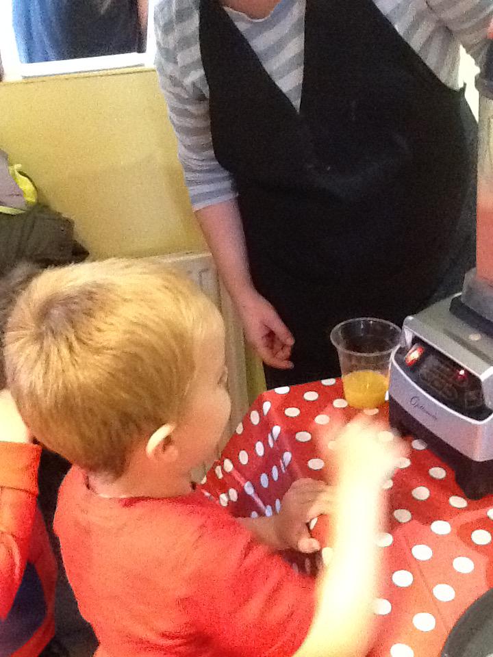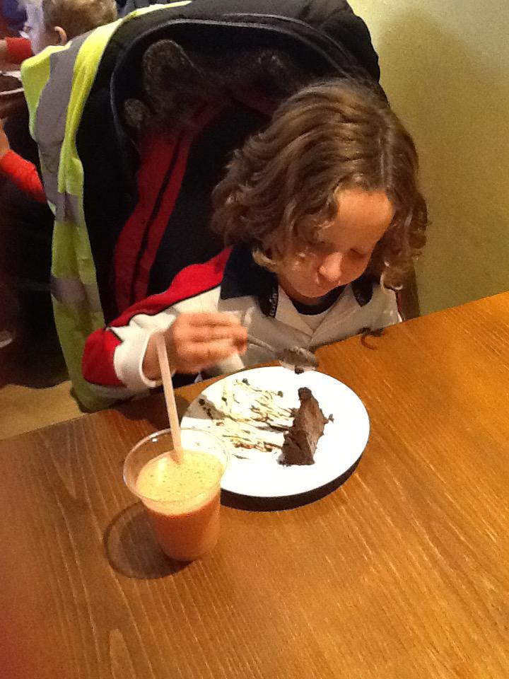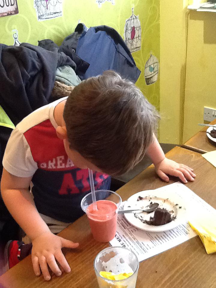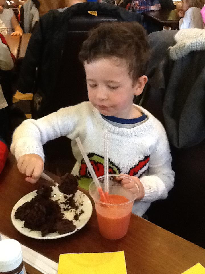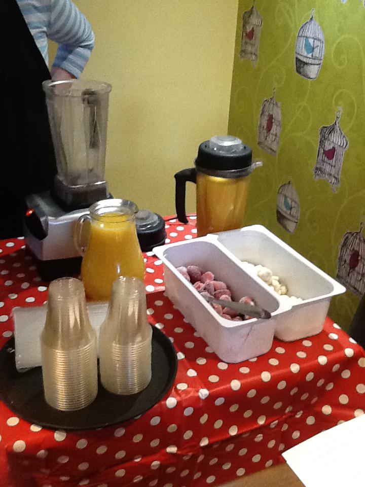 The children went on a lovely school trip today to the Ginger Cow Cafe, as they were taking great interests in making the role play area a cafe. Whilst there, they asked brilliant questions about What they have to do in a cafe? and What food they make? After this the children were allowed to help make smoothies. They had a choice of strawberry or strawberry and banana. They had to put the fruit in the machine, add some pure orange juice, press the button to start and wait! They were very excited! The children got to drink the smoothie they made and had a delicious treat, which was chocolate cake! This went down very well! The children all behaved extremely well and we are very proud of them all. Also we are extremely greatful to our parent helpers for Their support.