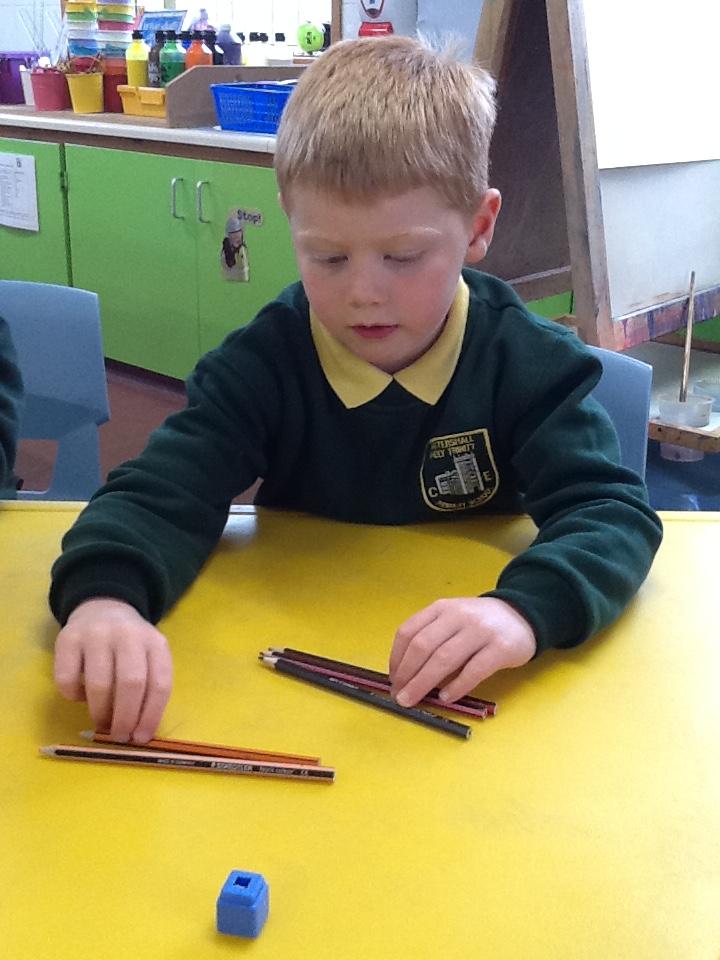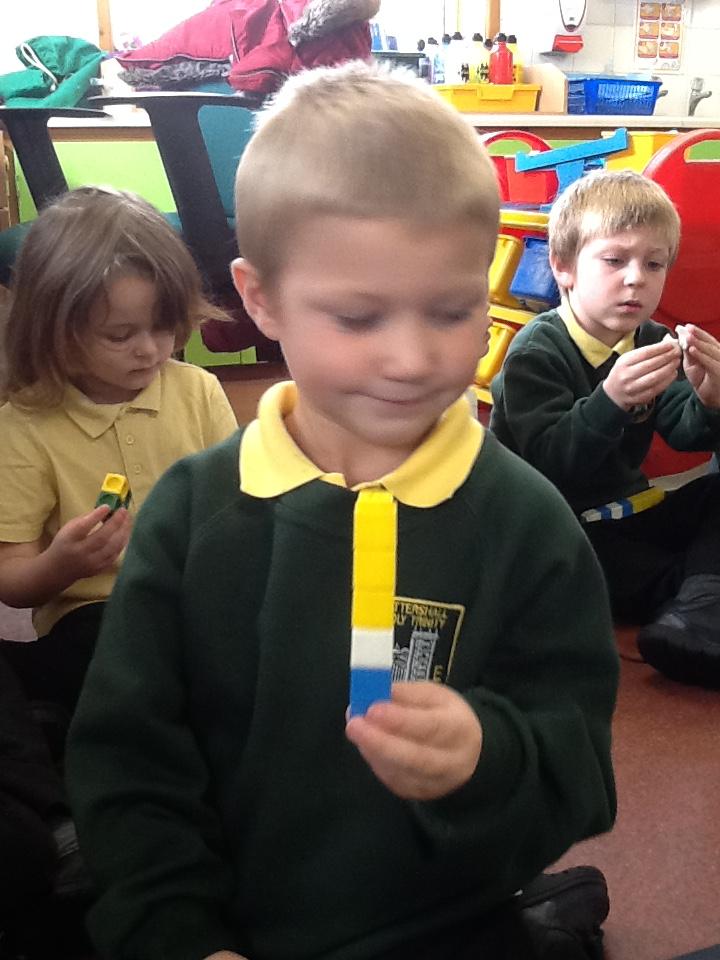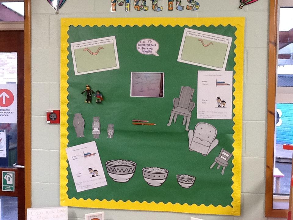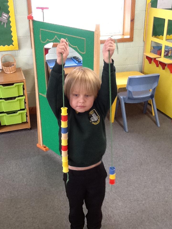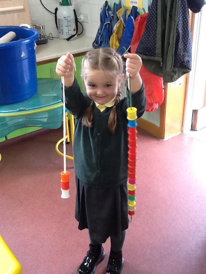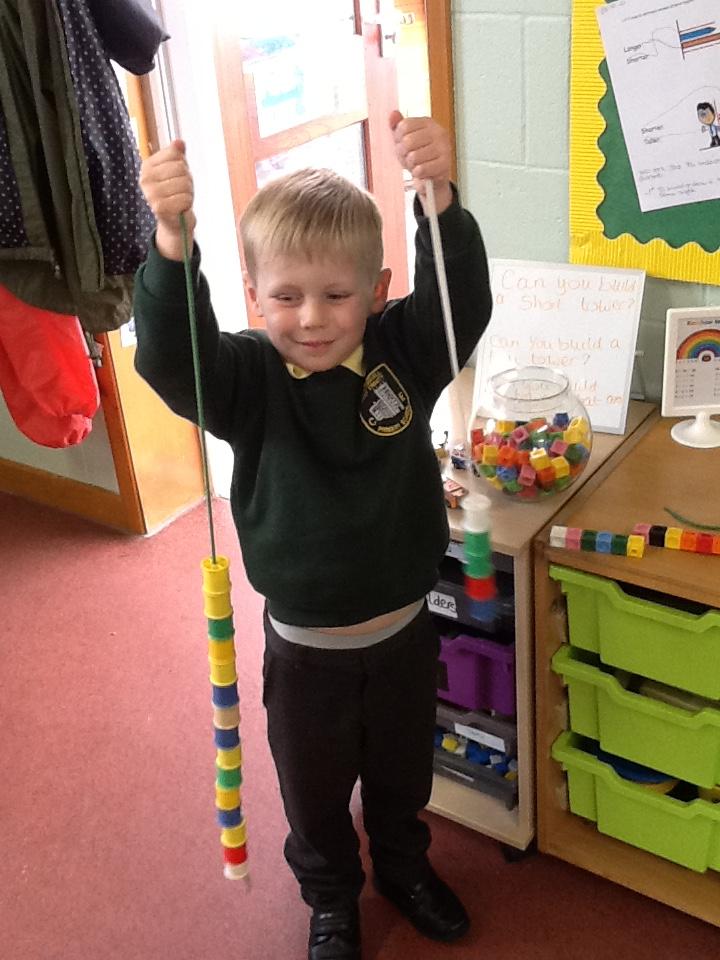 This week in maths the children have been looking at length. They have had to use vocabulary such as longest, shortest and tallest. In their activity, the children have had to show understanding by building towers or threading cotton reels on string and tell me which is the longest and which is the shortest.