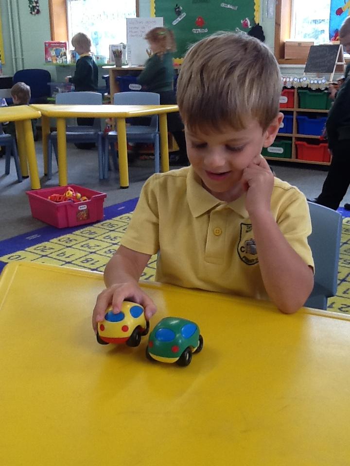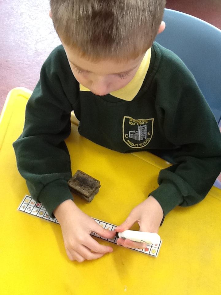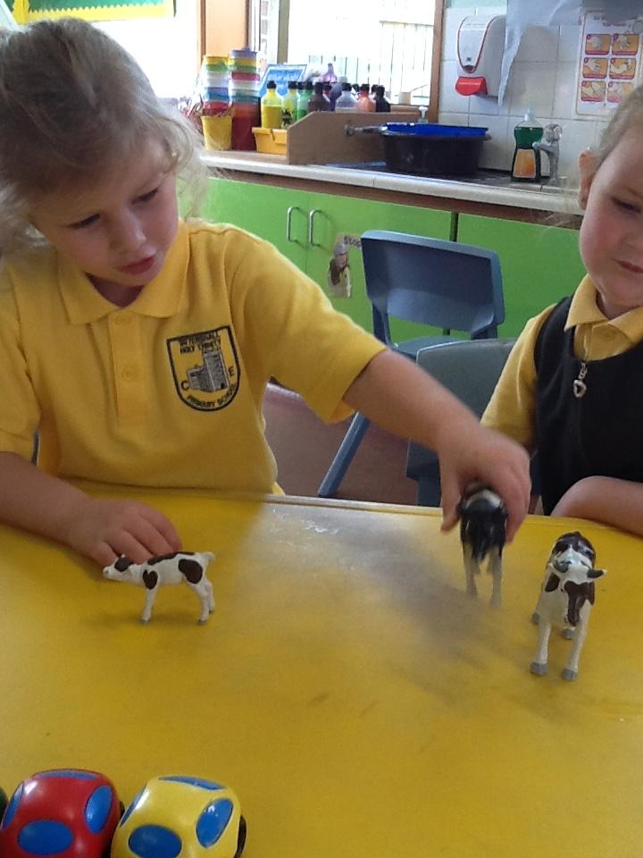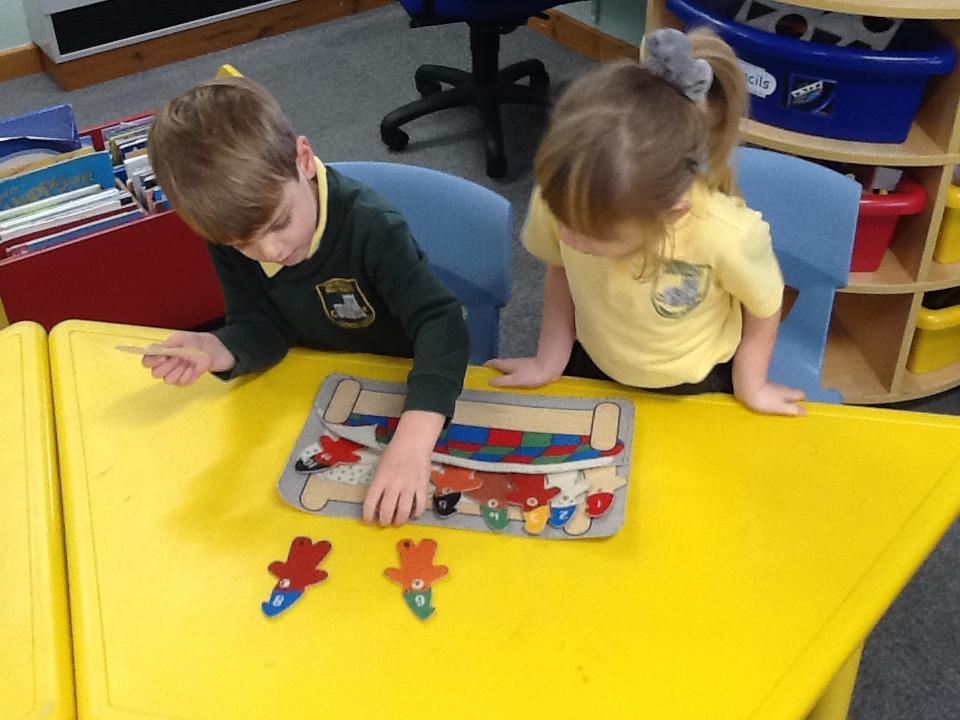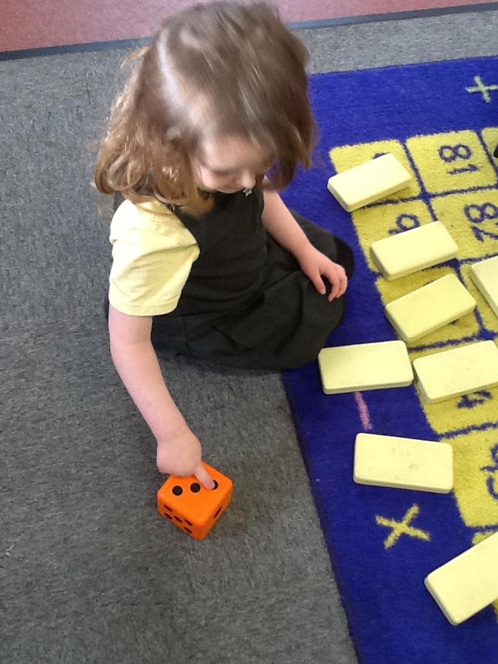This week the children have been looking at 'More' and 'Less'. They have played games where they have had to roll the dice and put that amount of oranges on the tree. They had to roll it again and add that amount of apples to the tree. The children then decided which tree had more fruit and which tree had less fruit. In addition to this, the children had to place dominos face down on the floor. The children took it in turns to roll the die. They had to choose a domino, count the spots and decide weather the domino or the die had the most spots. The children really got to grips with 'More' and 'Less' this week!