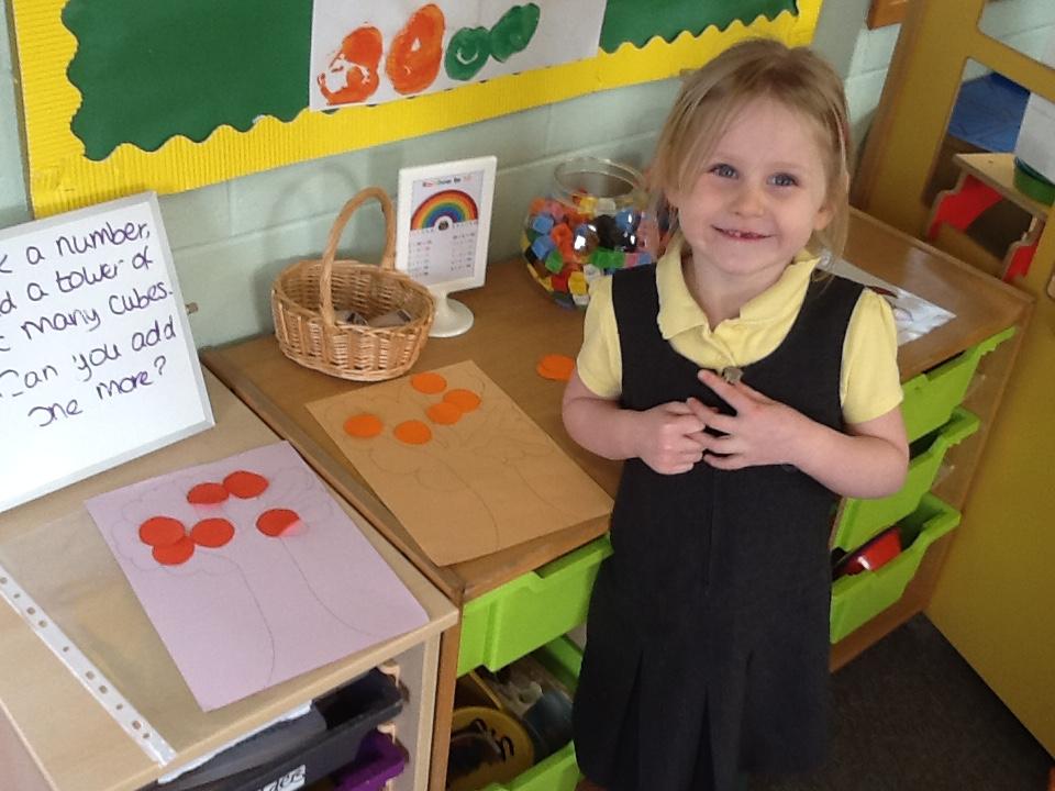The children have been learning numbers between 1 and 5 this week. We have looked at different ways to make 5 using part whole models, representing numbers using objects and then seeing numbers in a different way by looking at dot cards.