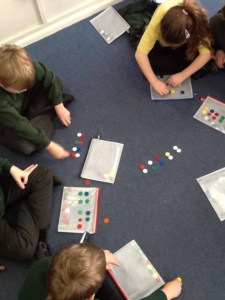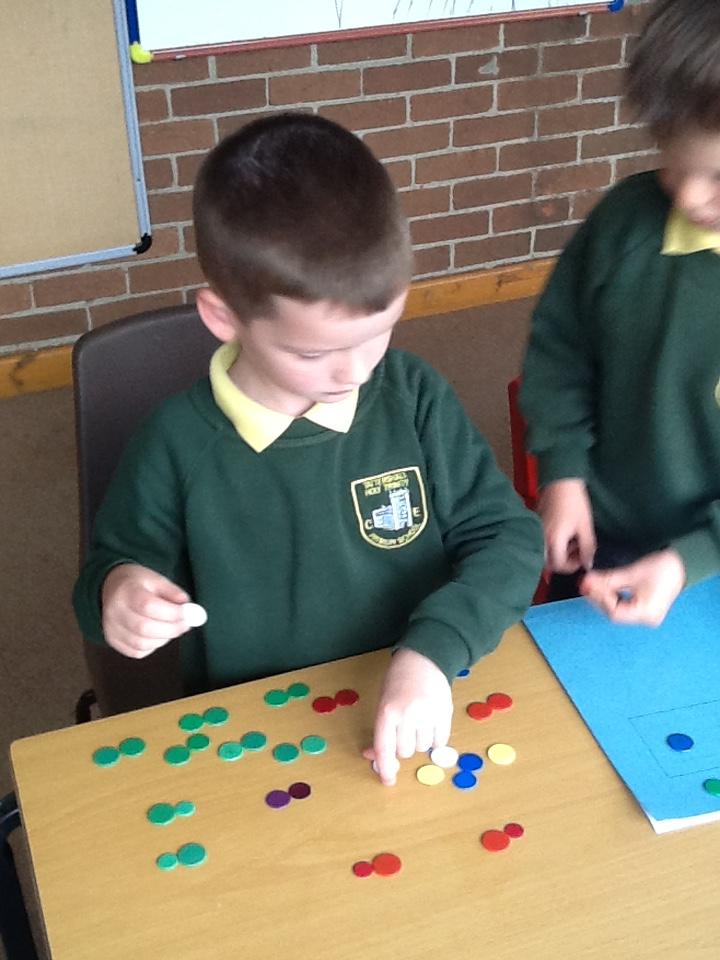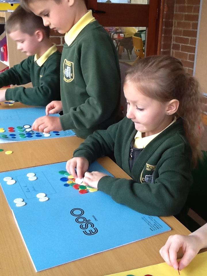 Today in maths, Willow Class have been making groups of counters by sharing. Year 2 worked on dividing into equal groups of 2 and 5.