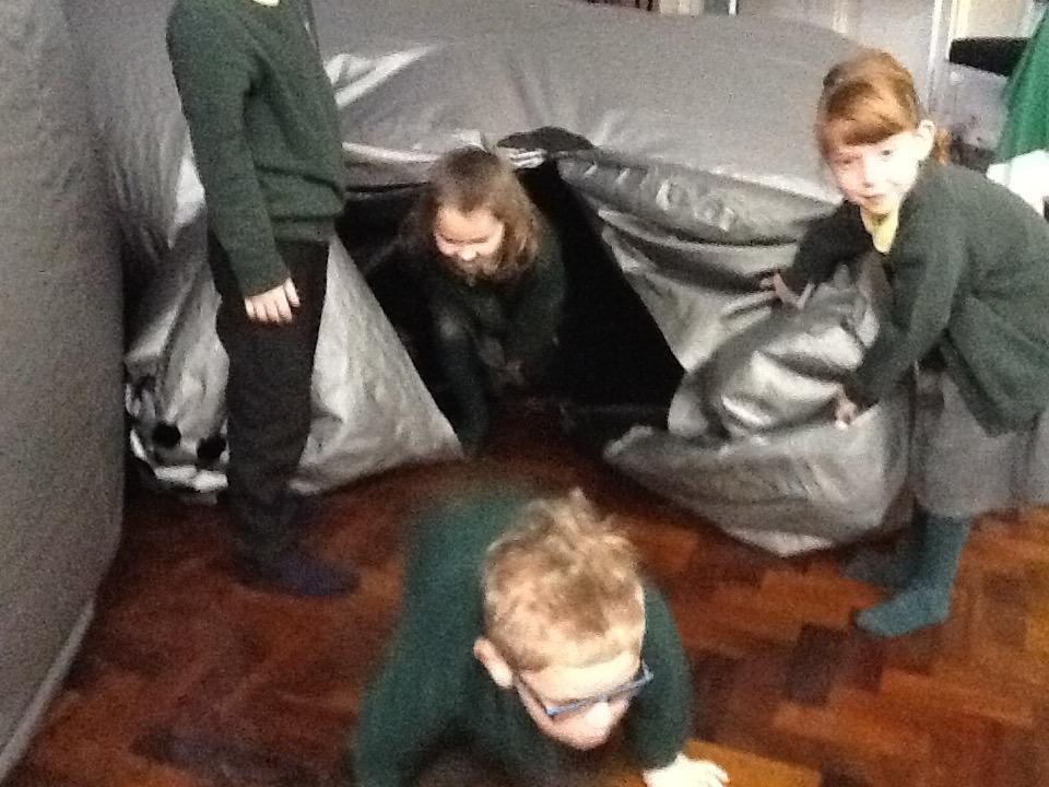 On Tuesday we had a very special visitor in school. He brought with his a huge silver dome! We very carefully crawled into the dome to discover it was like been outside at night. We learnt all about the difference between day and night and what some of the stars in the sky are called. It was a fantastic experience!