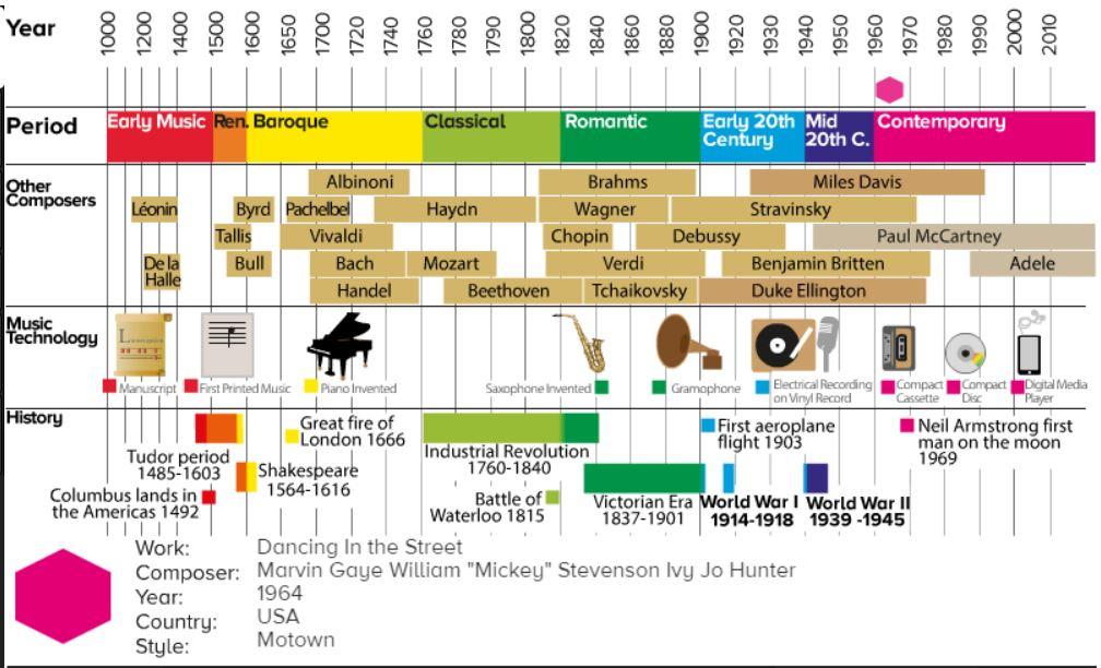 Along with this, the children will discuss the structure of each piece and how it makes them feel. We will also place this era of music on a timeline and link it to more recent artists, who have been inspired.