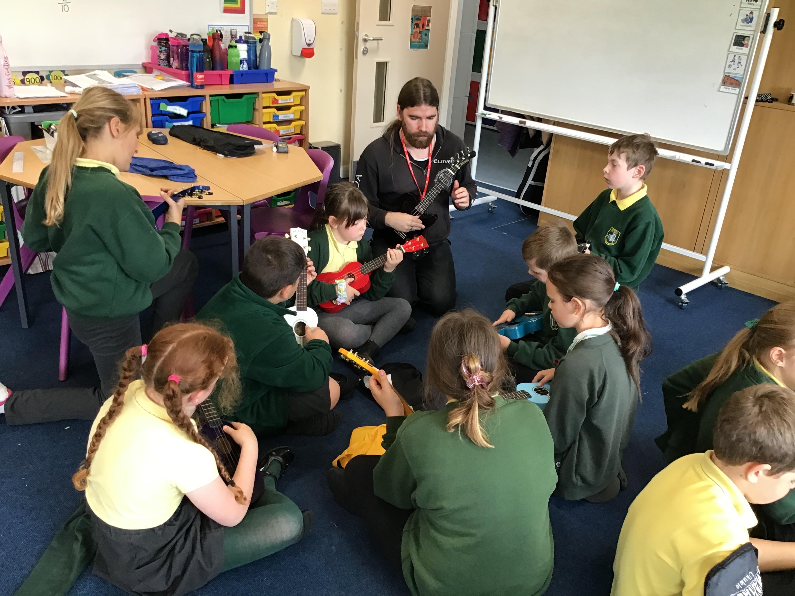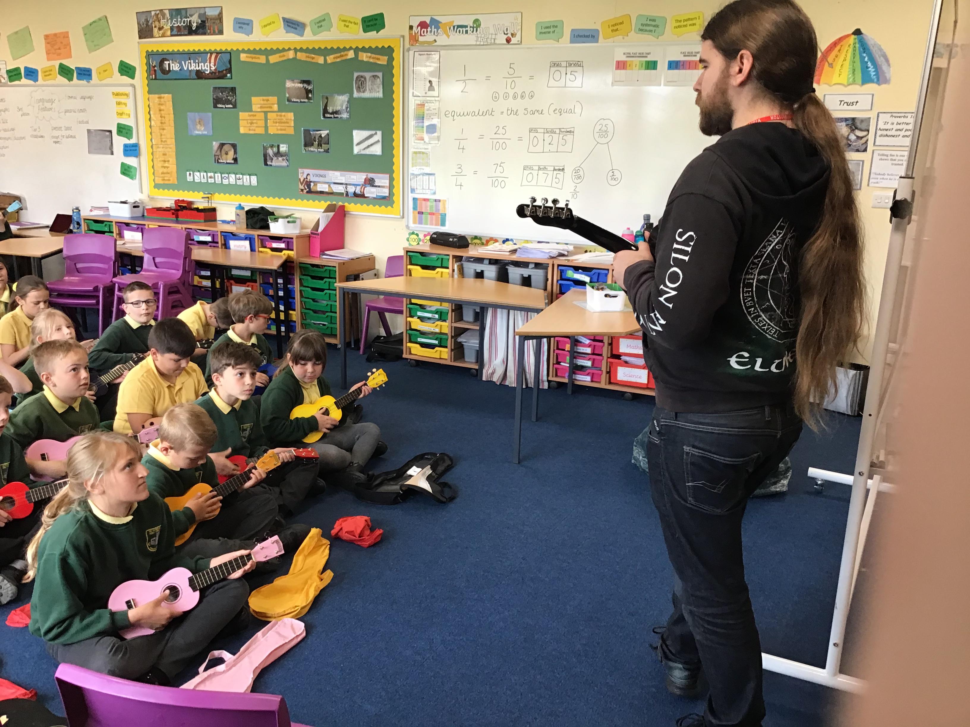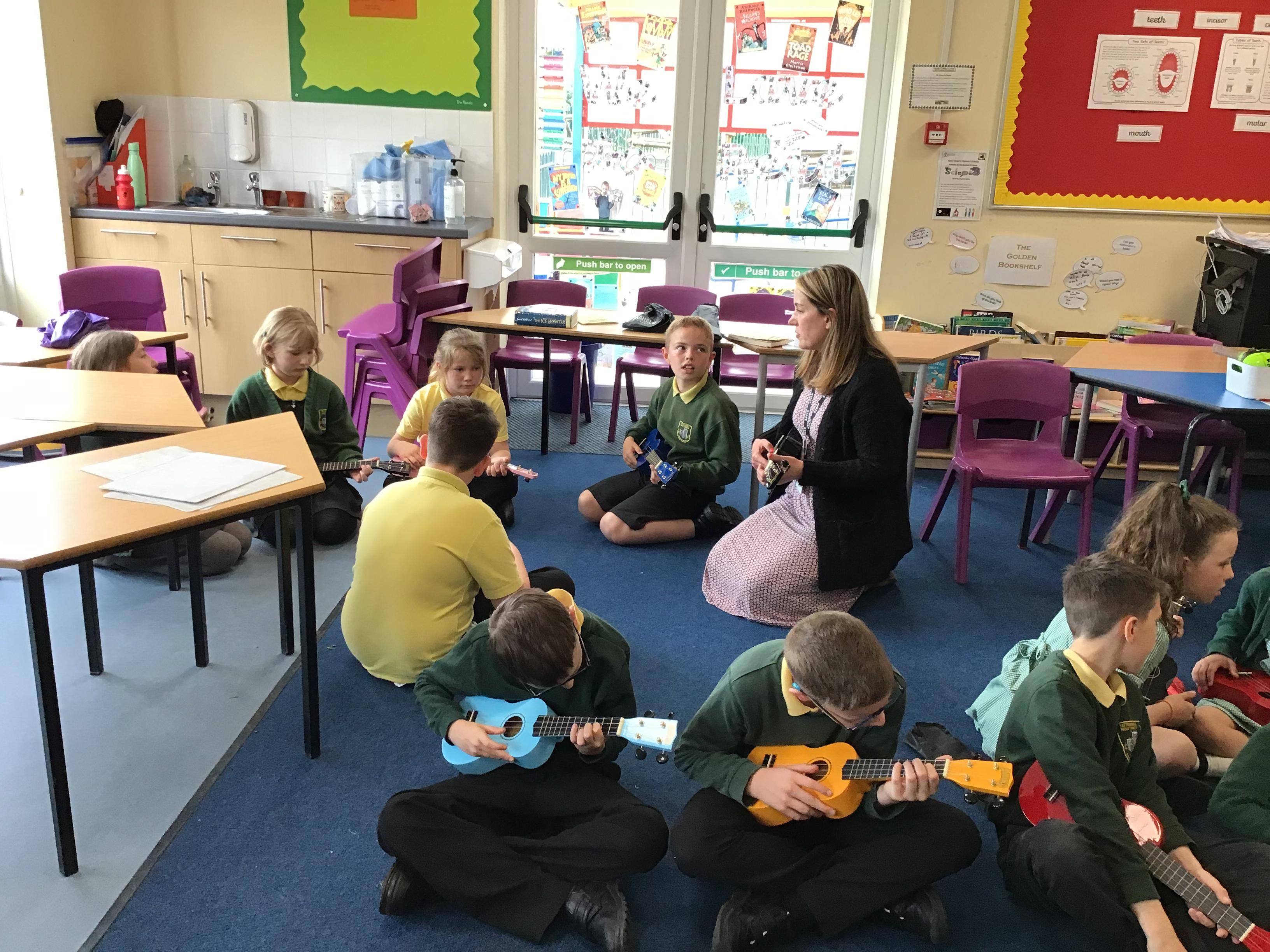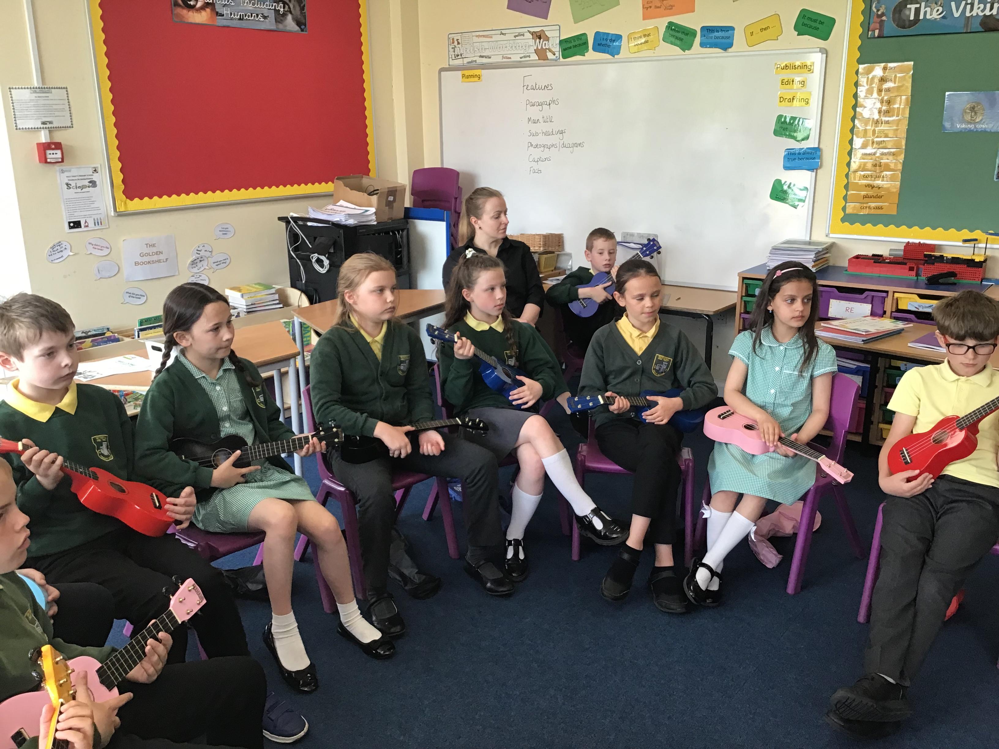 This term we are lucky to have Mr Wilson from Lincolnshire Music Service teaching us how to play a ukulele. In our first. Lesson we learnt about beats and rhythms. We then learnt how to hold our ukulele and we had a go at playing some chords. We were really good even though most of us had never played one before.
