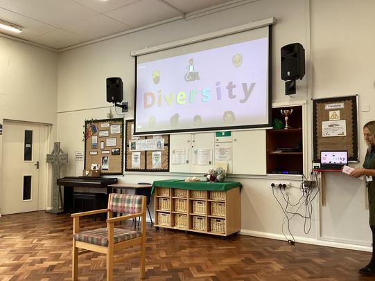 Today, we were really pleased to welcome back Padre Chrissie to lead our Collective Worship. Today we all joined in actions to a story about Joshua and how he led the Israelites across a deep river. We then talked about monuments that we use to remin