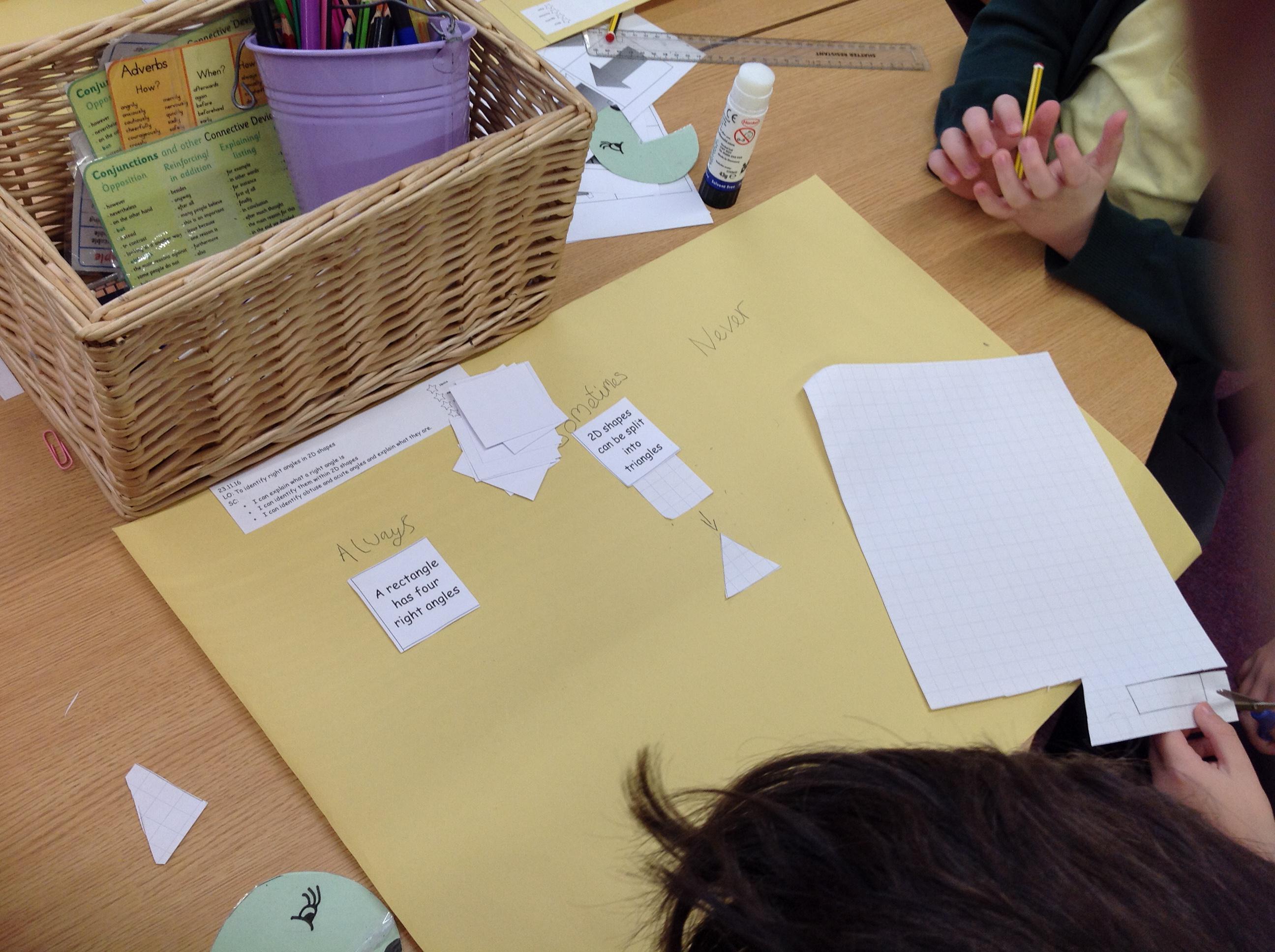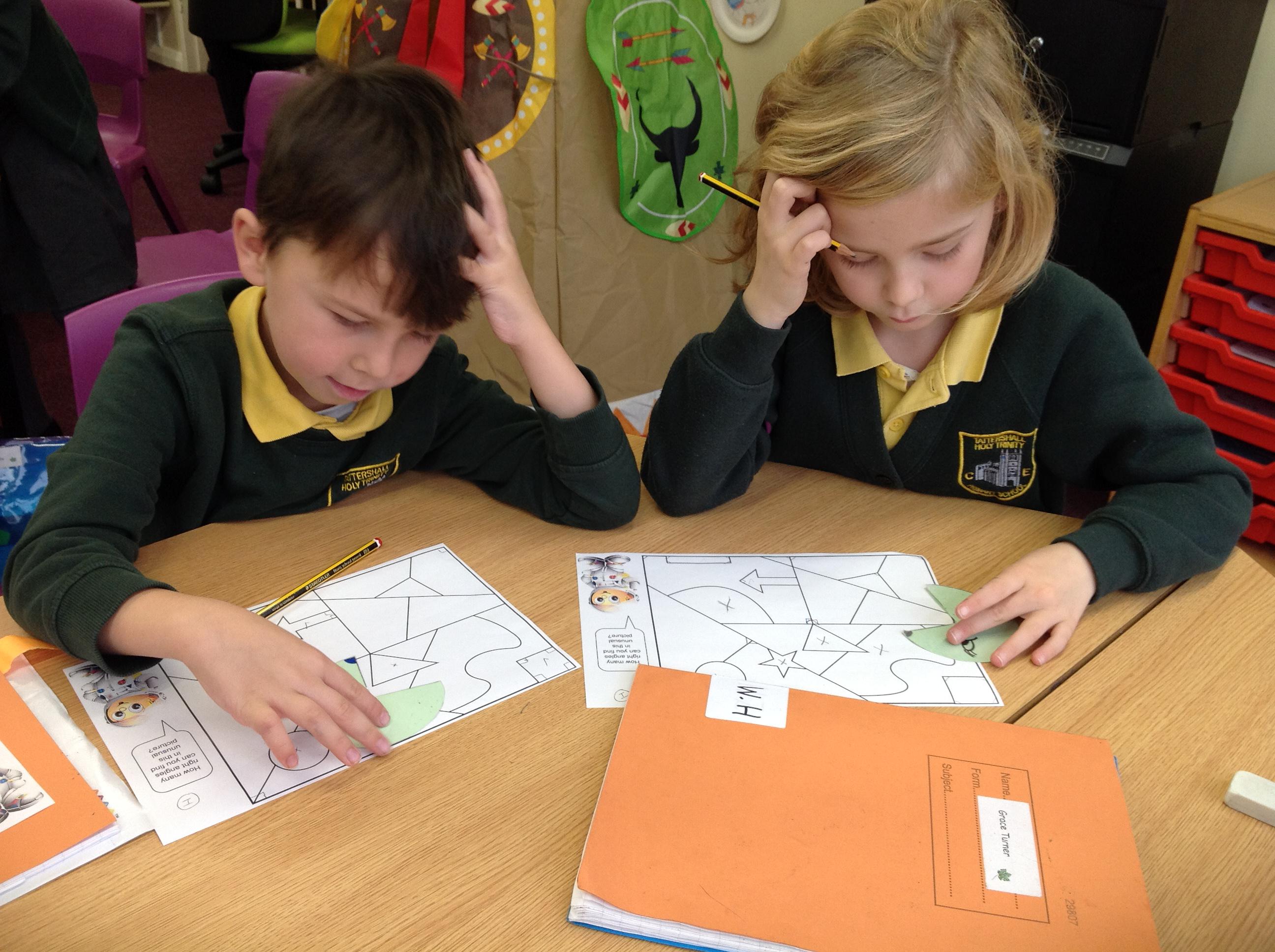 We've been hunting for right angles today! We have been finding them in shapes, in the classroom and even outside using our gobblers to help us! We can use this knowledge to identify acute and obtuse angles and describe specific shapes!