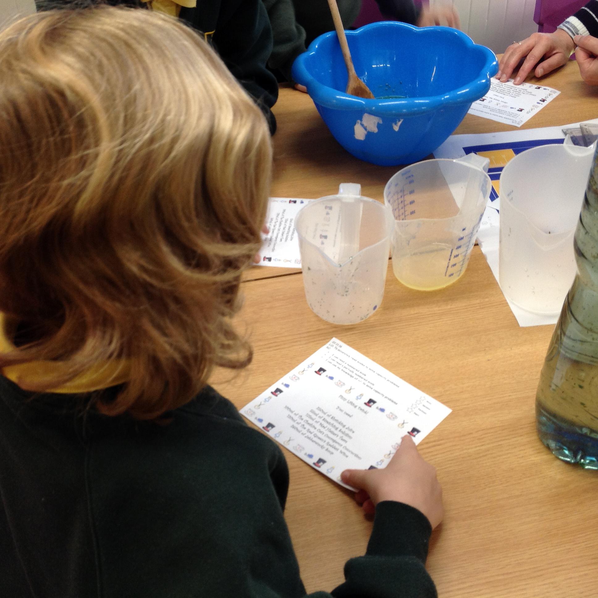 ​We've been looking at capacity in our maths this week! We've been using our problem solving knowledge to make sense of a situation involving Mickey Mouse muddling up the container labels, estimating the amount of liquids and accurately measuring the ingredients for Alice's 'drink me' potion!