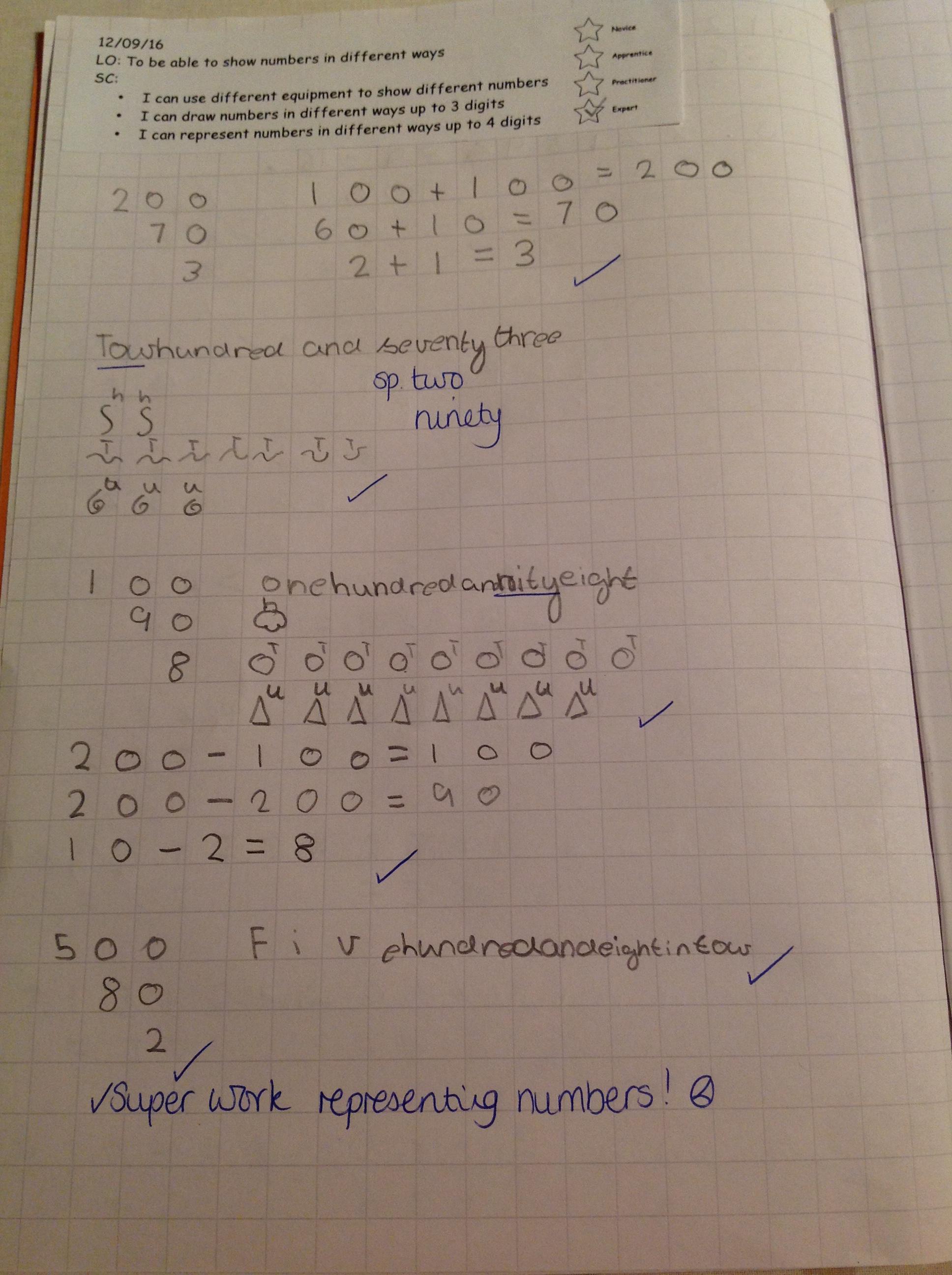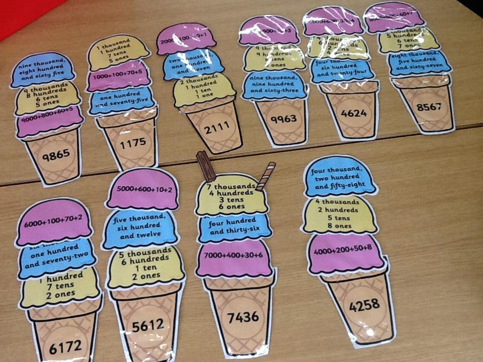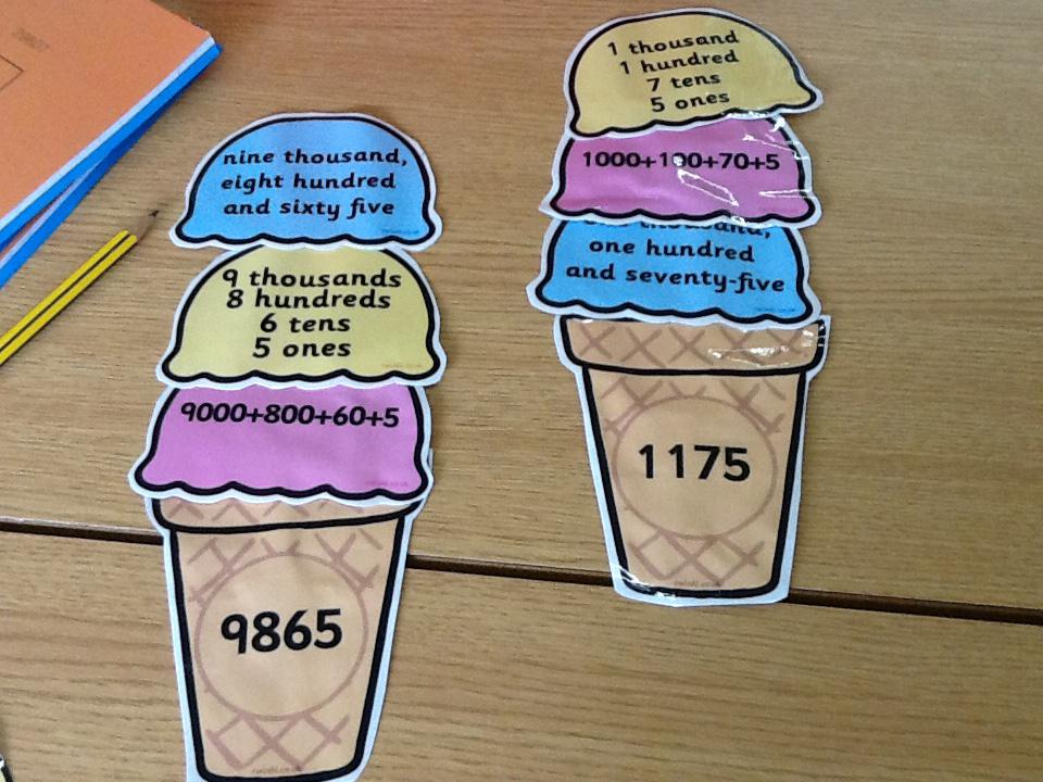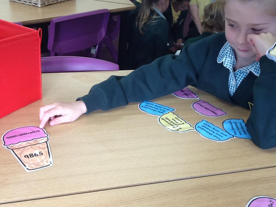 We've been partitioning numbers and thinking of different ways to partition 3 and 4 digit numbers. We tried more complex ways to partition numbers using base 10 resources to help us!