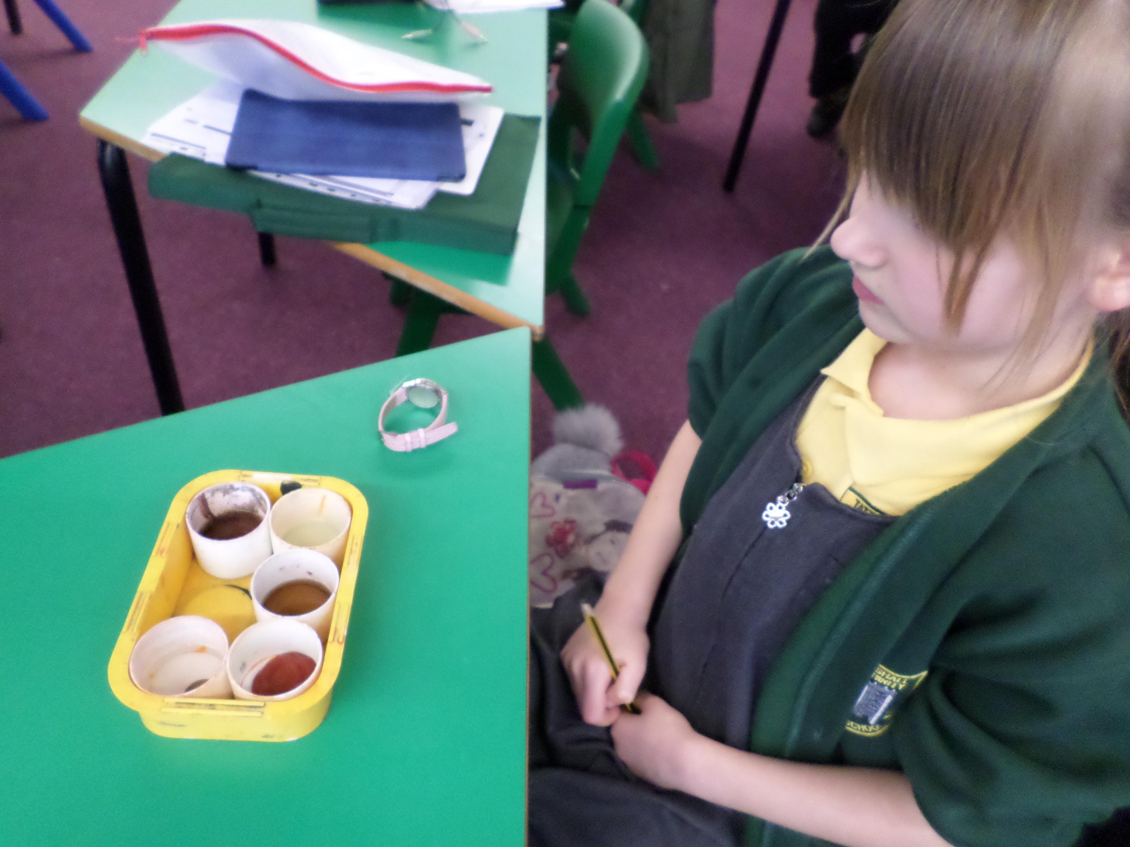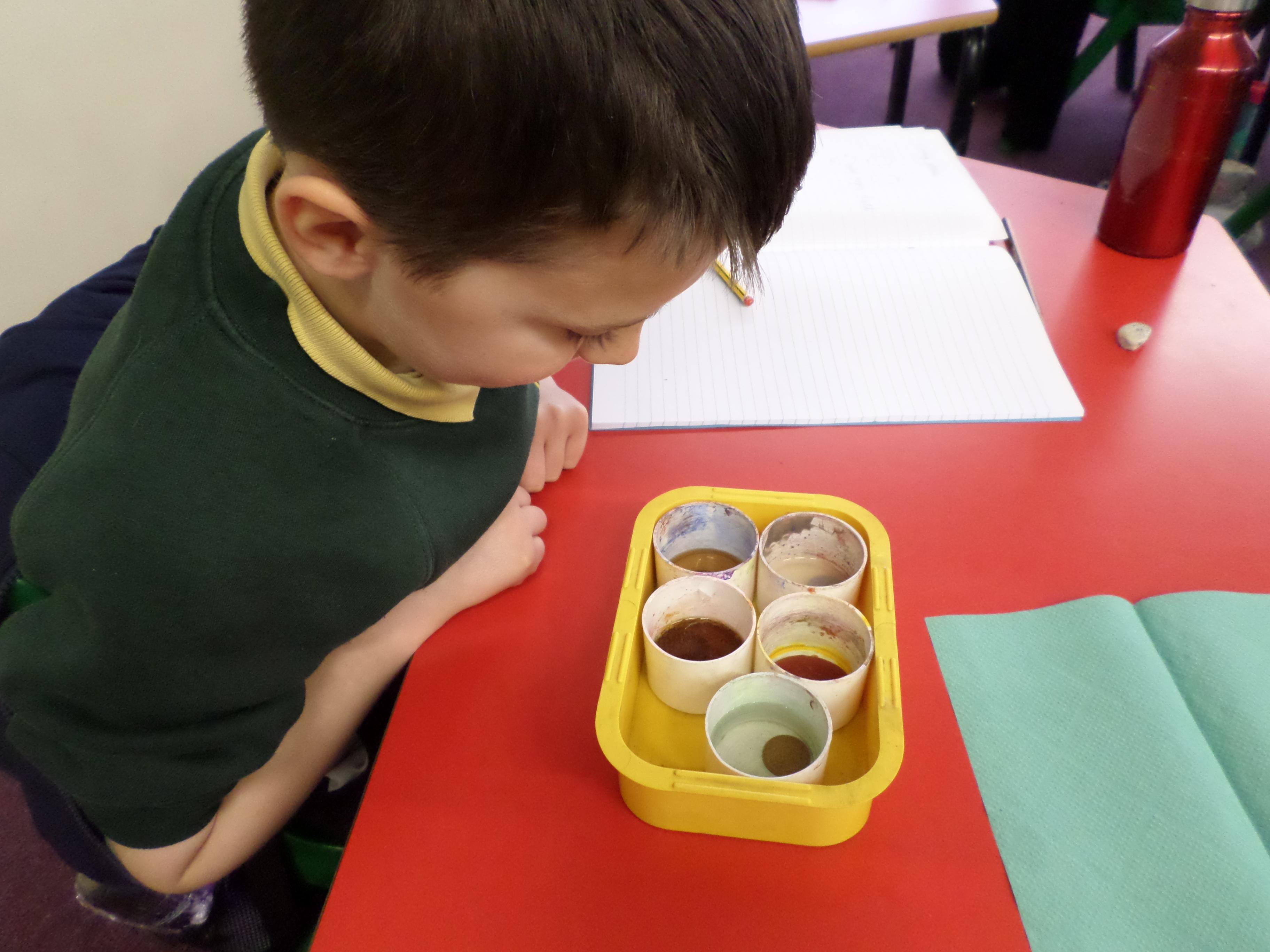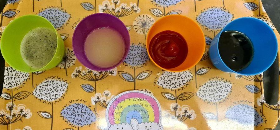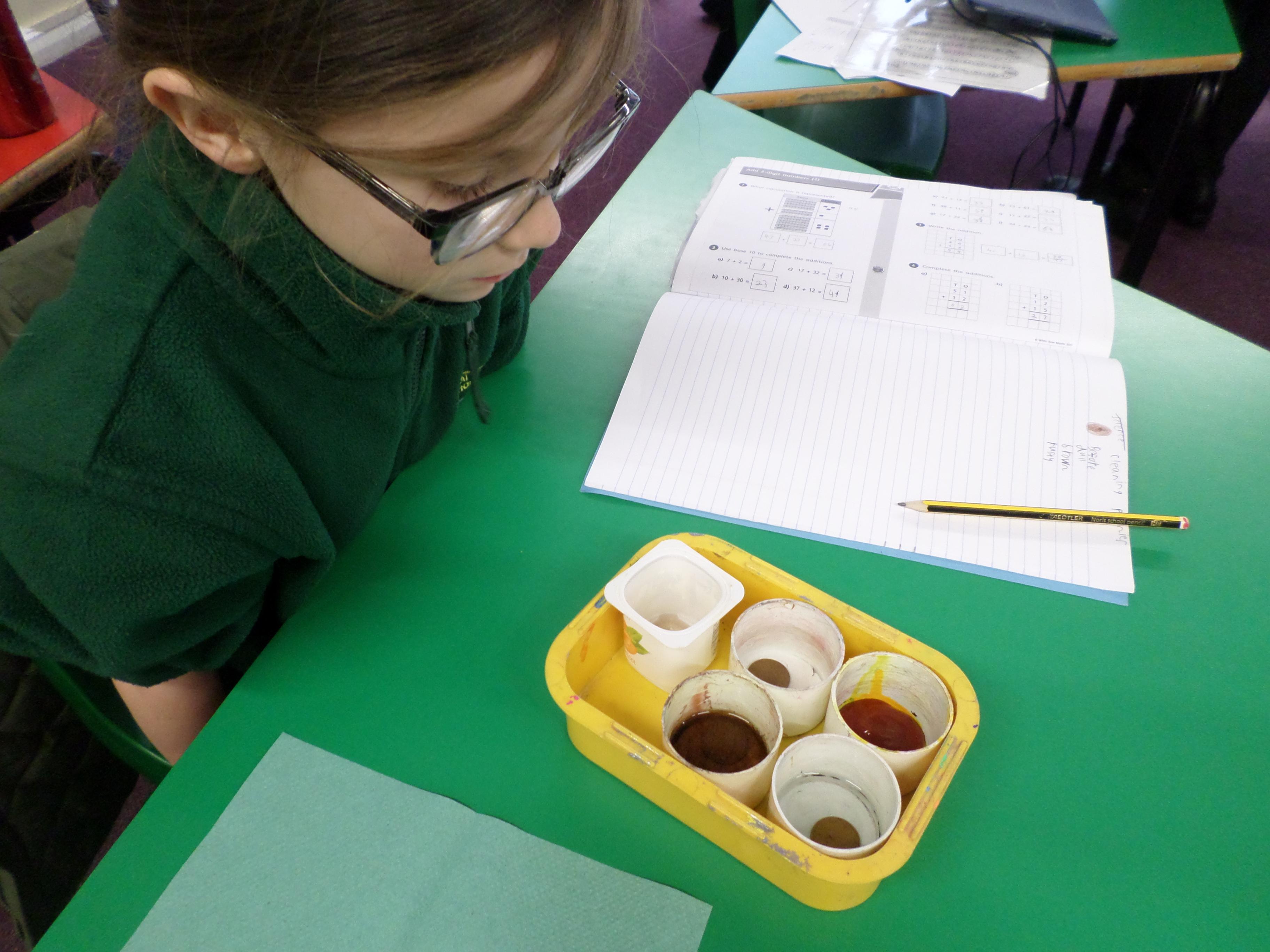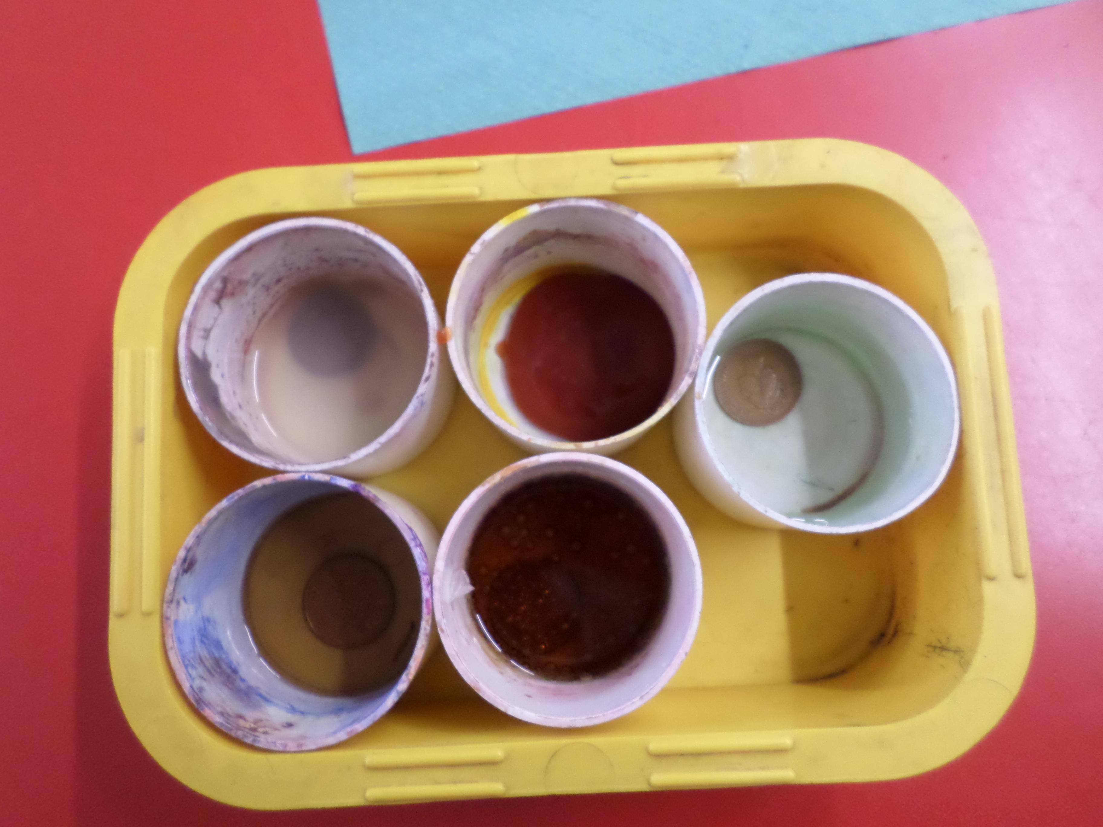 Oak Class pupils investigated the affect that different liquids had on metal pennies as part of their Mighty Metals Learning Project.