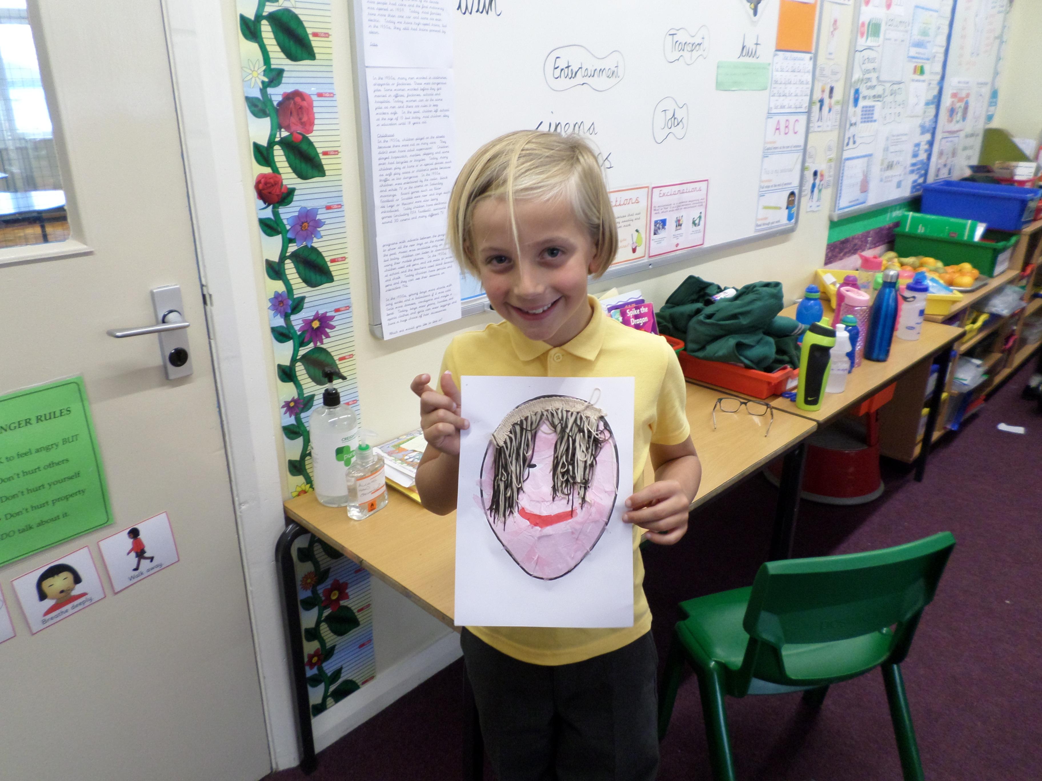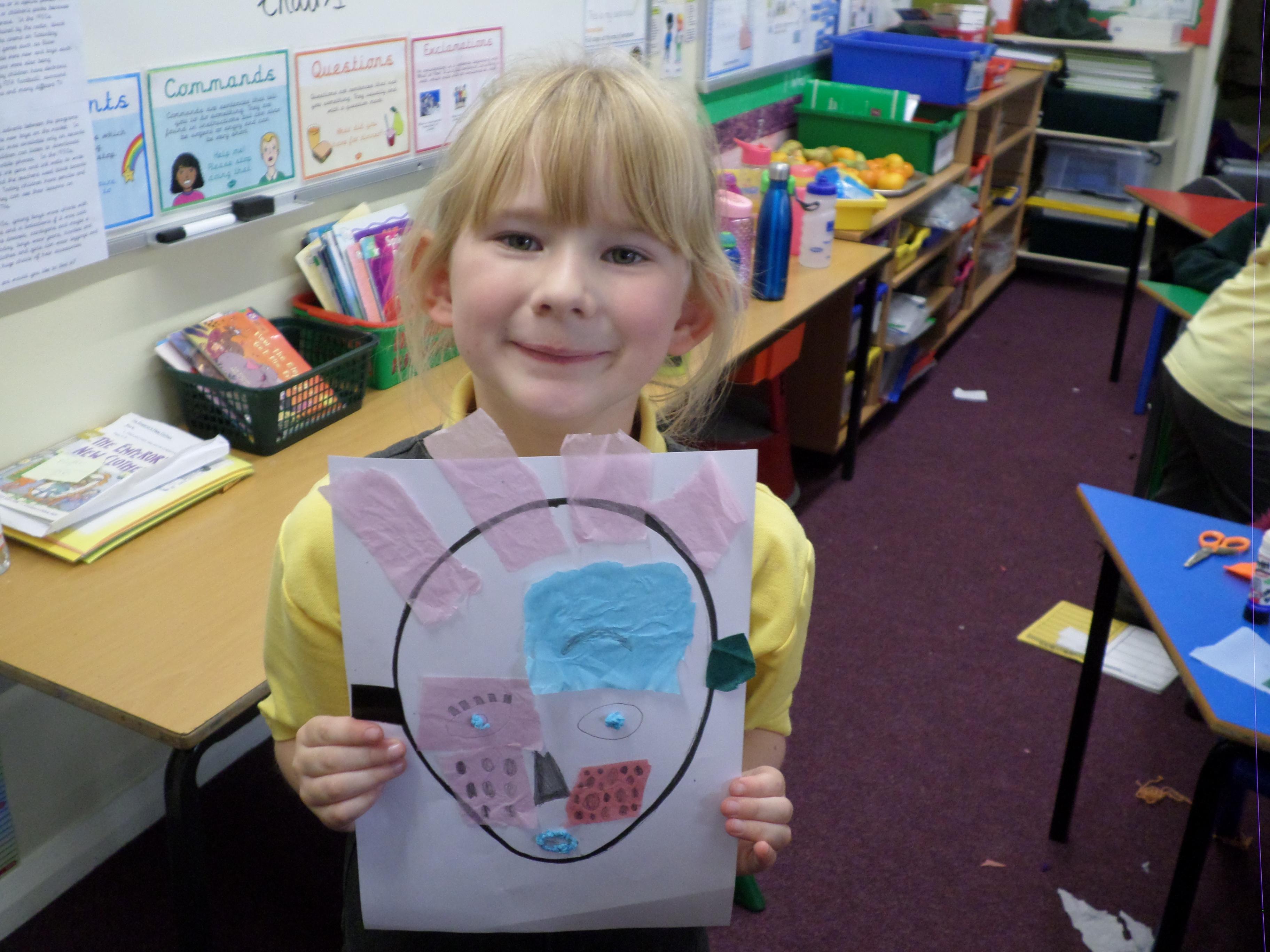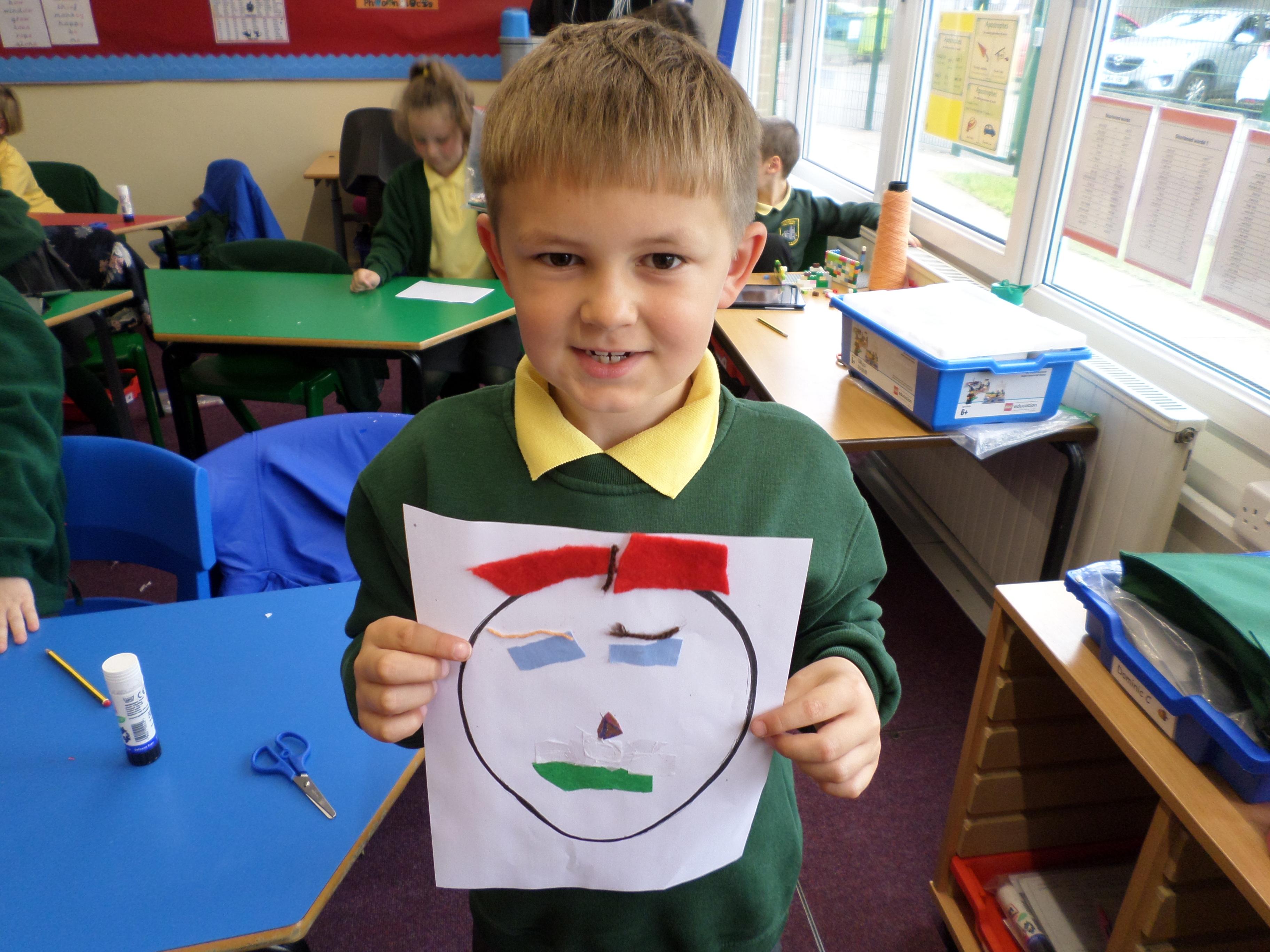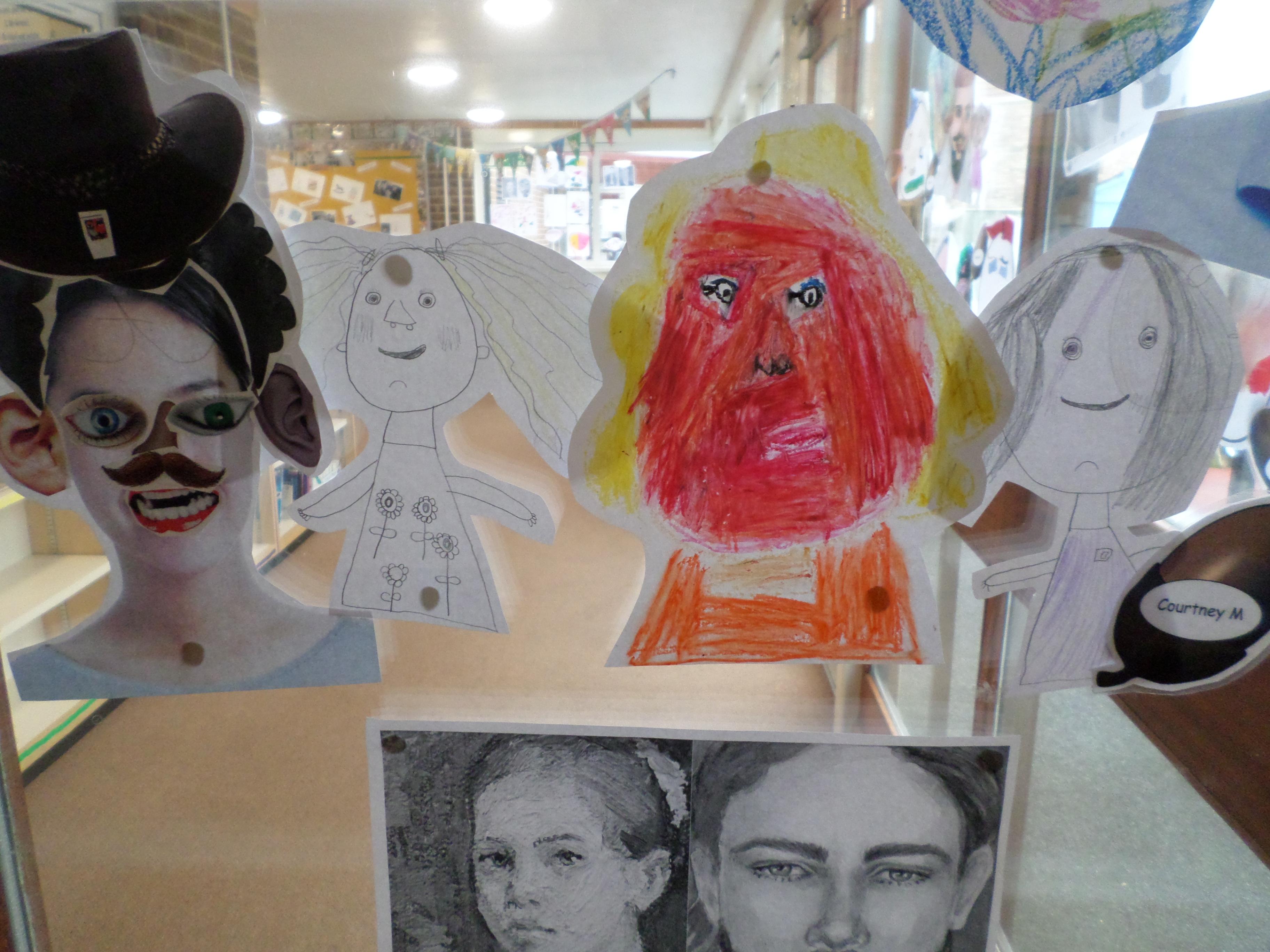 Oak Class pupils have been enjoying this term's art project all about portraits. First they looked at some portraits by different artists, then used mirrors to draw their own self portrait. Next they looked at some abstract faces with different features and made their own funny faces by sticking different features over a photographic face. Next they will be using pastels to investigate the possible use of colour in portrait pictures. Take a look at the lovely work in the photos below! Well done Oak, I can't wait to see your next portraits!