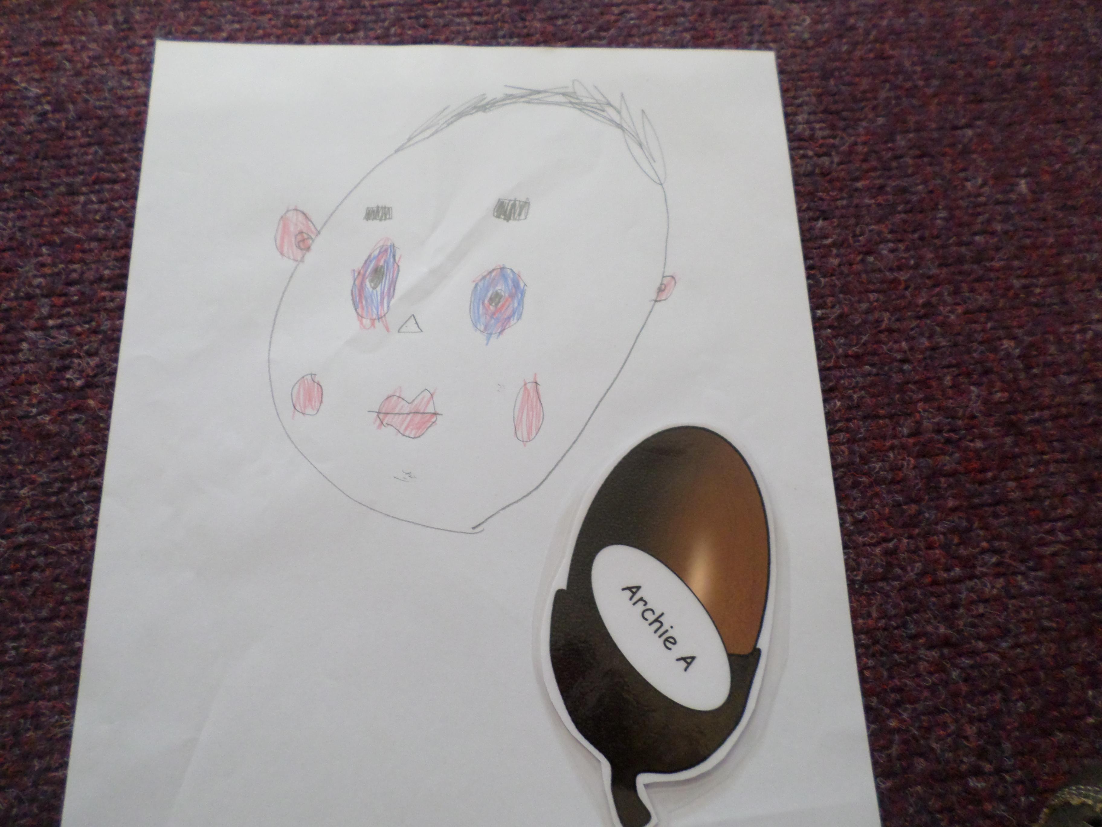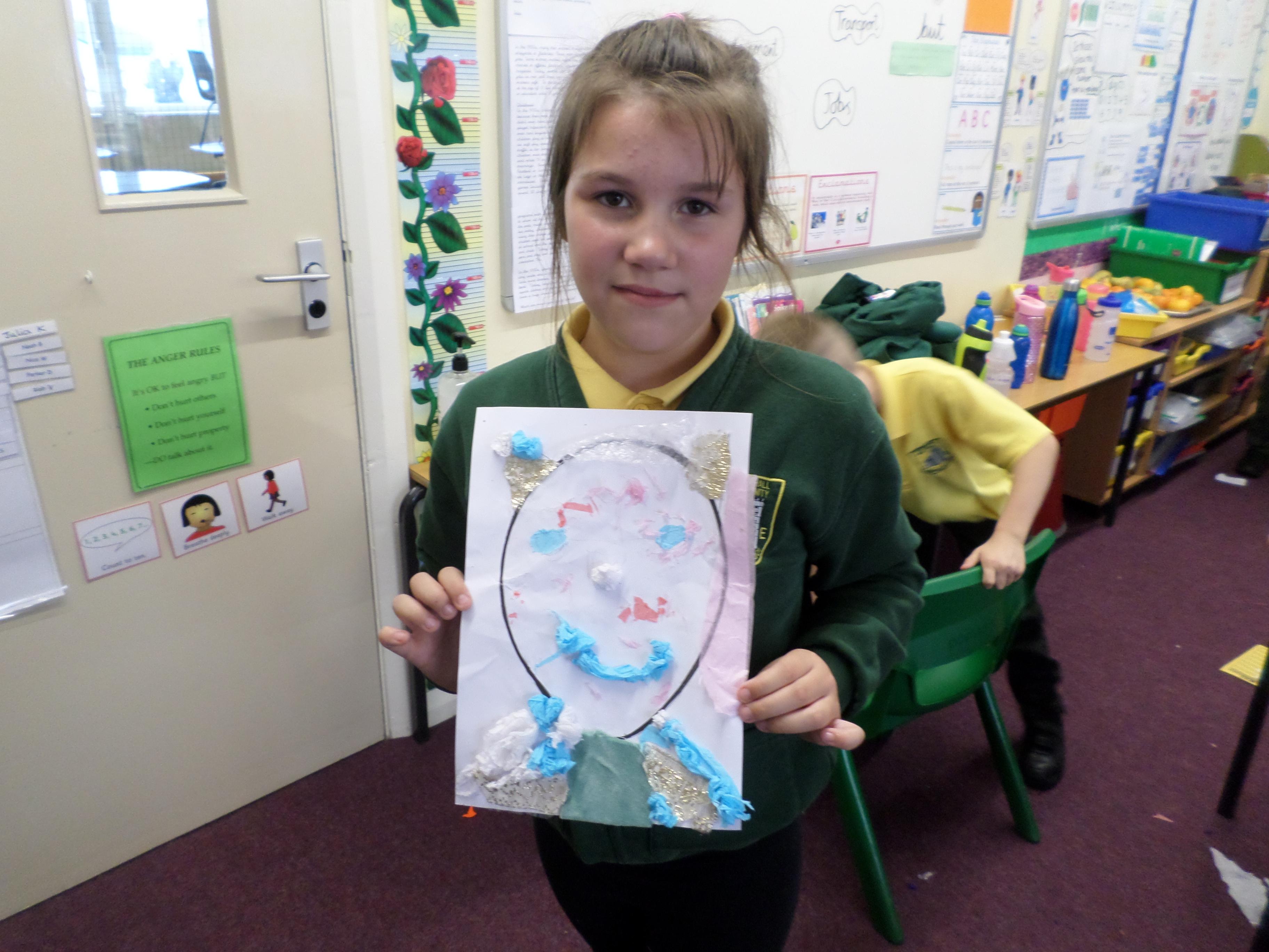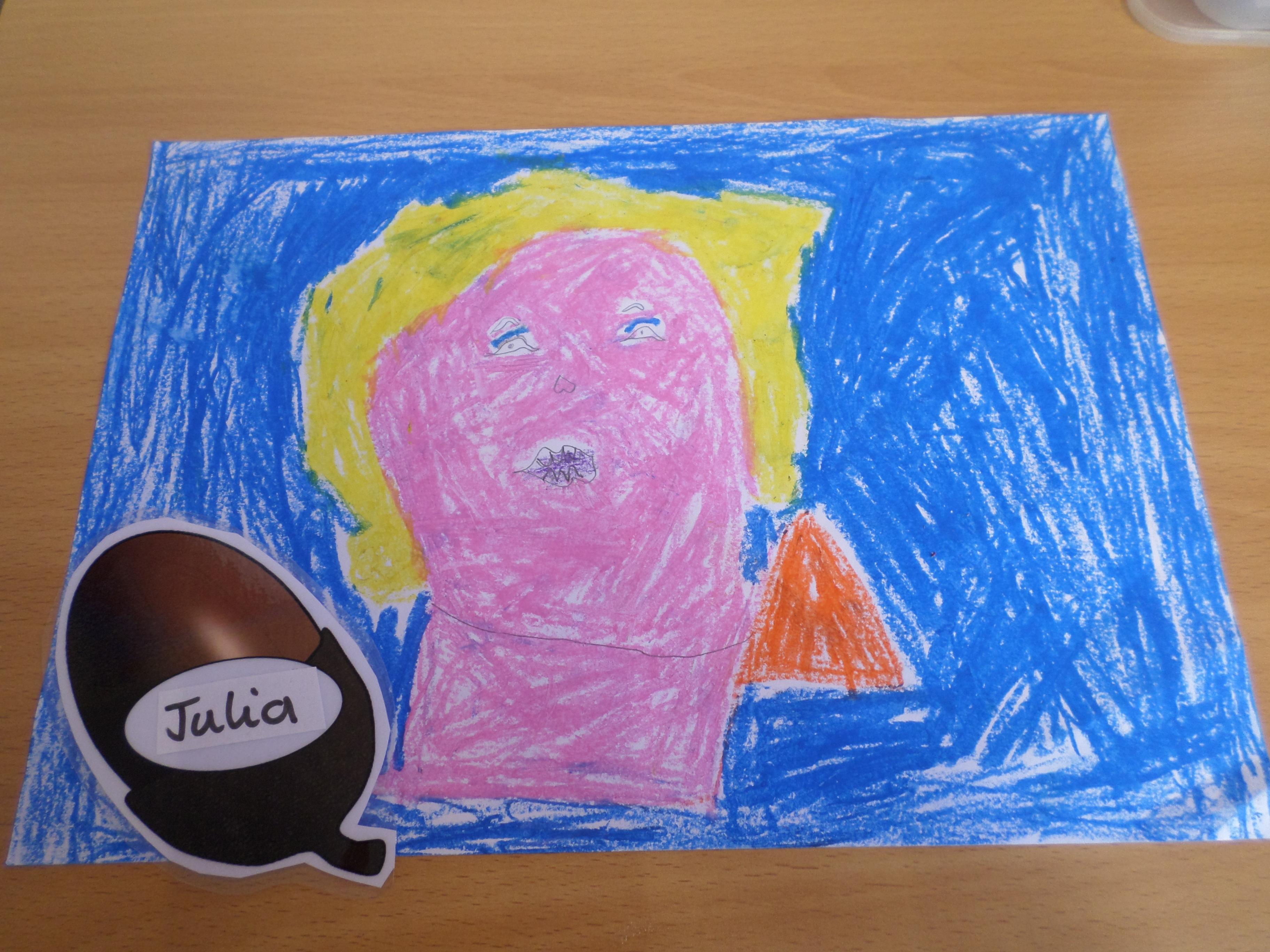 Oak Class pupils have been enjoying this term's art project all about portraits. First they looked at some portraits by different artists, then used mirrors to draw their own self portrait. Next they looked at some abstract faces with different features and made their own funny faces by sticking different features over a photographic face. Next they will be using pastels to investigate the possible use of colour in portrait pictures. Take a look at the lovely work in the photos below! Well done Oak, I can't wait to see your next portraits!