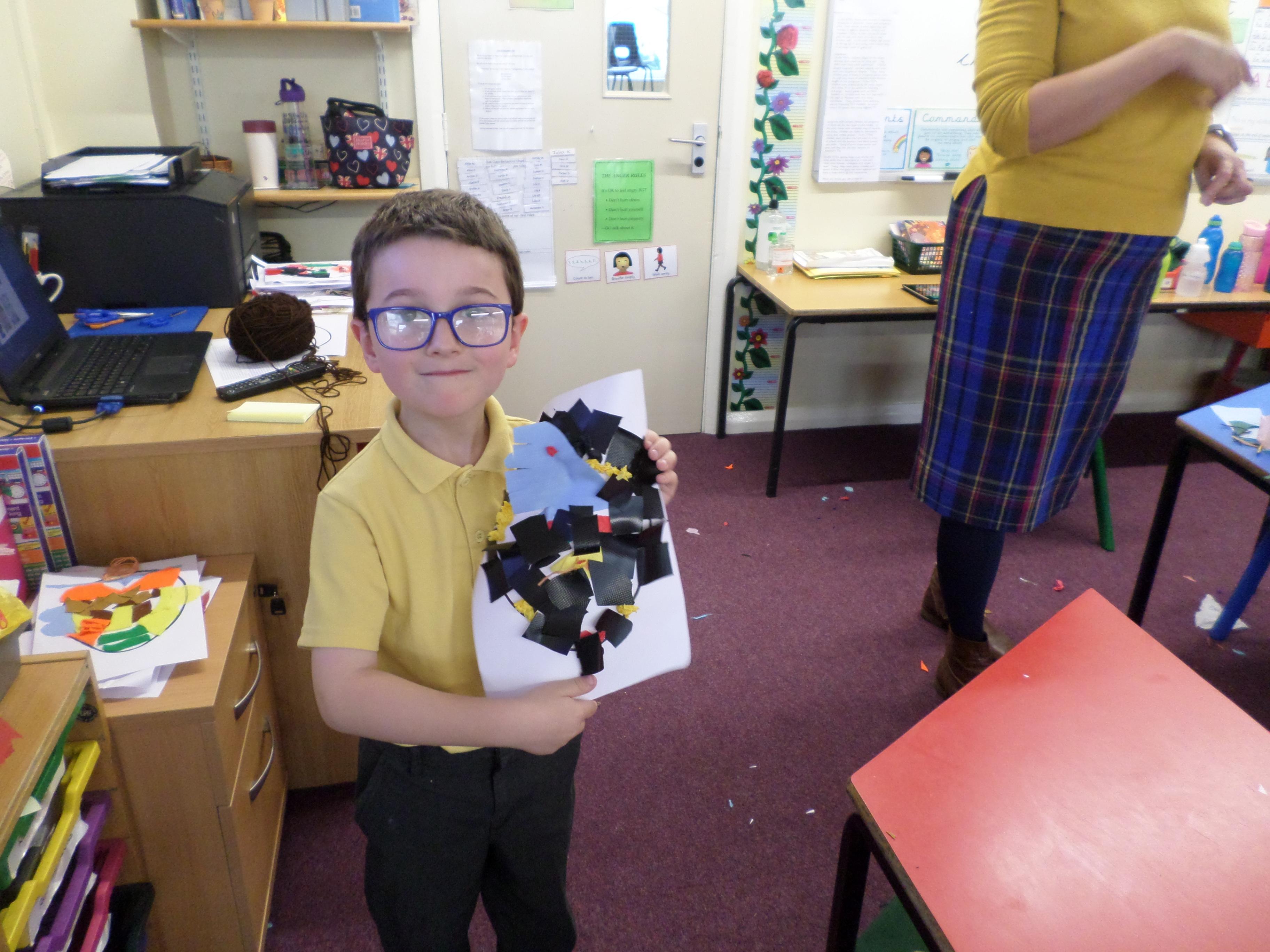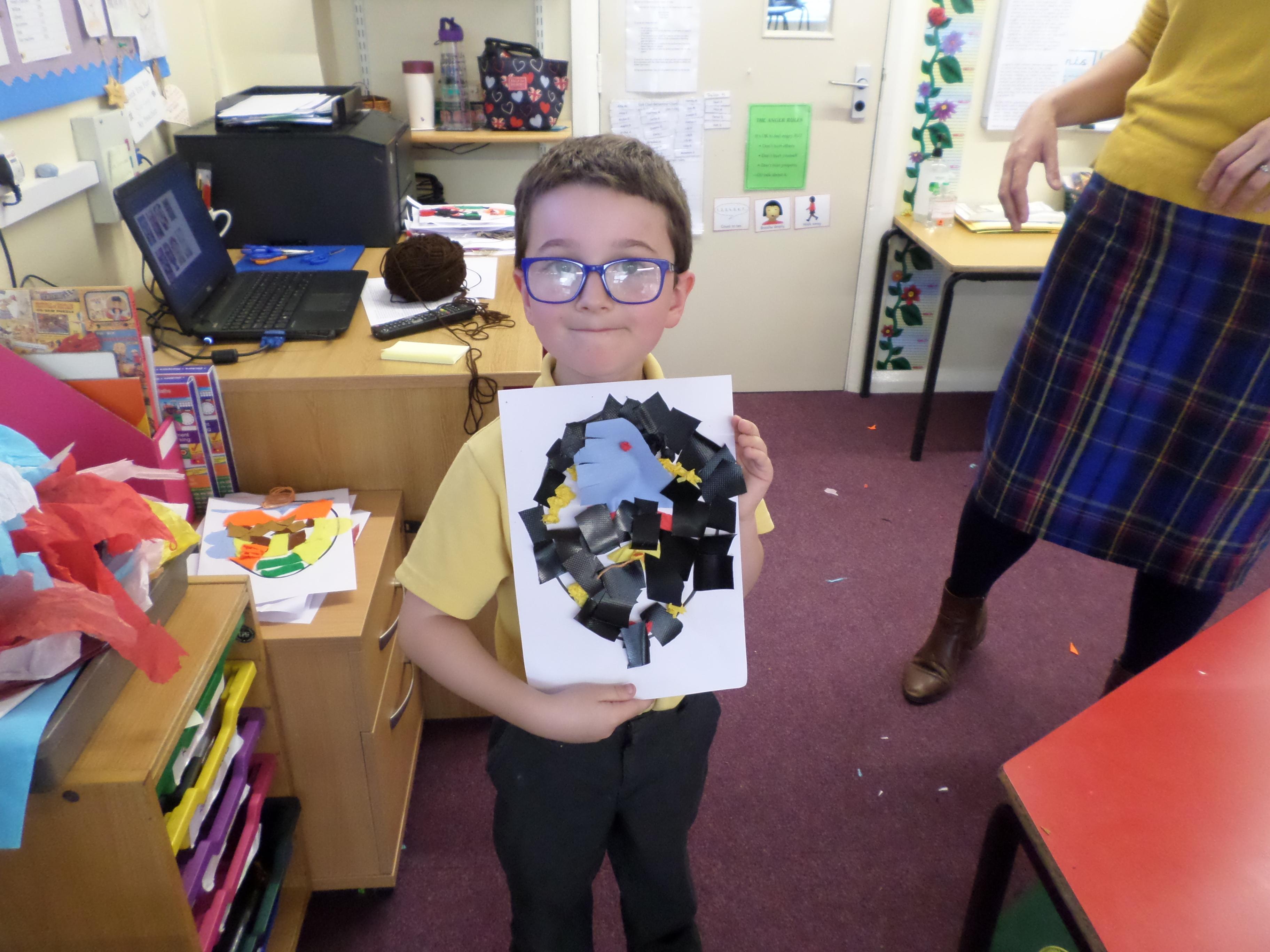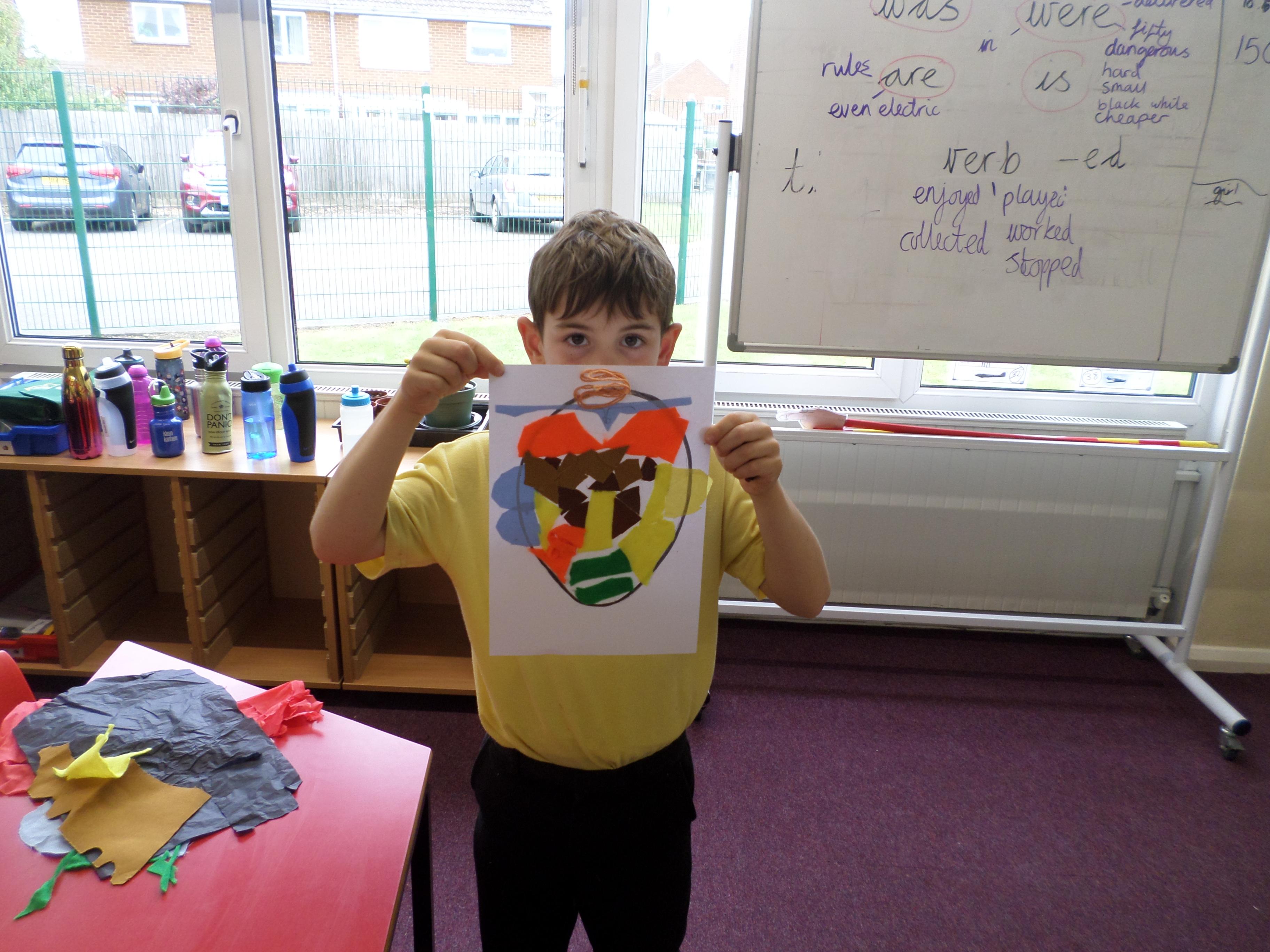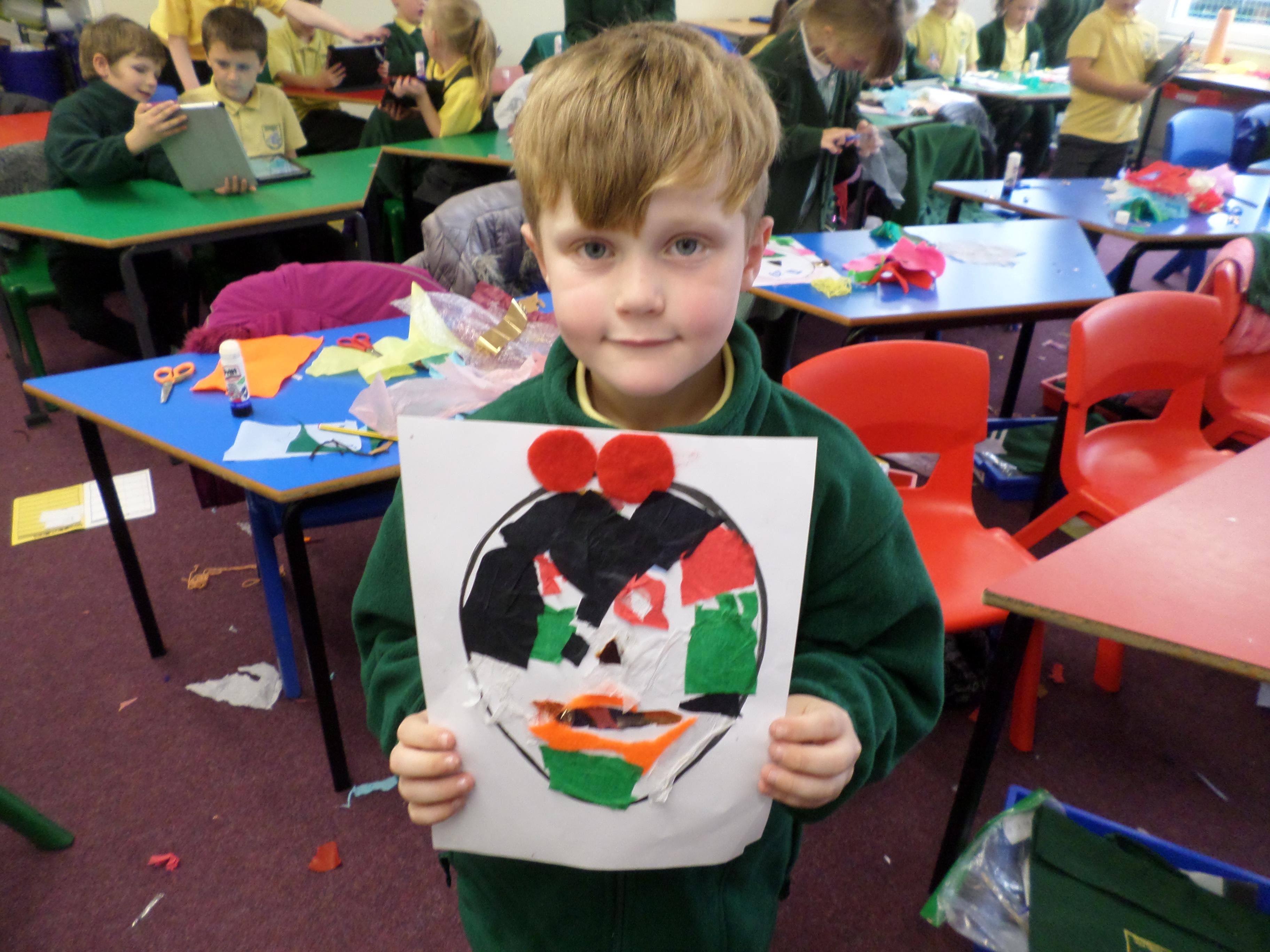 Oak Class pupils have been enjoying this term's art project all about portraits. First they looked at some portraits by different artists, then used mirrors to draw their own self portrait. Next they looked at some abstract faces with different features and made their own funny faces by sticking different features over a photographic face. Next they will be using pastels to investigate the possible use of colour in portrait pictures. Take a look at the lovely work in the photos below! Well done Oak, I can't wait to see your next portraits!