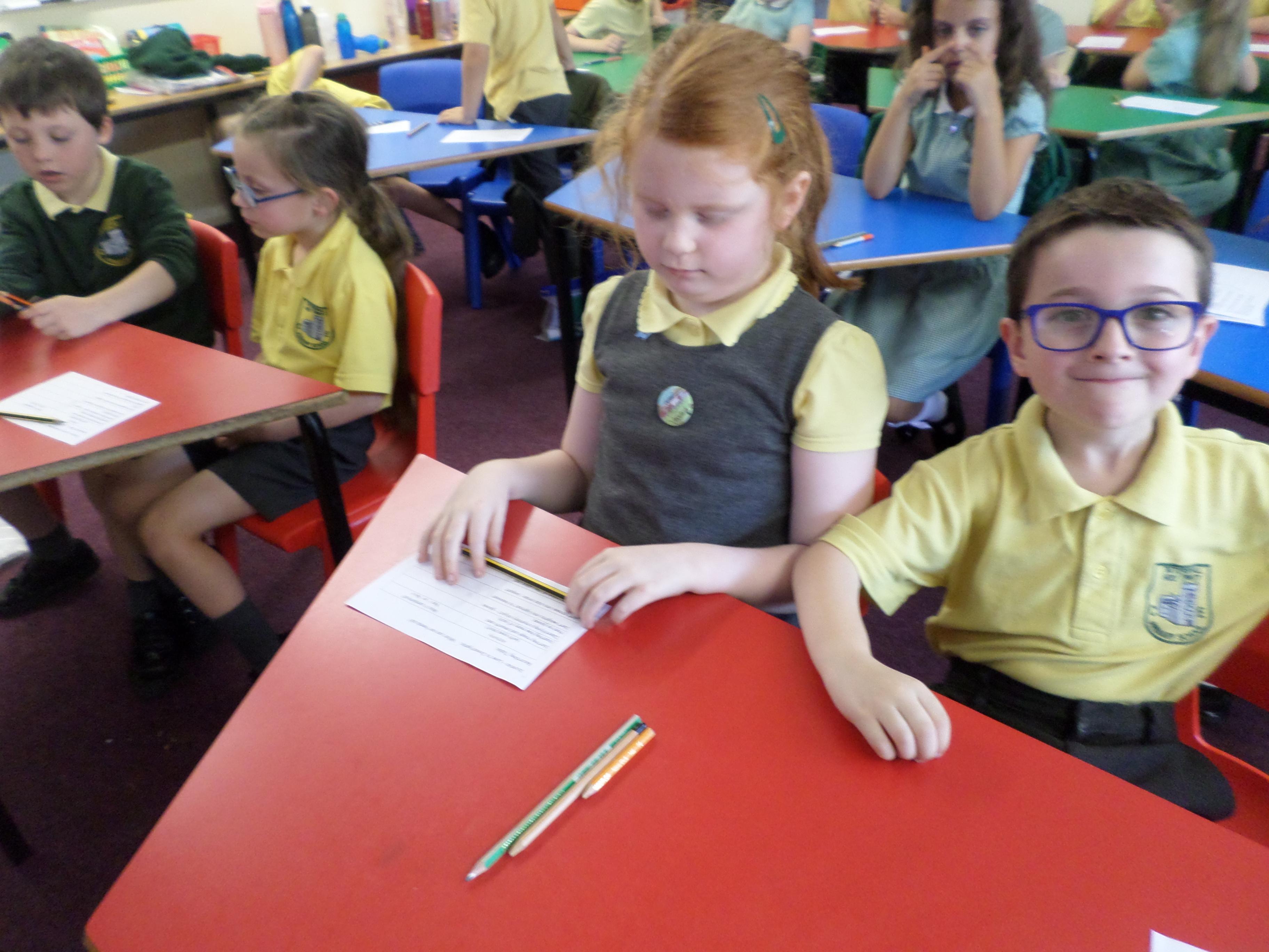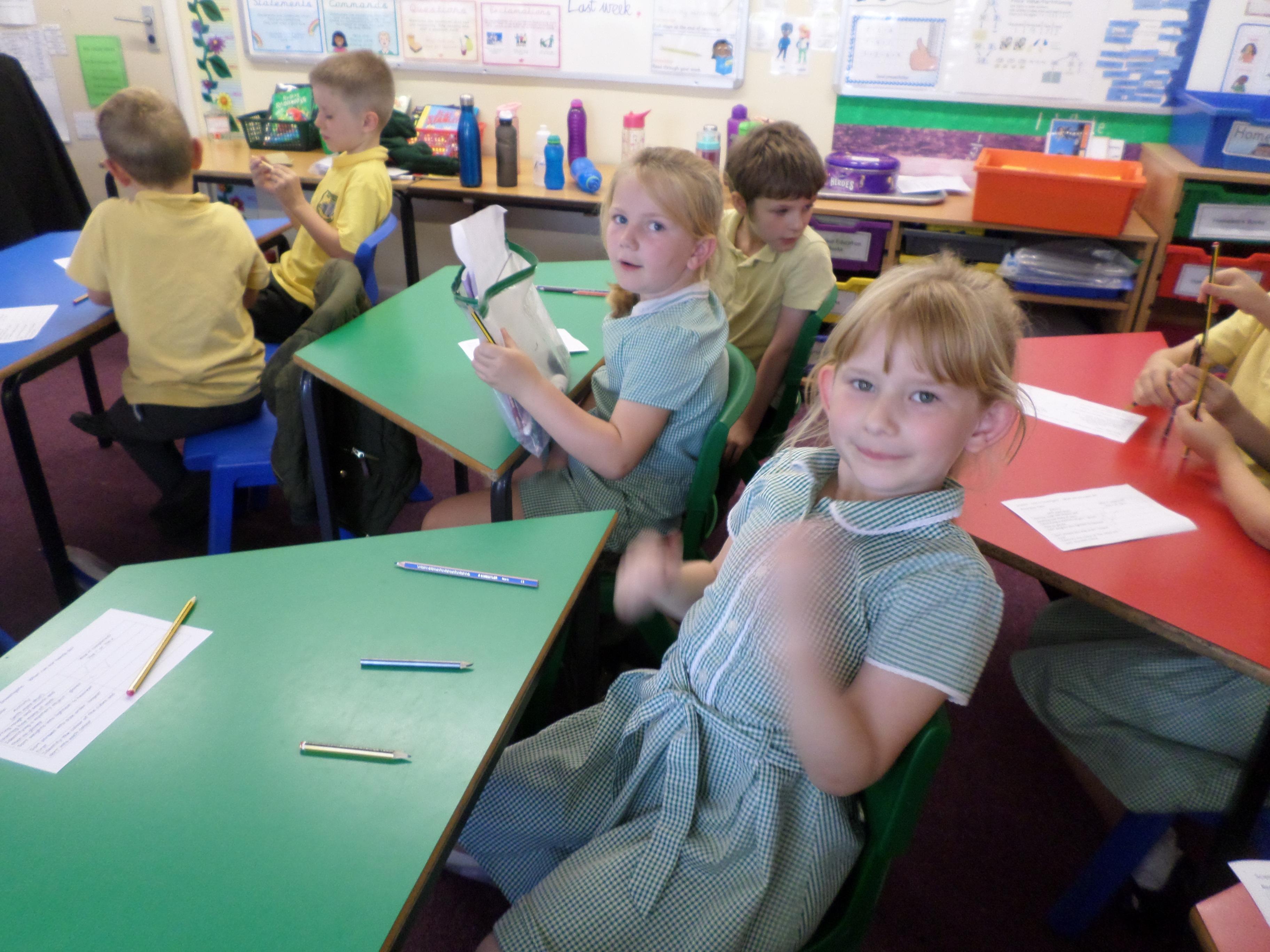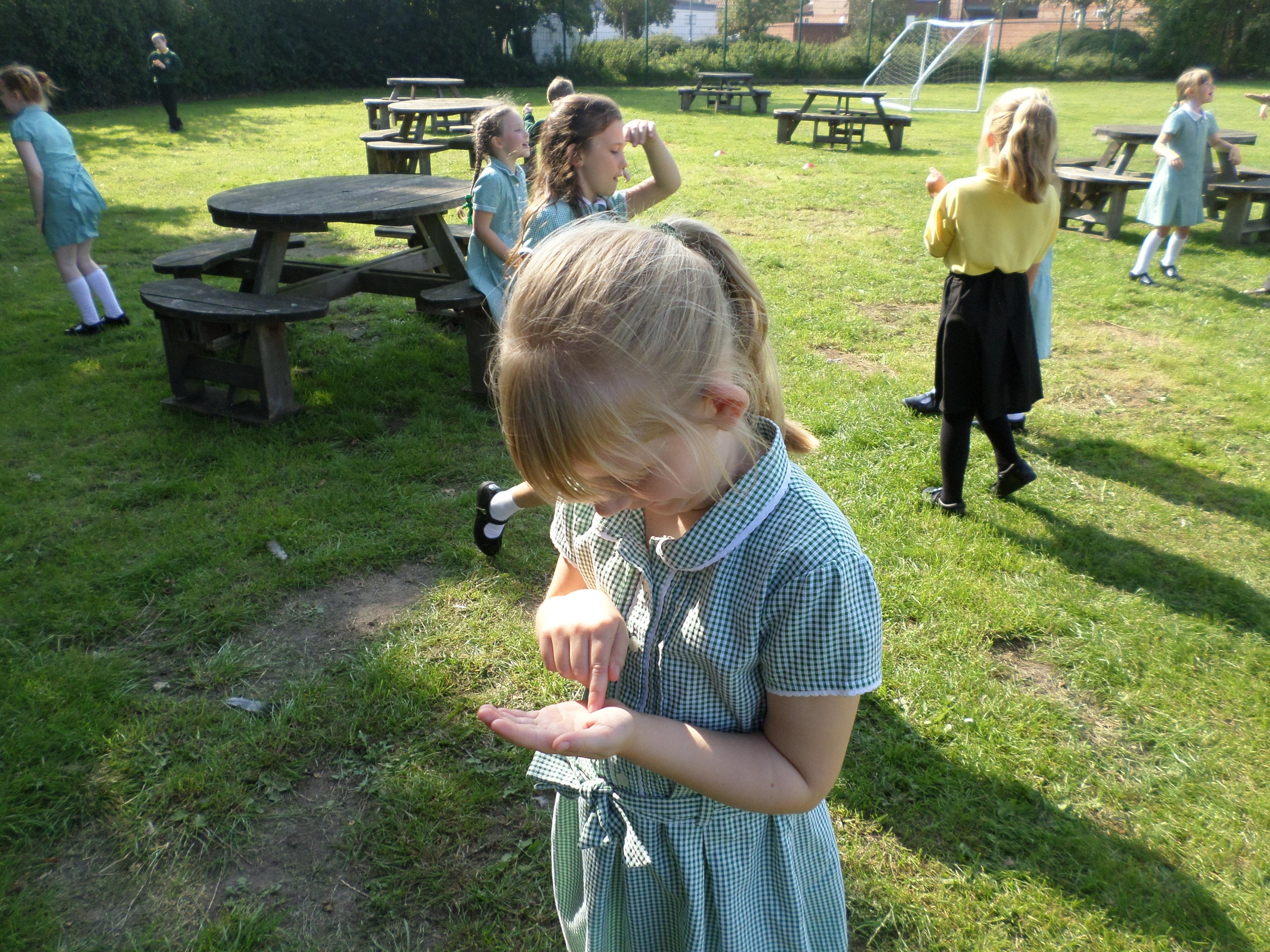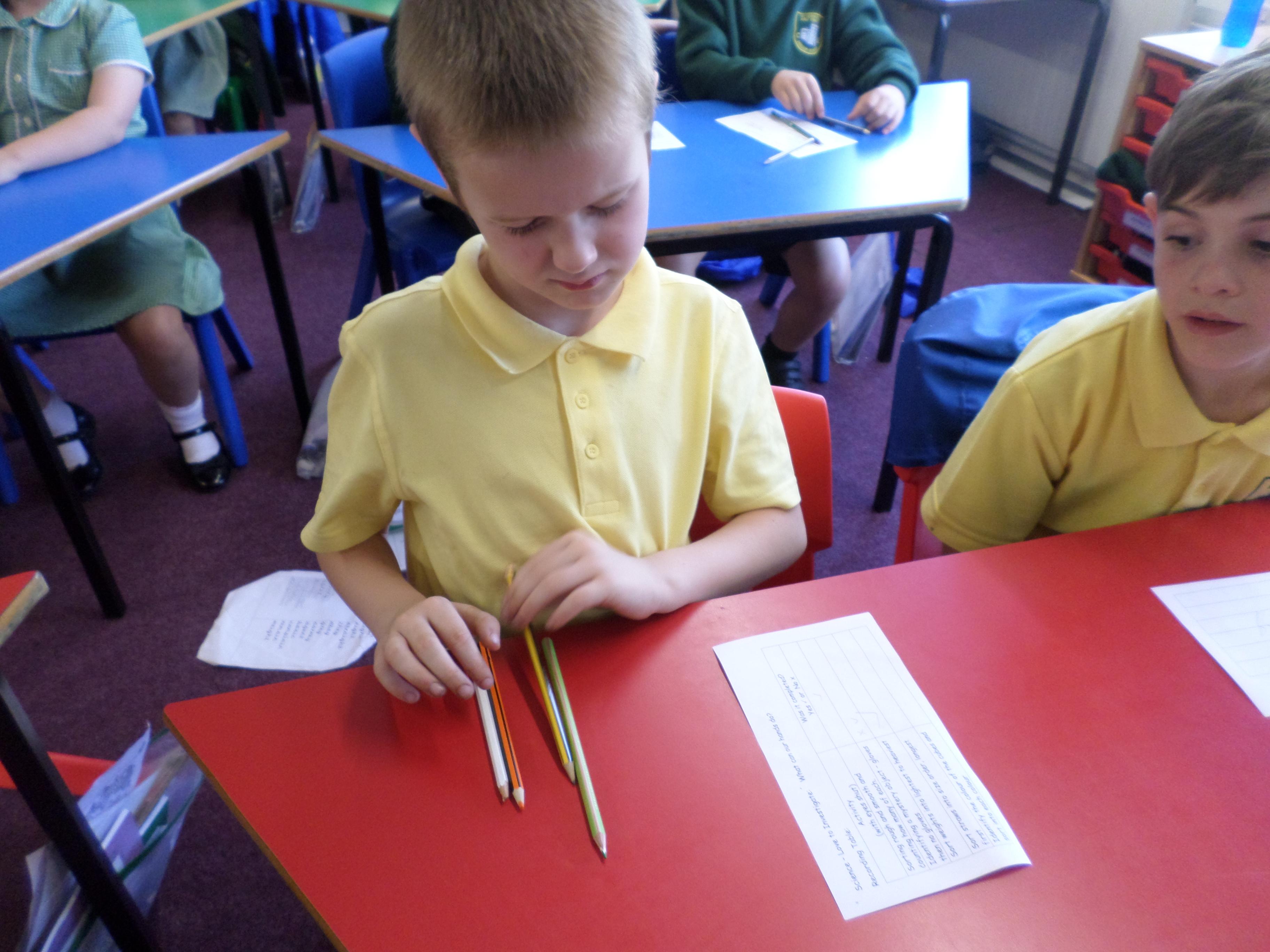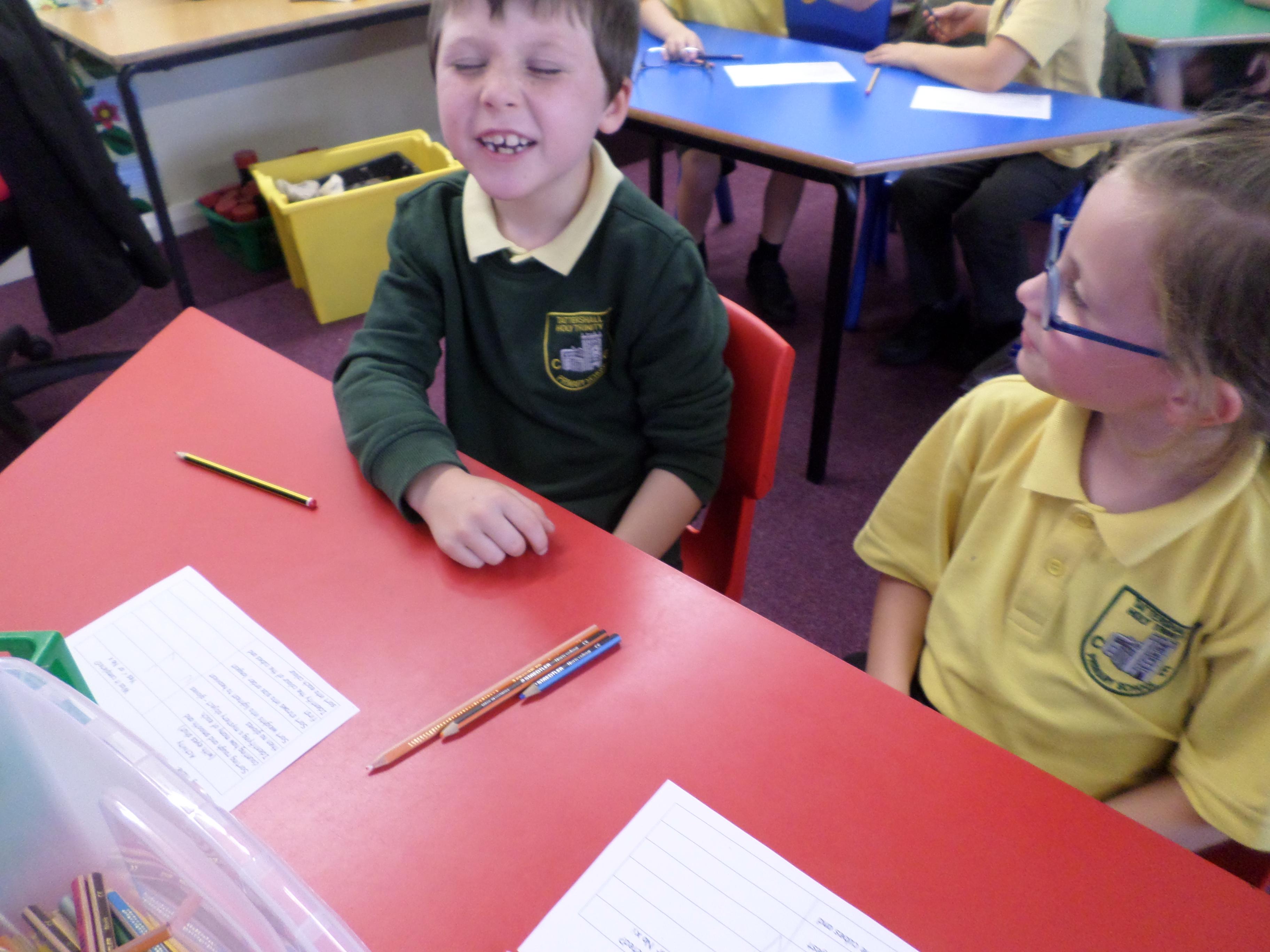 Oak Class pupils investigated what their hands could do by using their sense of touch, without their sense of sight. They found they could sort rough and smooth, count a number of objects, order things by weight or length but they could not identify the colour of an object. Although some were able to guess a colour correctly!!