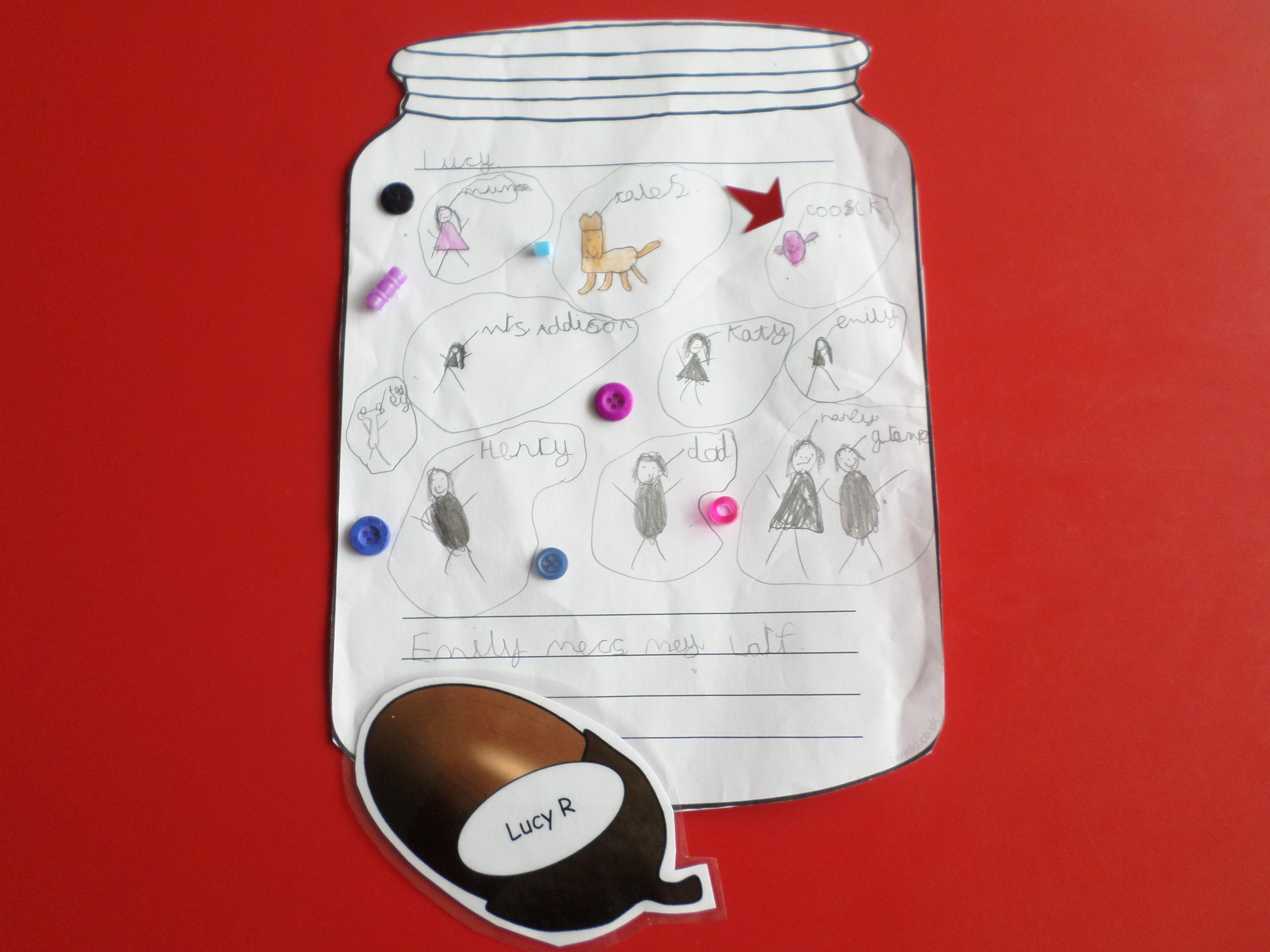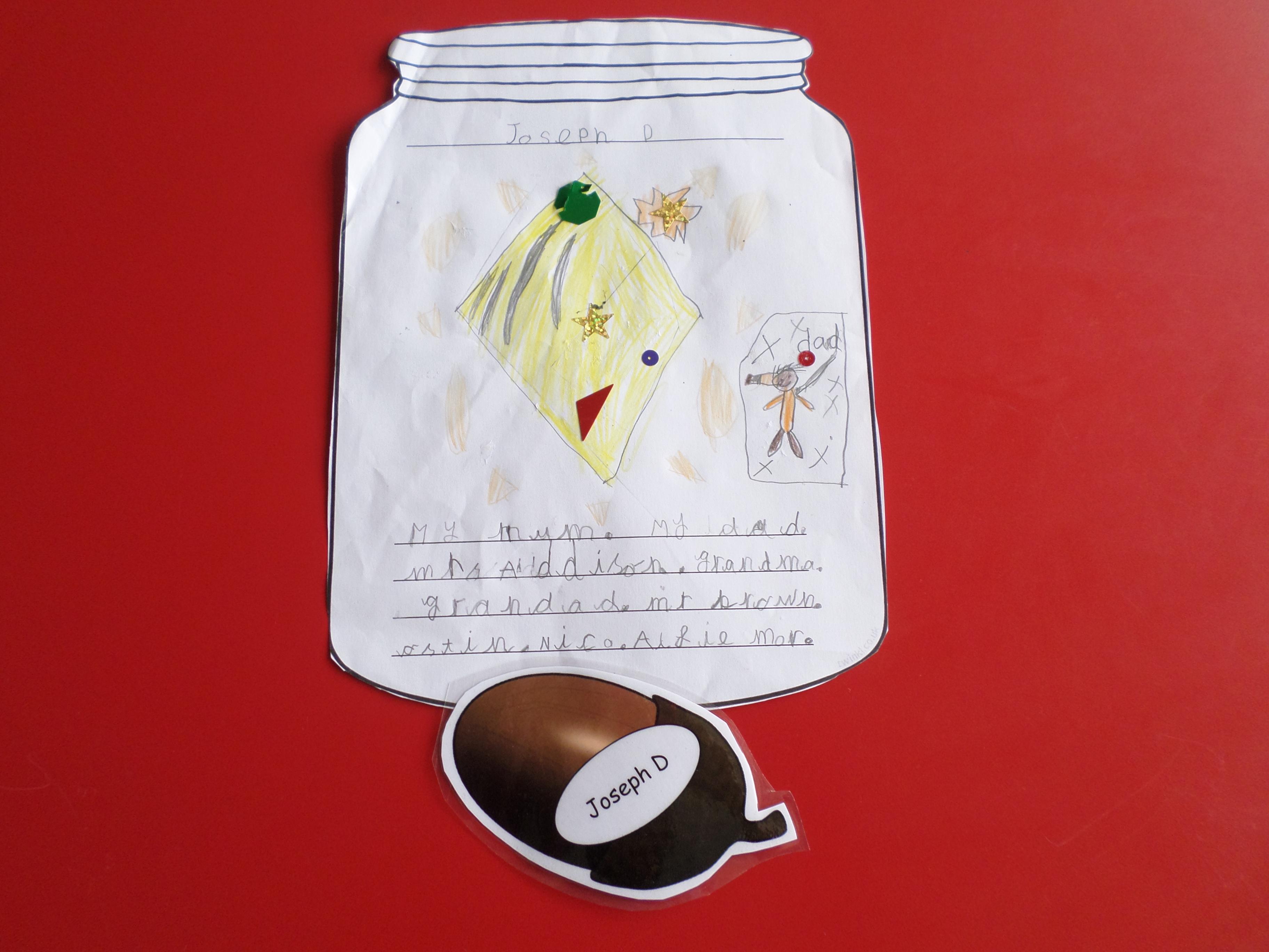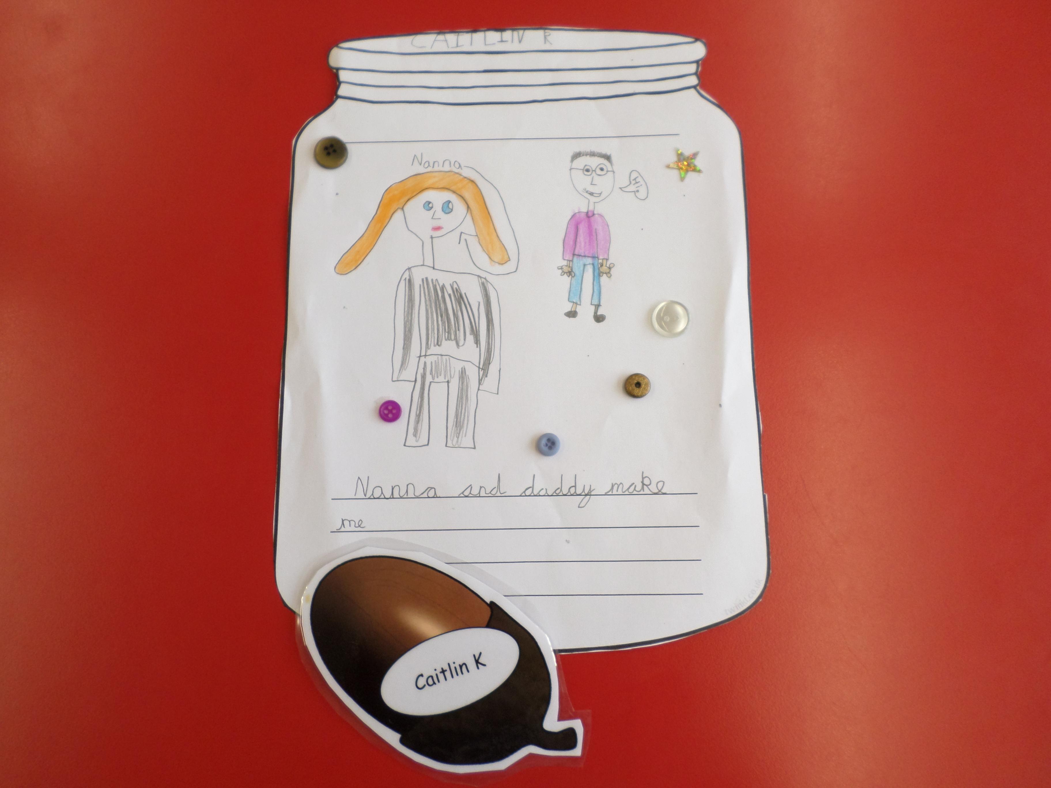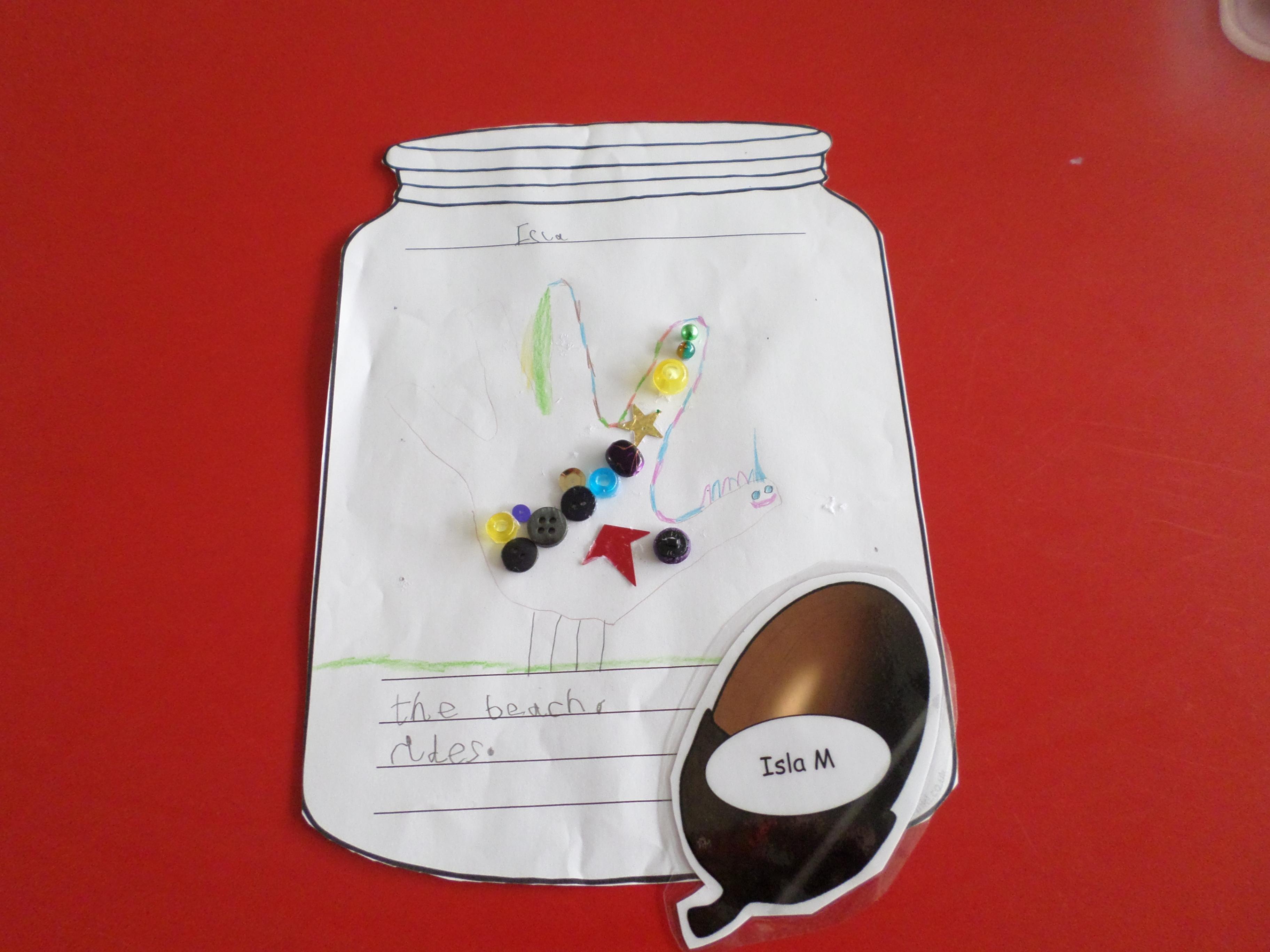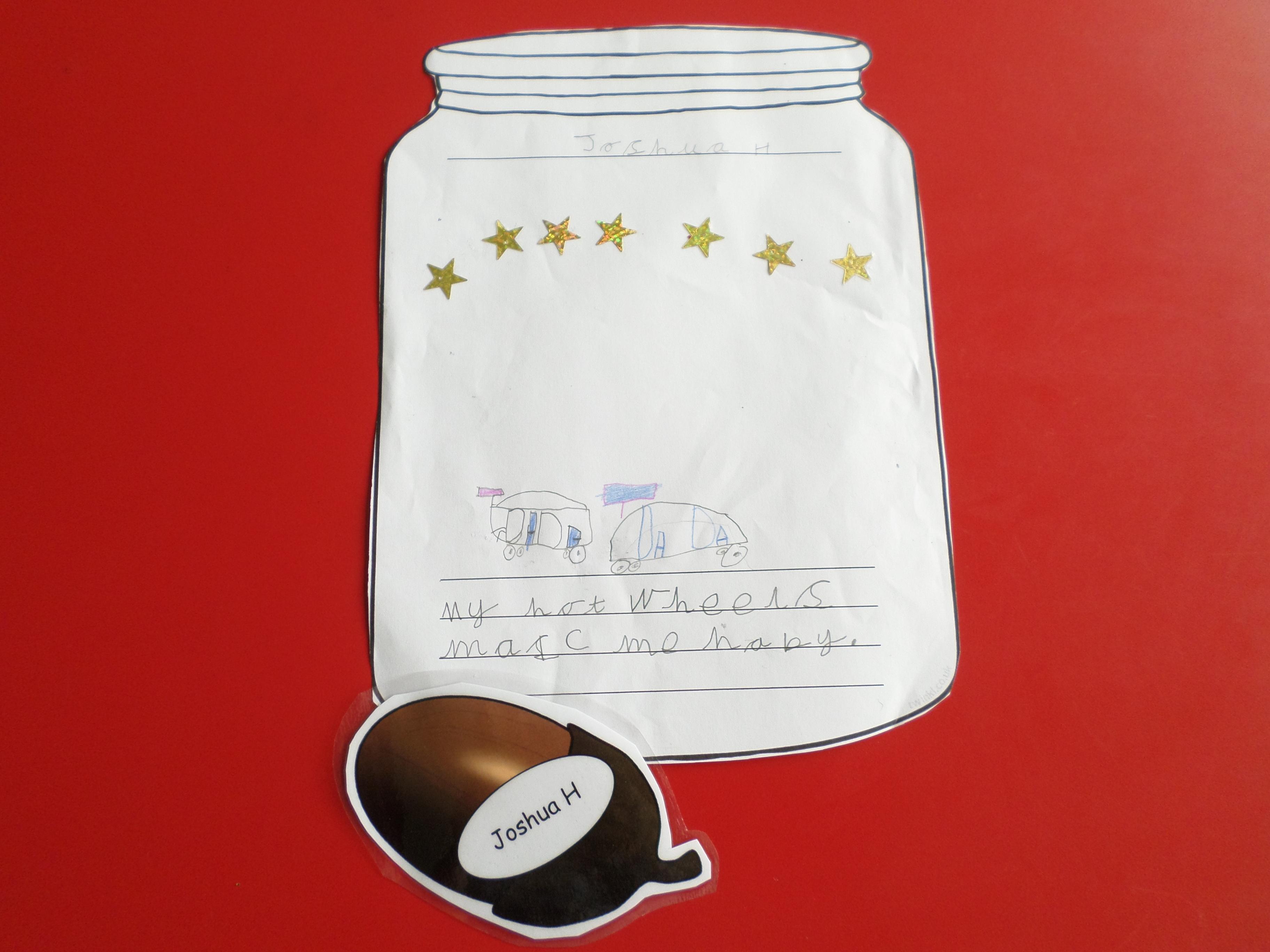 We thought of things that make us happy. Instead of putting them in an actual jar, we drew them in a jar. Please see the pictures below. What a lot of different things make us happy!