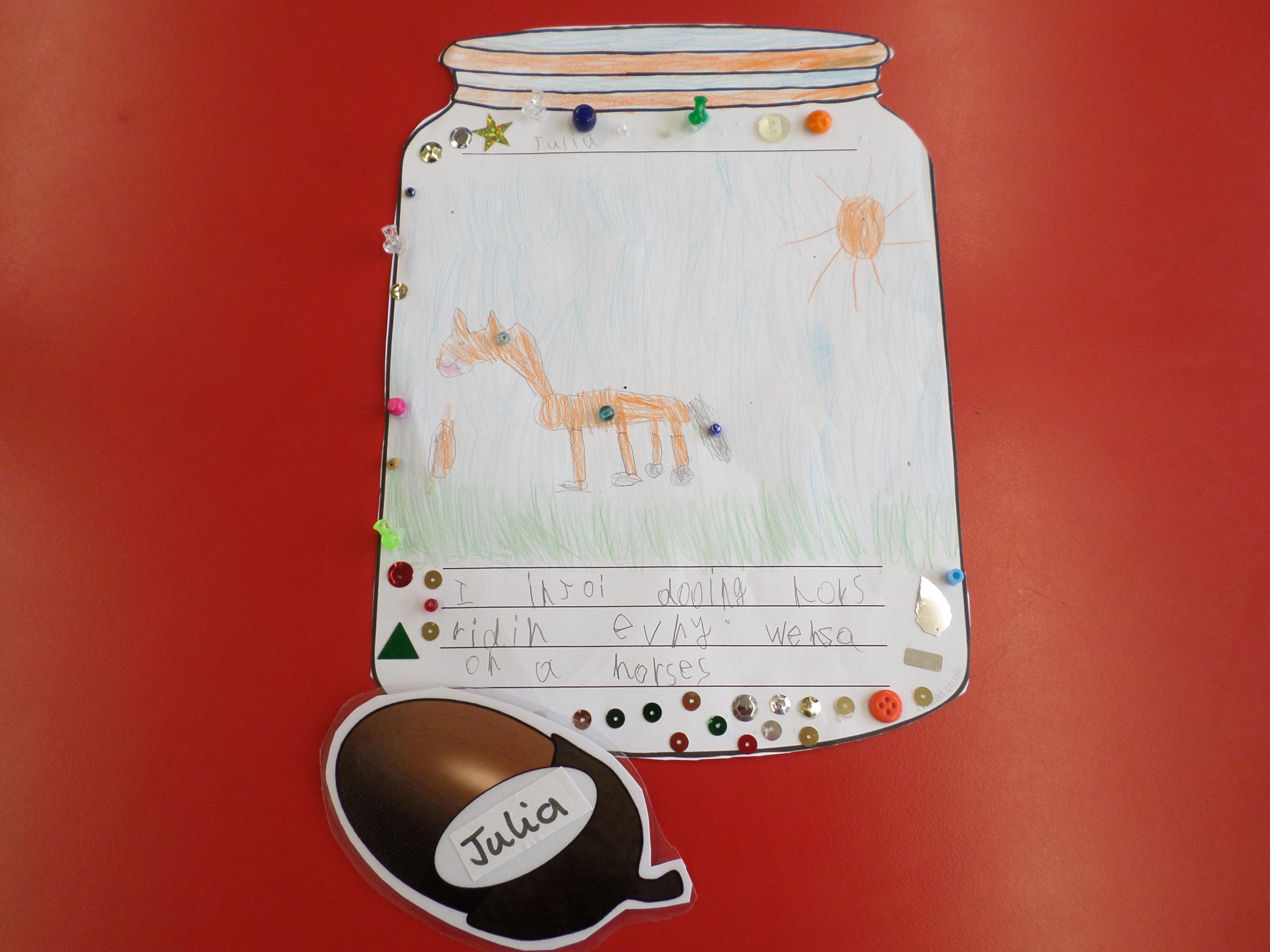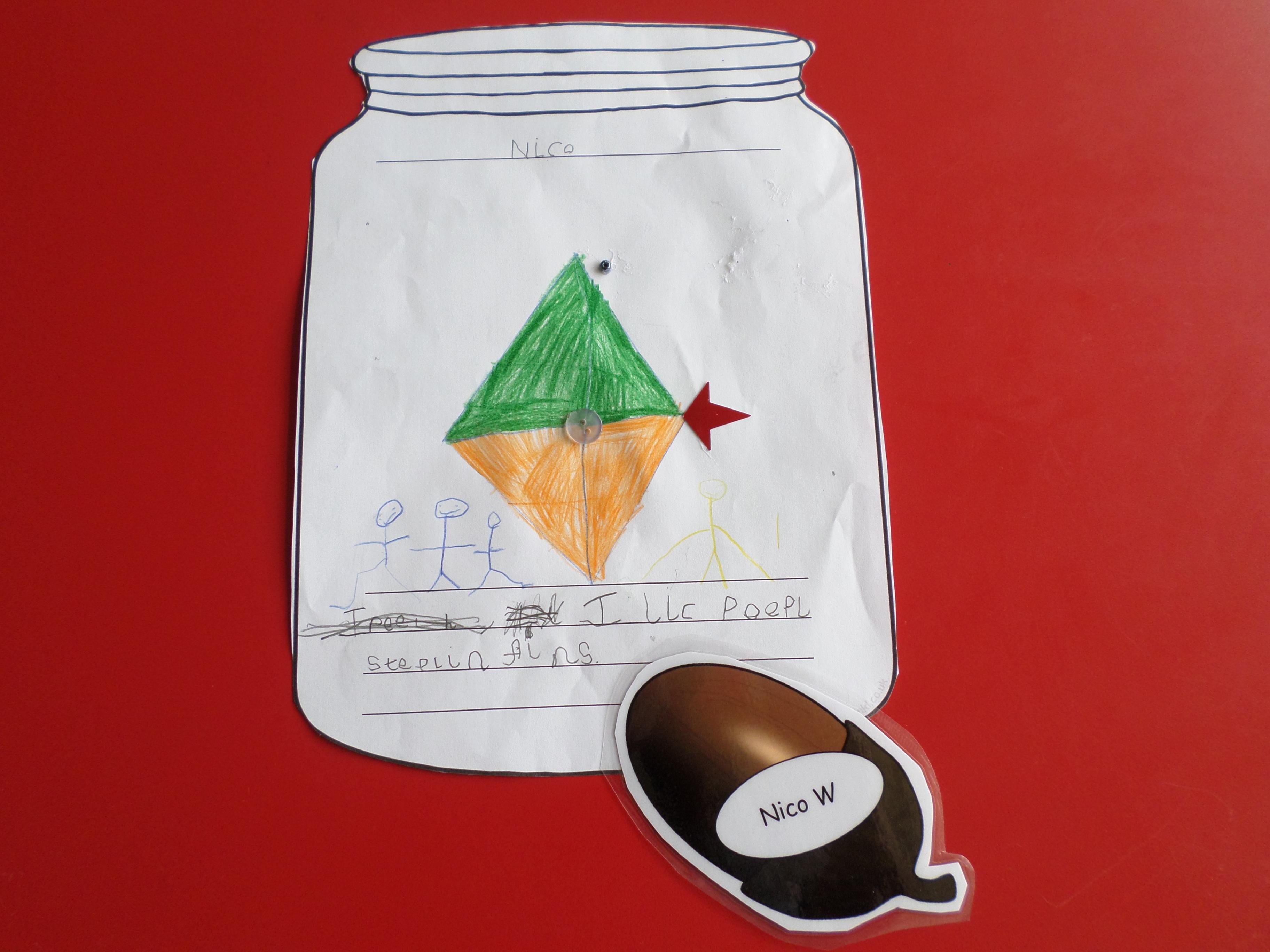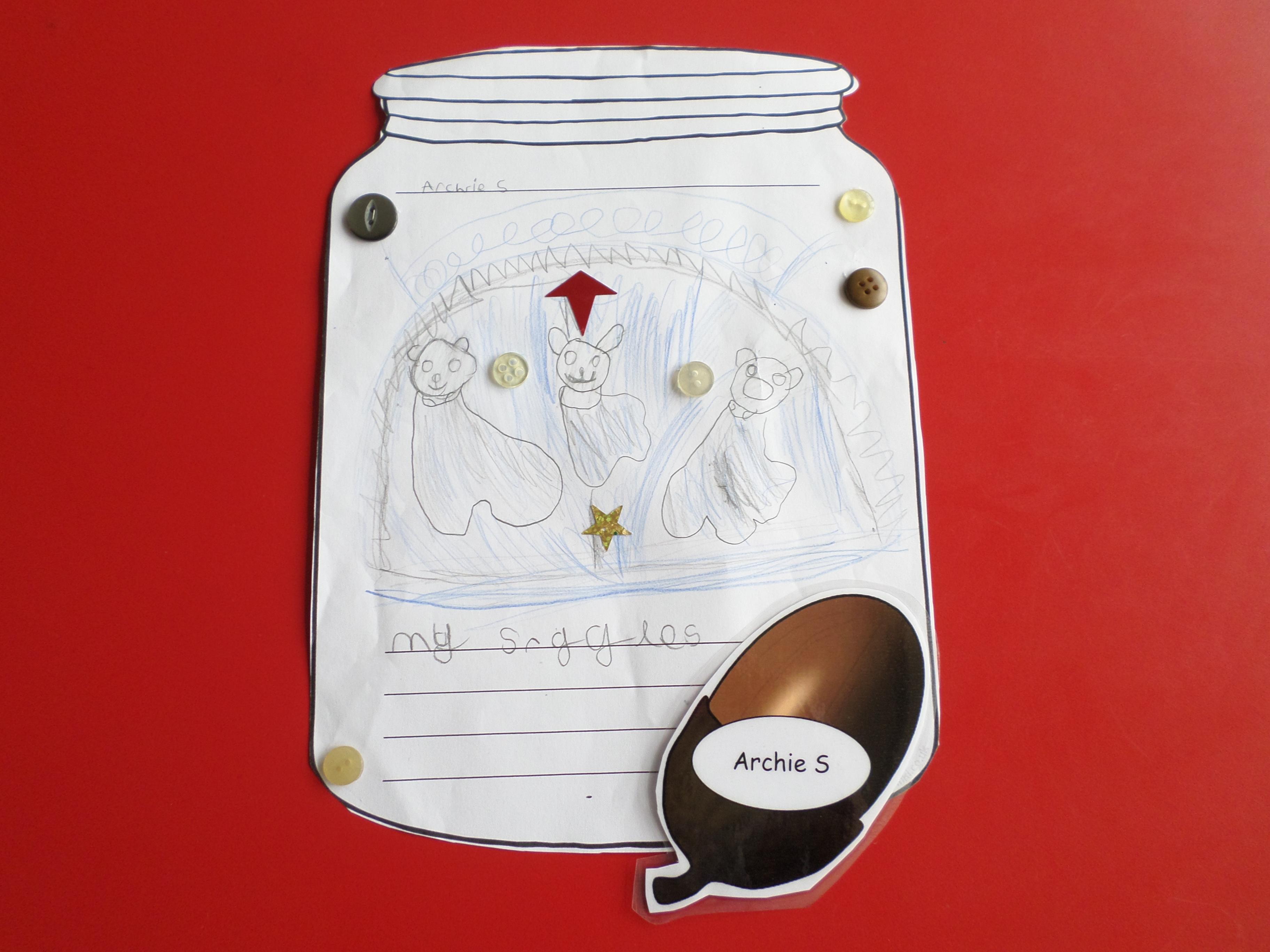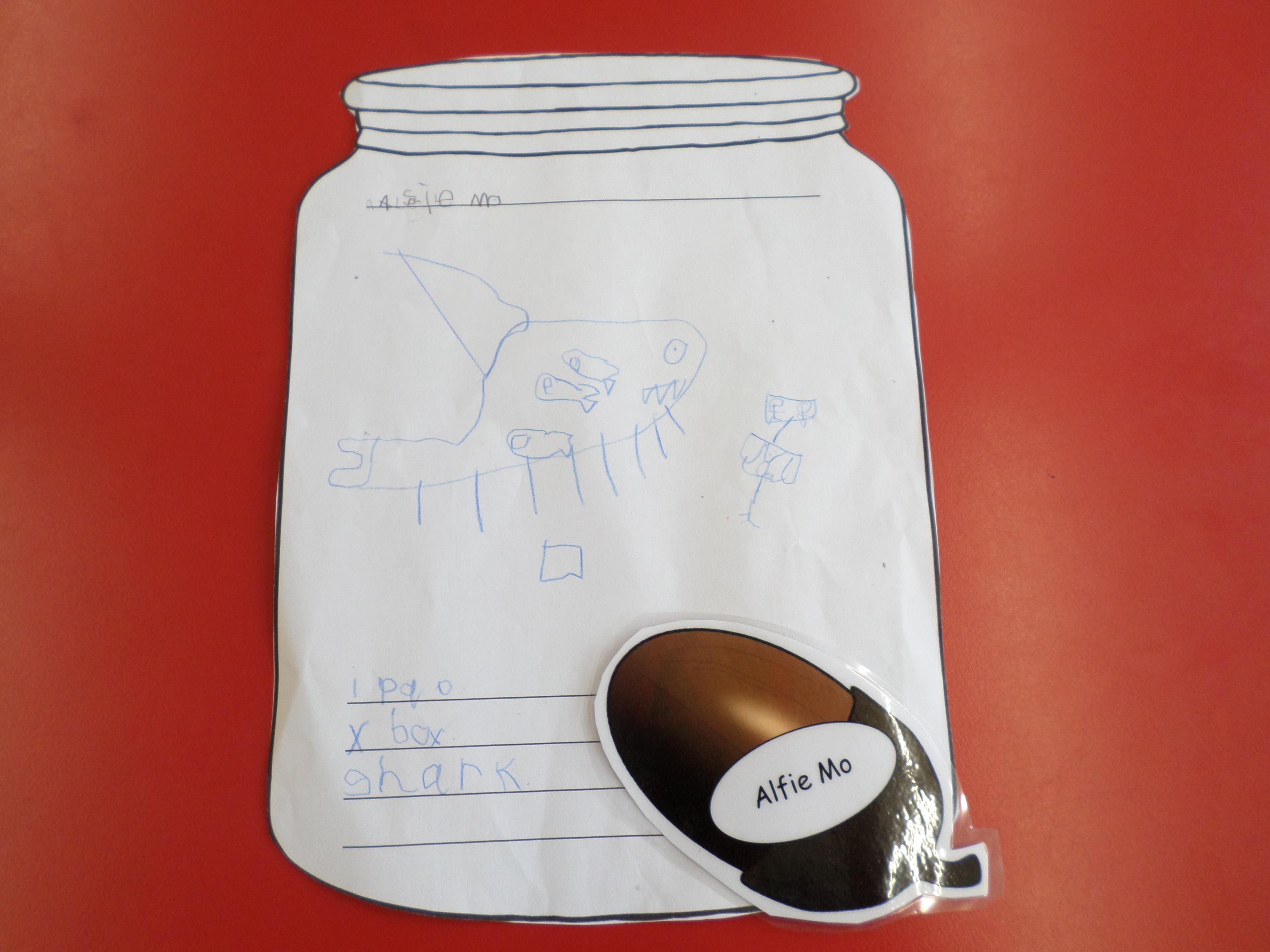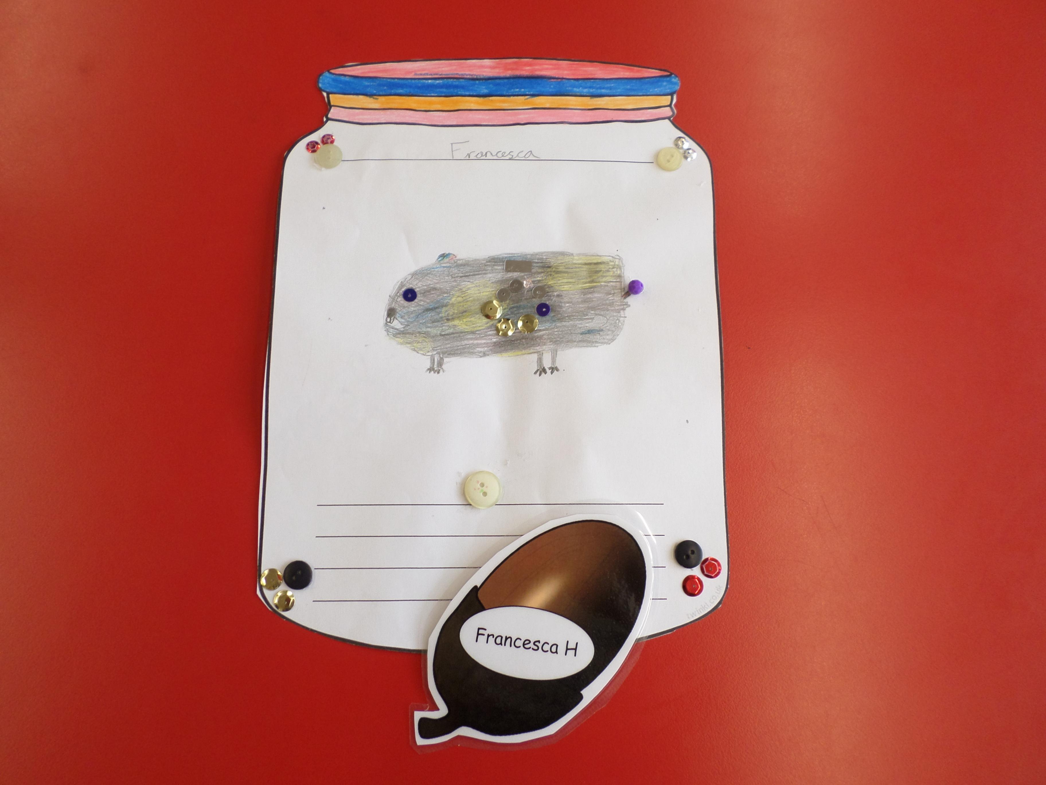 We thought of things that make us happy. Instead of putting them in an actual jar, we drew them in a jar. Please see the pictures below. What a lot of different things make us happy!