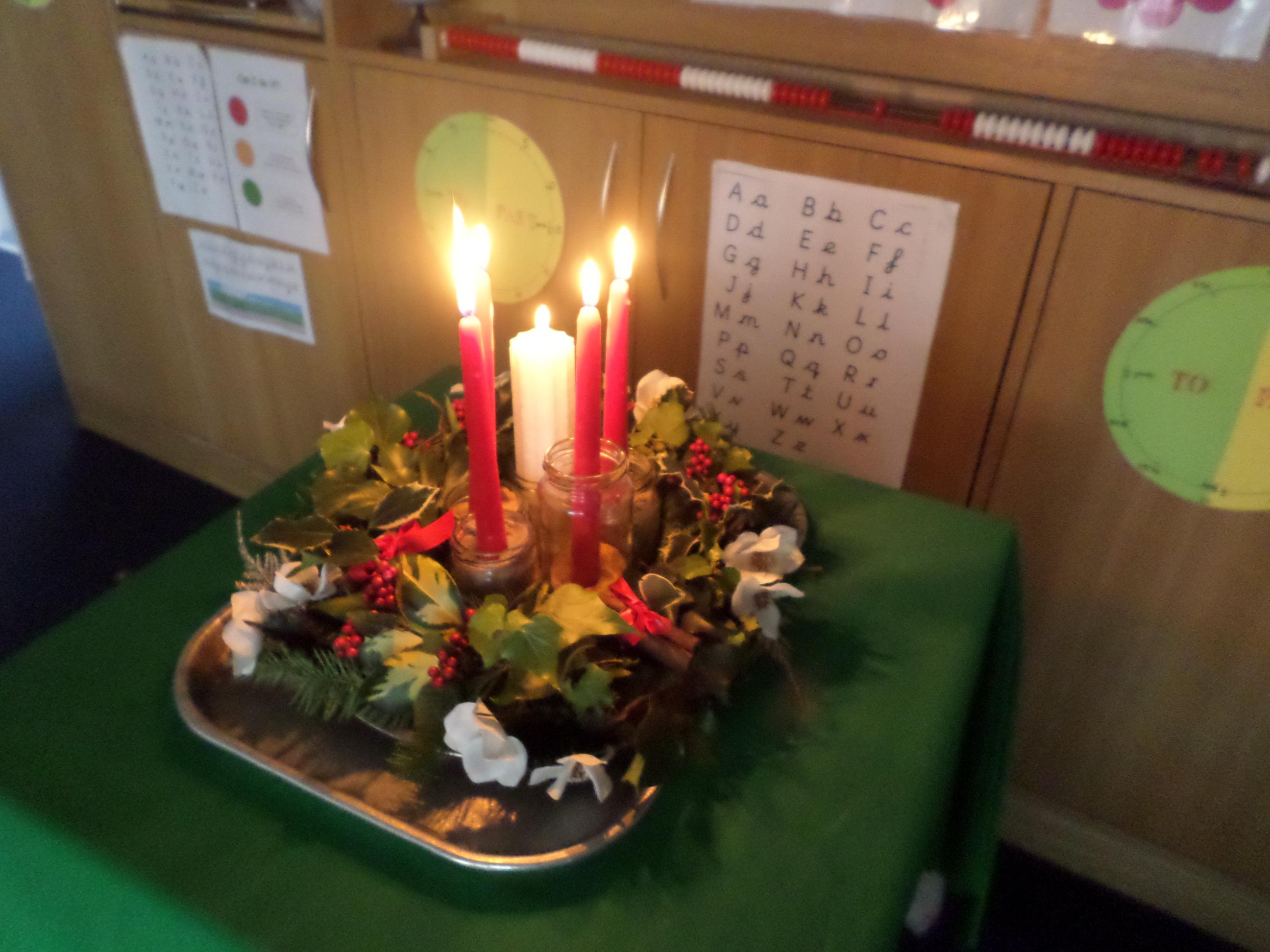 Oak have been learning the meaning of Advent and the five candles on the advent wreath. We talked about hope, peace, love, joy and the birth of Jesus and lit the candles on the beautiful wreath made by Mrs Wood. We look forward to watching them being lit in collective worship from now on.