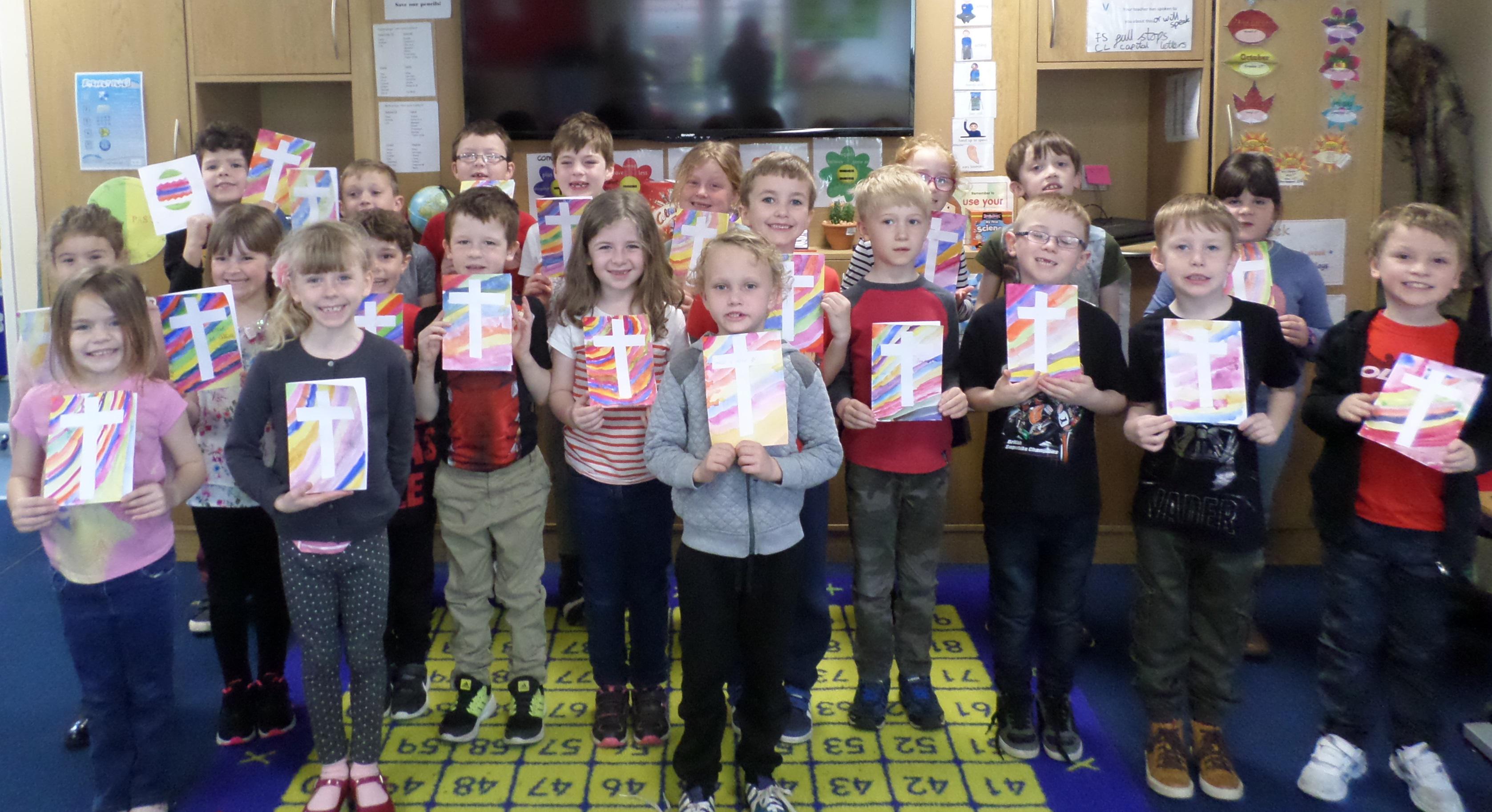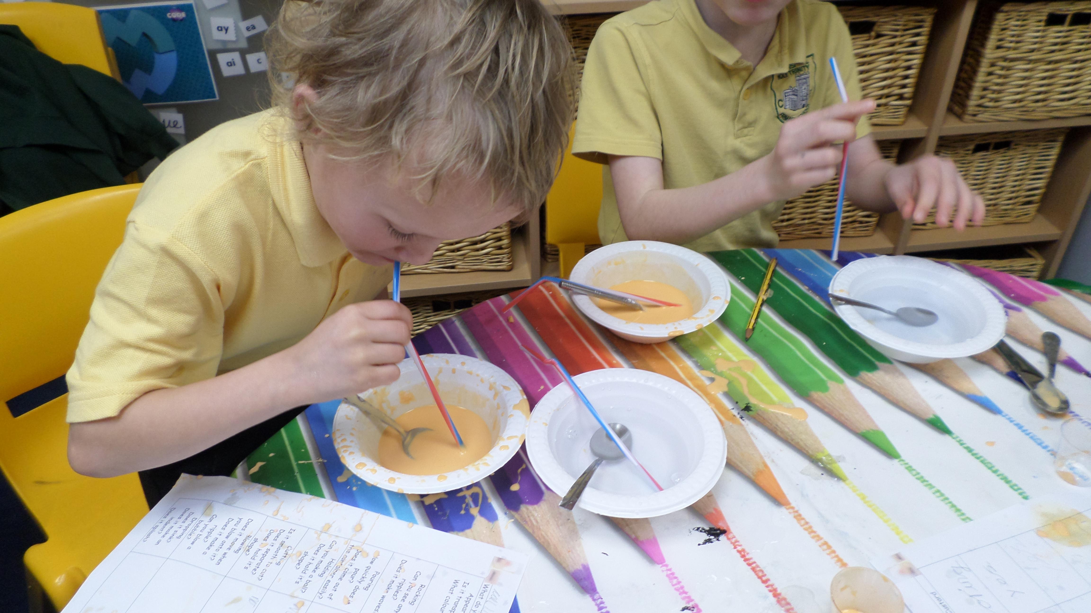 We hope you all liked our Easter cards, we took great care making them and we enjoyed using the water colours to mix rainbows.