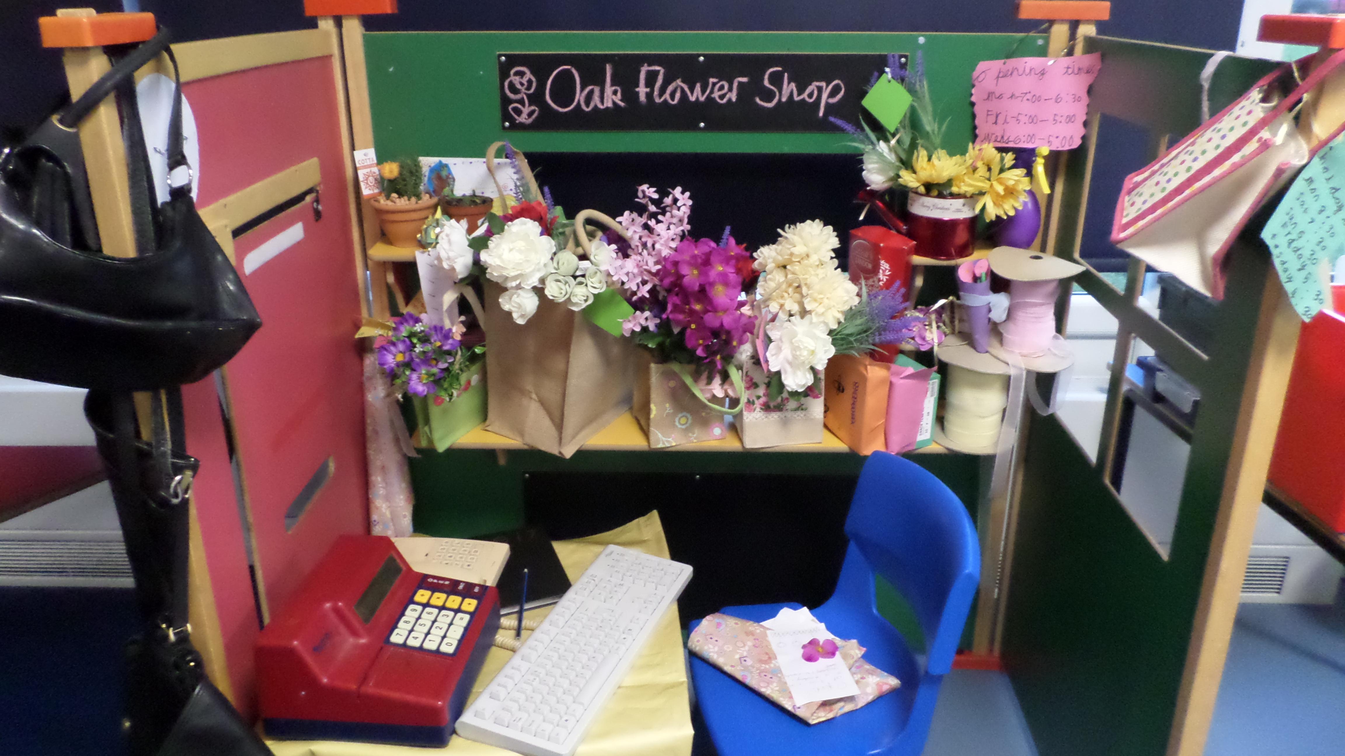 Following our visit to Maxine's Flower Shop, Oak Class created their own flower shop role play. We remembered a lot of the things Maxine had told us about: the ribbon, cards, diary, handbags, chocolates, the long opening hours, wrapping paper and, of course, the flowers. We really enjoy playing in it in Golden Time!