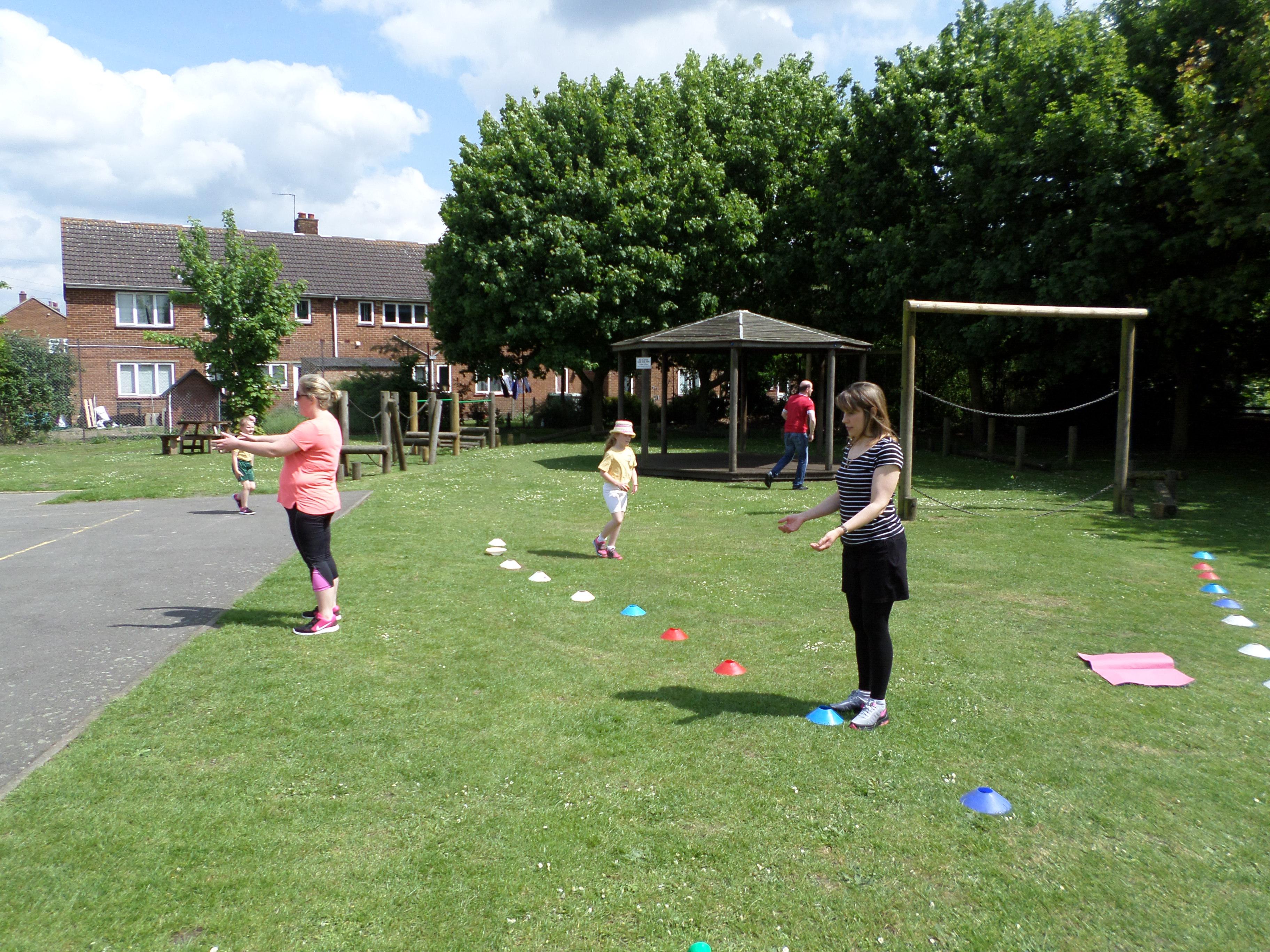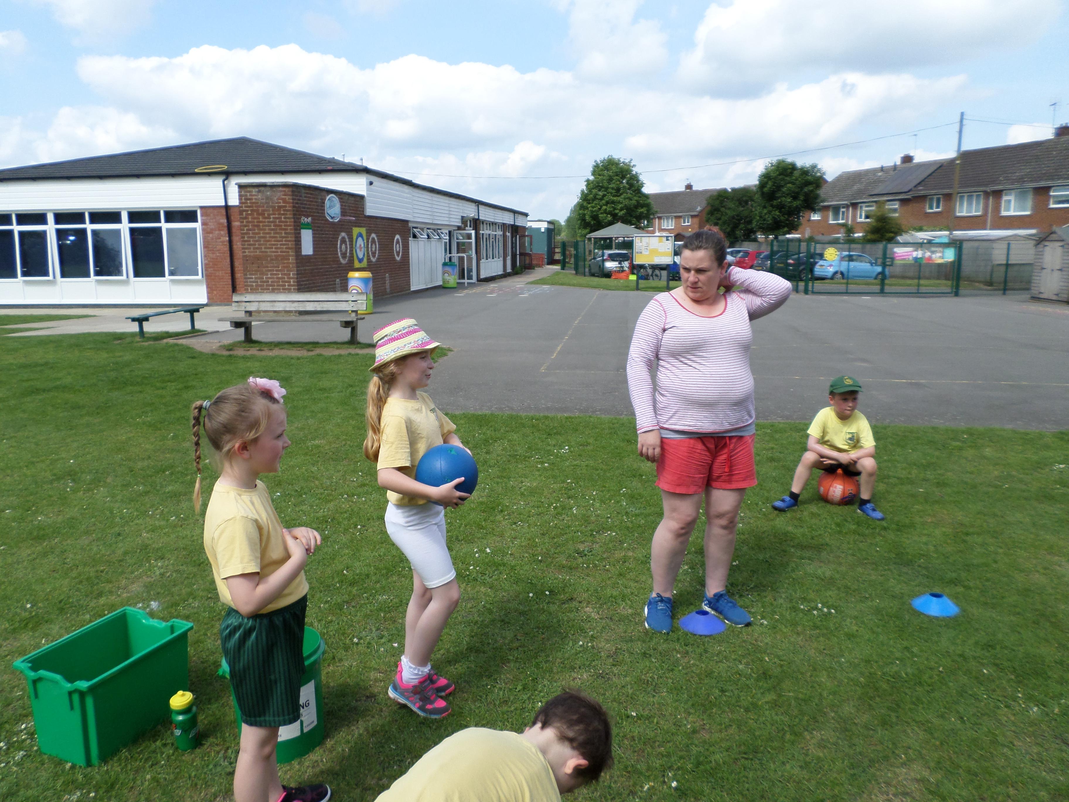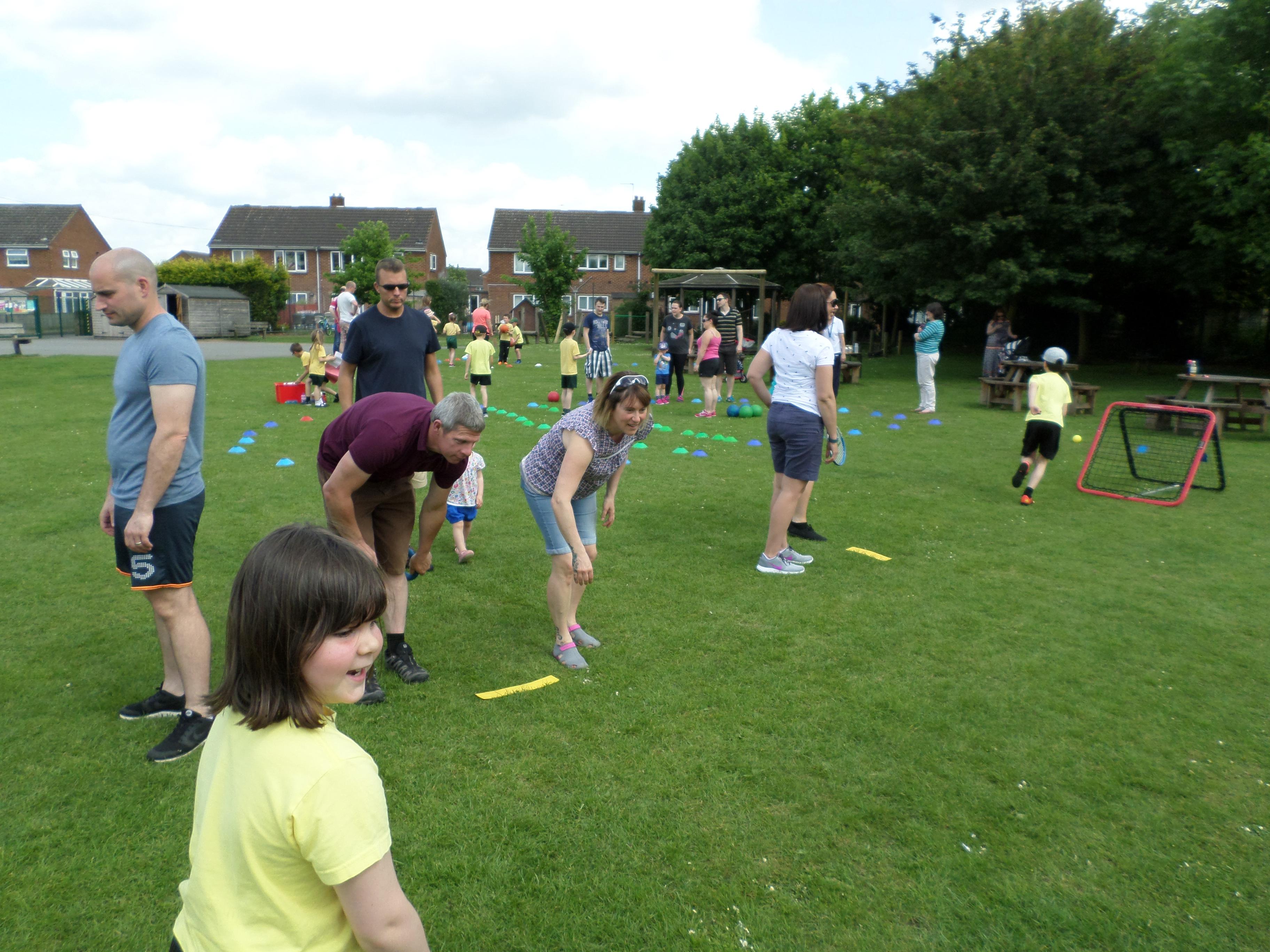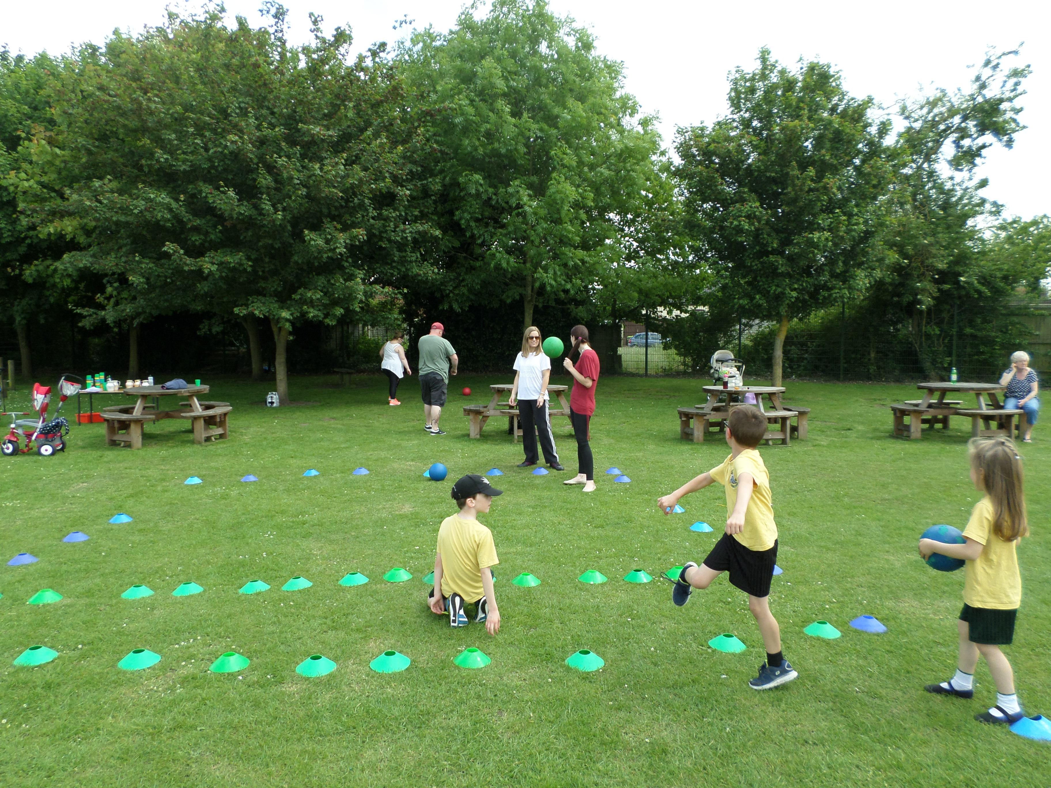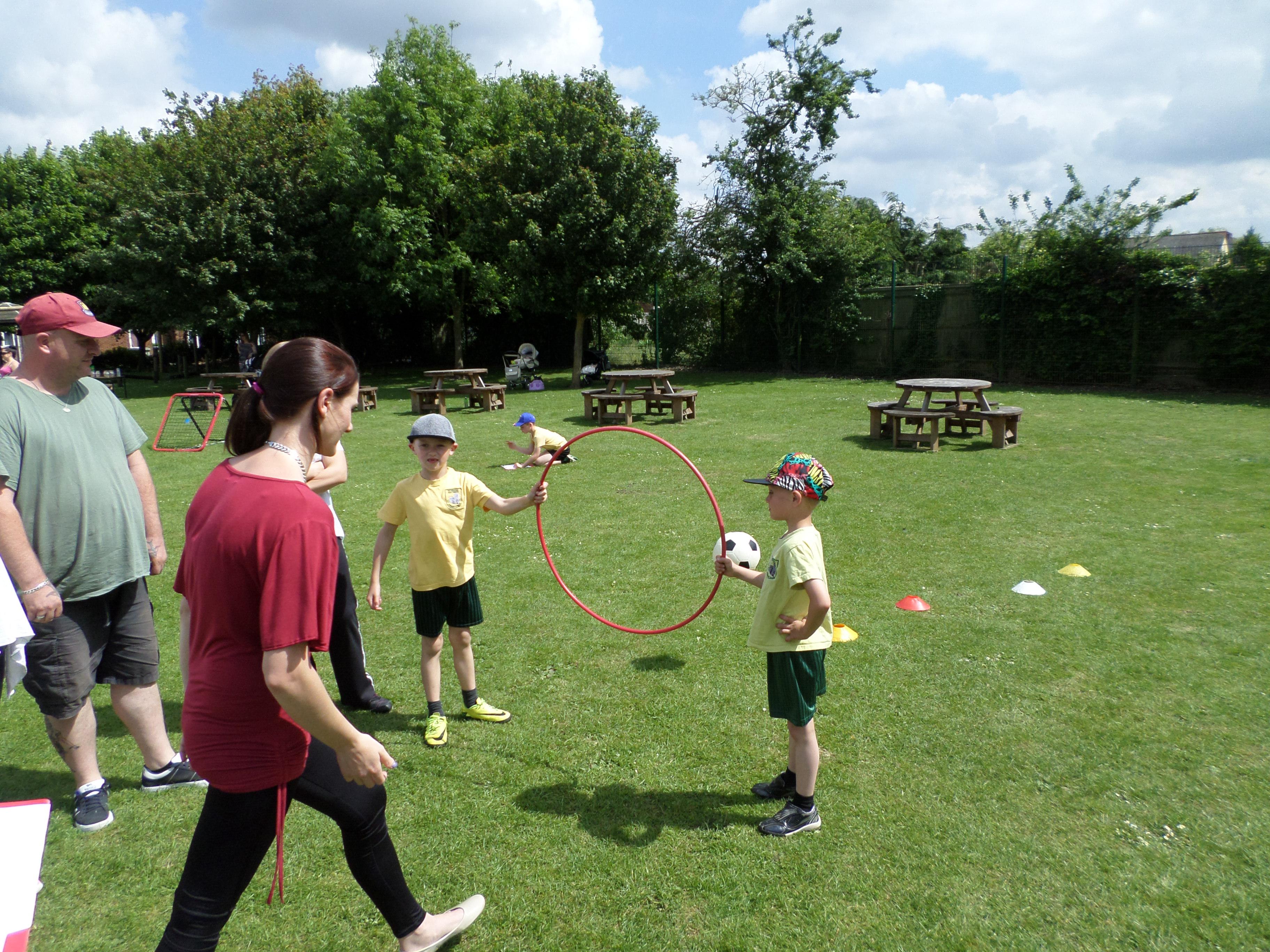 After a lot of team work and instruction writing we invited Oak Class parents to come and try out our games. It was a very hot day, but at least it didn't rain. After the health and safety talk the parents found their children's team and followed instructions for the warm up that was led by the children. Then the children explained their activities and all the adults had a go at each one. It did come to our attention that some rules were being 'adapted' to make it harder for the adults, but they still took part with enthusiasm! The children really enjoyed their event and would like to thank all the adults who came to support them. We hope we have inspired our families to keep fit and active!