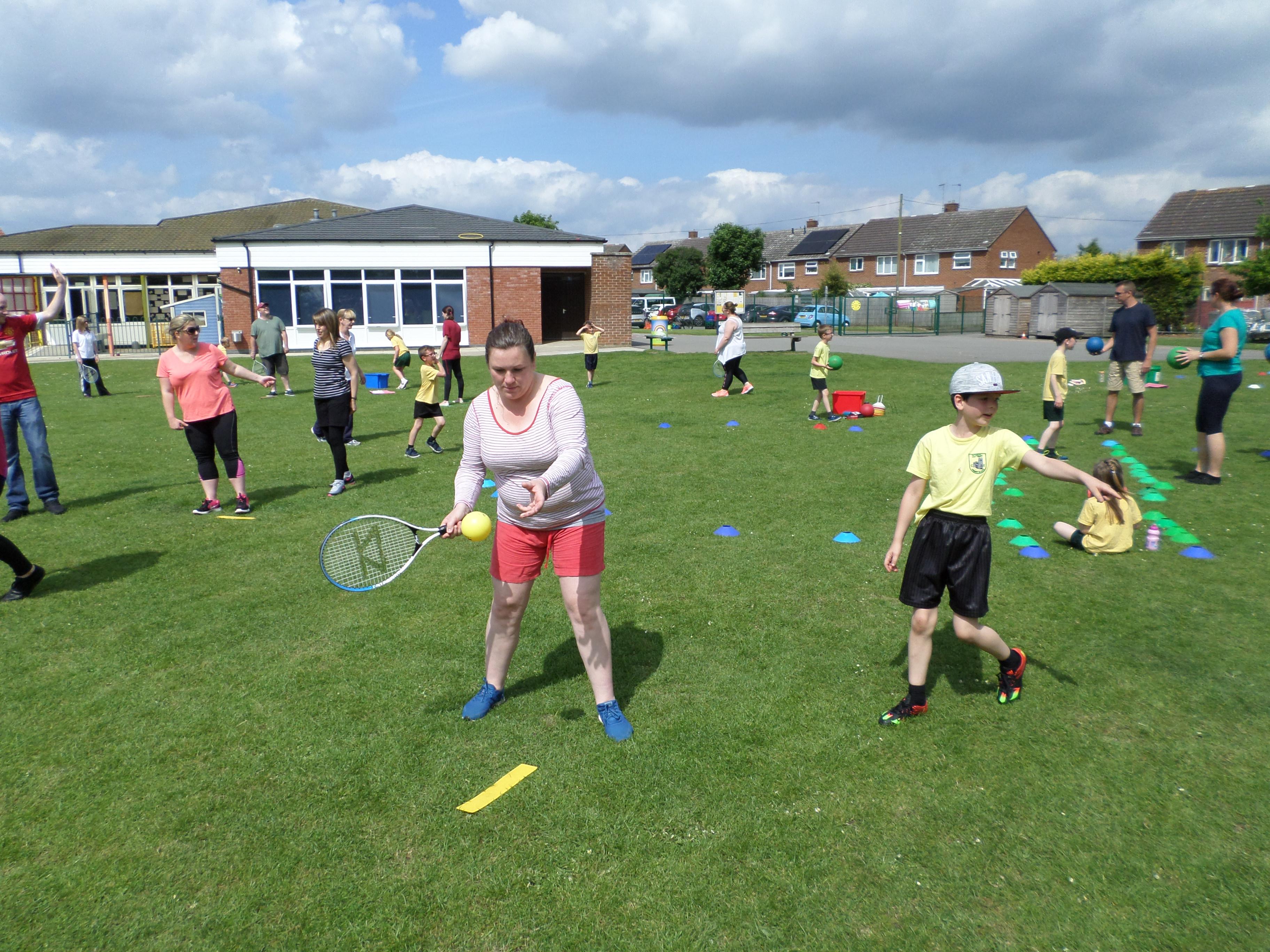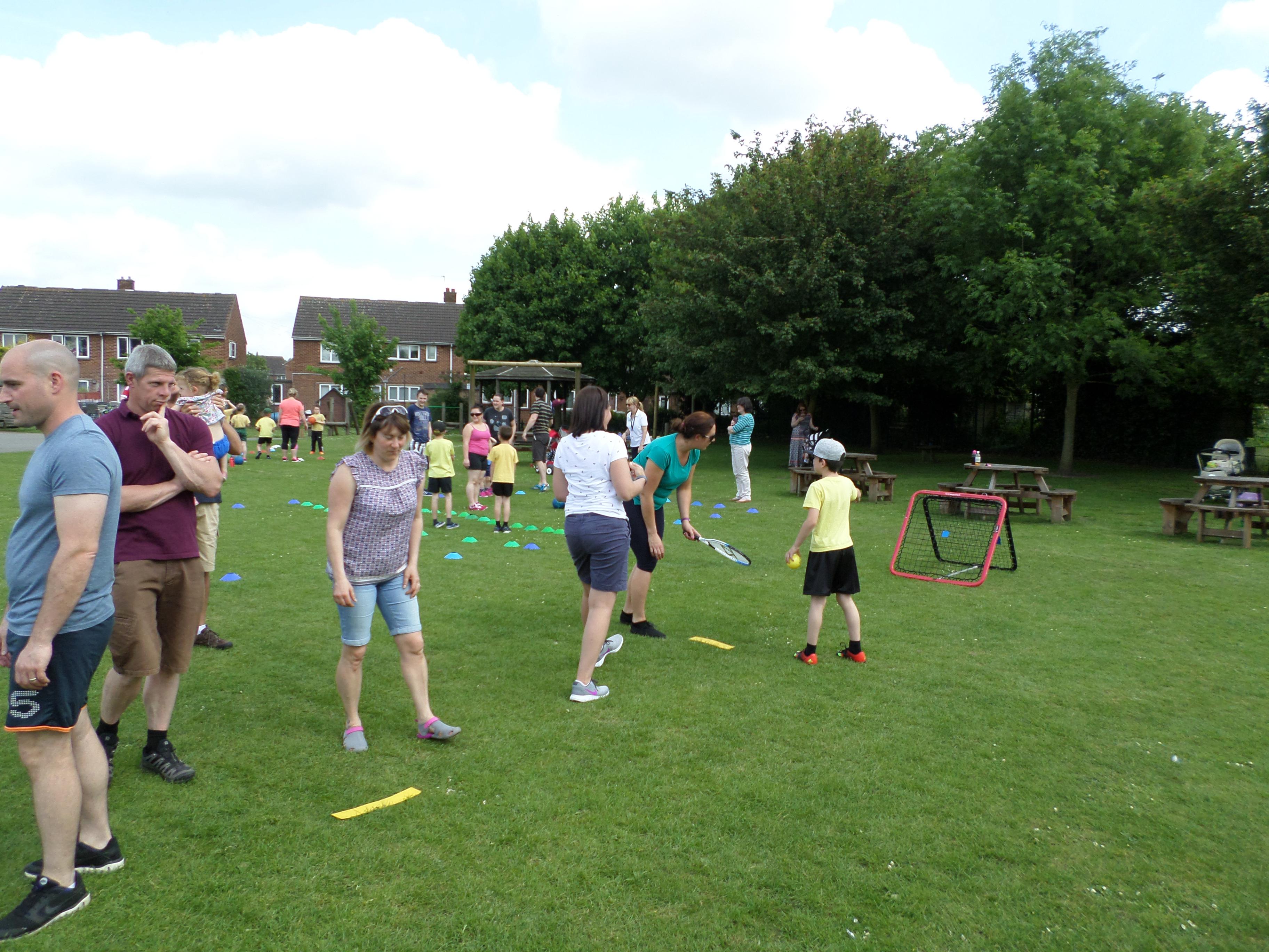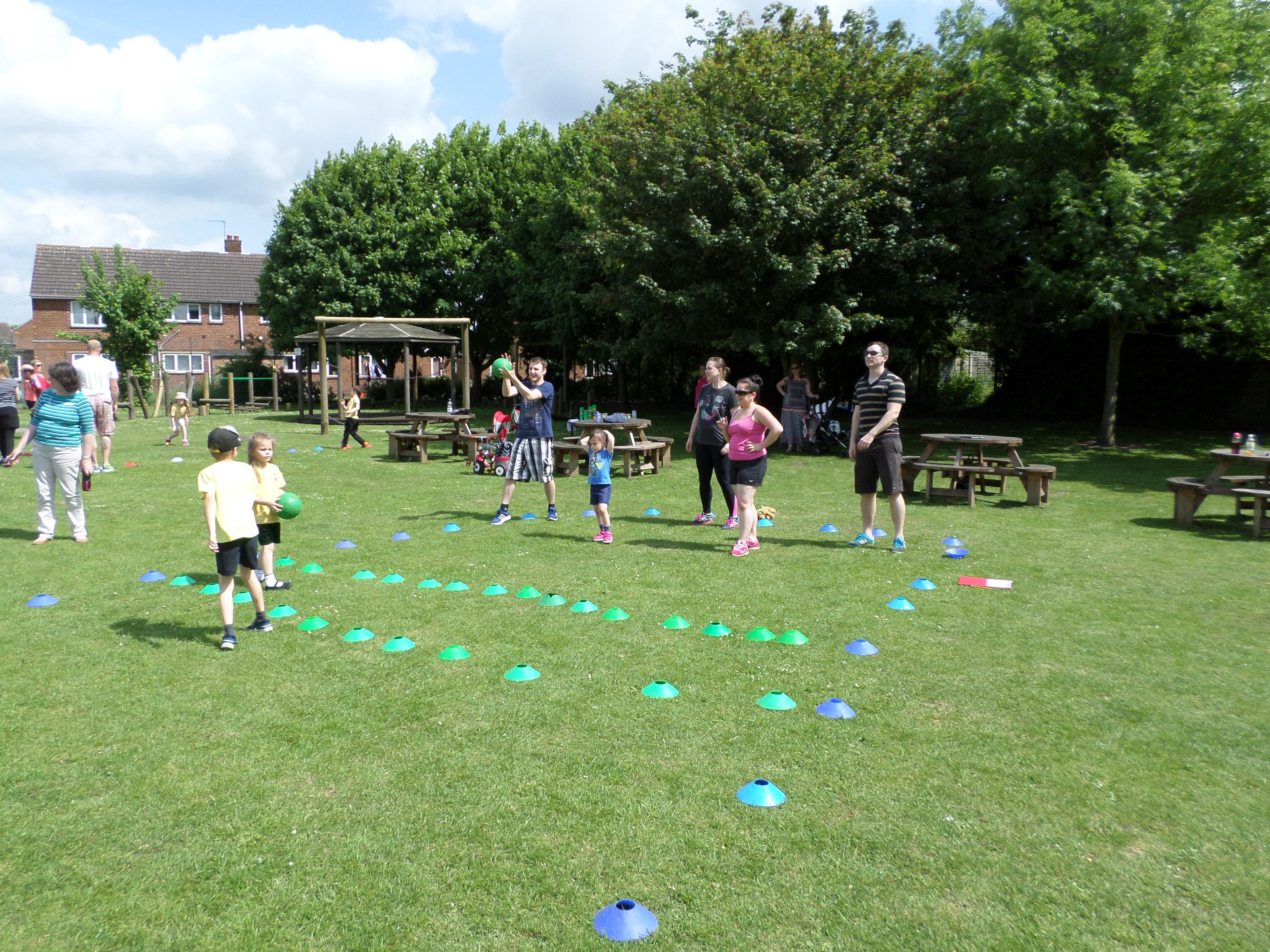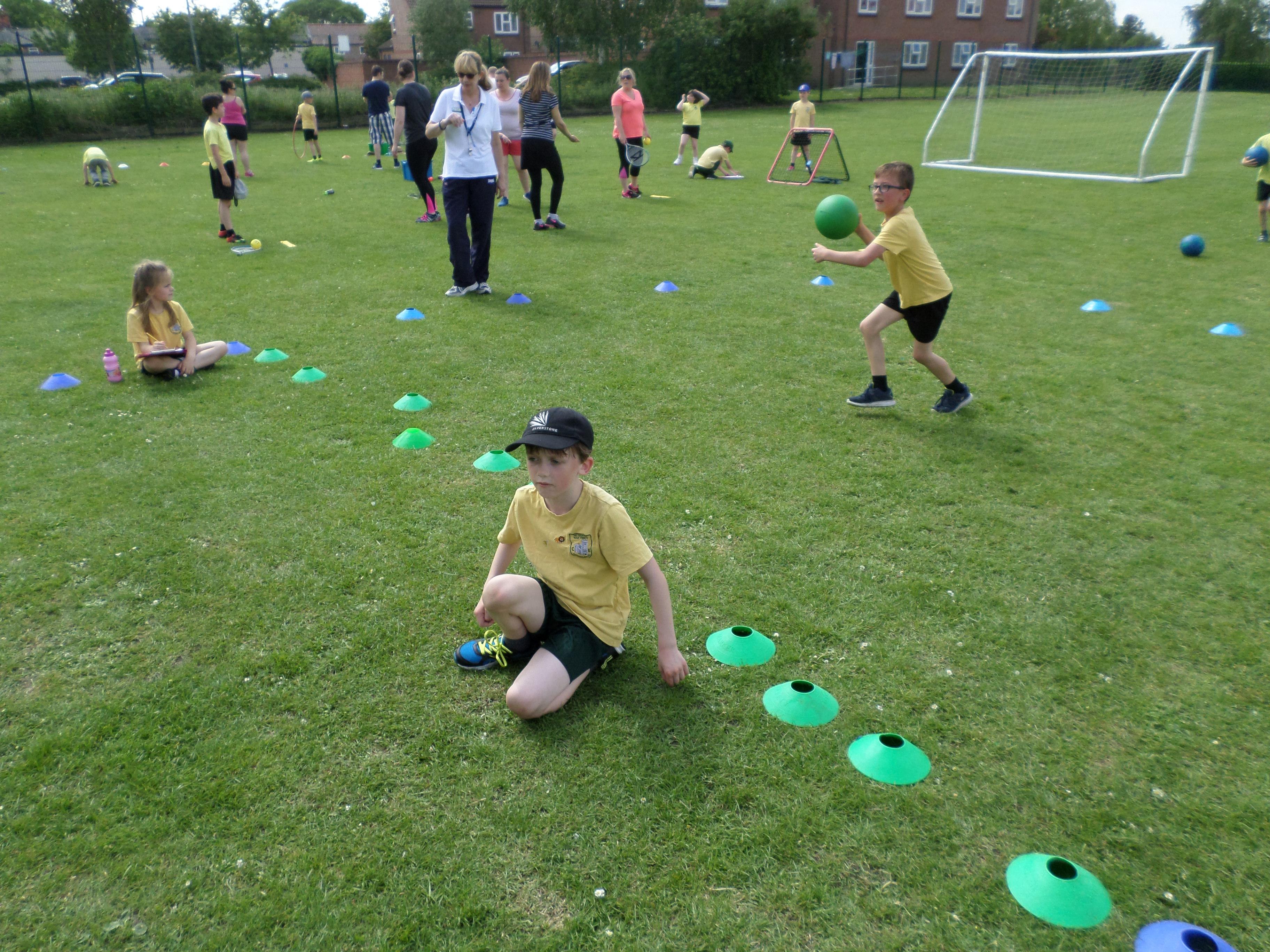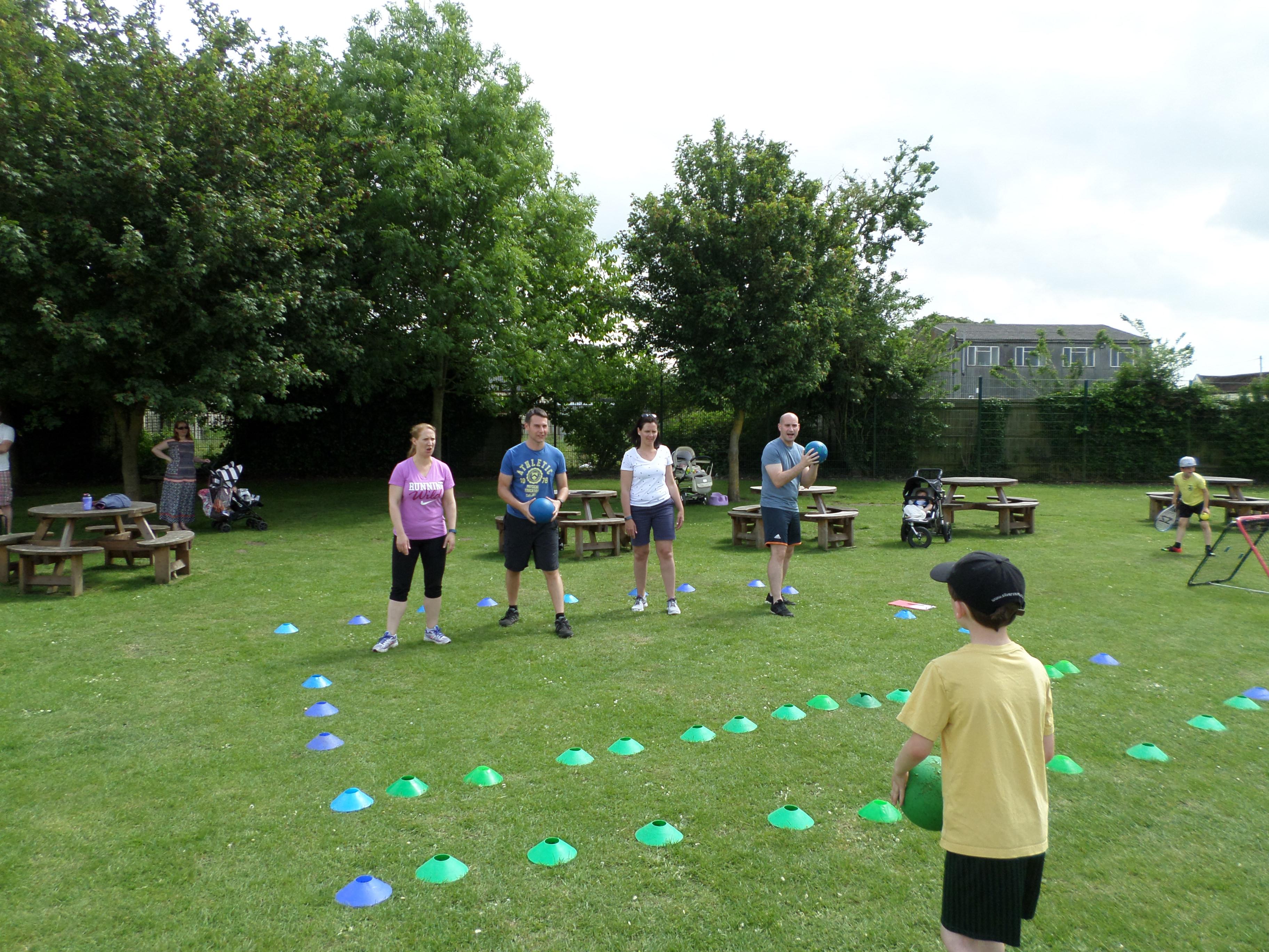 After a lot of team work and instruction writing we invited Oak Class parents to come and try out our games. It was a very hot day, but at least it didn't rain. After the health and safety talk the parents found their children's team and followed instructions for the warm up that was led by the children. Then the children explained their activities and all the adults had a go at each one. It did come to our attention that some rules were being 'adapted' to make it harder for the adults, but they still took part with enthusiasm! The children really enjoyed their event and would like to thank all the adults who came to support them. We hope we have inspired our families to keep fit and active!