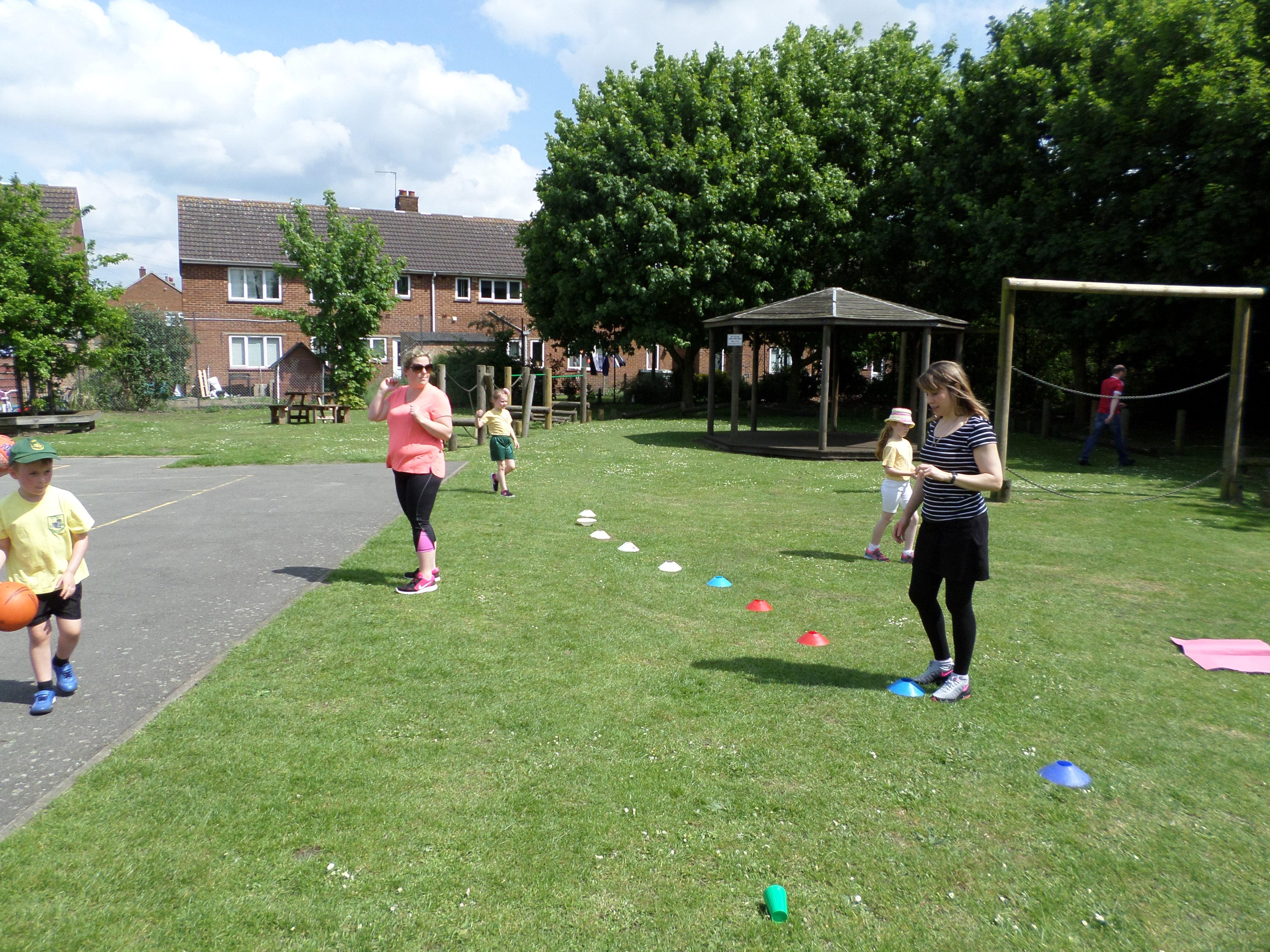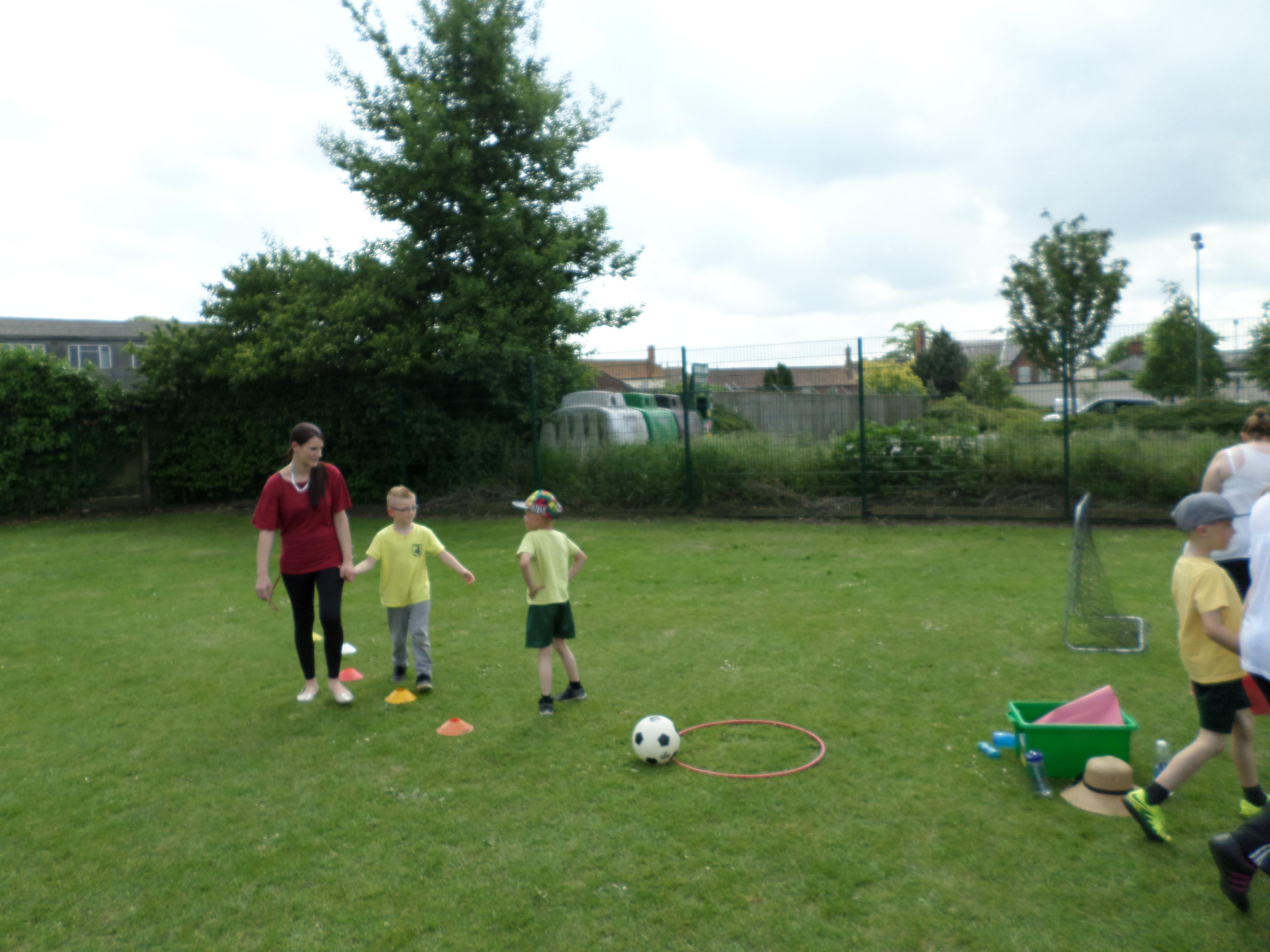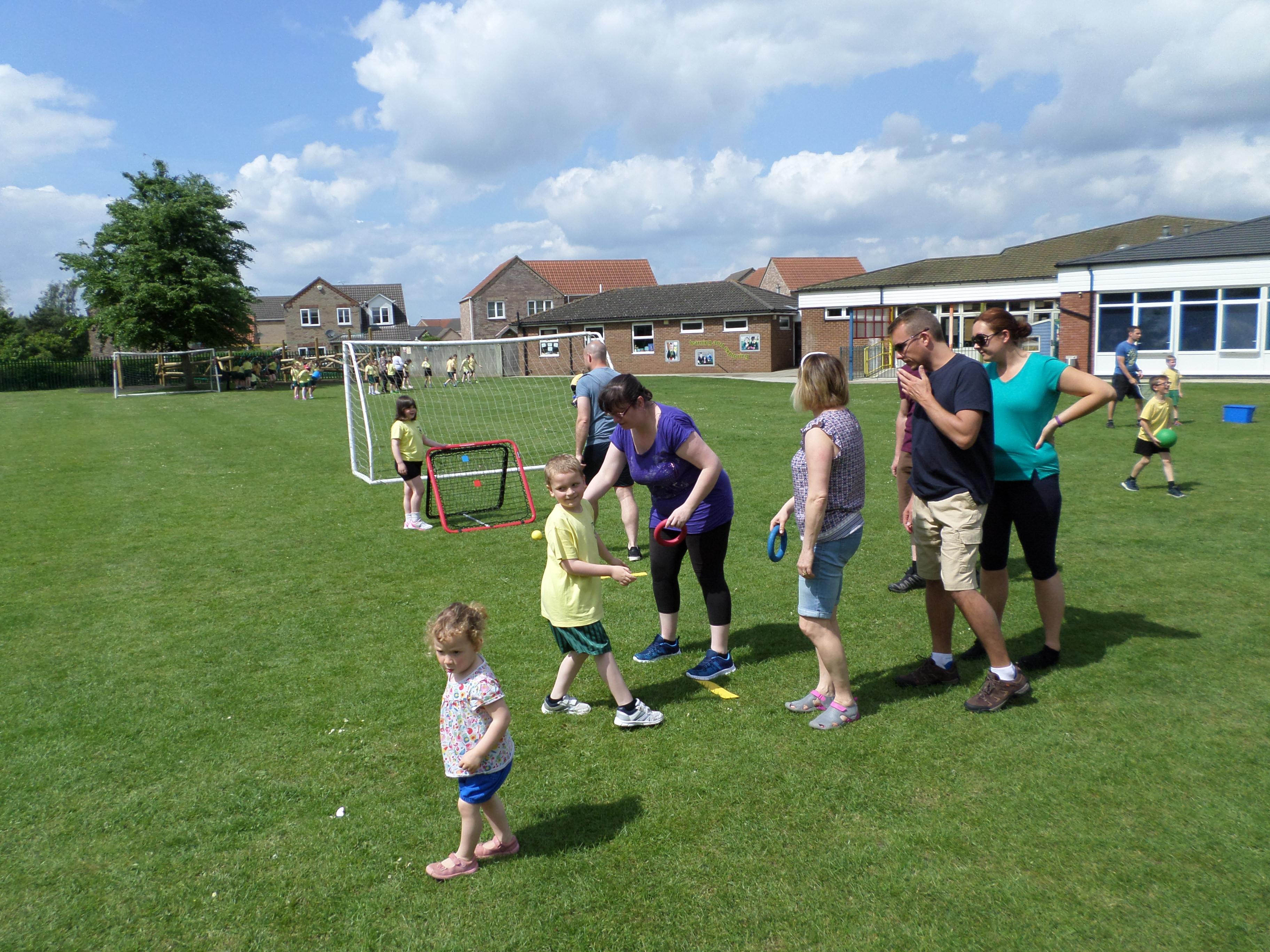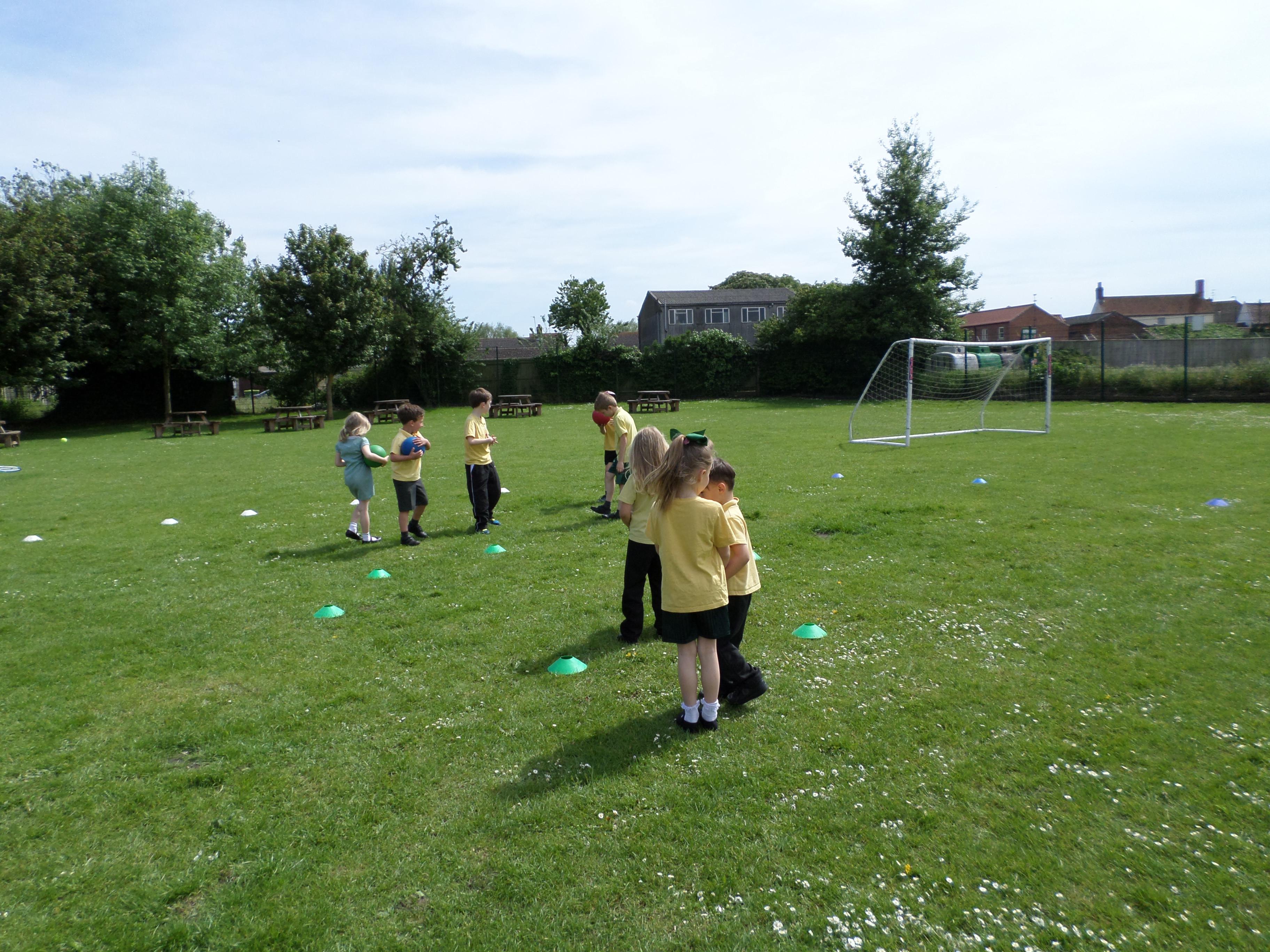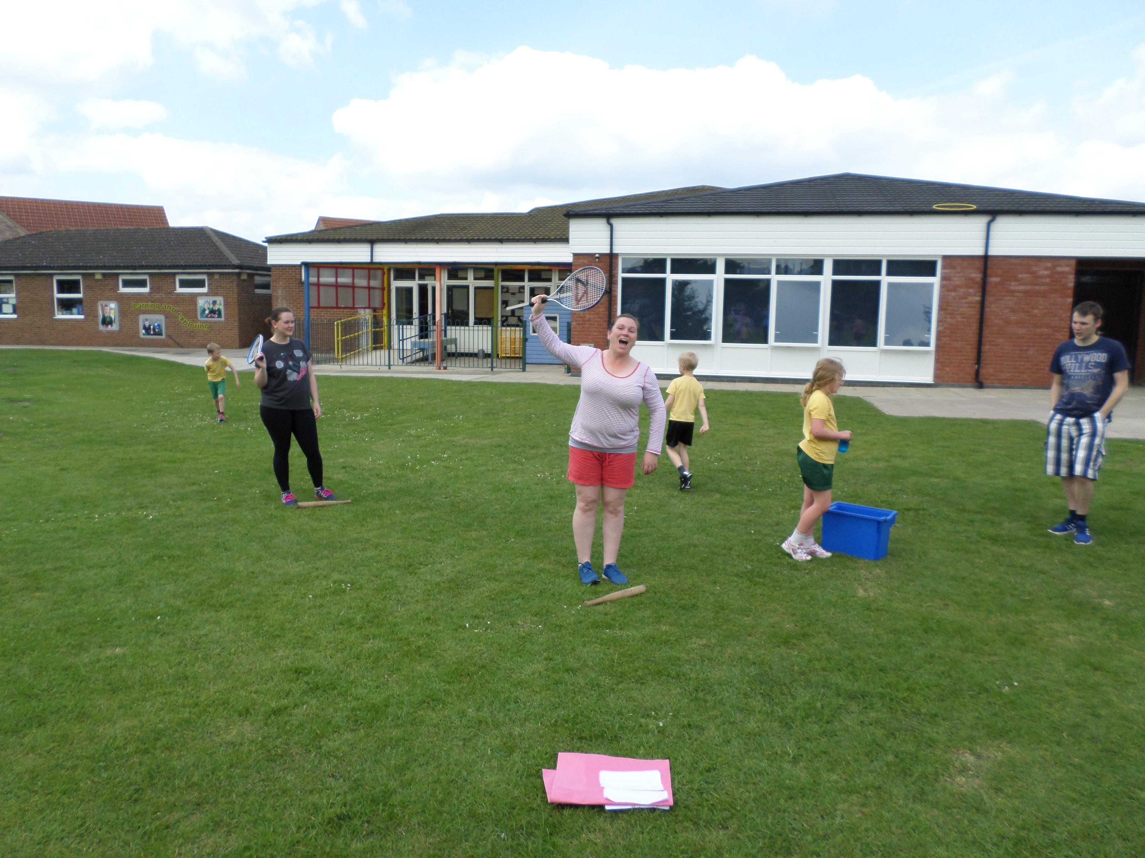 After a lot of team work and instruction writing we invited Oak Class parents to come and try out our games. It was a very hot day, but at least it didn't rain. After the health and safety talk the parents found their children's team and followed instructions for the warm up that was led by the children. Then the children explained their activities and all the adults had a go at each one. It did come to our attention that some rules were being 'adapted' to make it harder for the adults, but they still took part with enthusiasm! The children really enjoyed their event and would like to thank all the adults who came to support them. We hope we have inspired our families to keep fit and active!