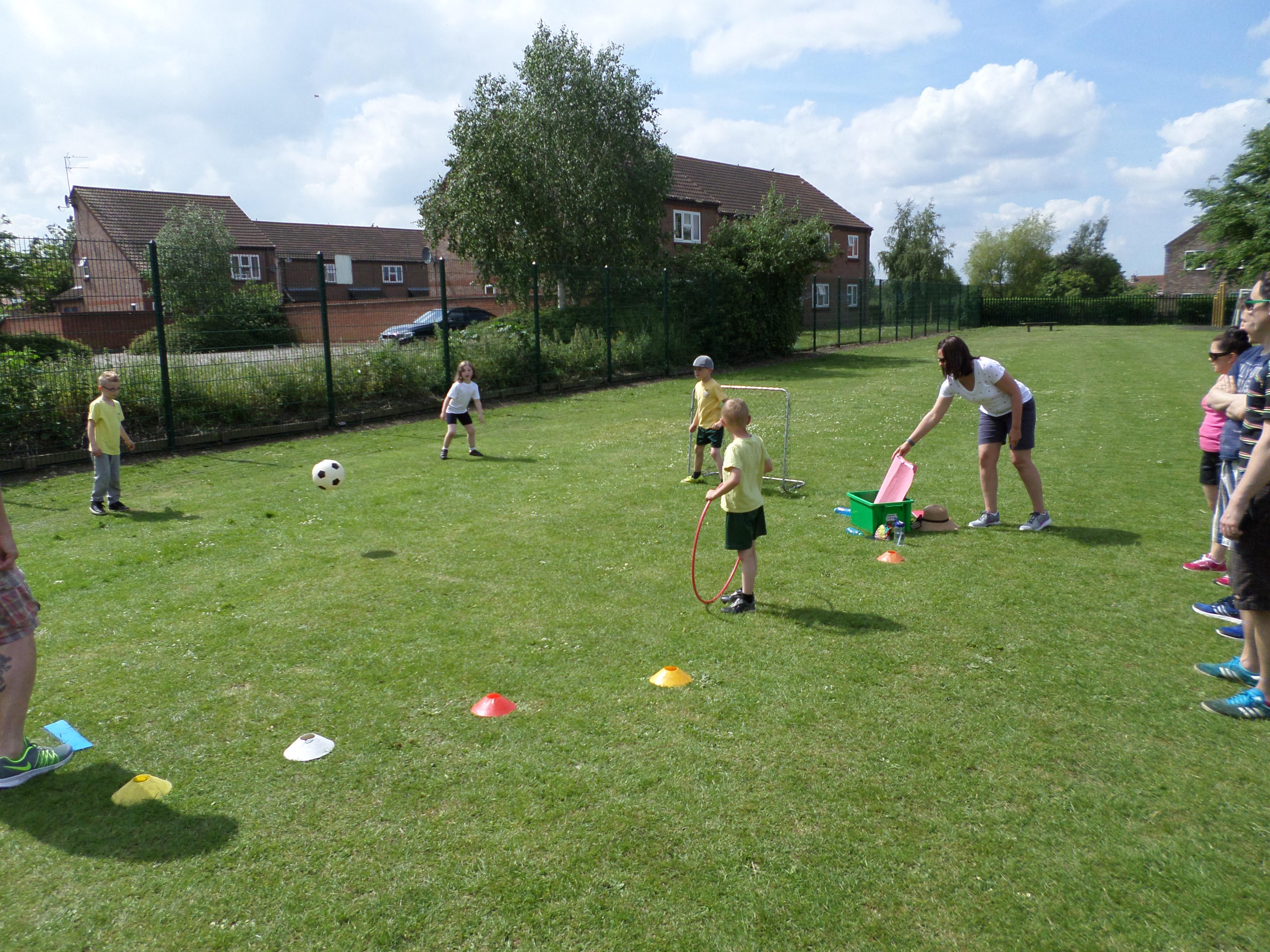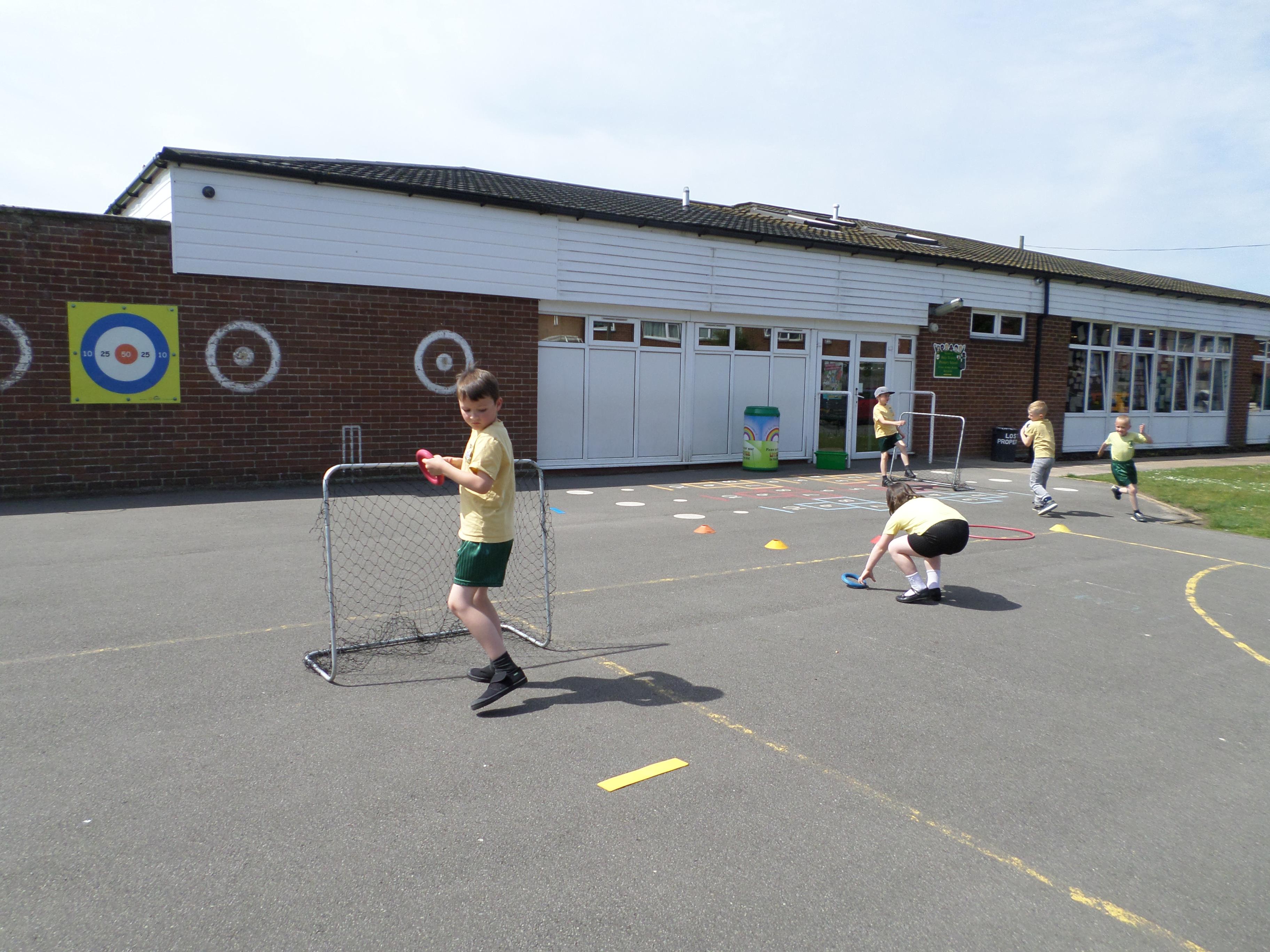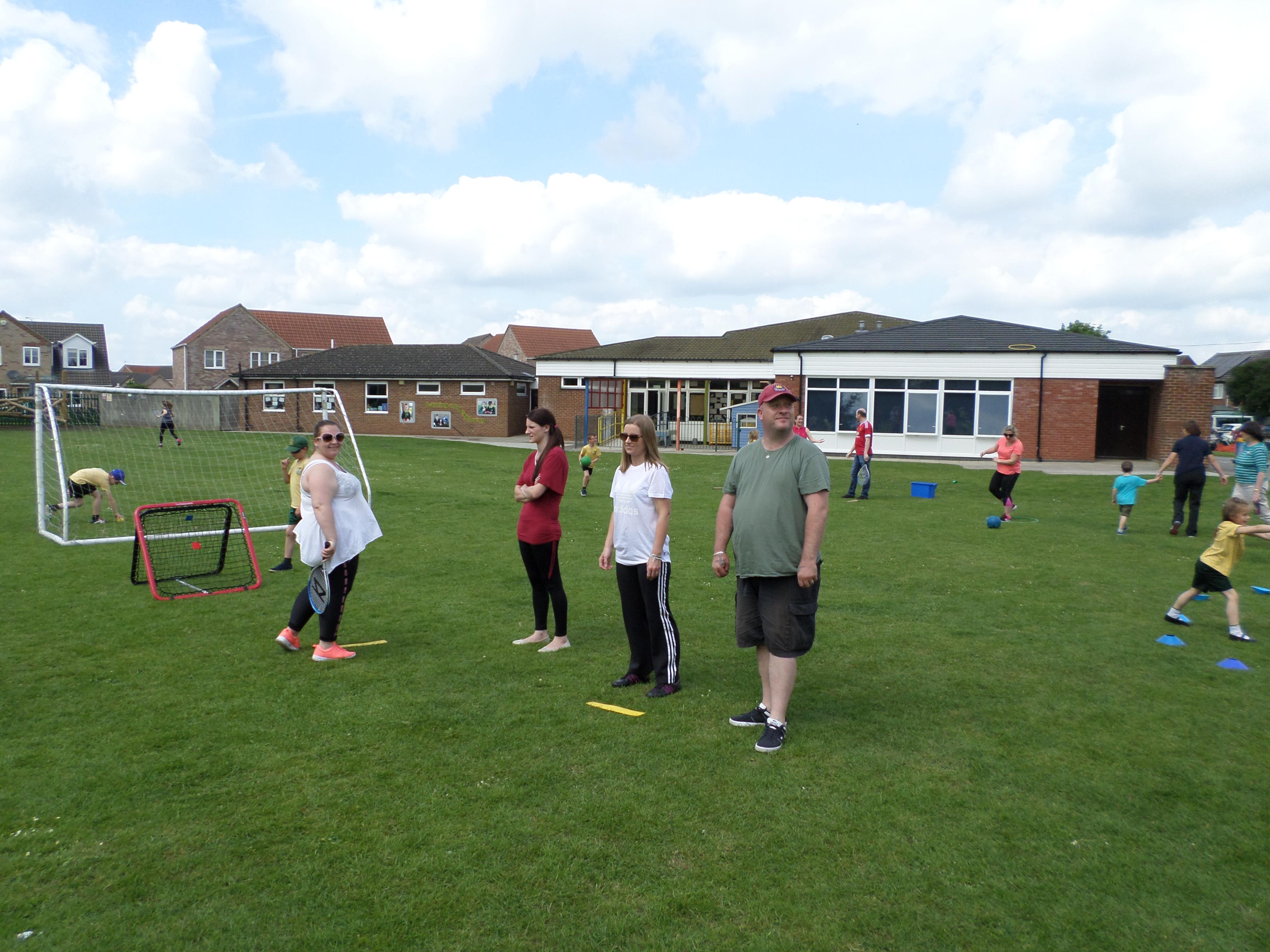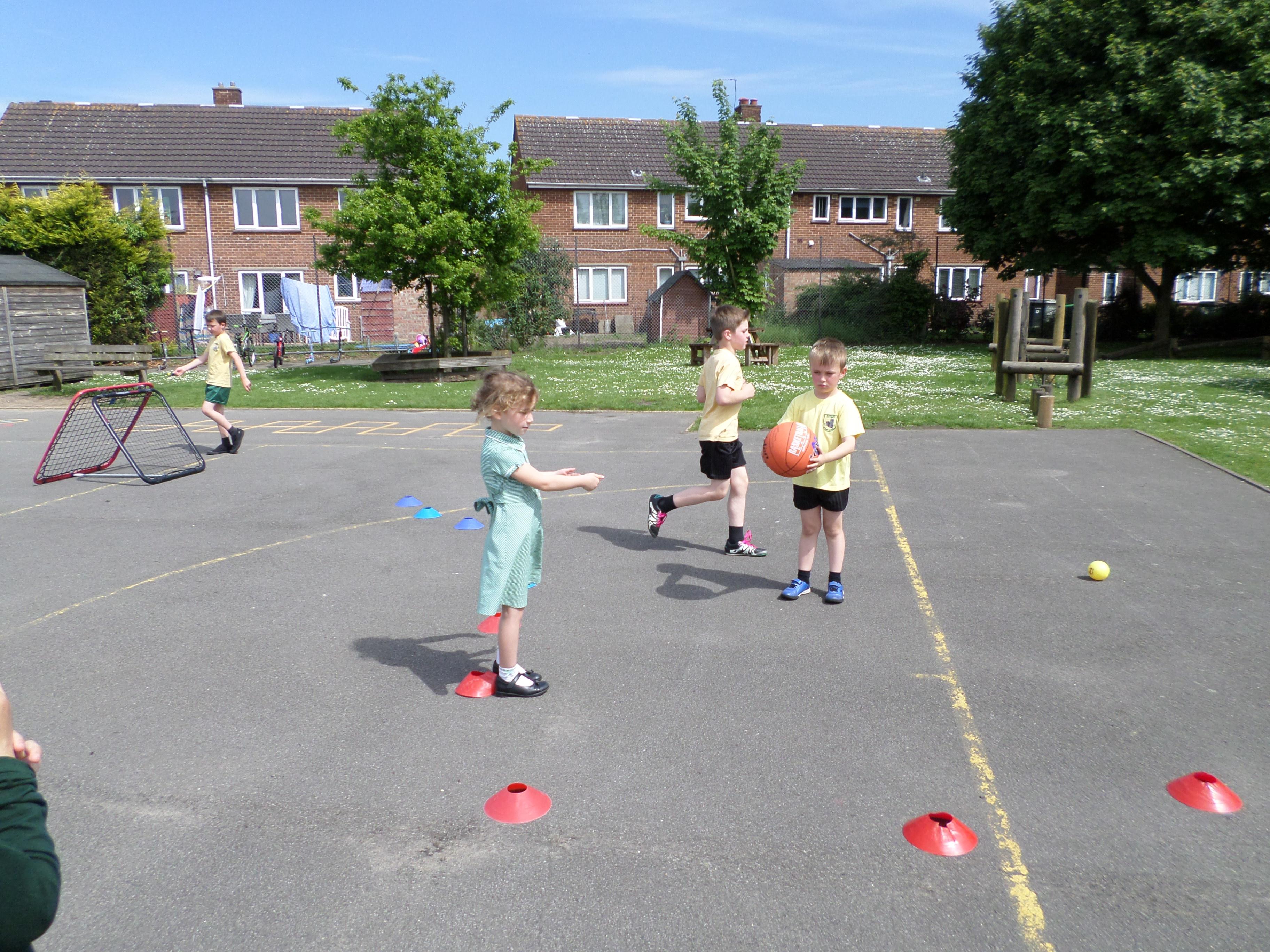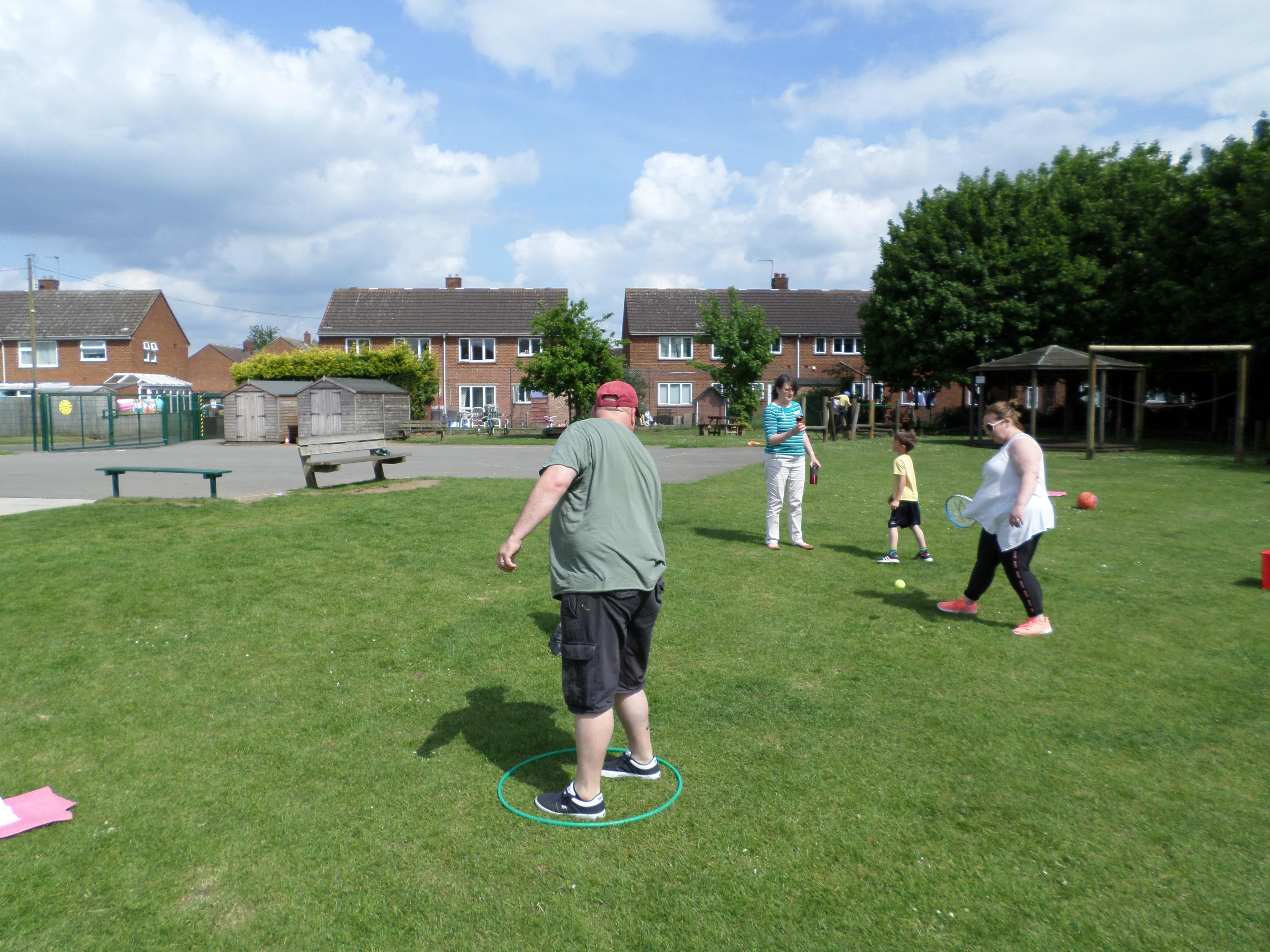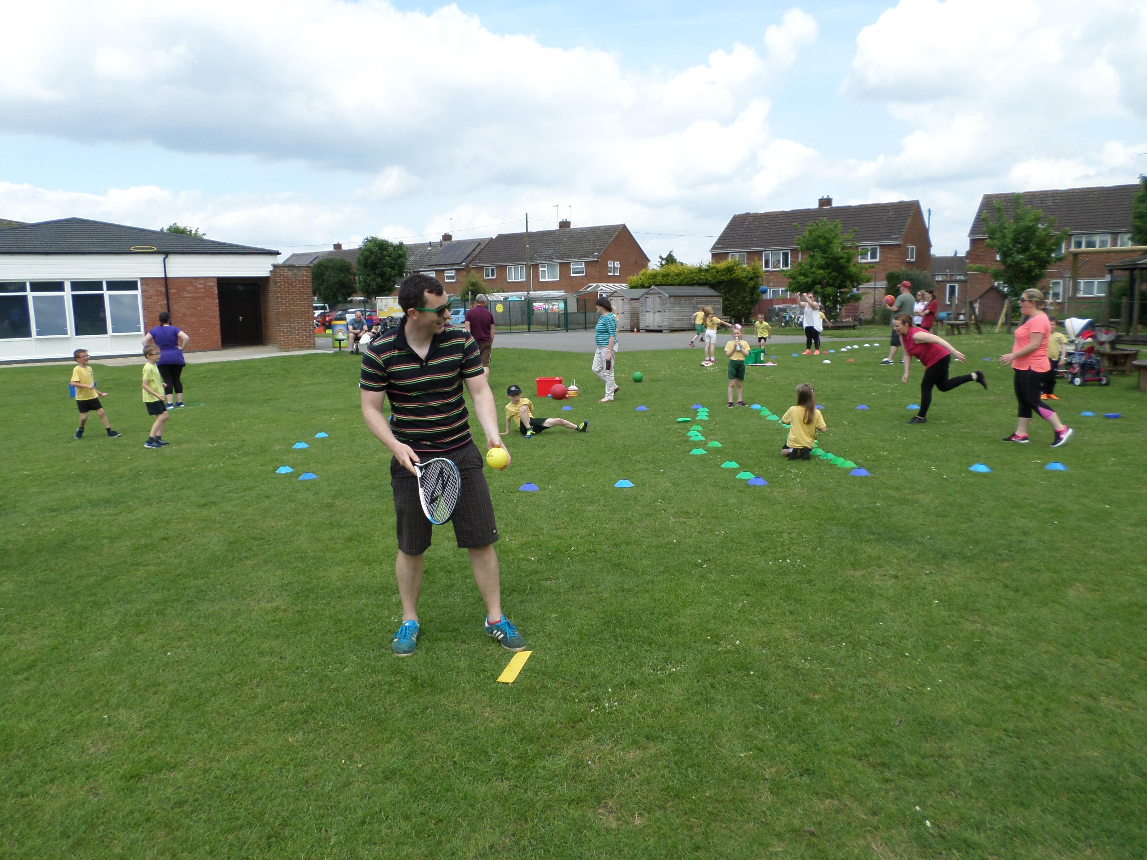 After a lot of team work and instruction writing we invited Oak Class parents to come and try out our games. It was a very hot day, but at least it didn't rain. After the health and safety talk the parents found their children's team and followed instructions for the warm up that was led by the children. Then the children explained their activities and all the adults had a go at each one. It did come to our attention that some rules were being 'adapted' to make it harder for the adults, but they still took part with enthusiasm! The children really enjoyed their event and would like to thank all the adults who came to support them. We hope we have inspired our families to keep fit and active!