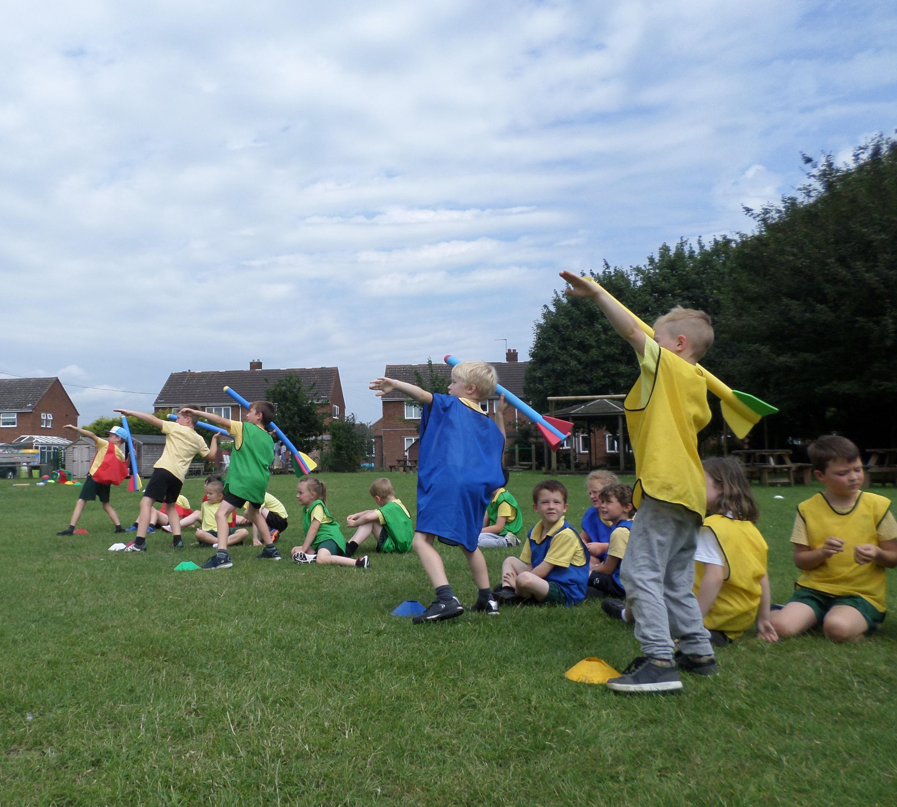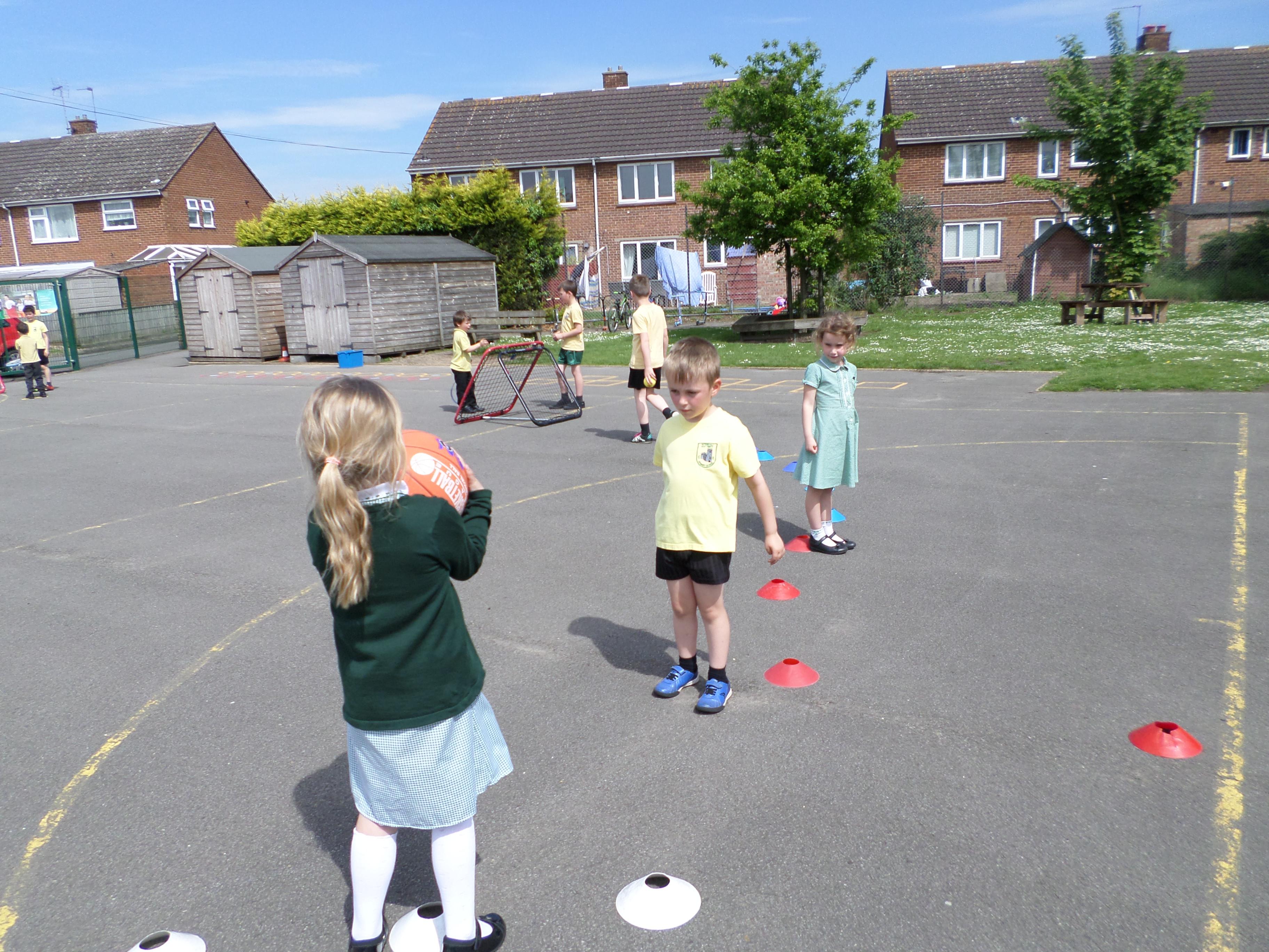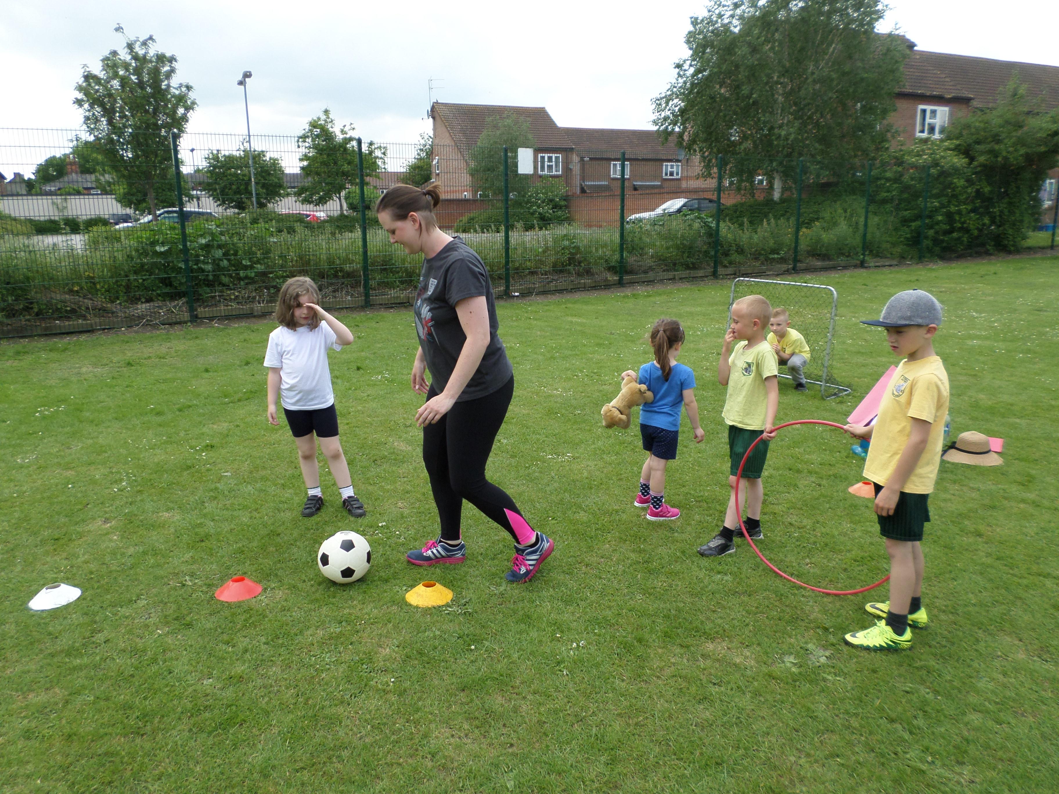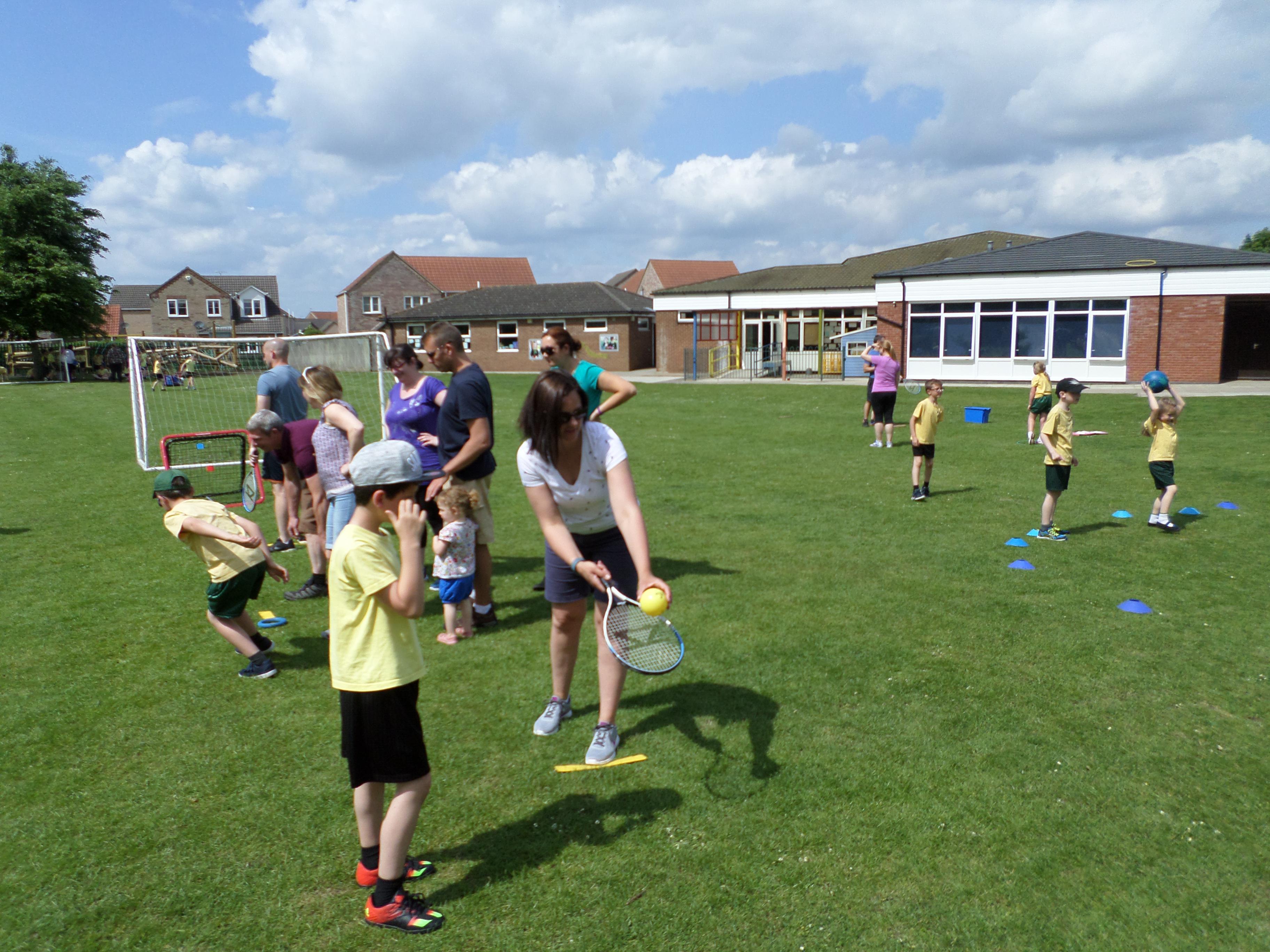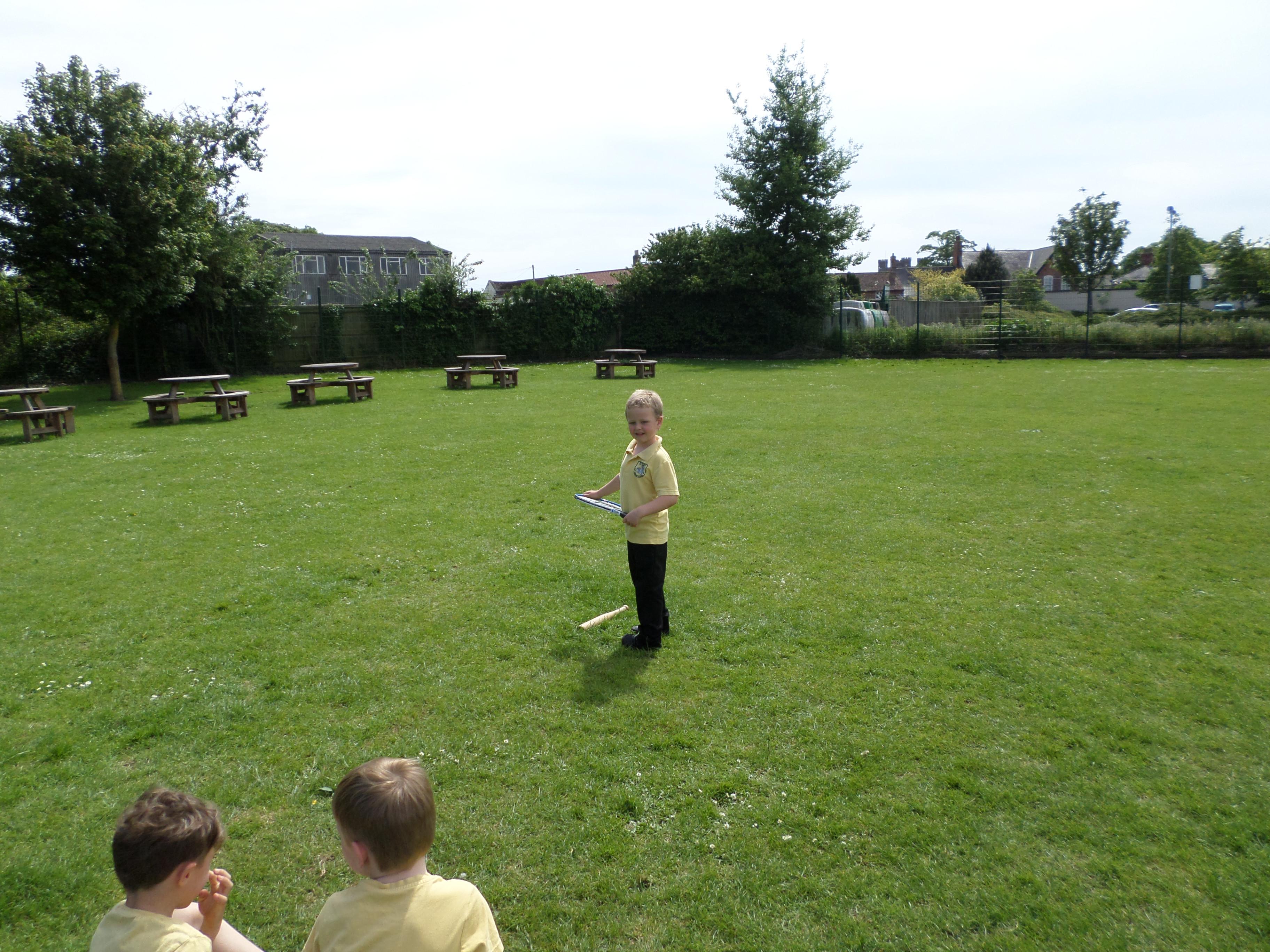 After a lot of team work and instruction writing we invited Oak Class parents to come and try out our games. It was a very hot day, but at least it didn't rain. After the health and safety talk the parents found their children's team and followed instructions for the warm up that was led by the children. Then the children explained their activities and all the adults had a go at each one. It did come to our attention that some rules were being 'adapted' to make it harder for the adults, but they still took part with enthusiasm! The children really enjoyed their event and would like to thank all the adults who came to support them. We hope we have inspired our families to keep fit and active!