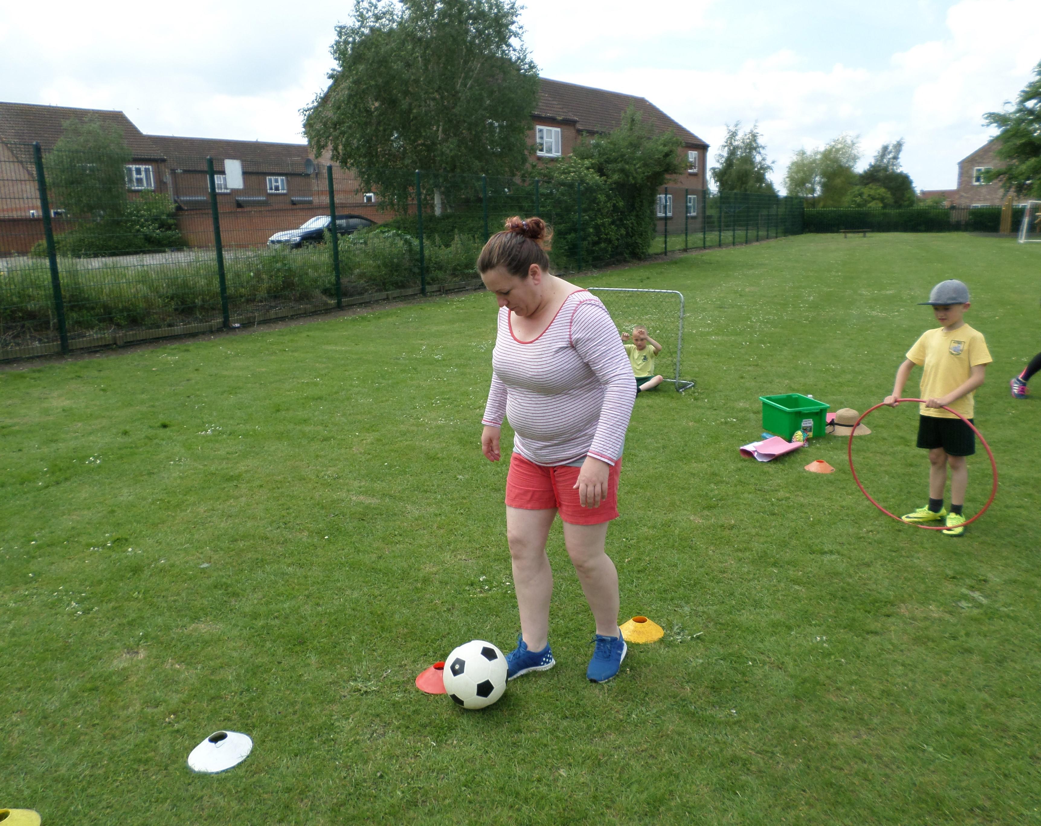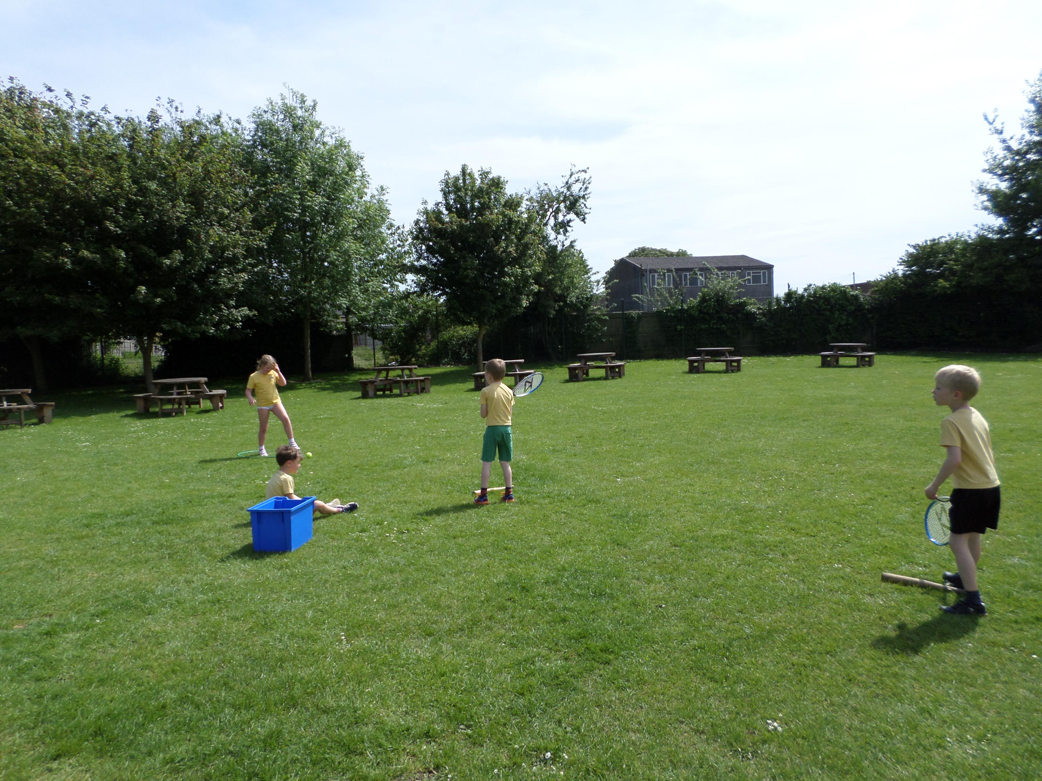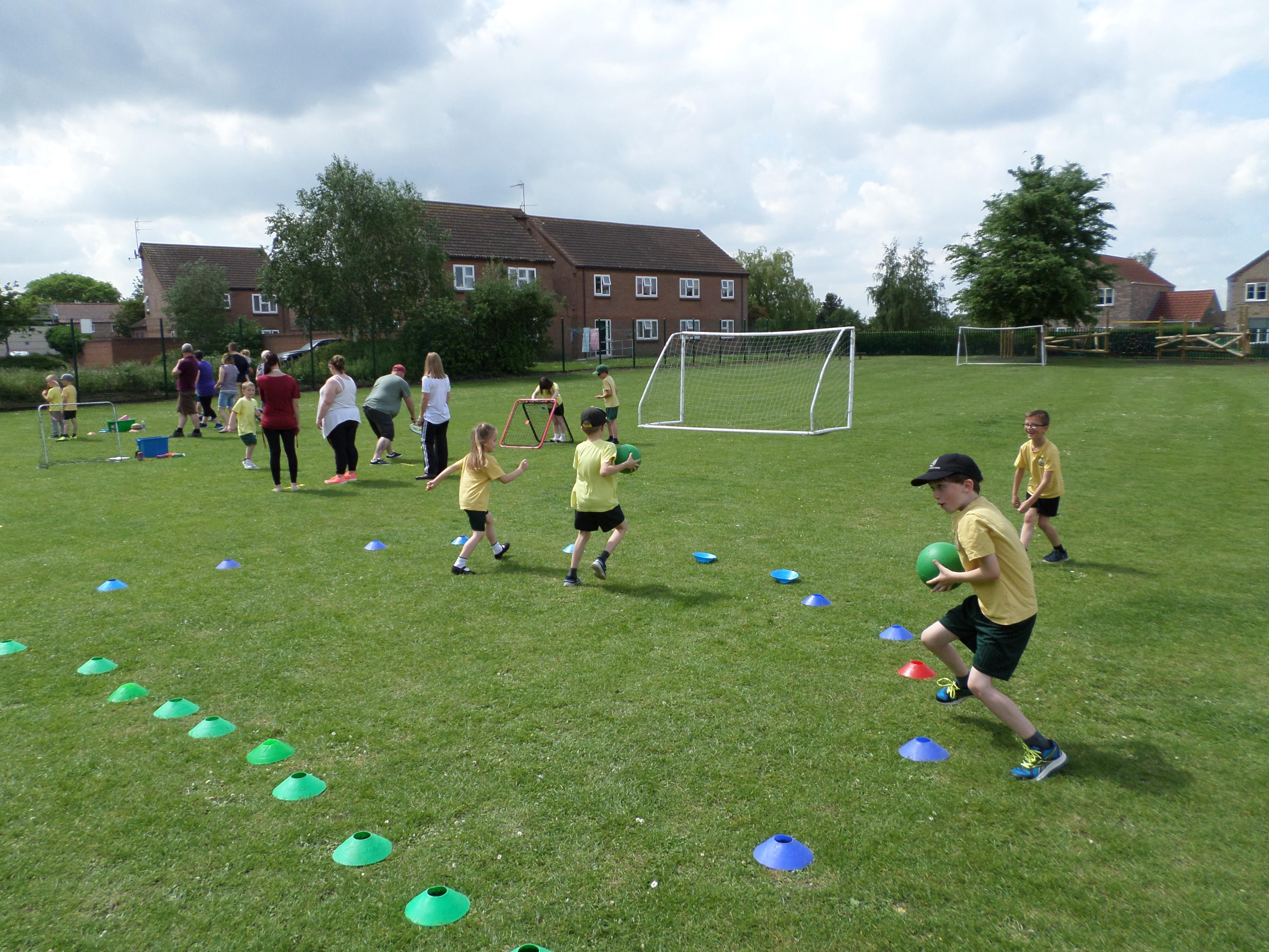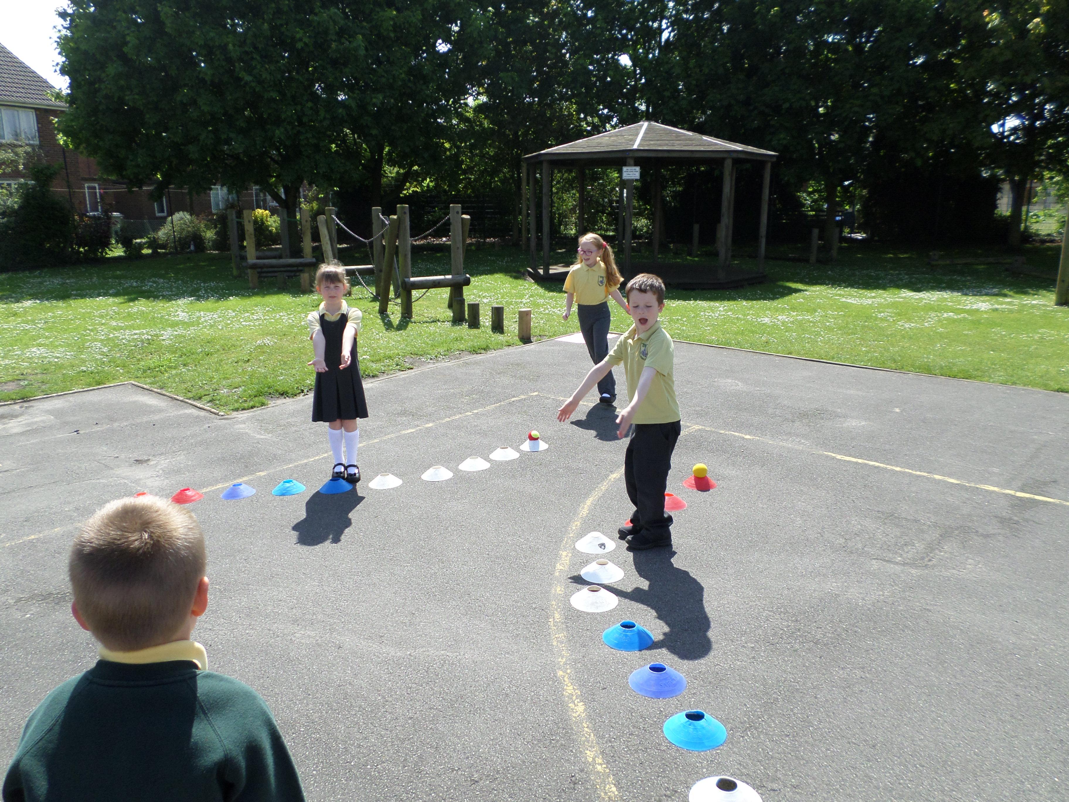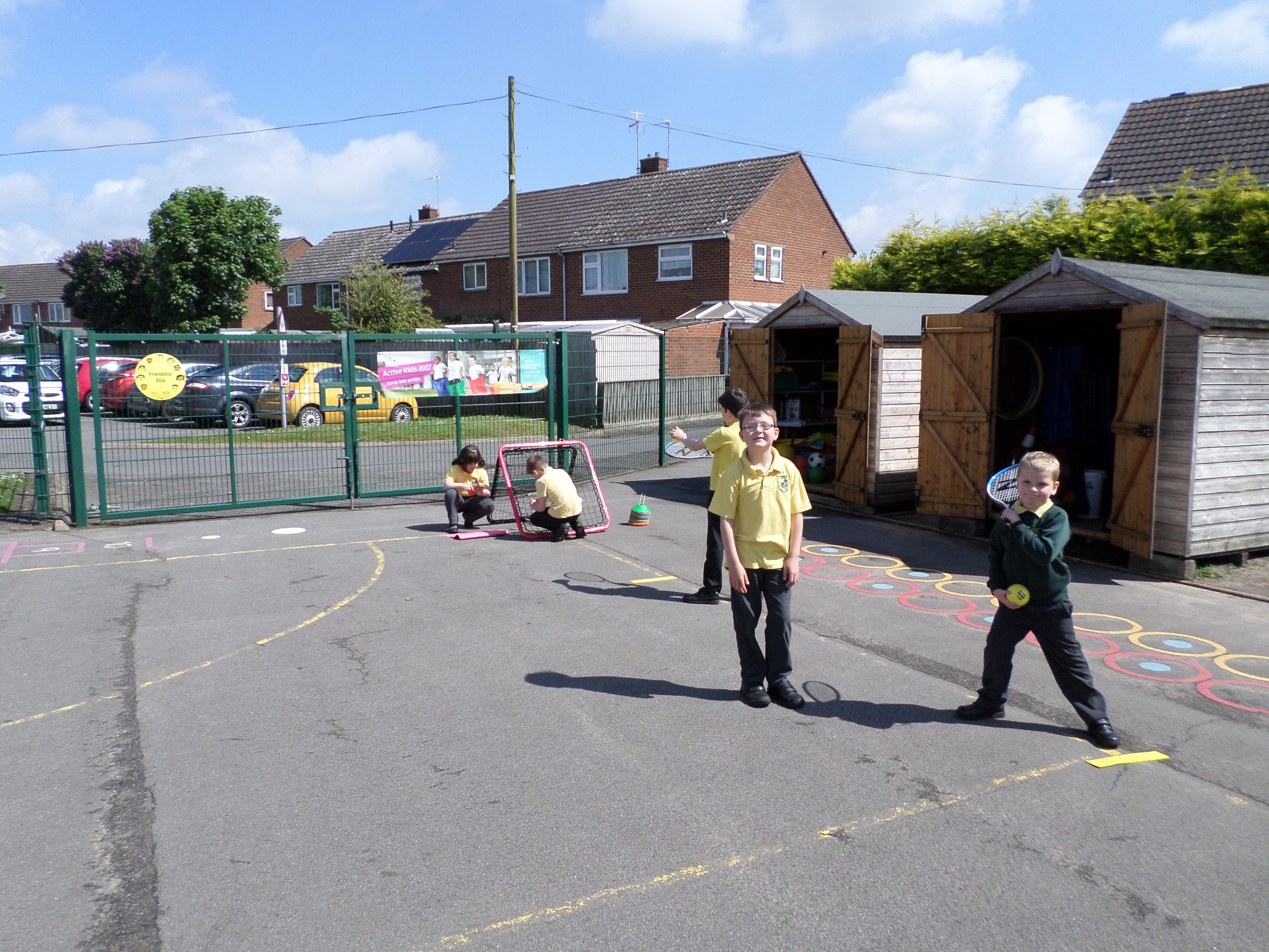 After a lot of team work and instruction writing we invited Oak Class parents to come and try out our games. It was a very hot day, but at least it didn't rain. After the health and safety talk the parents found their children's team and followed instructions for the warm up that was led by the children. Then the children explained their activities and all the adults had a go at each one. It did come to our attention that some rules were being 'adapted' to make it harder for the adults, but they still took part with enthusiasm! The children really enjoyed their event and would like to thank all the adults who came to support them. We hope we have inspired our families to keep fit and active!